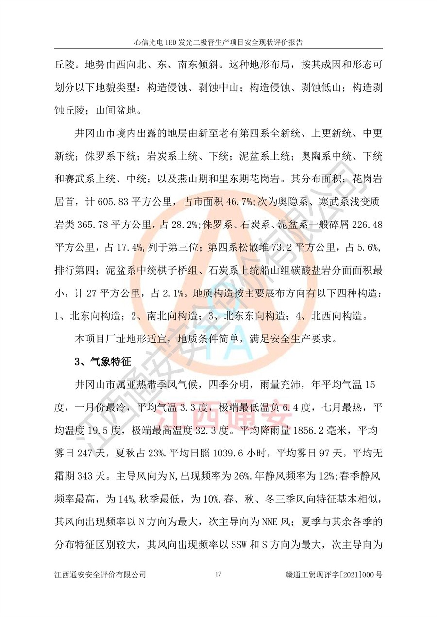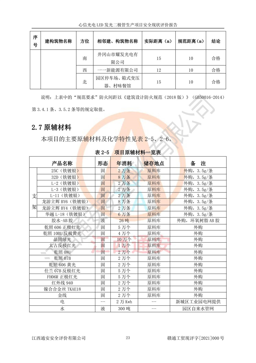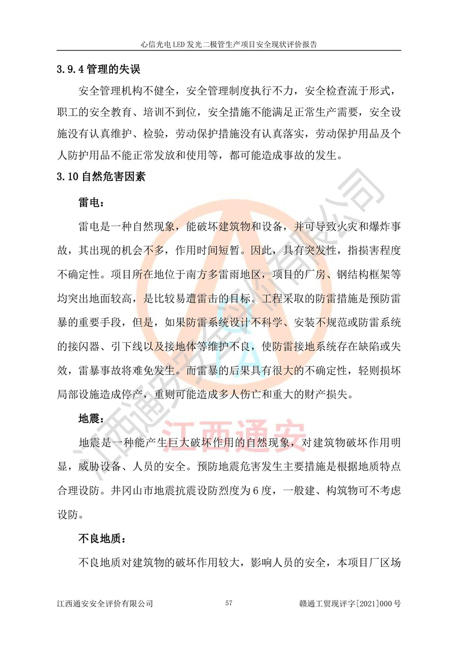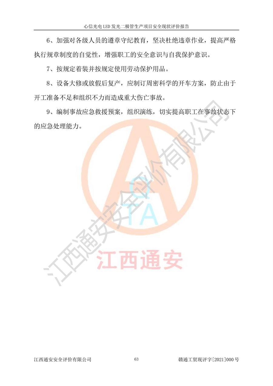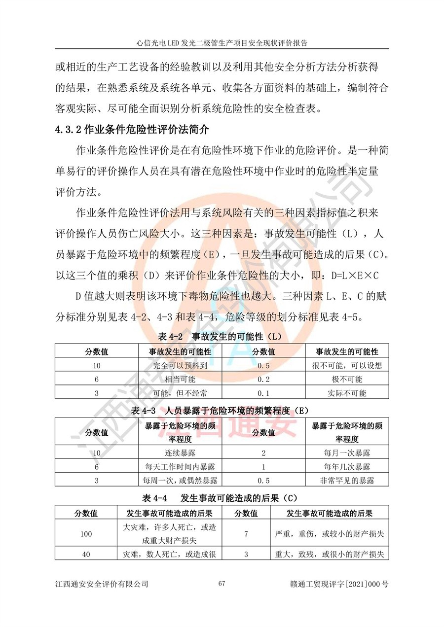 江西心信光电LED发光二极管生产项目安全现状评价报告