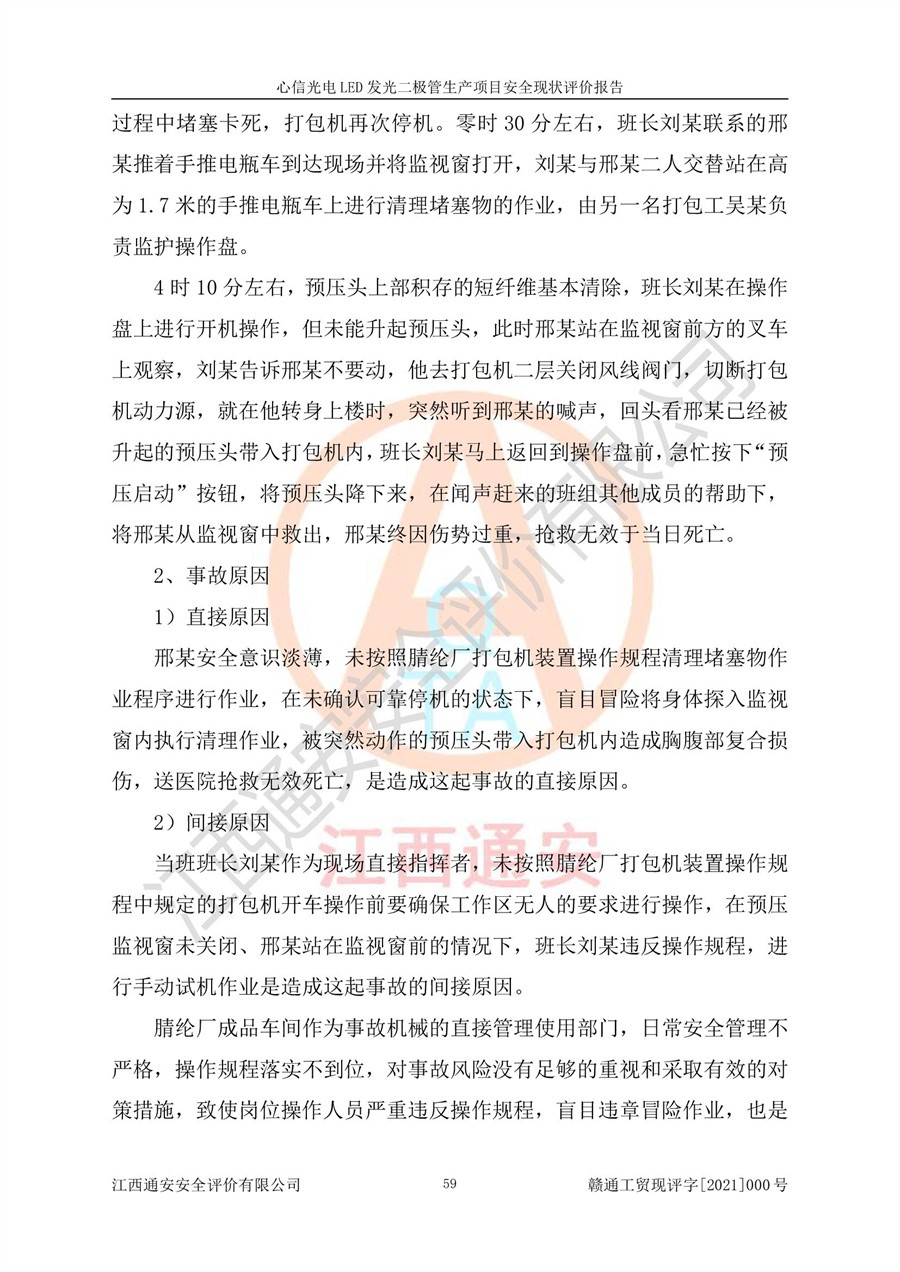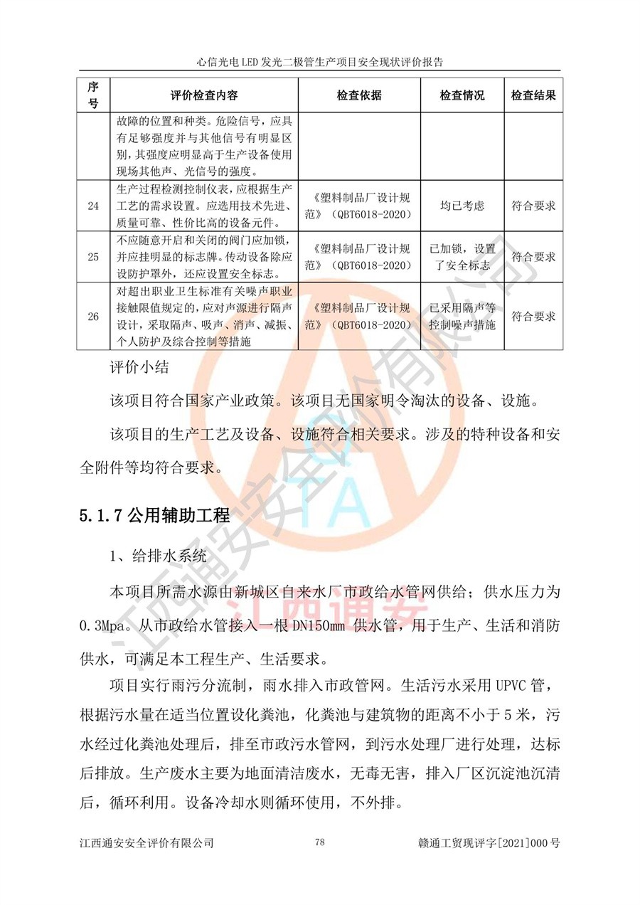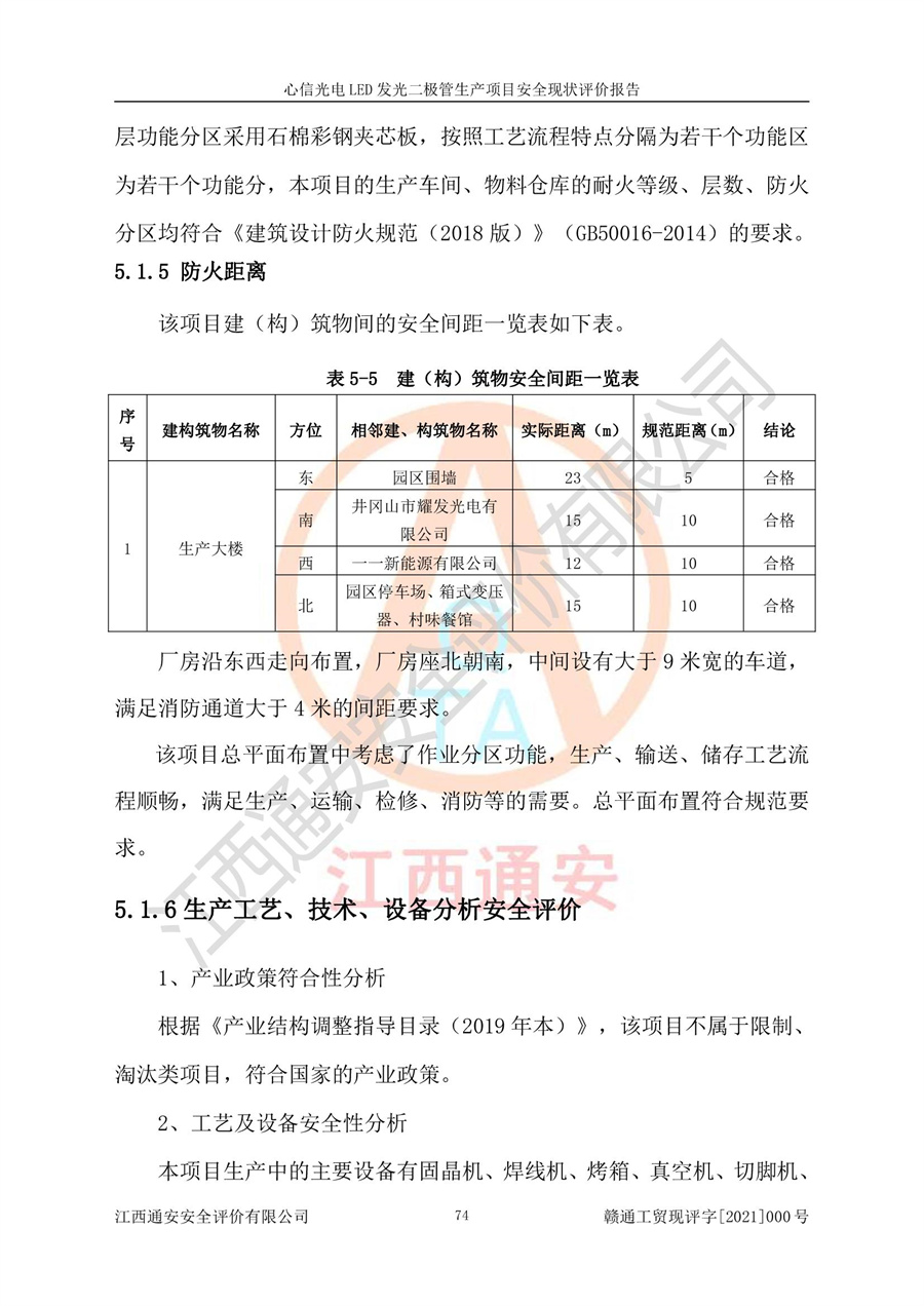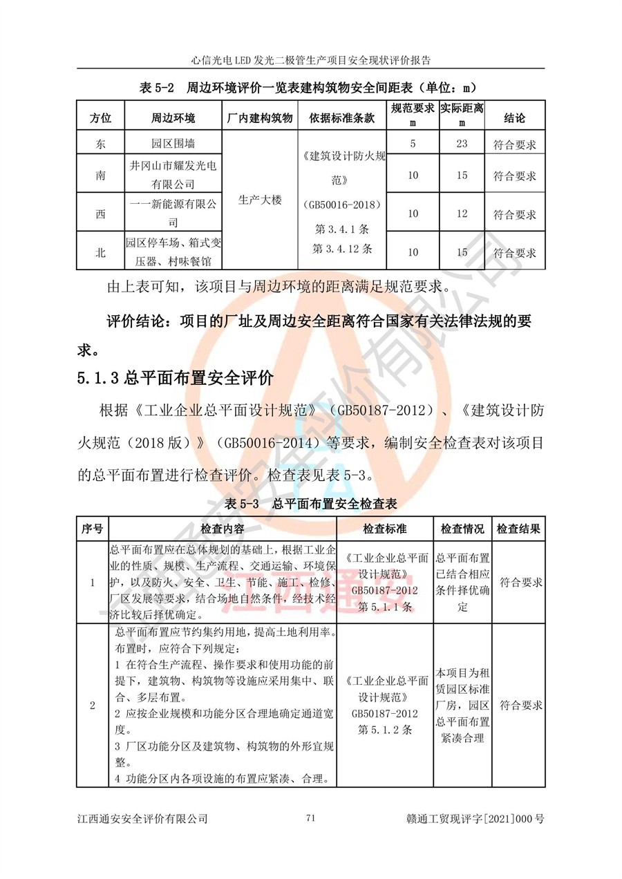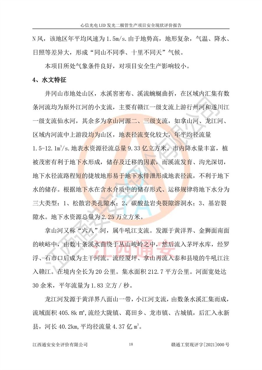 江西心信光电LED发光二极管生产项目安全现状评价报告