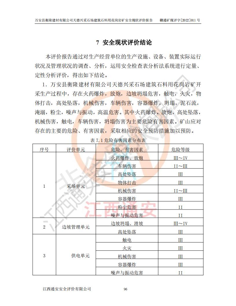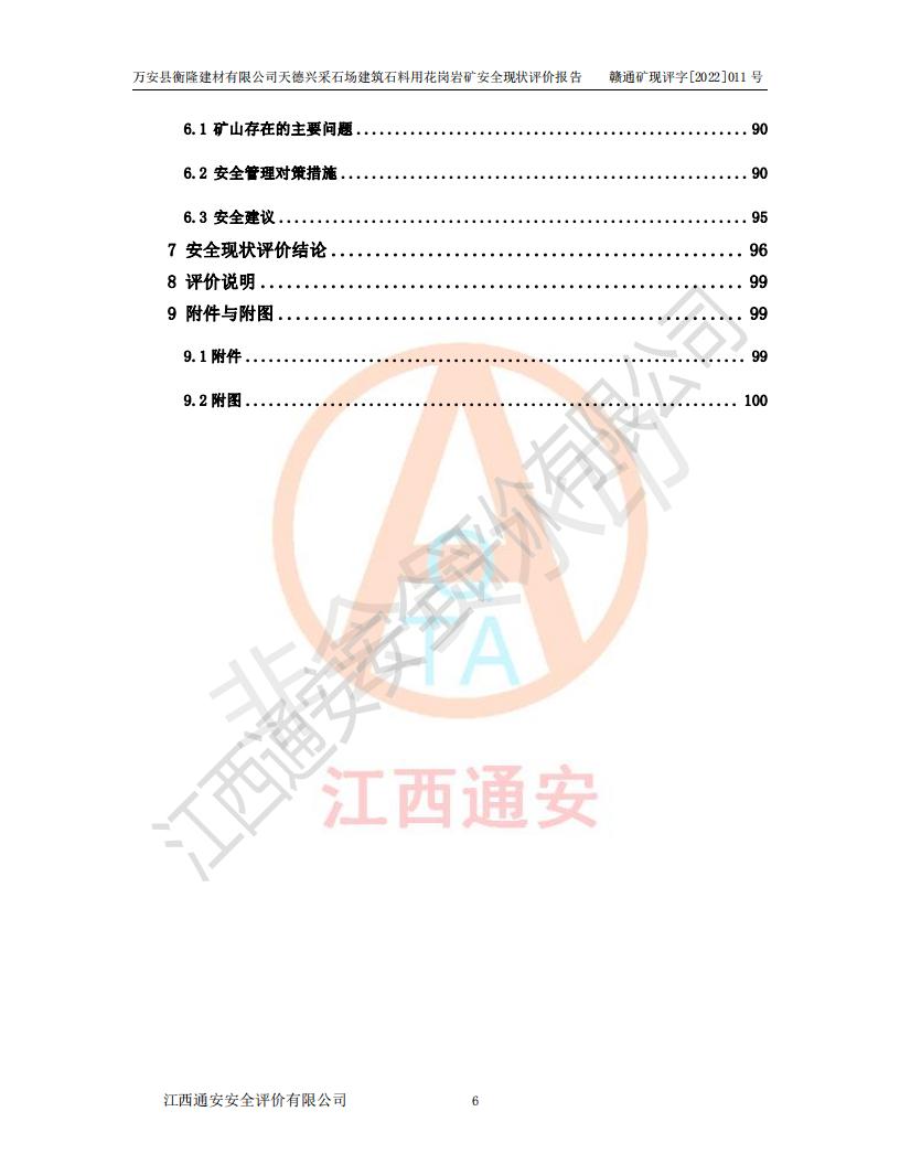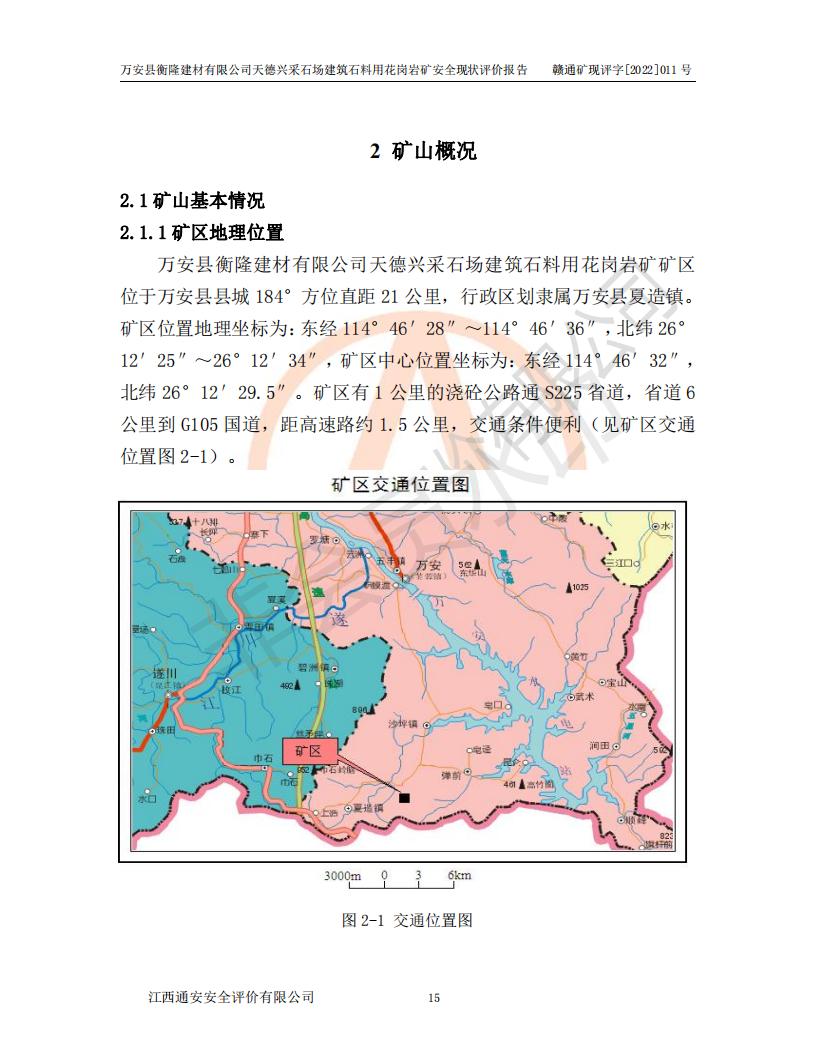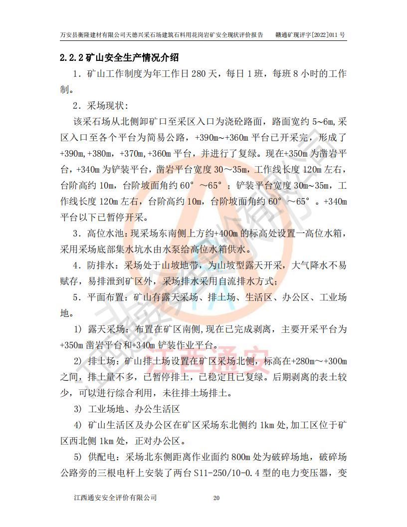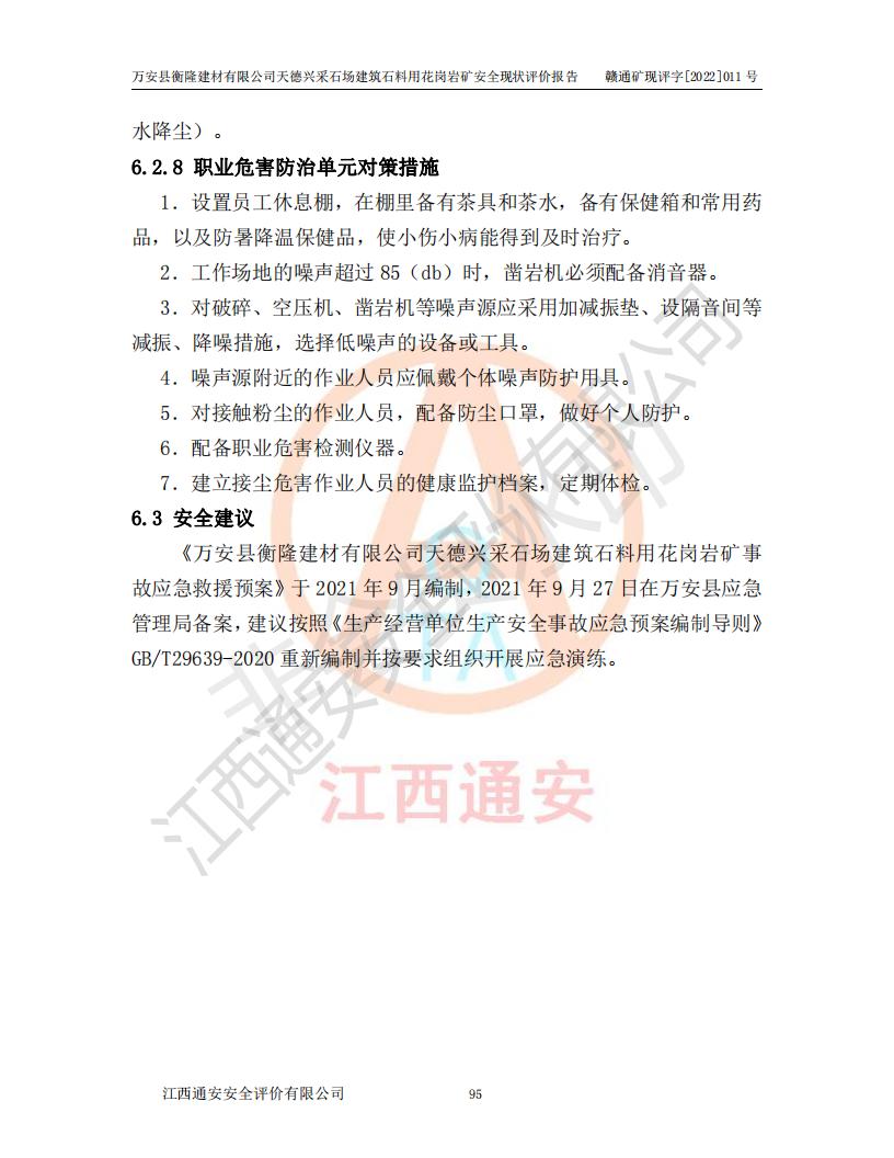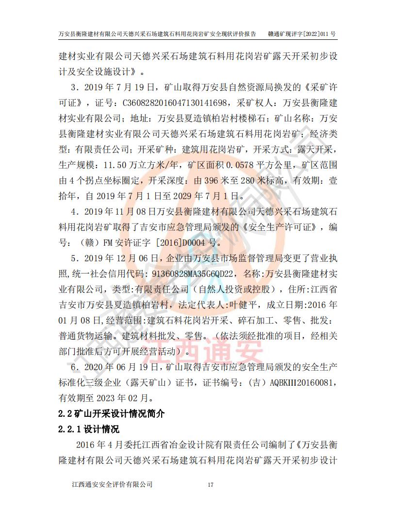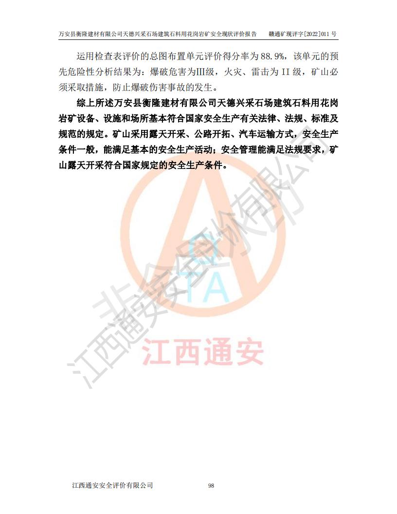 万安县衡隆建材有限公司天德兴采石场建筑石料用花岗岩矿安全现状评价报告