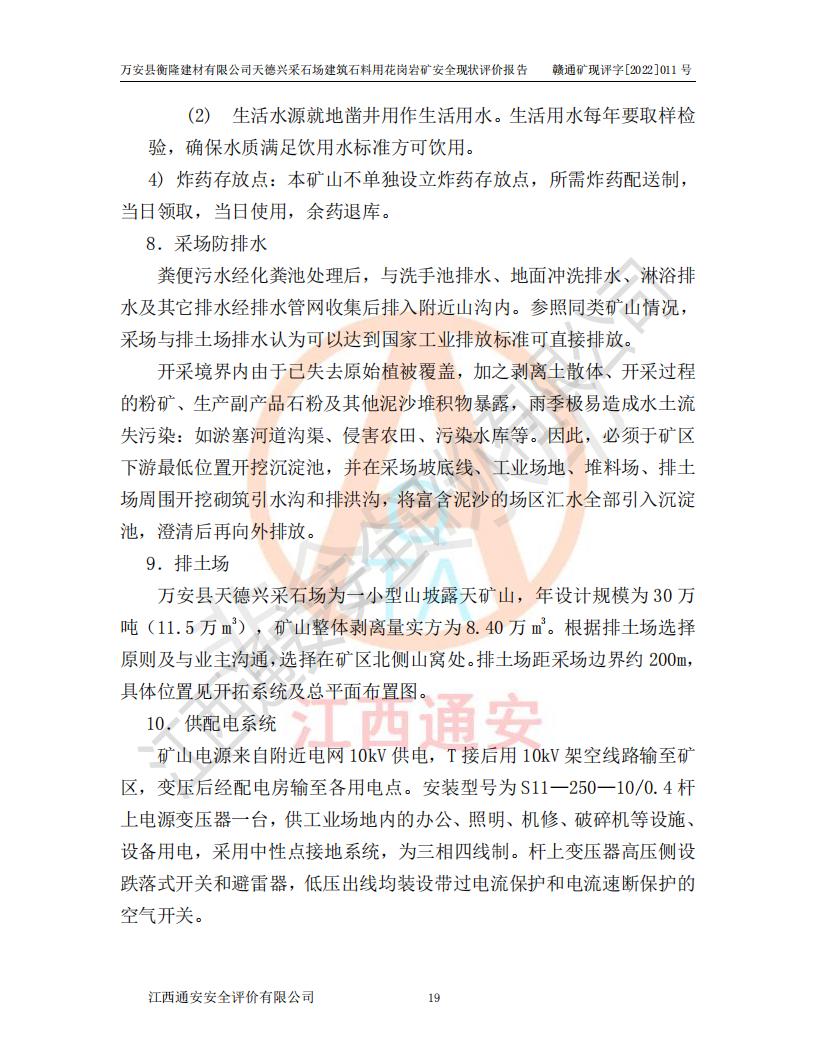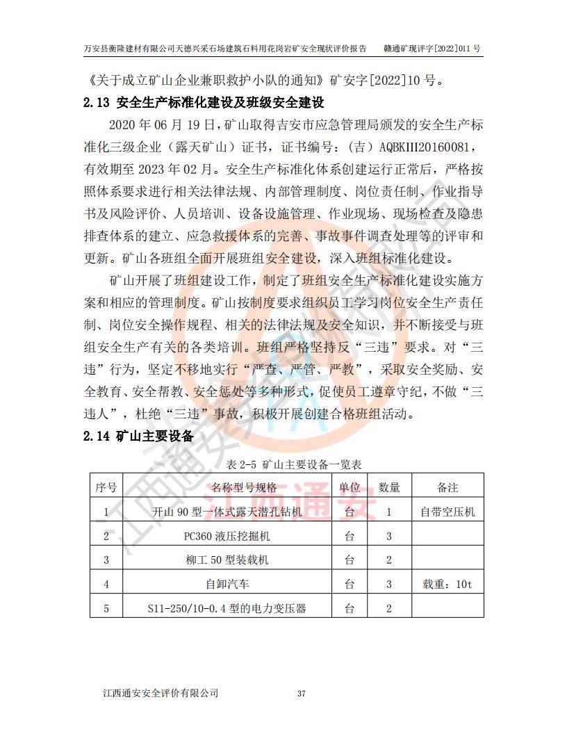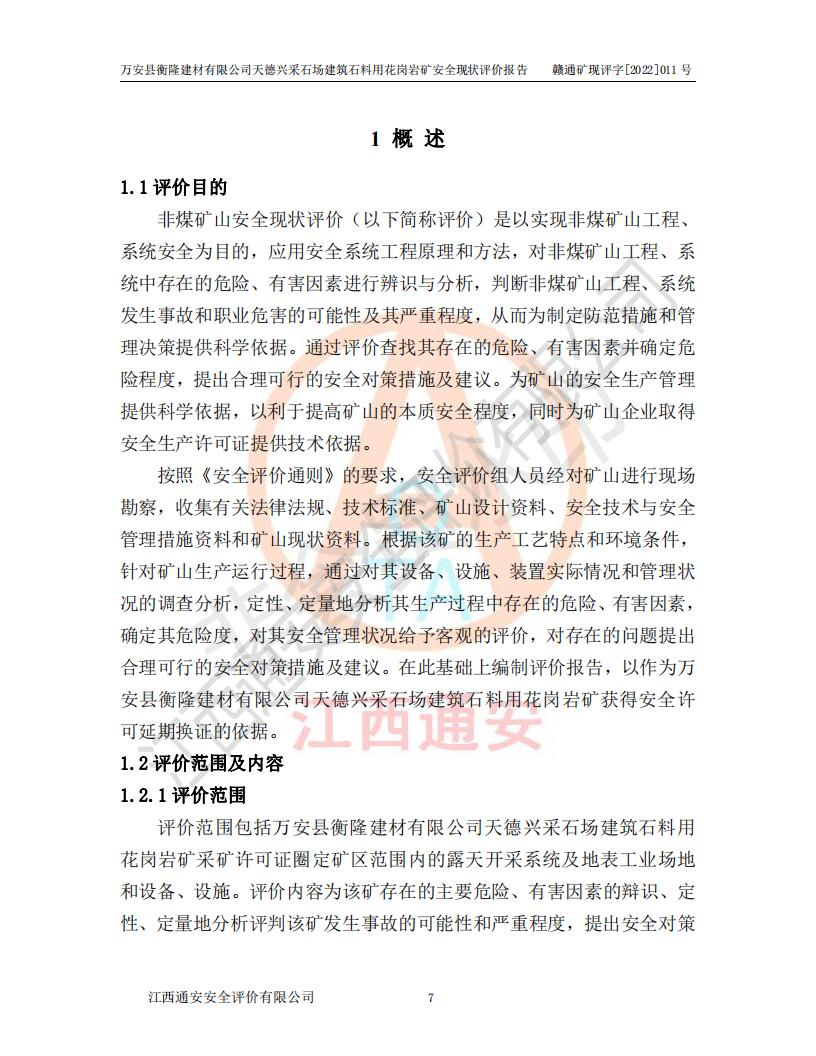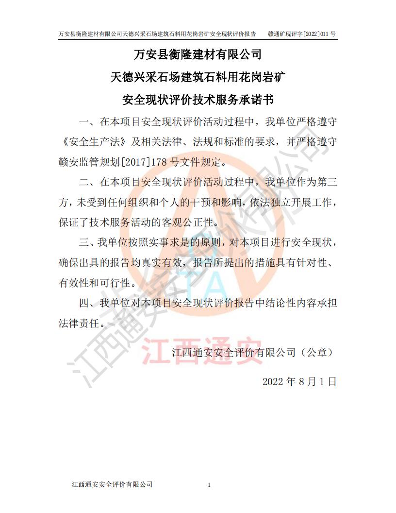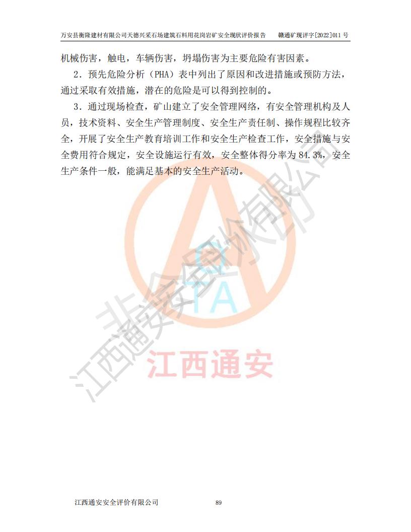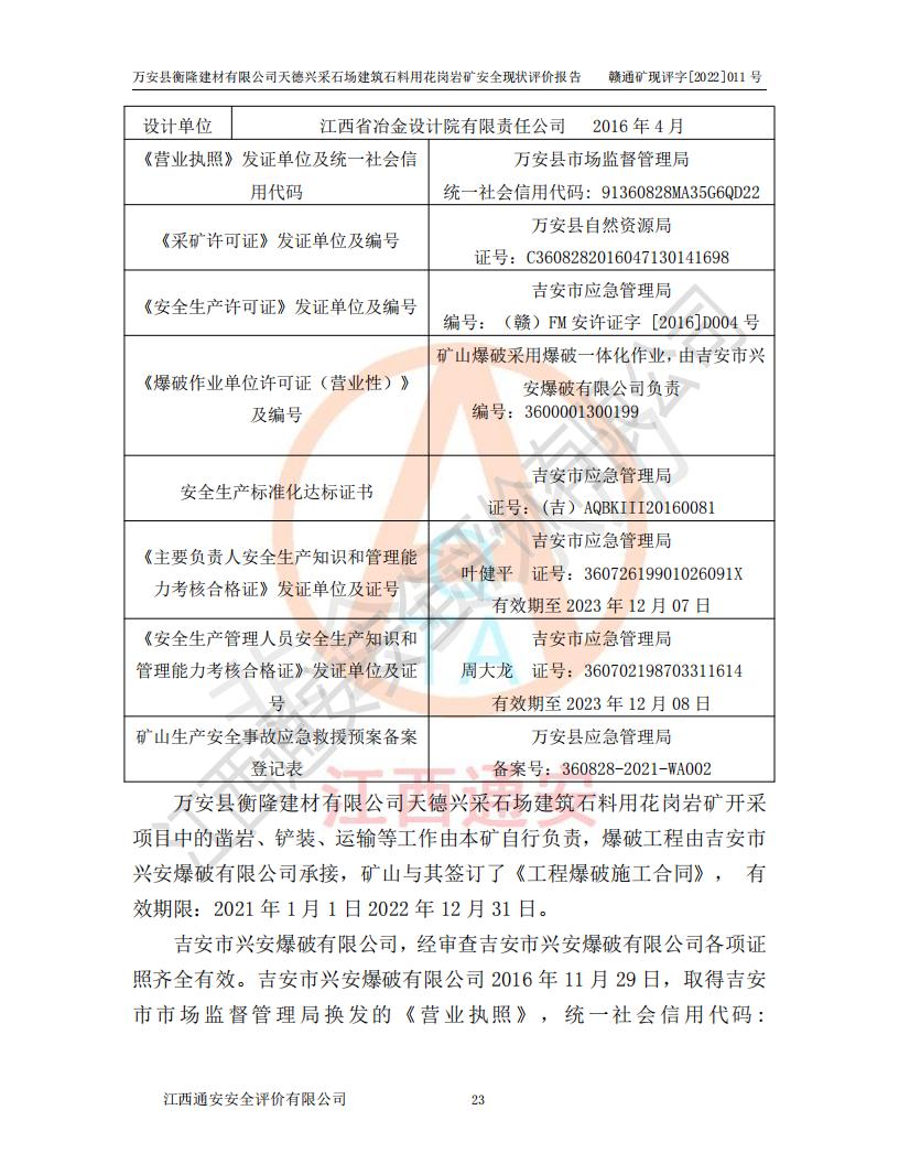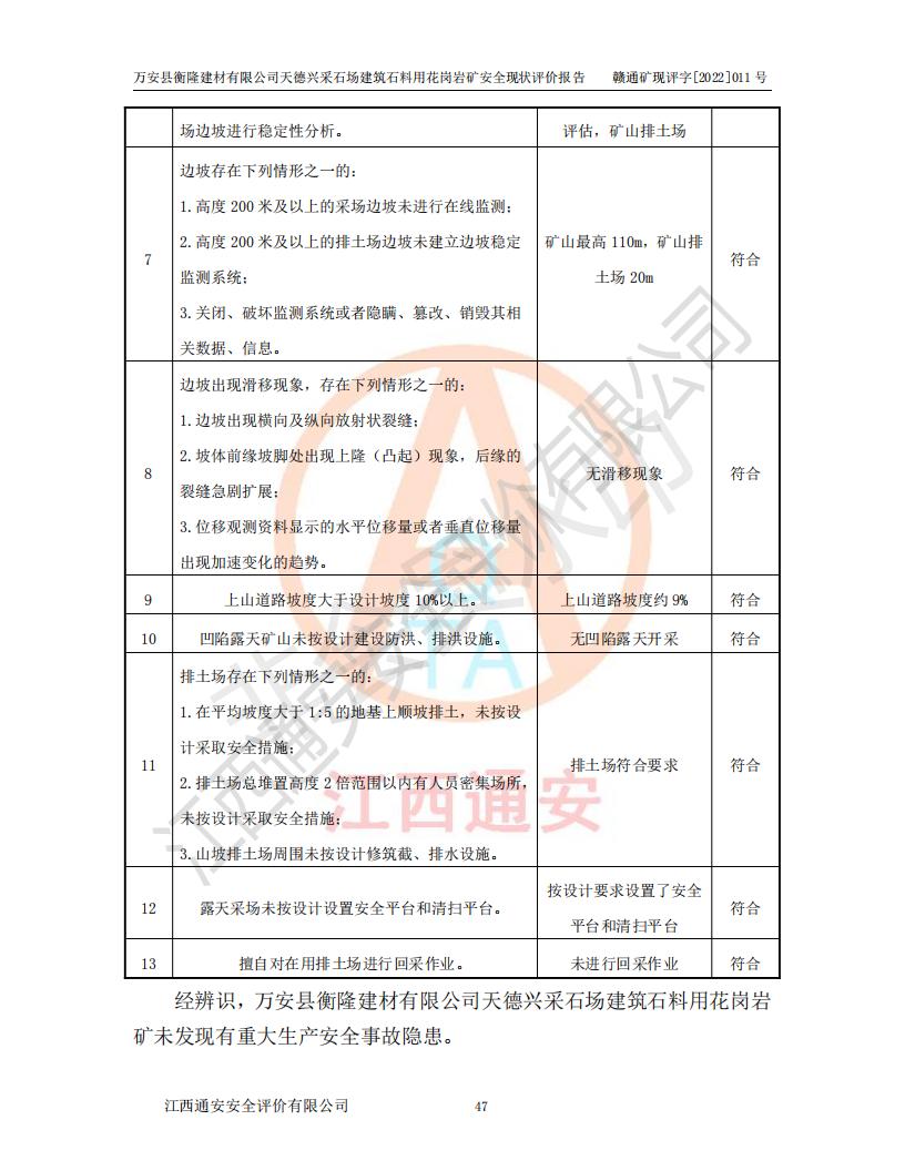 万安县衡隆建材有限公司天德兴采石场建筑石料用花岗岩矿安全现状评价报告