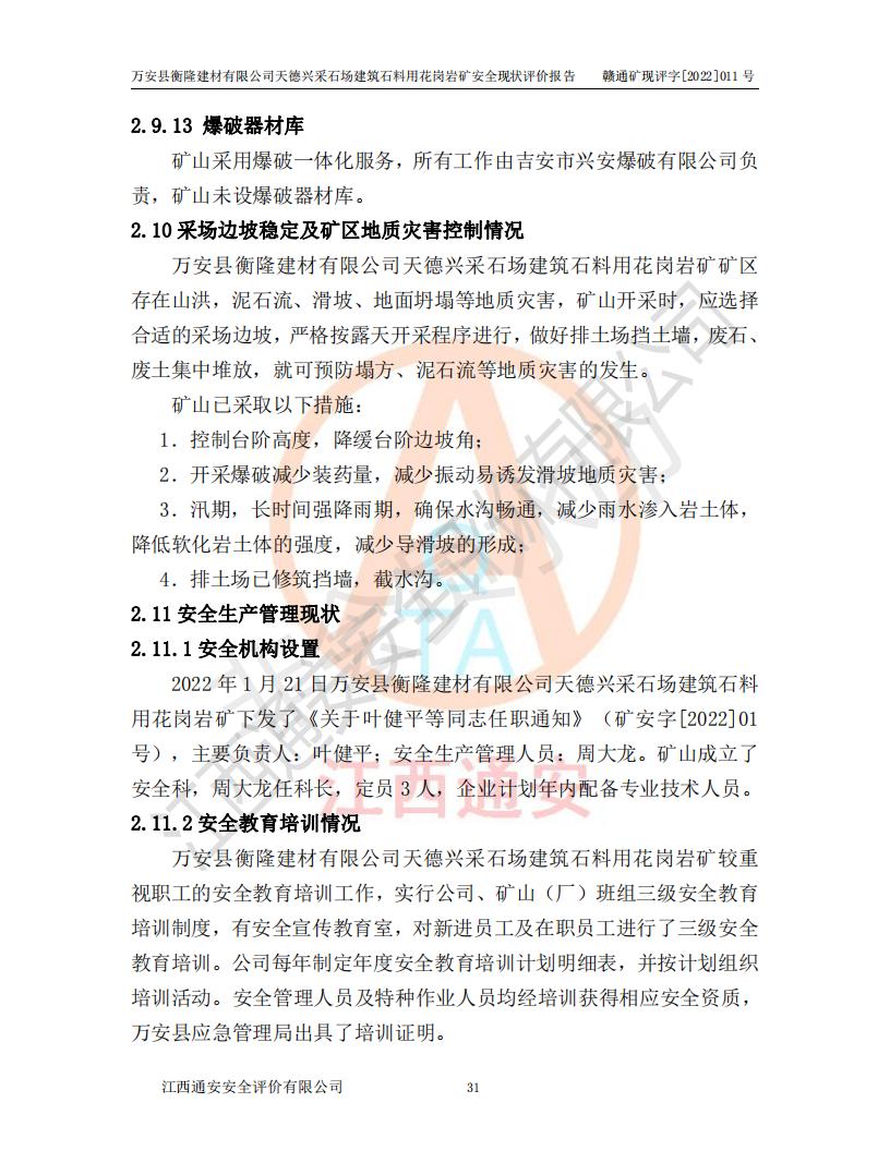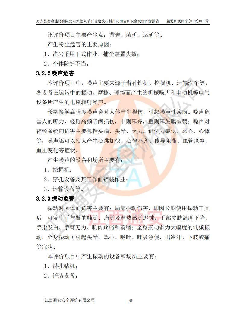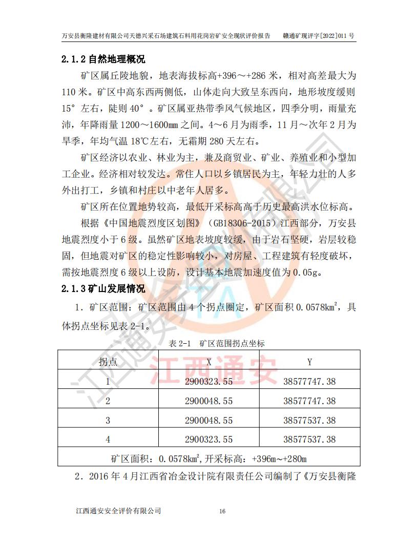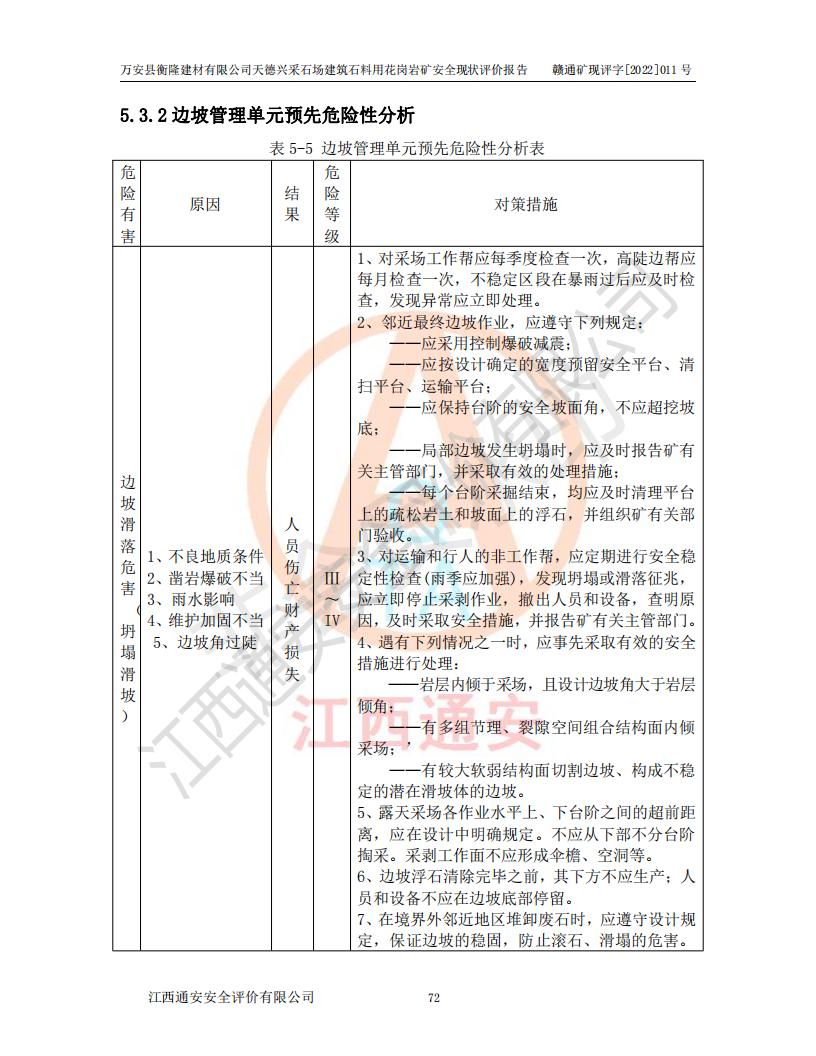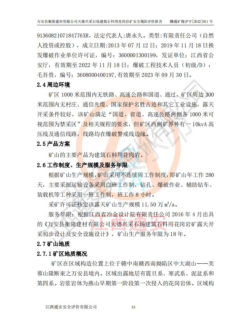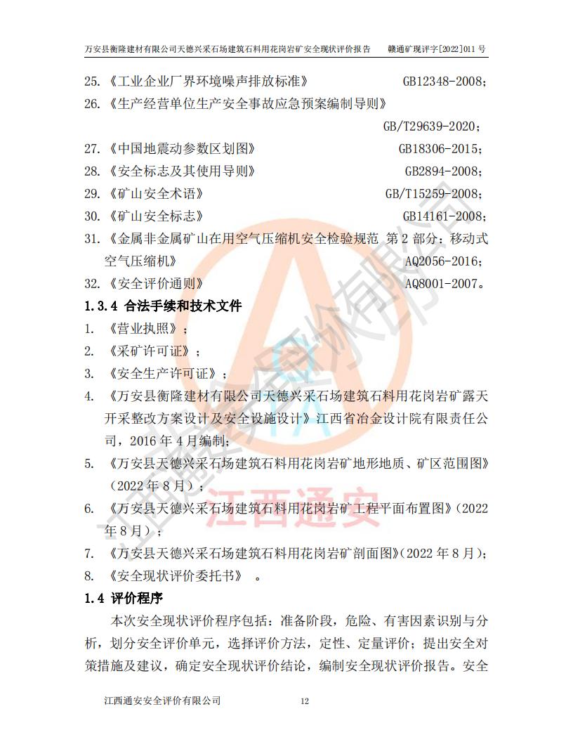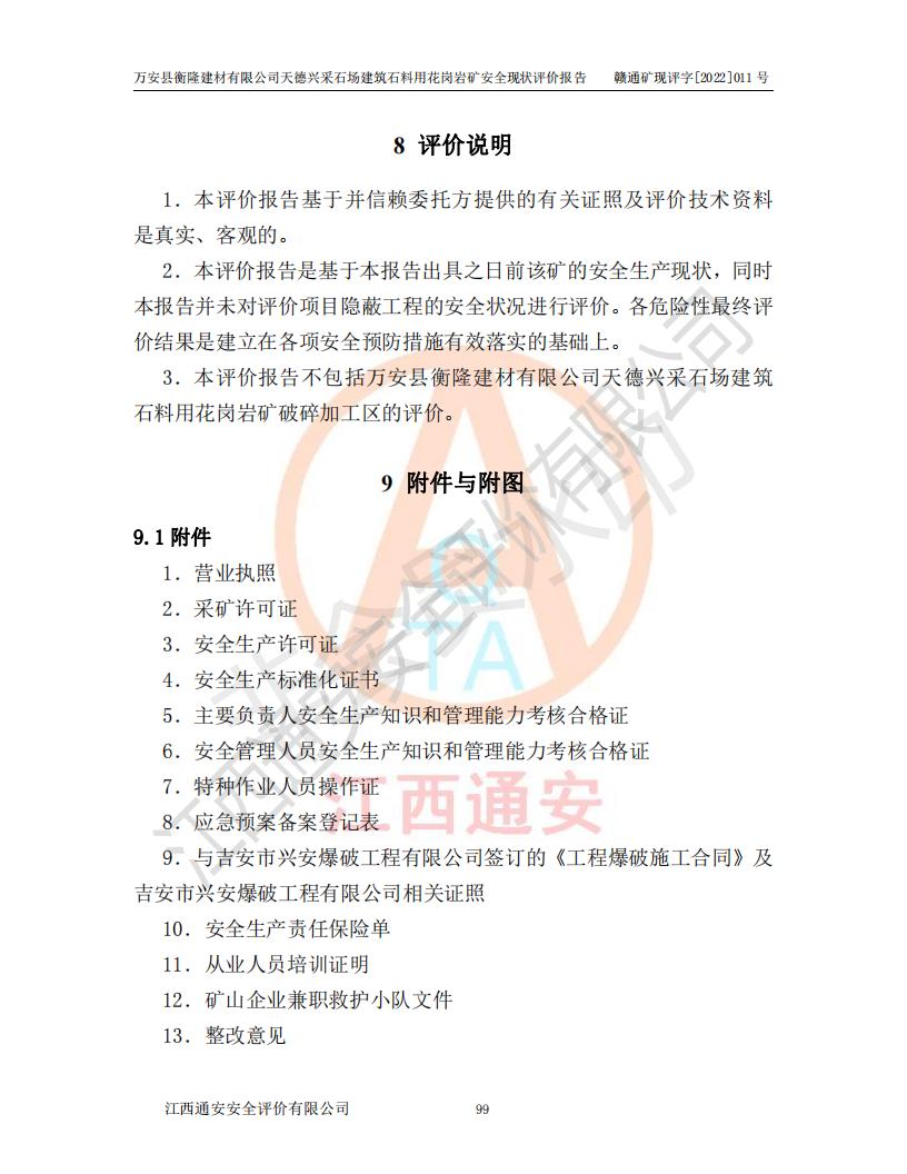 万安县衡隆建材有限公司天德兴采石场建筑石料用花岗岩矿安全现状评价报告