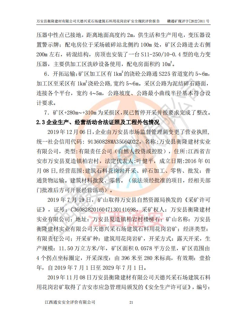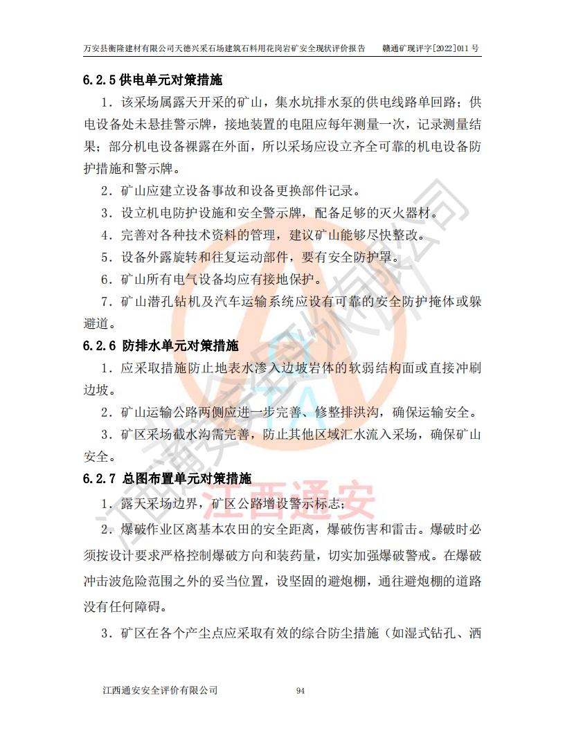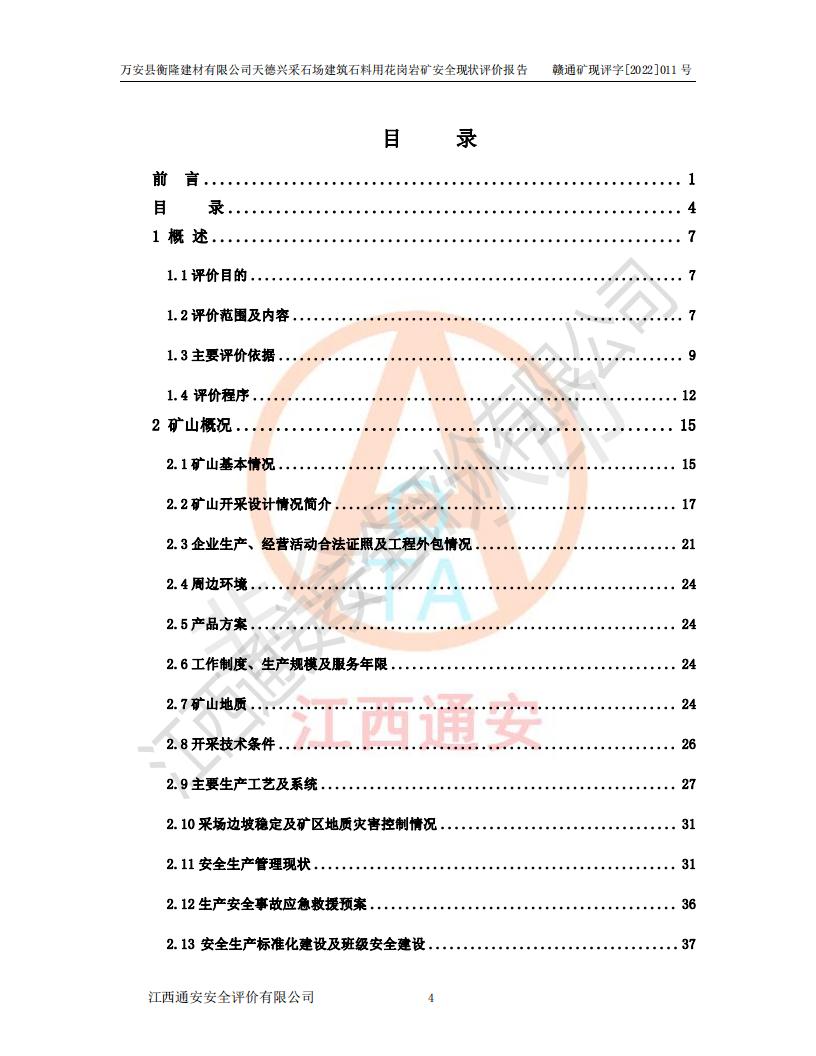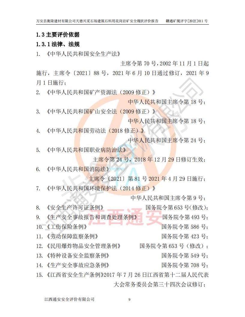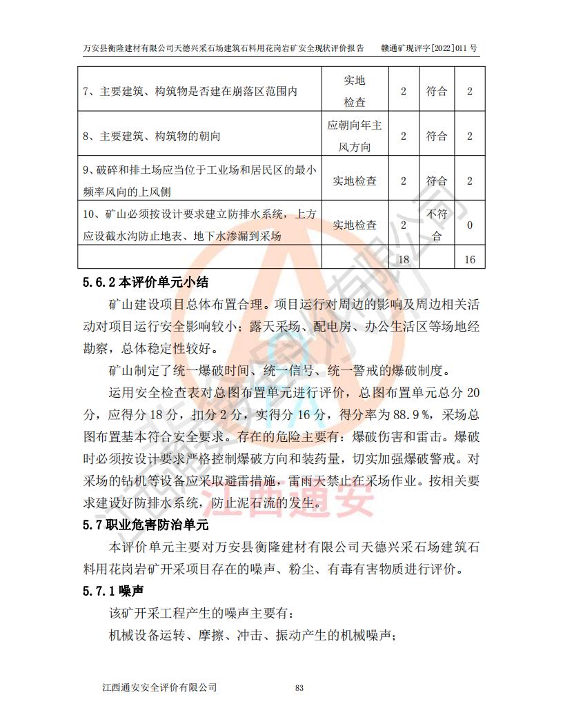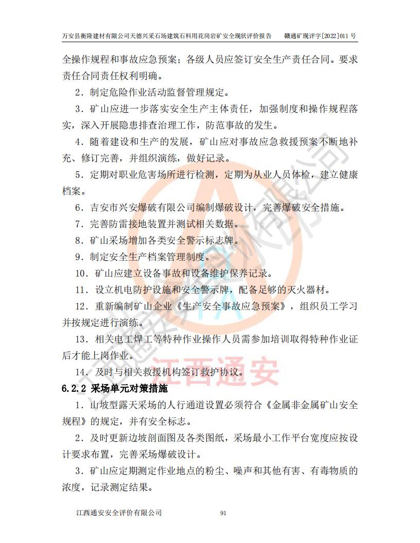万安县衡隆建材有限公司天德兴采石场建筑石料用花岗岩矿安全现状评价报告