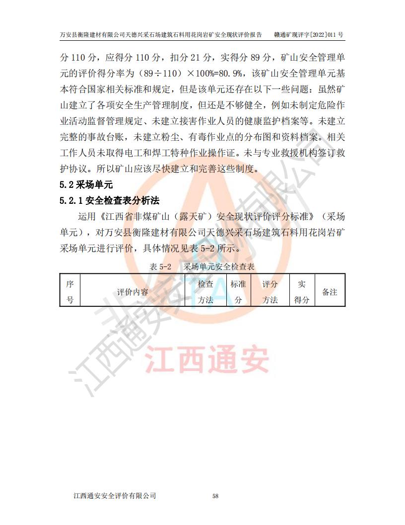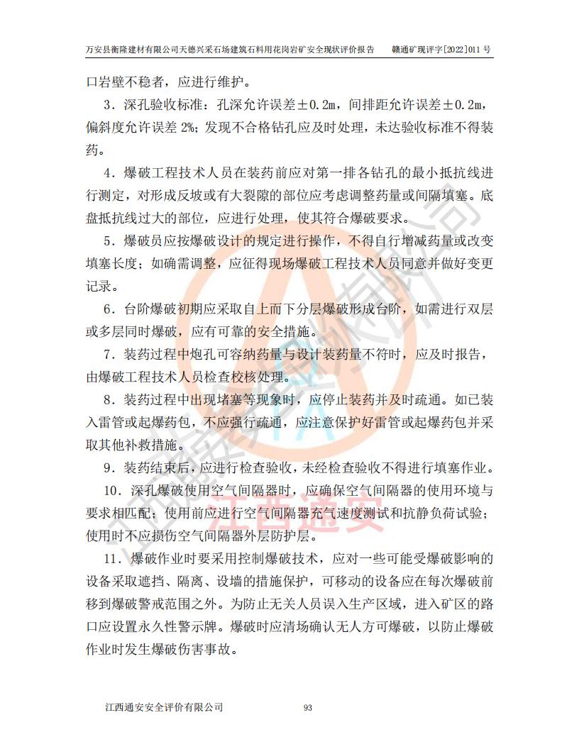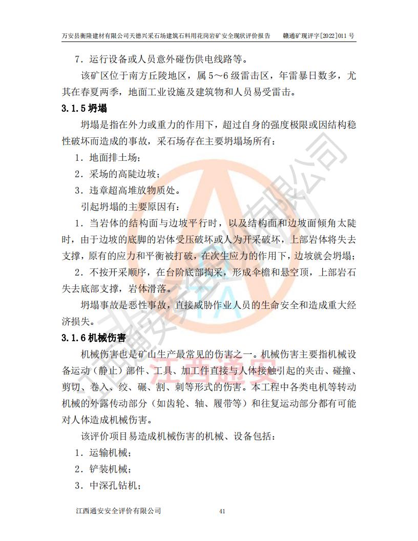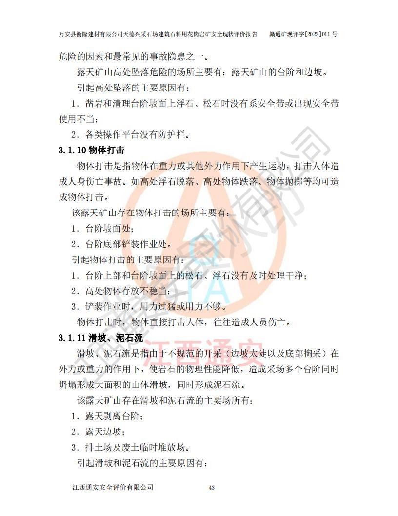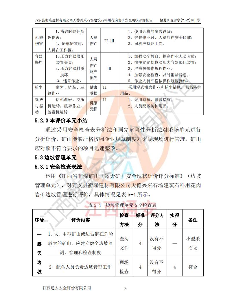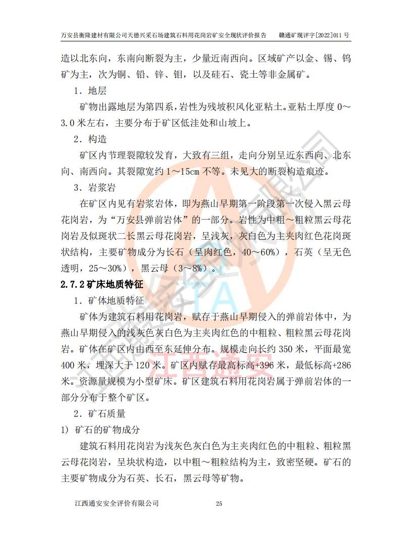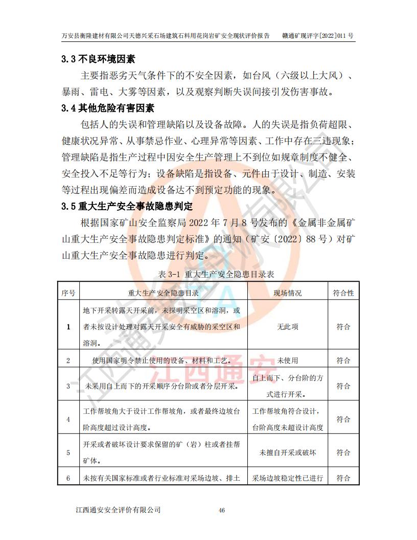 万安县衡隆建材有限公司天德兴采石场建筑石料用花岗岩矿安全现状评价报告