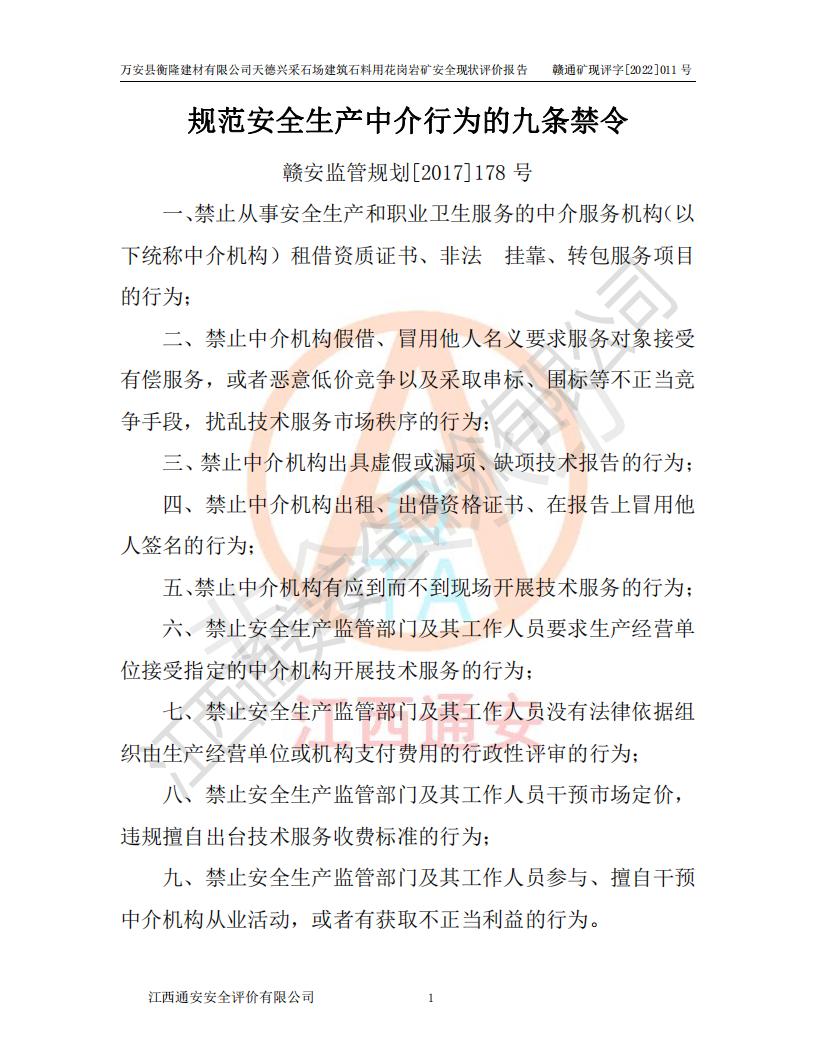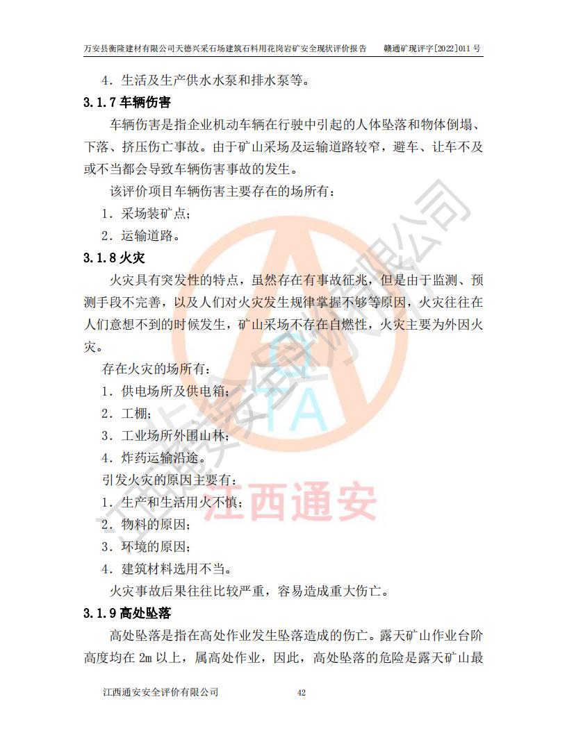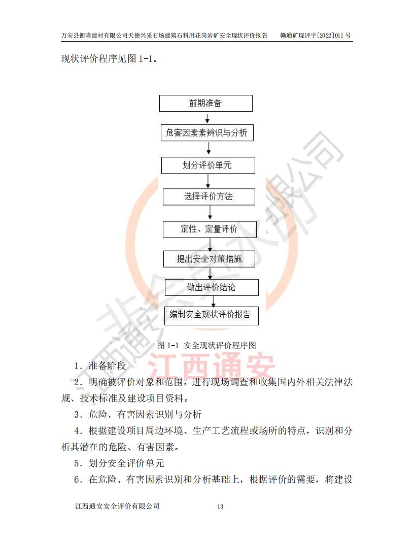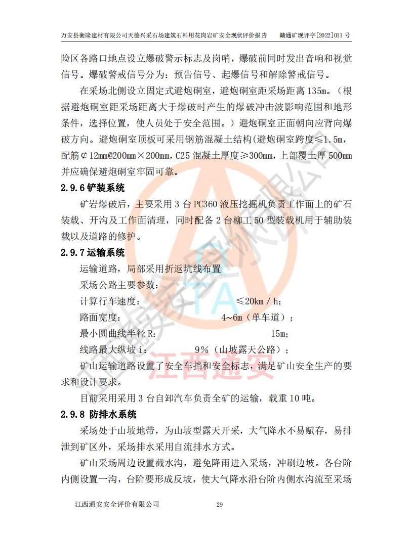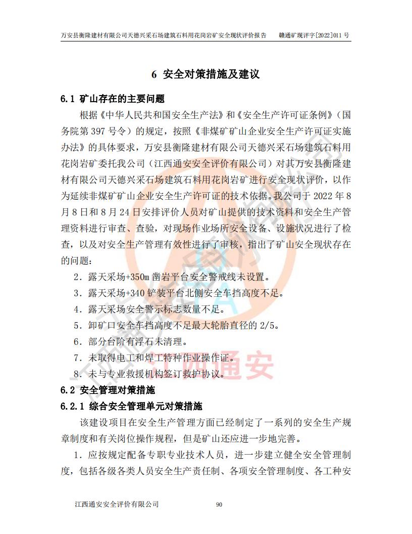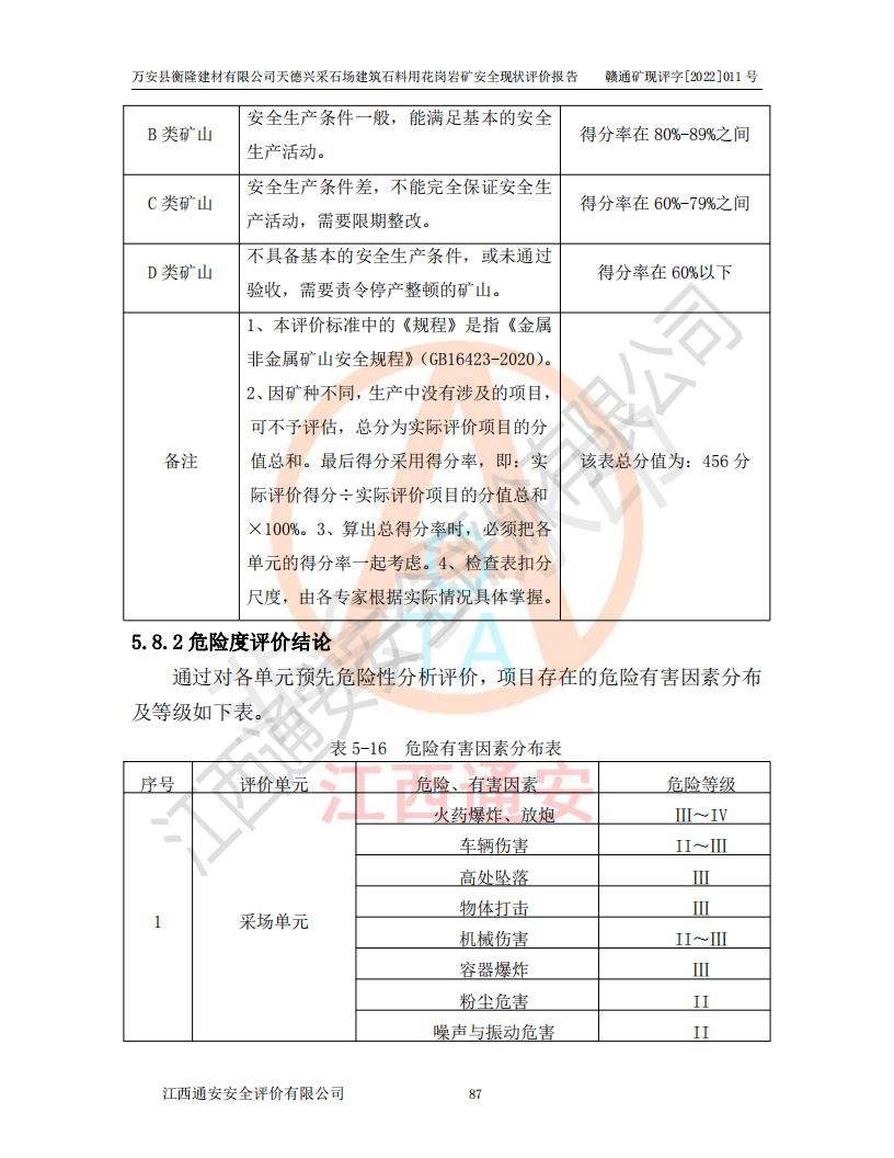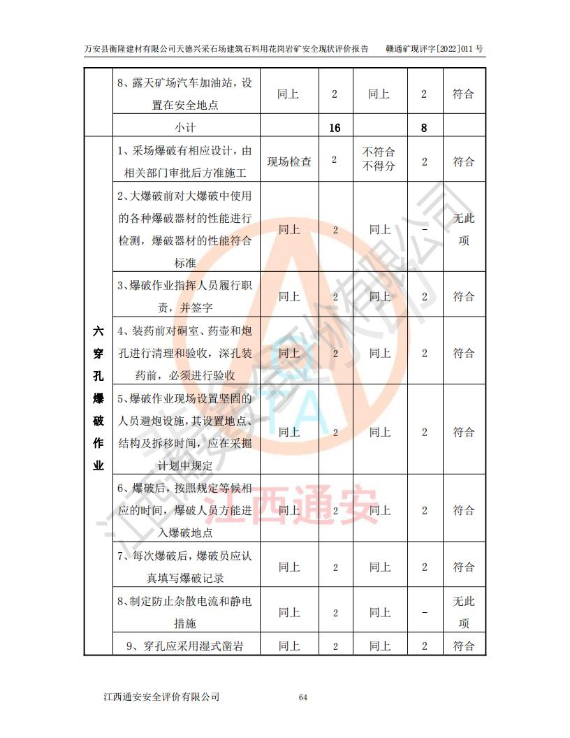 万安县衡隆建材有限公司天德兴采石场建筑石料用花岗岩矿安全现状评价报告