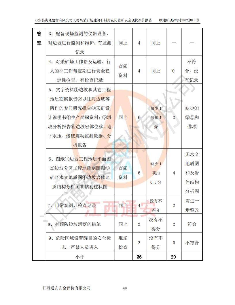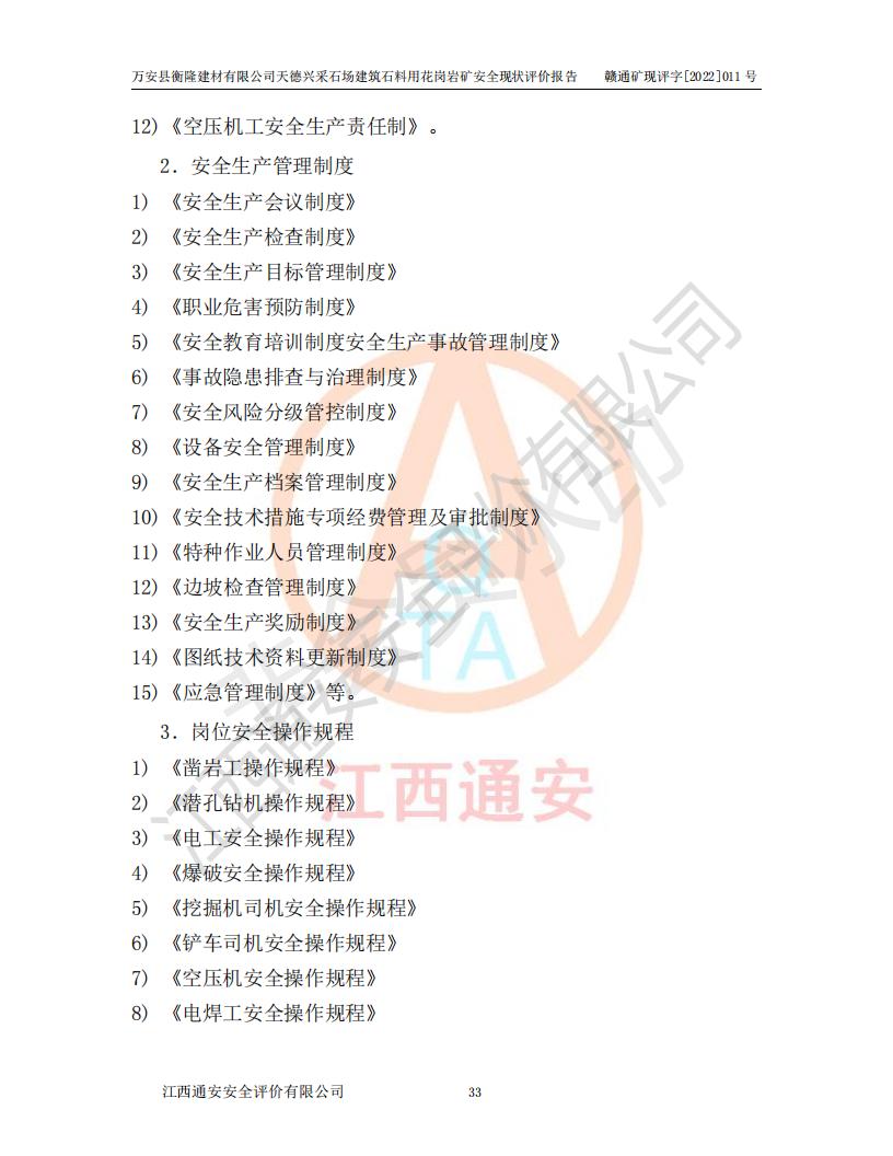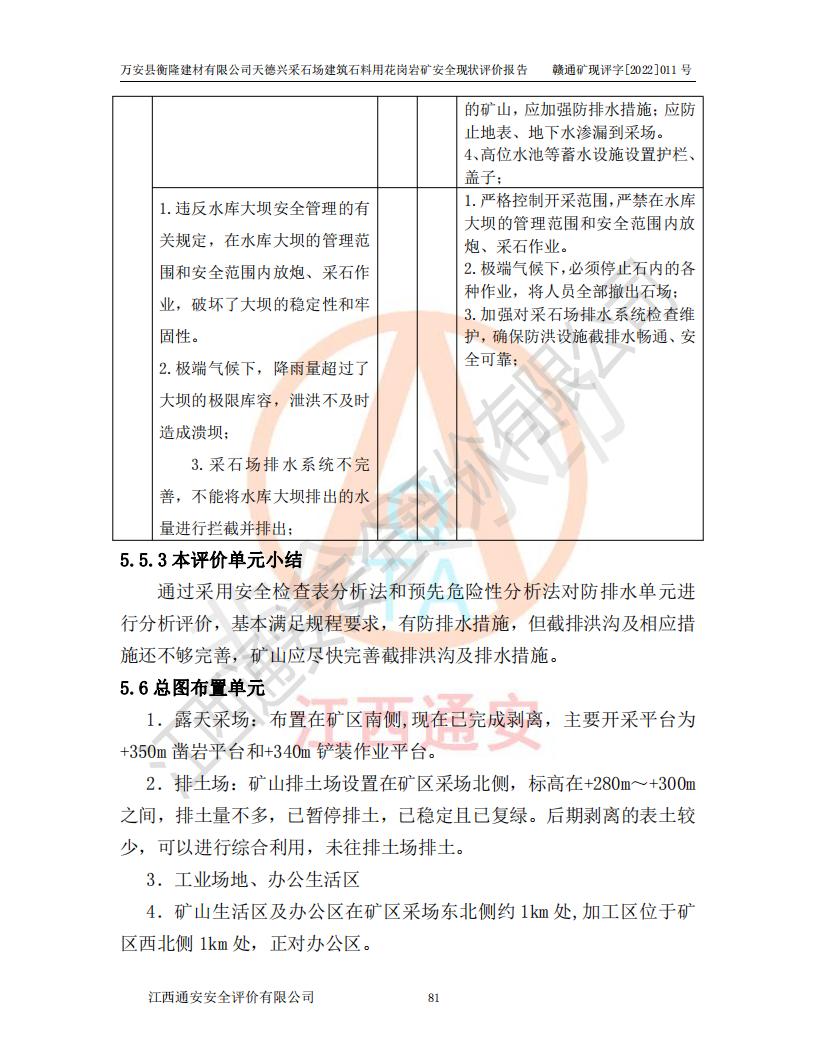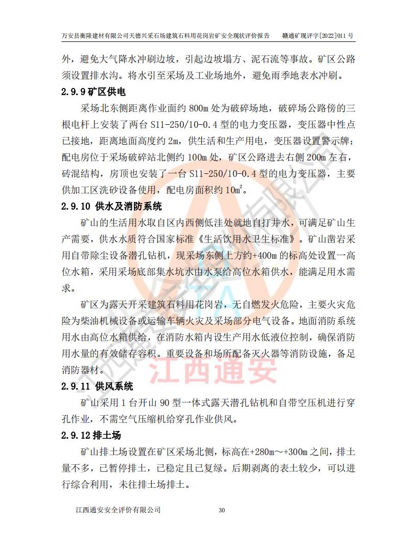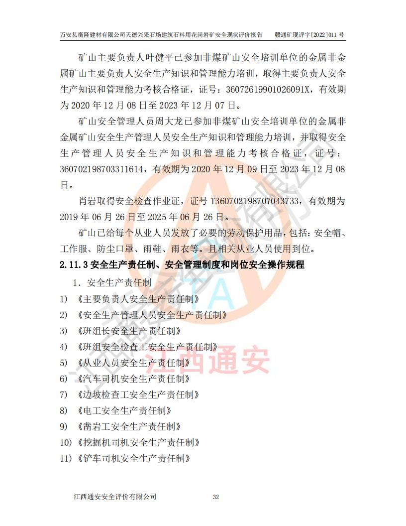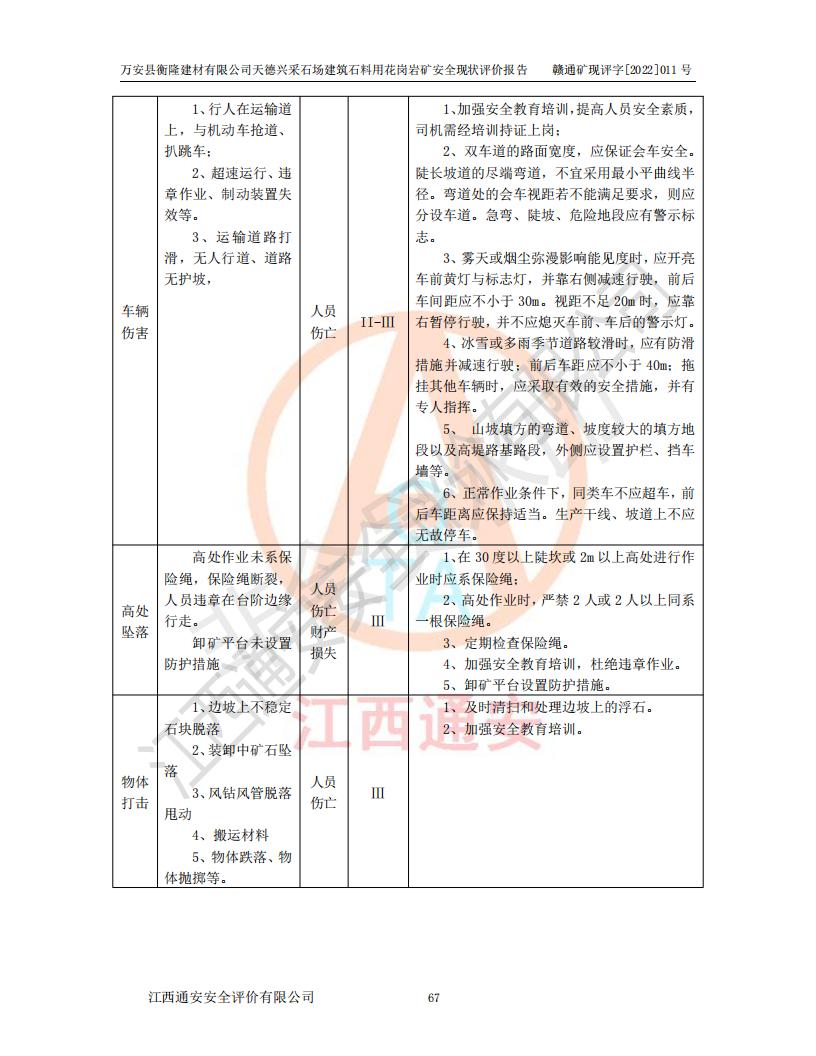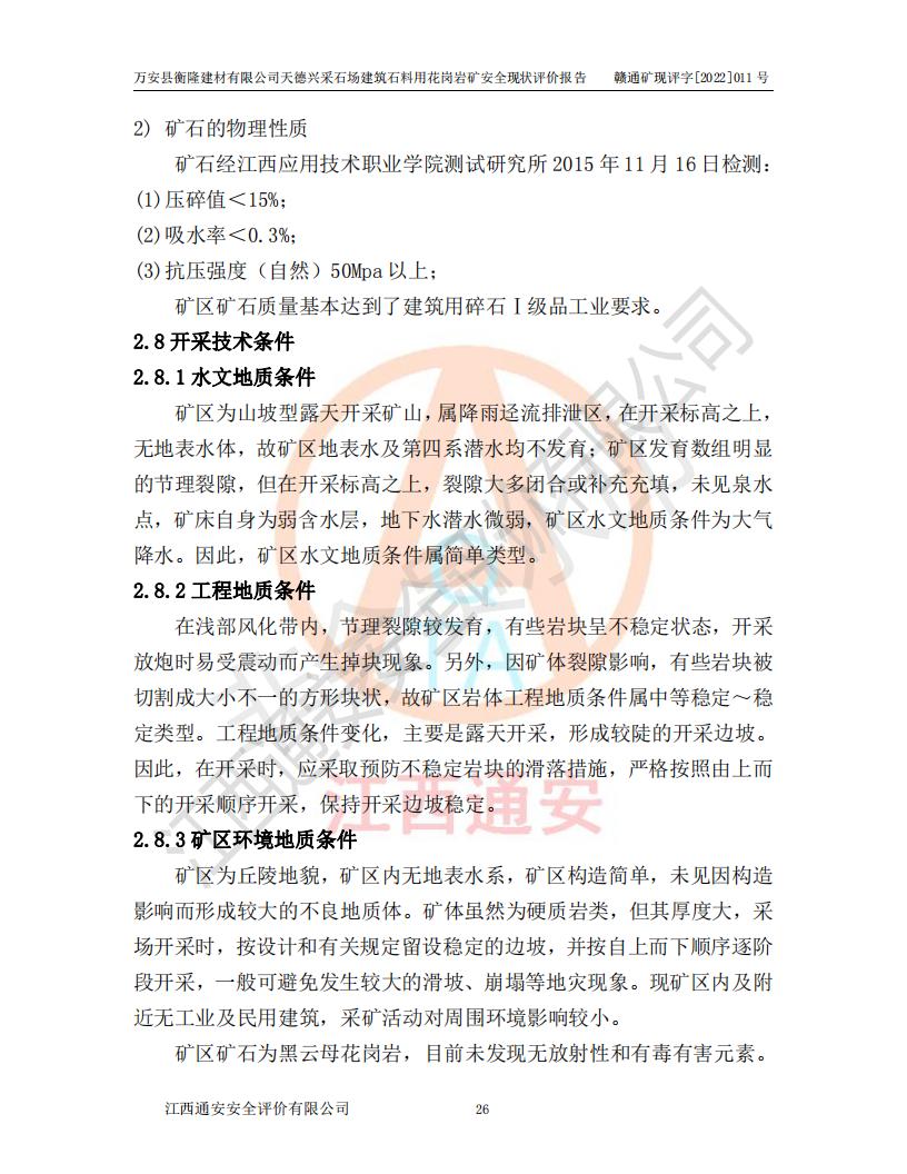 万安县衡隆建材有限公司天德兴采石场建筑石料用花岗岩矿安全现状评价报告