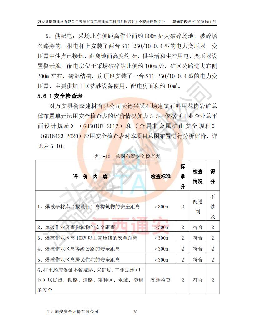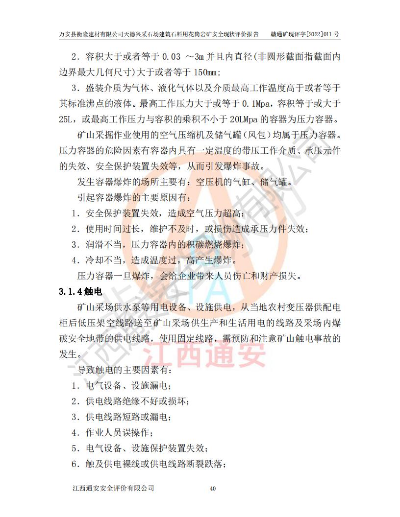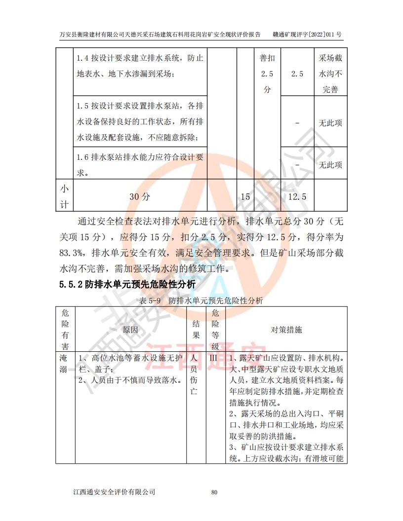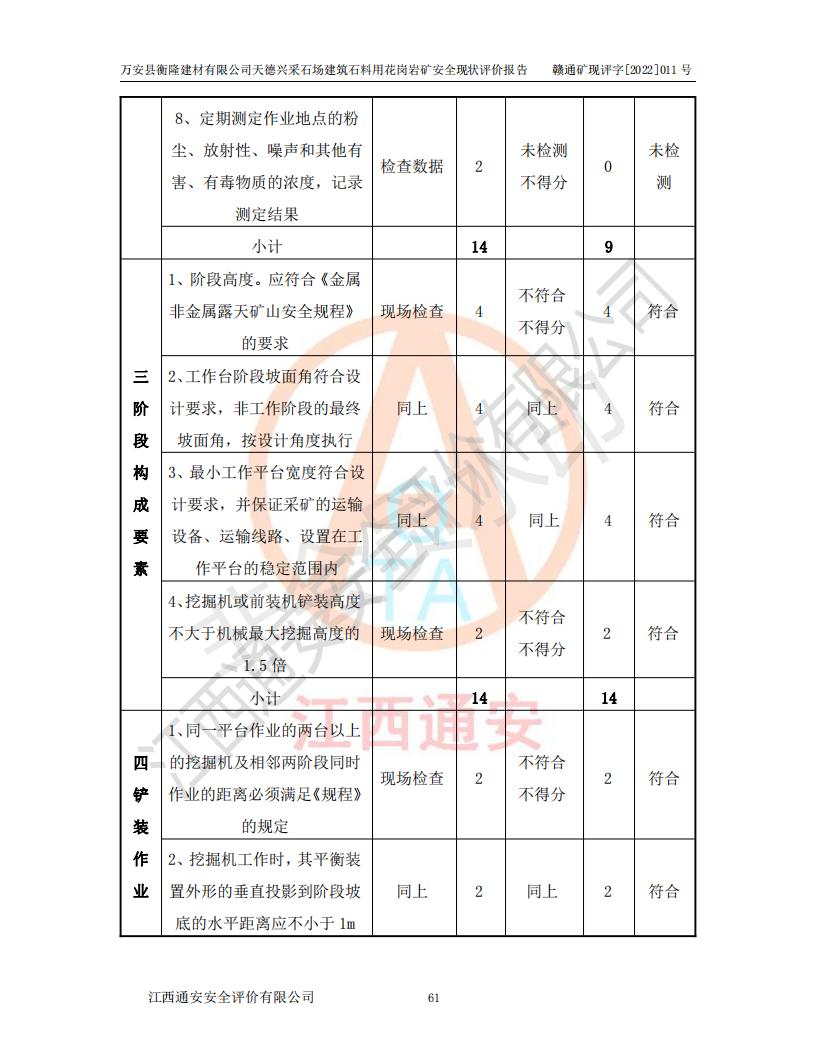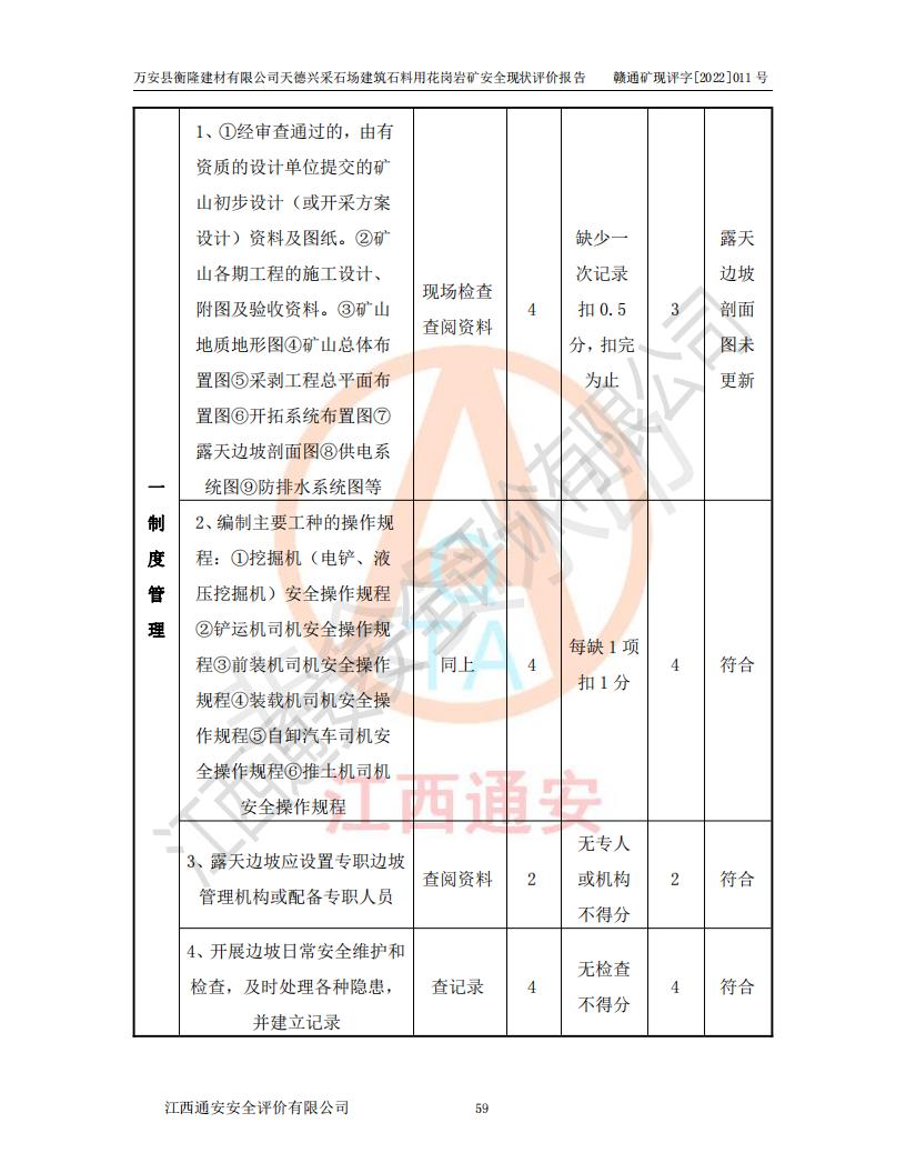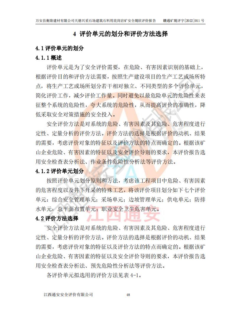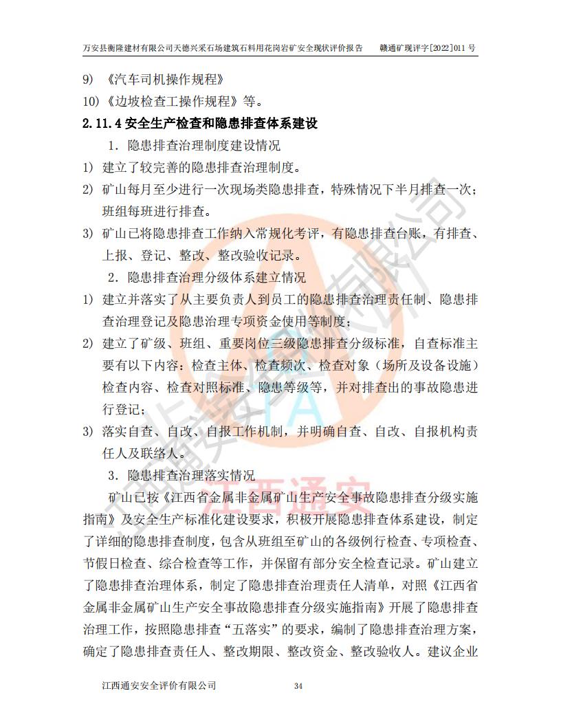 万安县衡隆建材有限公司天德兴采石场建筑石料用花岗岩矿安全现状评价报告