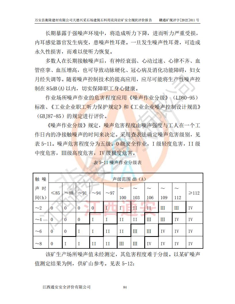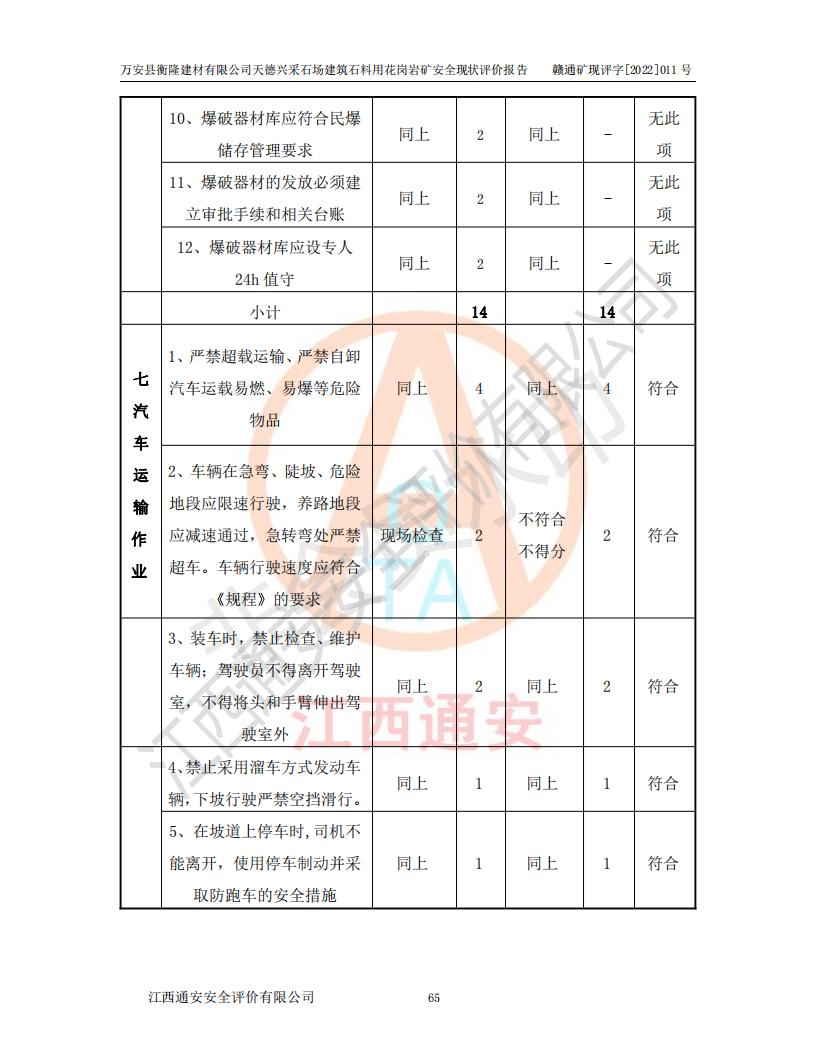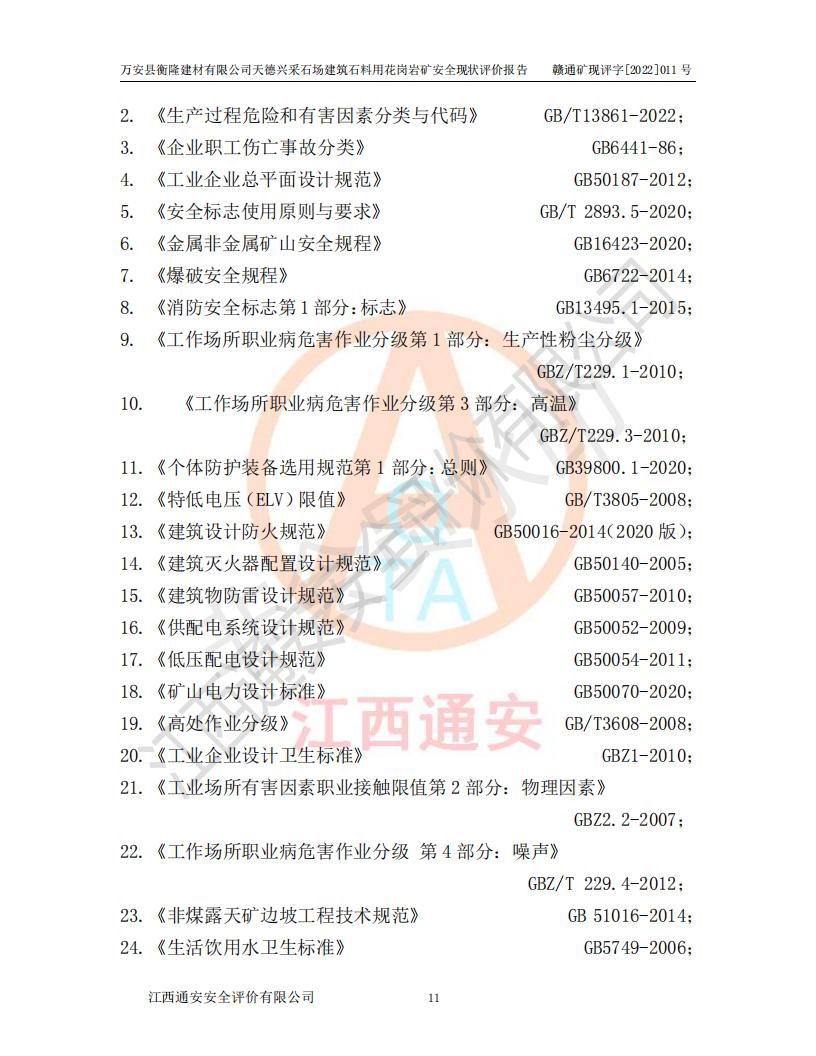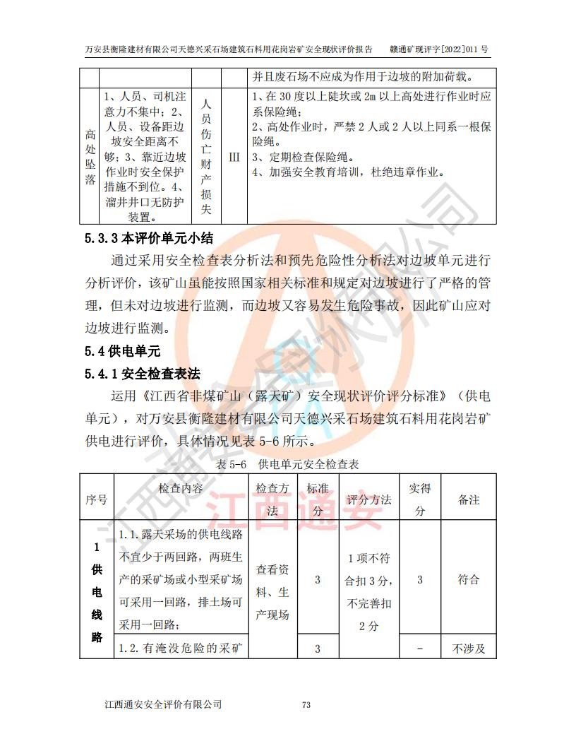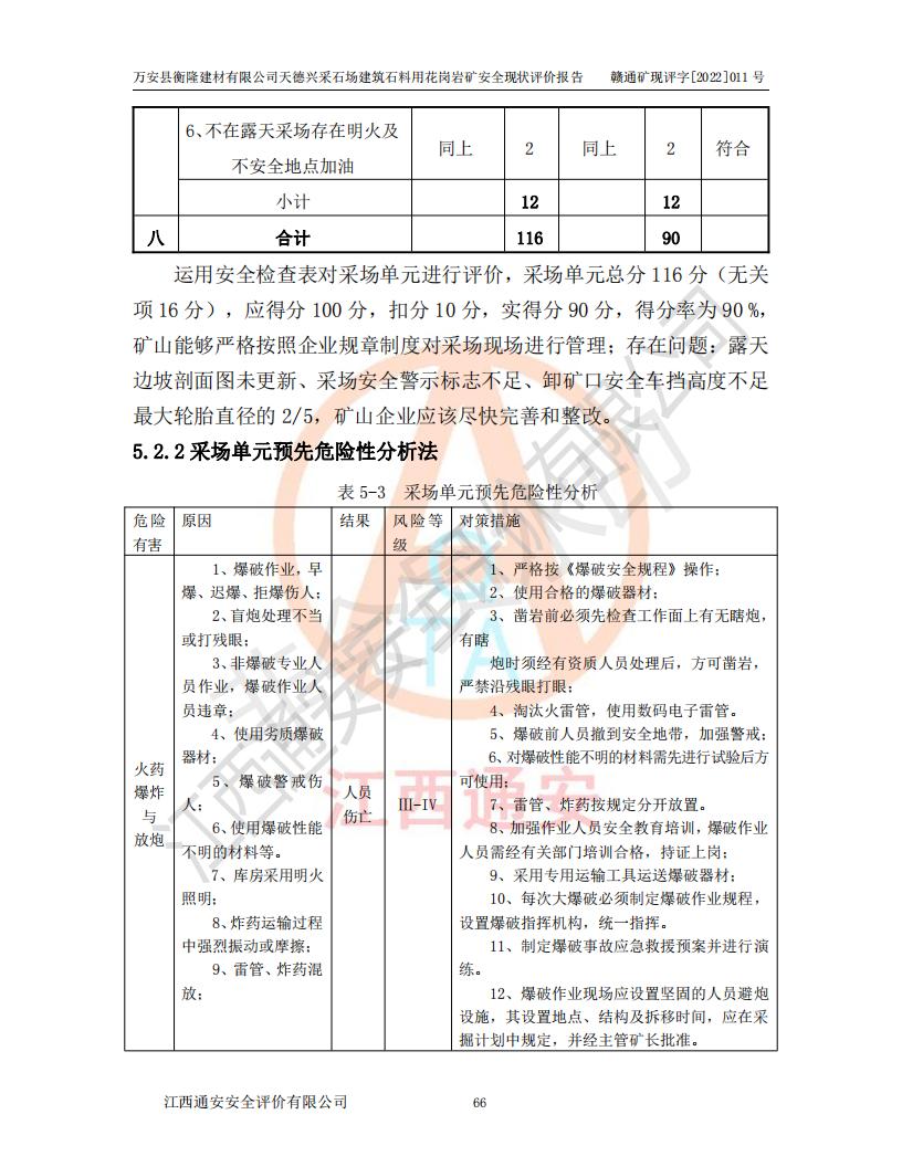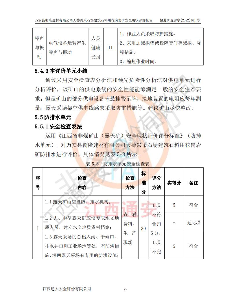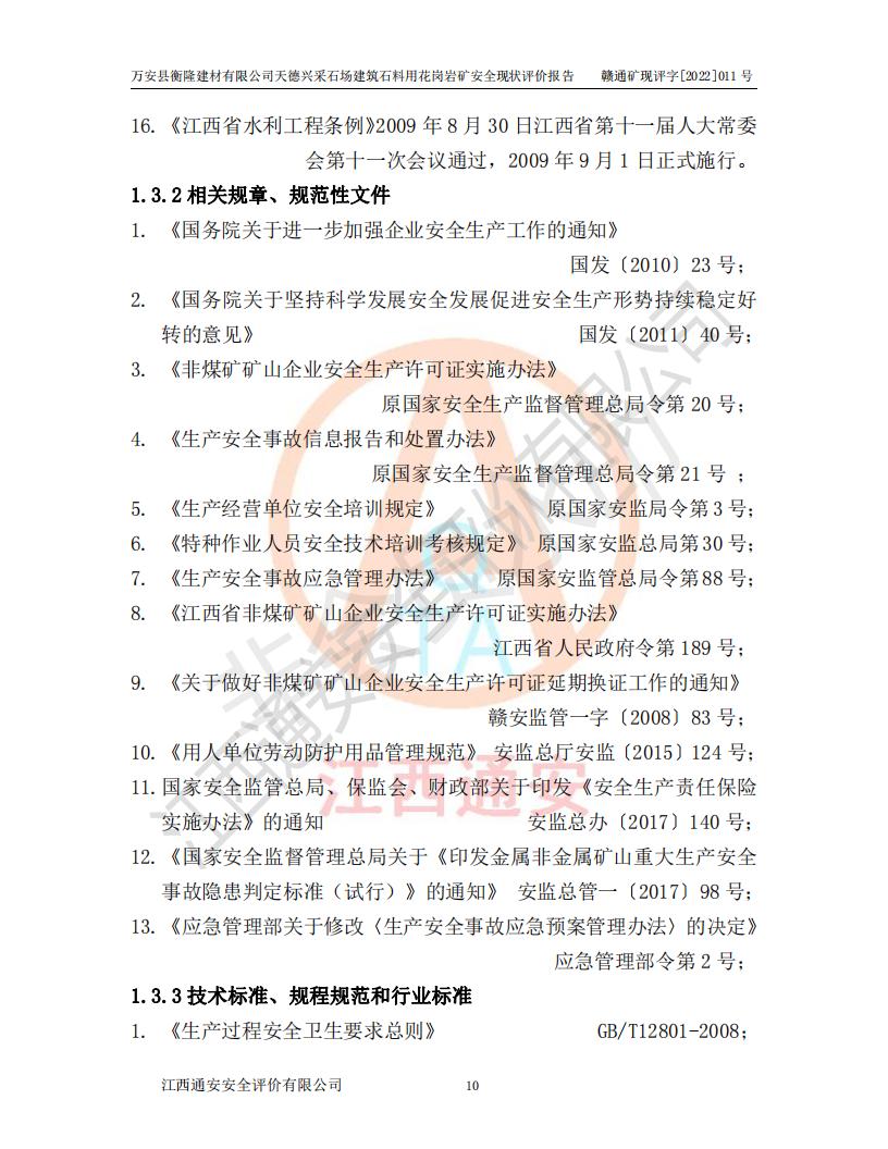 万安县衡隆建材有限公司天德兴采石场建筑石料用花岗岩矿安全现状评价报告