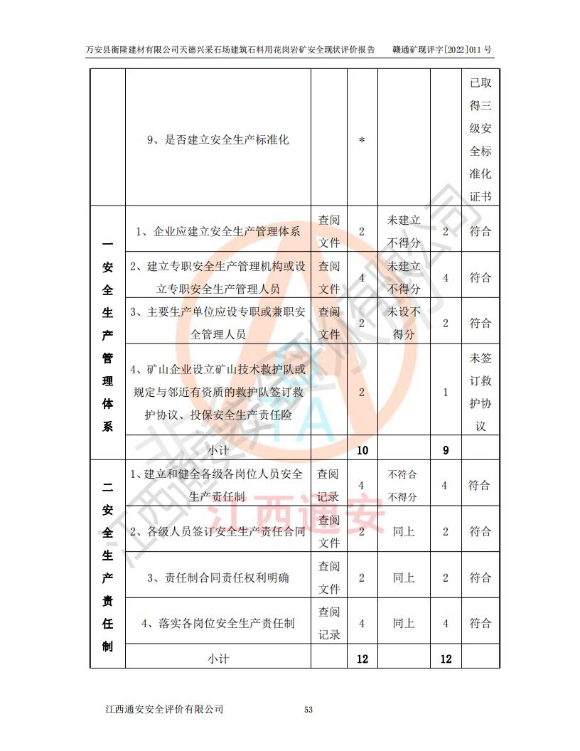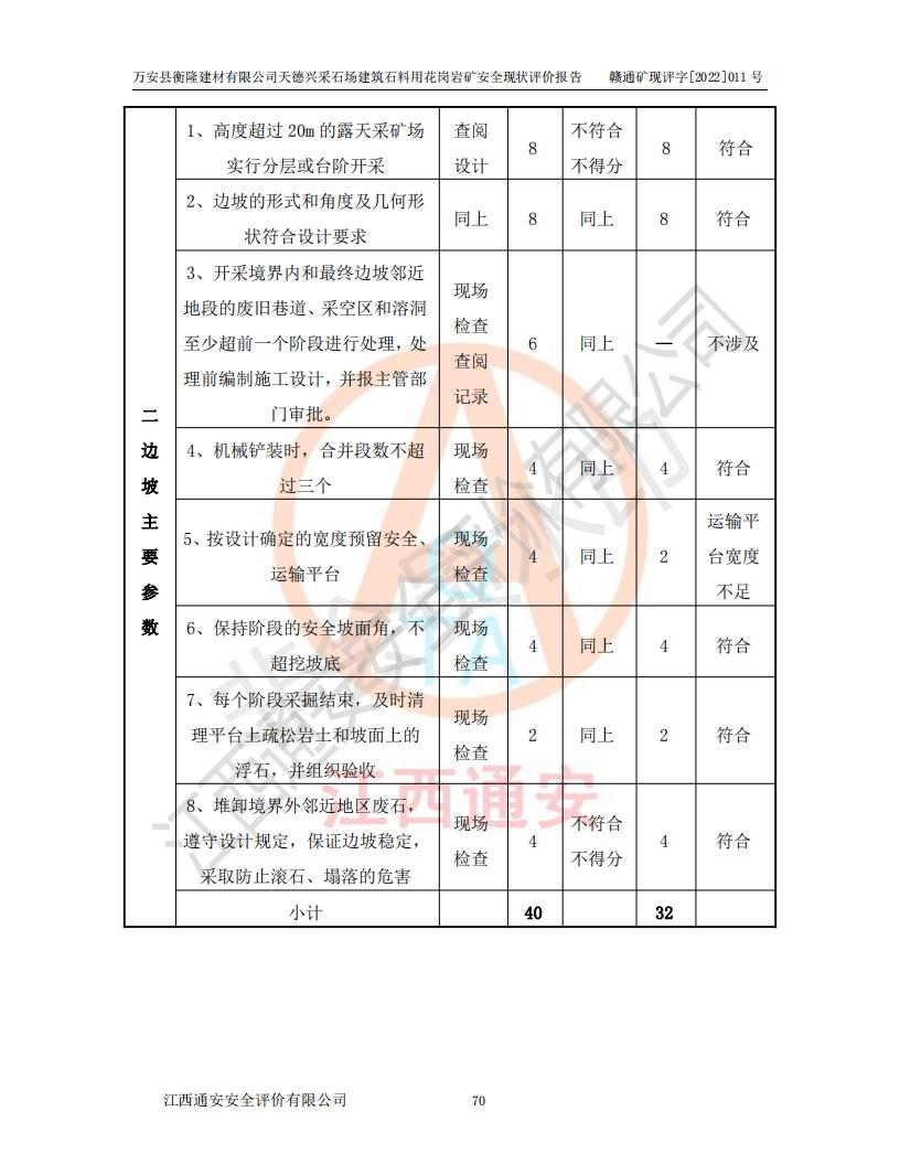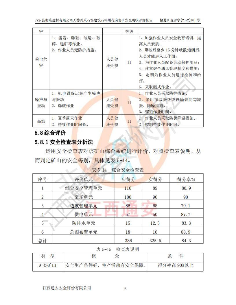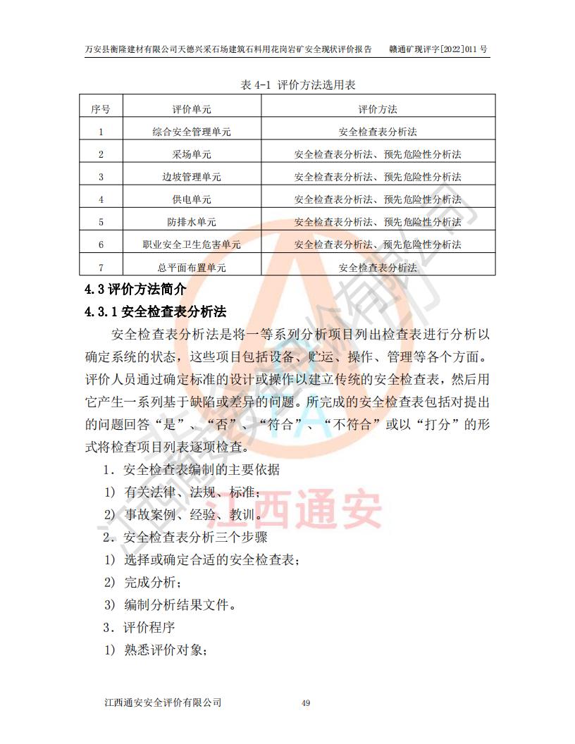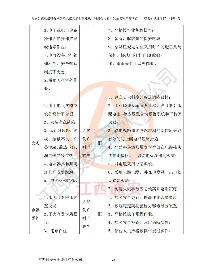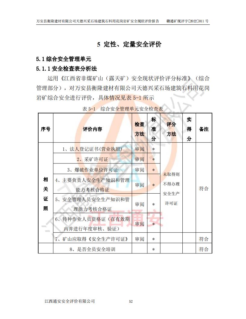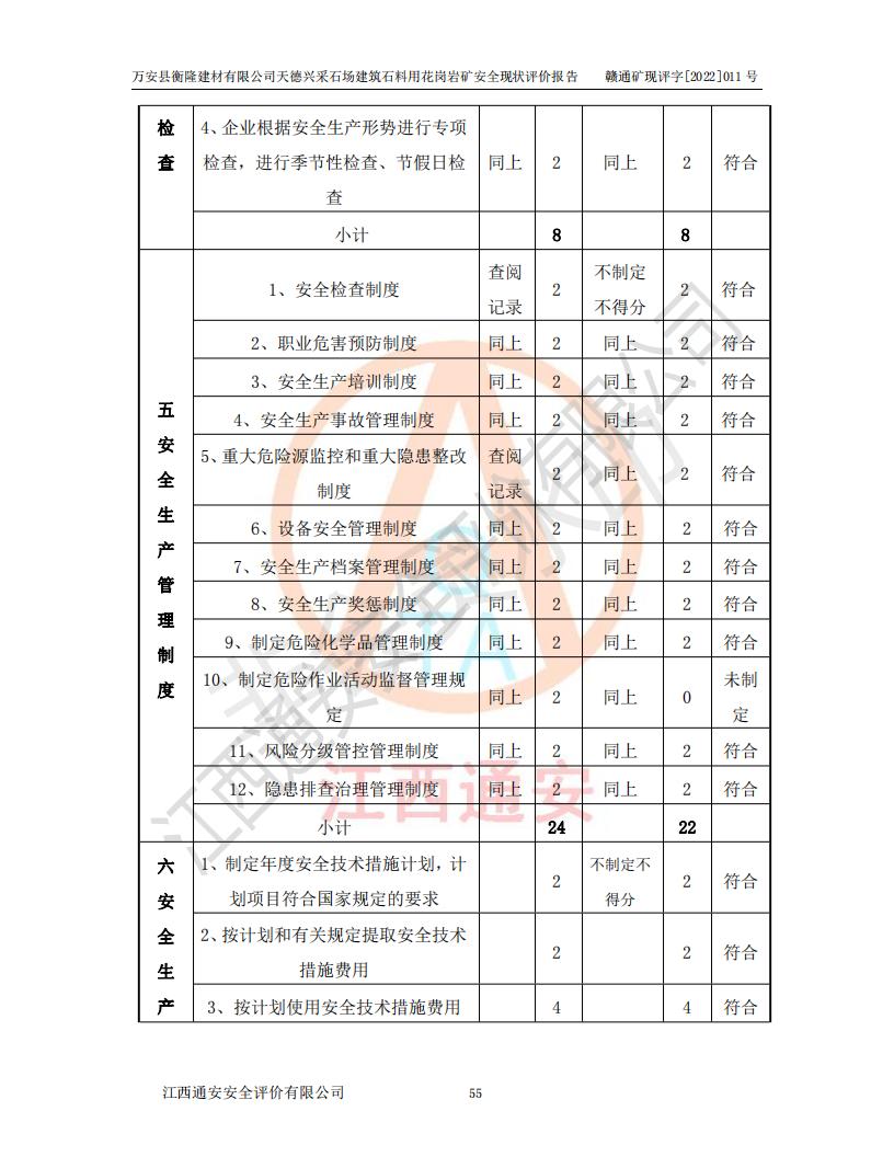万安县衡隆建材有限公司天德兴采石场建筑石料用花岗岩矿安全现状评价报告