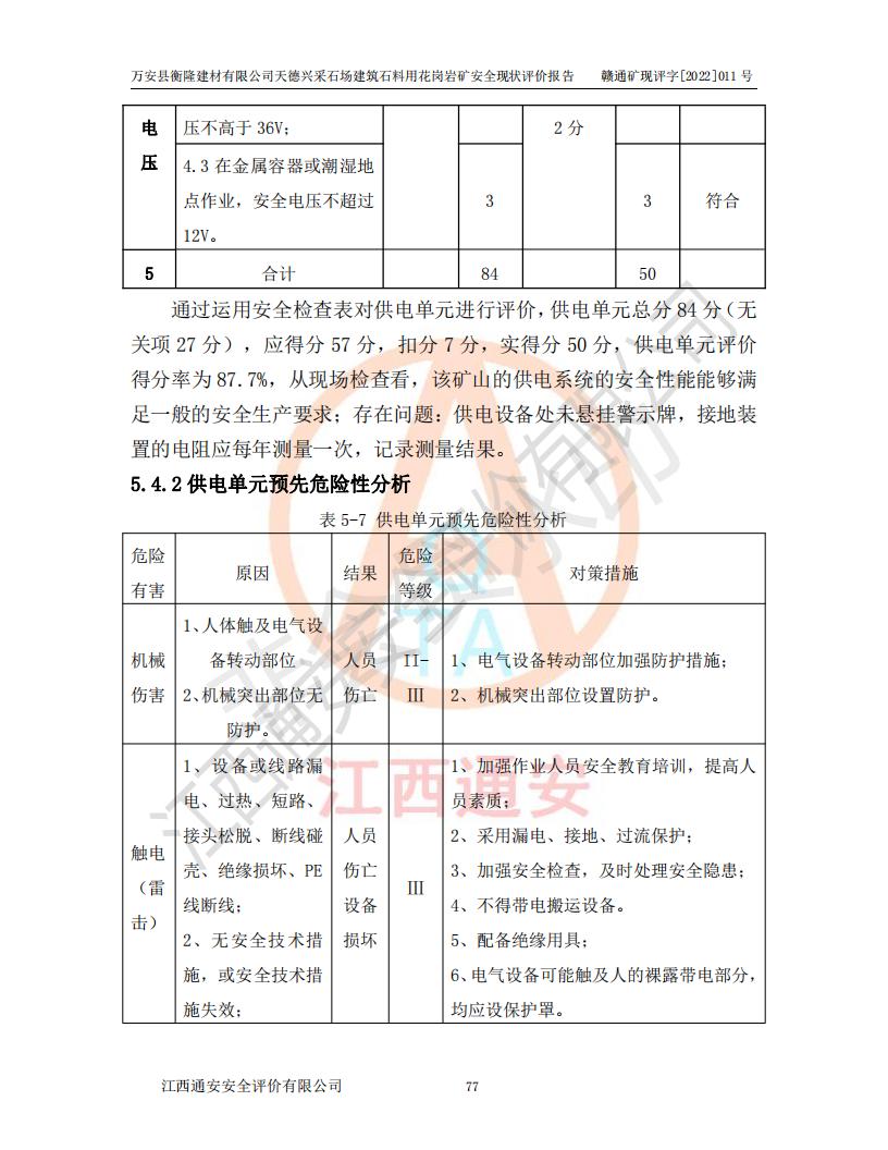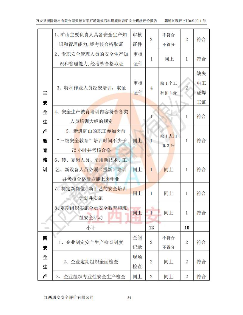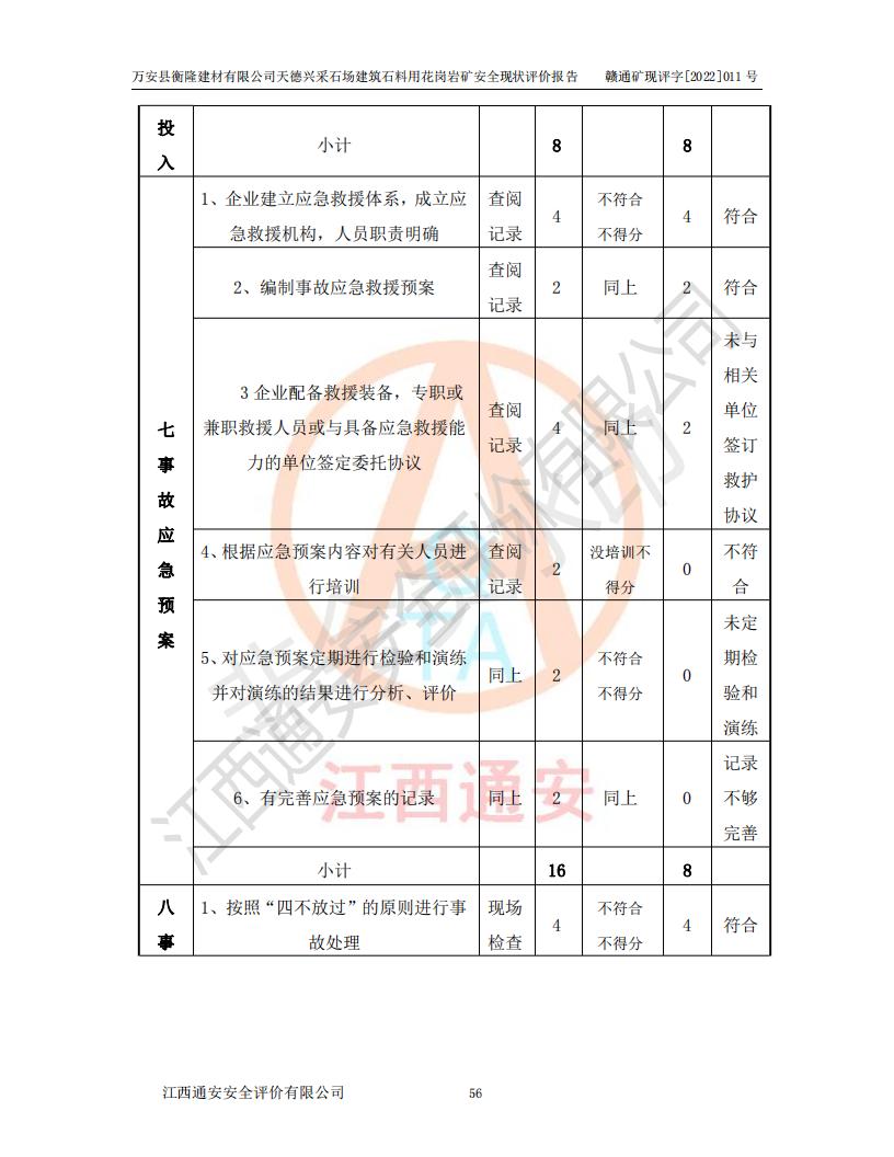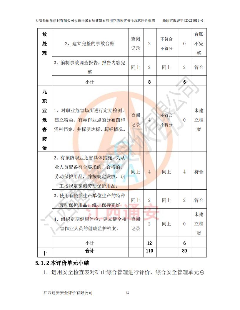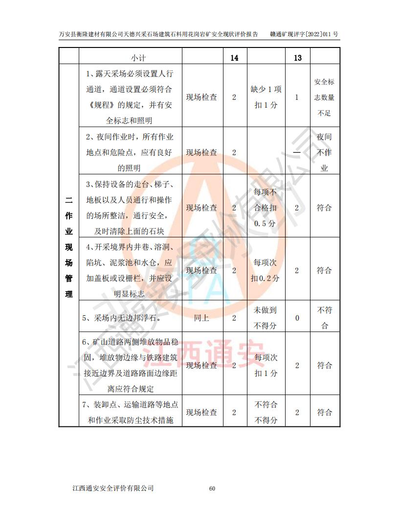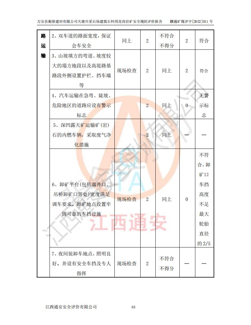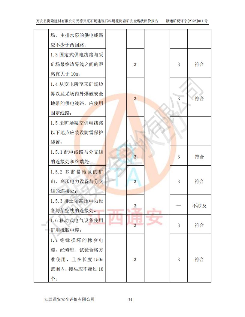 万安县衡隆建材有限公司天德兴采石场建筑石料用花岗岩矿安全现状评价报告