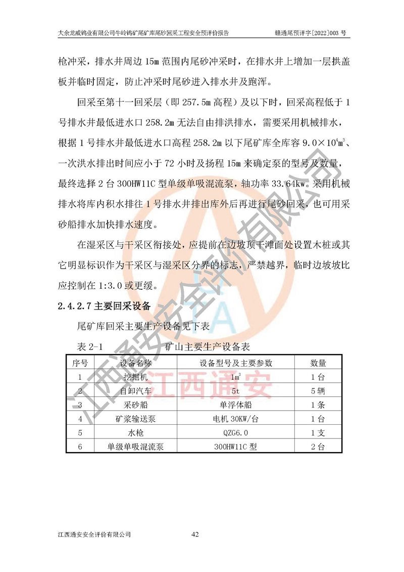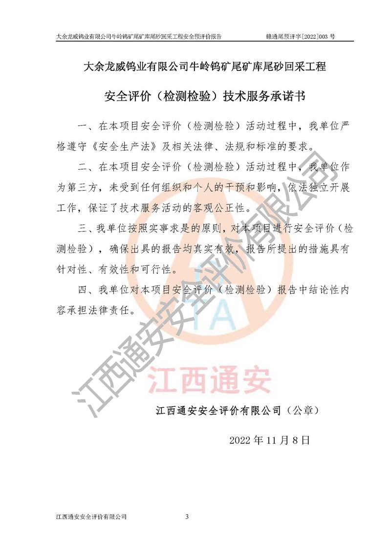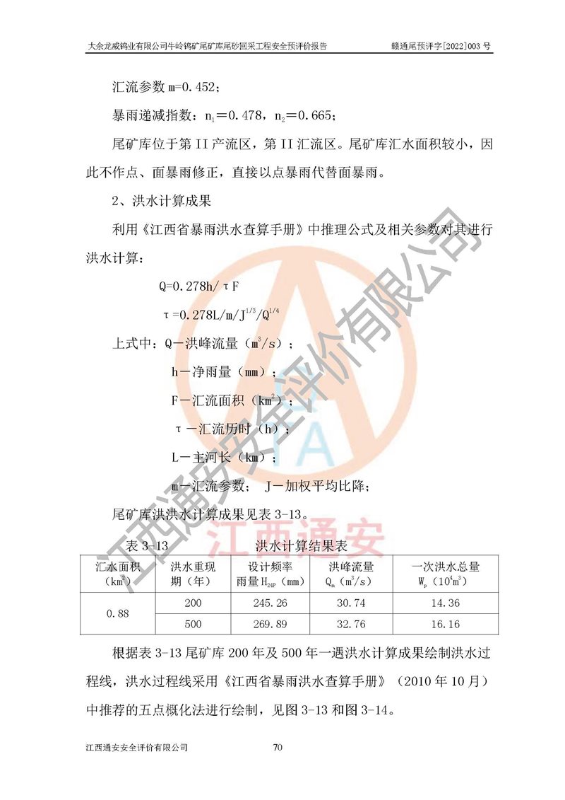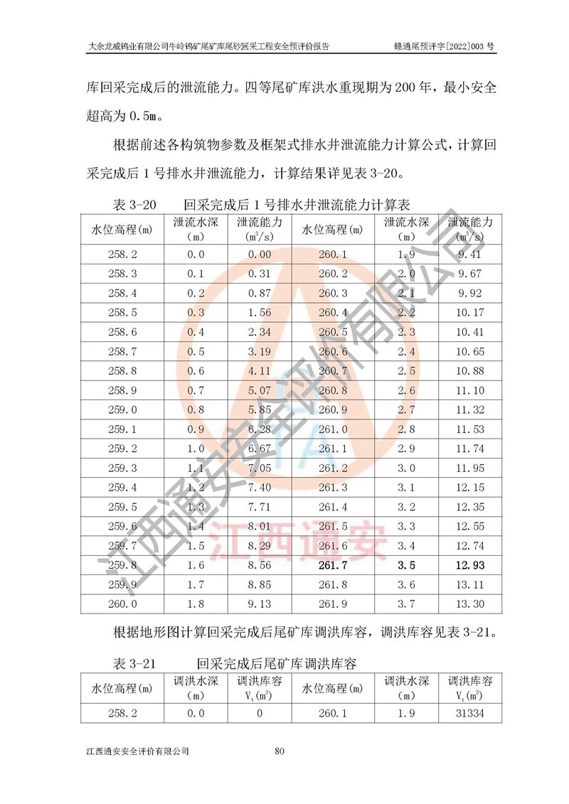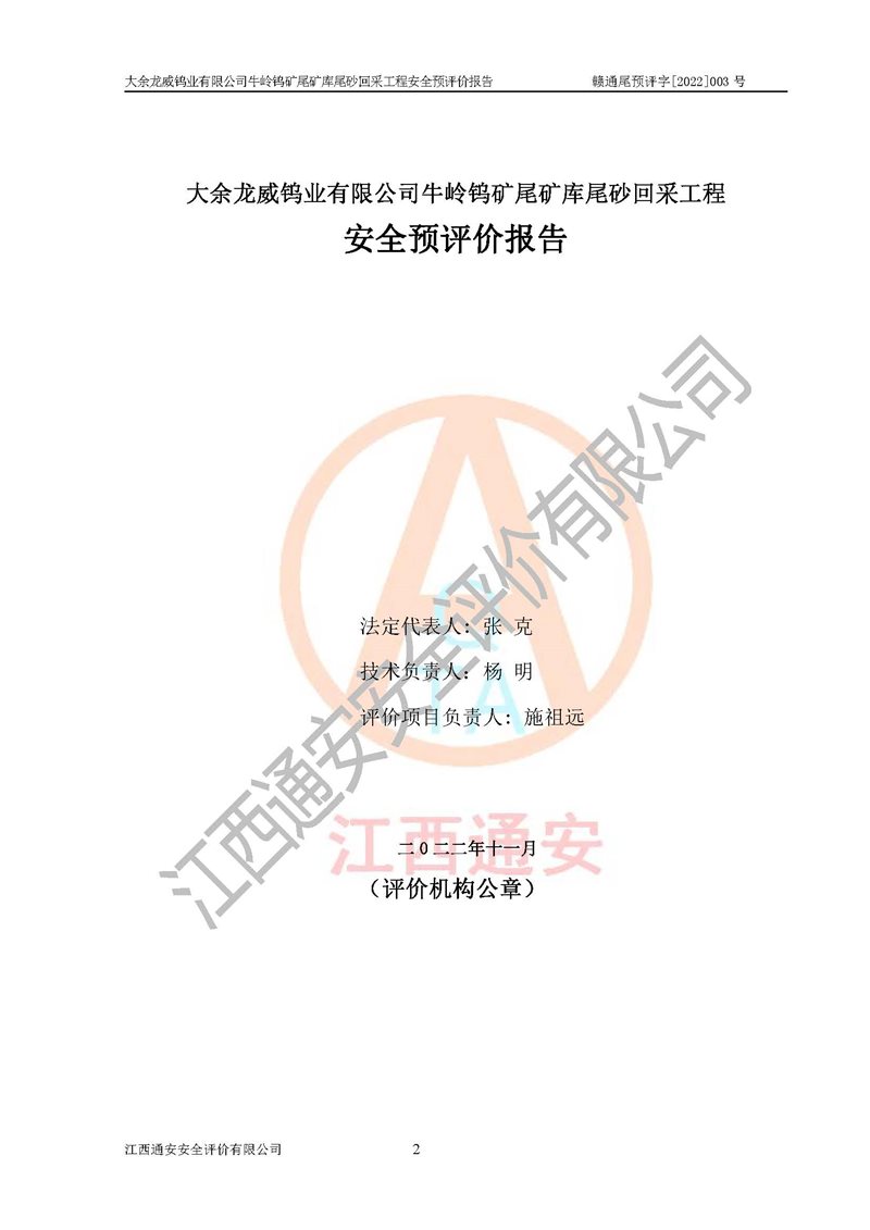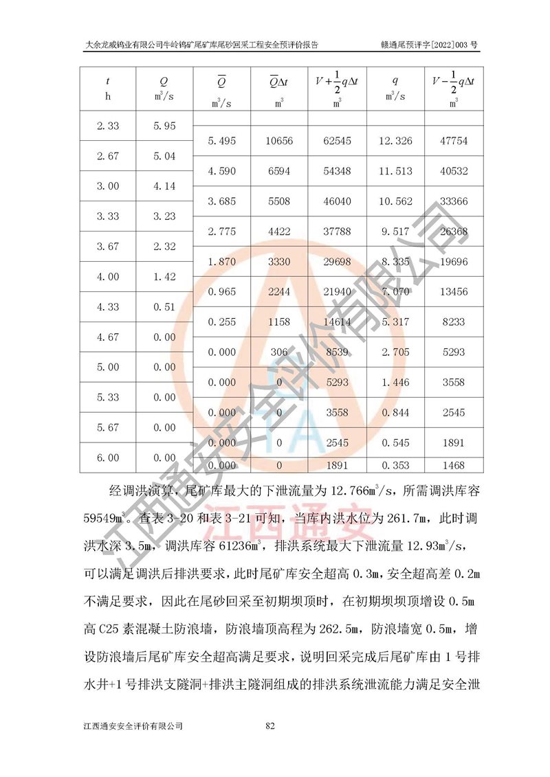 牛岭尾矿库于2006年1月由江西省冶金设计院设计,设计为初期透水堆石坝+上游式尾砂堆积坝,初期坝坝顶高程为262.0m,初期坝高20.5m,从262.0m至300.0m高程均采用尾砂堆坝,堆积坝高38m,总坝高为58.5m,总库容为200.08×104m3,尾矿库为四等库,考虑到下游已建有樟斗尾矿库,尾矿库提升一等至三等库,采用2座框架式排水井+排洪隧洞排洪排水;牛岭尾矿库2006年5月开工建设,共分为三个标段,2007年7月全面完工,2007年8月投入试运行,2008年6月,江西省赣华安全科技研究咨询中心有限公司出具了《大余龙威钨业有限公司牛岭钨锡矿尾矿库安全验收评价报告》;2008年9月进行竣工验收,2009年8月20日首次取得江西省安全生产监督管理局颁发的安全生产许可证,证书编号(赣)FM安许证字[2009]M1414号;为了完成“头顶库”治理,2017年7月,委托海湾工程有限公司完成了《增加排洪保障设计》,增设了3号框架式排水井+排洪隧洞,该项目2018年2月开工建设,2019年5月完工,2019年7月进行竣工验收,赣州永安安全生产科技服务有限公司出具了《大余龙威钨业有限公司牛岭钨矿尾矿库增加排洪保障设施工程安全设施竣工验收评价报告》;尾矿库安全生产许可证经多次延续,现安全生产许可证**期为2018年8月20日至2021年8月19日,尾矿库已于安全生产许可证到期时停止运行。 牛岭尾矿库现状坝顶高程为284.5m,还未达到原设计*终堆积高程300.0m,但初期坝下游2**为江西下垄钨业有限公司樟斗尾矿库,樟斗尾矿库下游为樟斗镇,两座尾矿库均为“头顶库”,为了降低尾矿库安全风险,减轻对下游樟斗尾矿库及樟斗镇居民的影响,大余龙威钨业有限公司决定采用“头顶库”五种综合治理措施(隐患治理、升级改造、闭库或销库、尾矿综合利用和下游居民搬迁)中的尾矿综合利用措施,对牛岭尾矿库库内尾砂**进行回采,回采尾砂作为建材外卖可取得**的经济效益,而且尾砂回采可降低坝高,提高尾矿库的安全稳定性。 2022年10月,大余龙威钨业有限公司委托四川百一勘察工程有限公司编制了《大余龙威钨业有限公司牛岭钨矿尾矿库(回采)工程地质勘察报告》,2022年10月,大余龙威钨业有限公司委托金建工程设计有限公司编制了《大余龙威钨业有限公司牛岭钨矿尾矿库尾砂回采工程可行性研究》,并委托我公司对该尾矿库尾砂回采工程项目进行安全预评价。 |