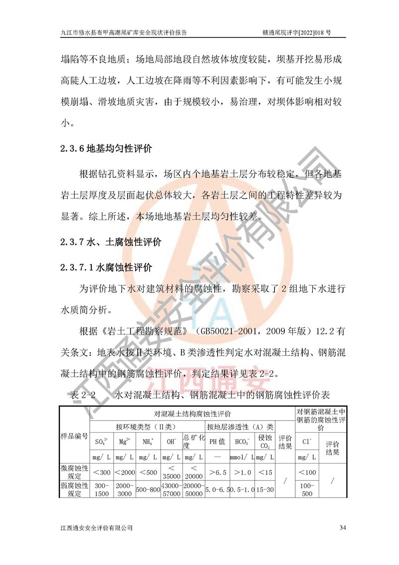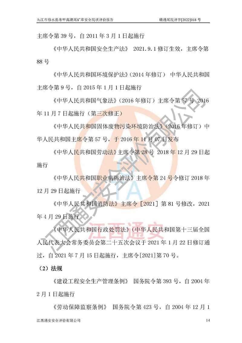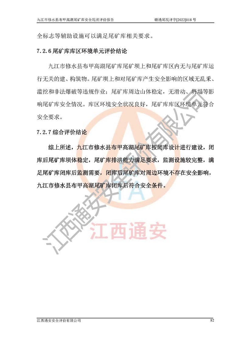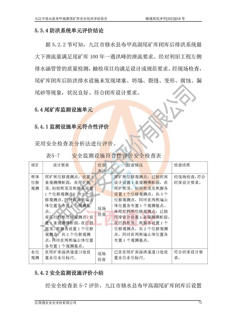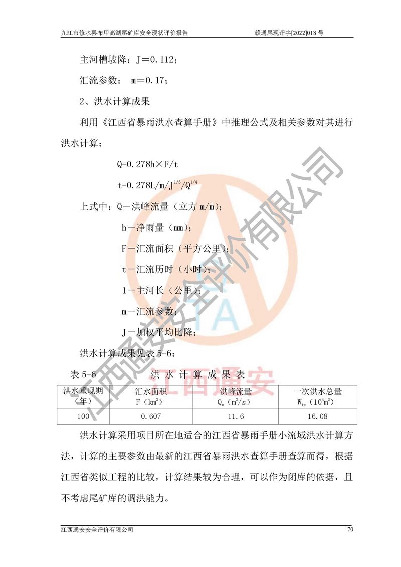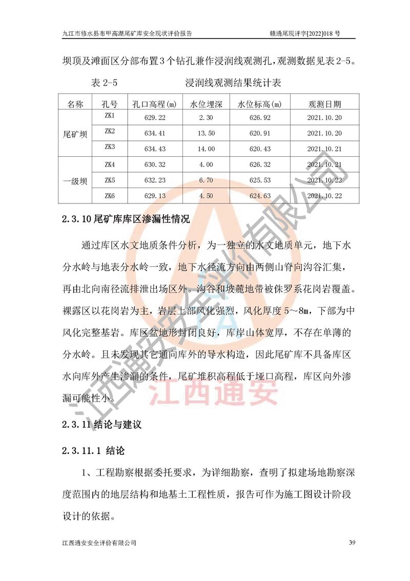九江市修水县布甲高湖尾矿库位于修水县布甲乡布甲村高湖片区,属修河支流,地理位置为东经114°24′27″,北纬29°18′23″,坝址以上控制流域面积0.607km2,整个流域范围内山清水秀,植被良好,人类活动影响小,水土流失影响不明显。 高湖尾矿库始建于上世纪80年代,后在90年代及2004年左右扩建。原为民采尾矿库,高湖选厂2004年扩大了尾矿库的范围,原尾矿库库区面积1.6×104m2,扩建后尾矿库库区面积4.3×104m2(未实施),未经过正规设计、施工,尾矿坝建设不规范,2008年已停用。 2016~2017年虽然应急抢险防汛整治,增设了溢洪道,但建设的各项工作均极为不规范,未能验收。因此尾矿库排洪、坝体安全观测等设施均不健全,存在**的安全风险。 九江市修水县布甲高湖尾矿库从2008年停用至今,已15年。尾矿库不再使用,为尾矿库周边安全与环境的长治久安,根据相关规定尾矿库进行了闭库。 修水县布甲高湖尾矿库无管理单位,按“属地管理”职责原则,修水县布甲乡人民**负责高湖尾矿库闭库后的管理工作。 2021年10月福建省龙岩工程勘察院提交了《九江市修水县布甲高湖尾矿库项目工程(水文)地质勘察报告》,2022年3月金建工程设计有限公司提交了《九江市修水县布甲高湖尾矿库闭库工程初步设计》。 该尾矿库闭库工程由浙江安禹建筑有限公司进行(水利水电施工总承包贰级资质)施工,江西同济建设项目管理股份有限公司进行监理(工程监理综合资质),该闭库工程于2022年4月28日开工,2022年6月10日竣工。 |