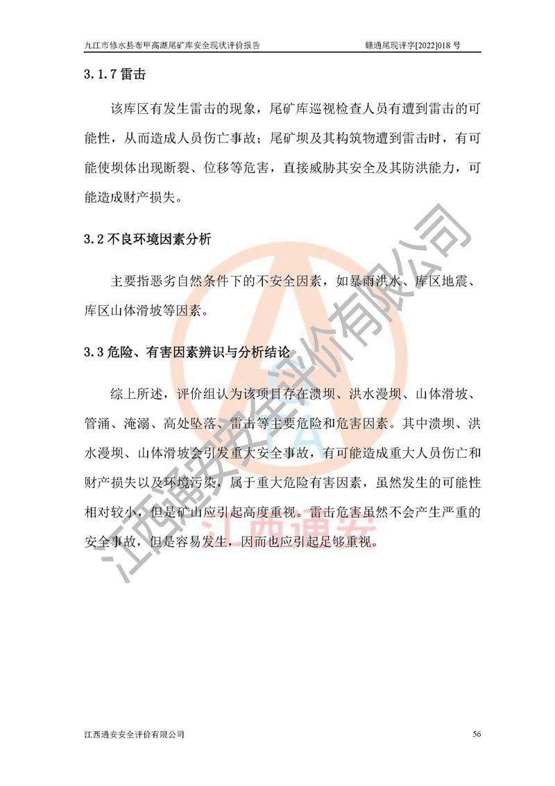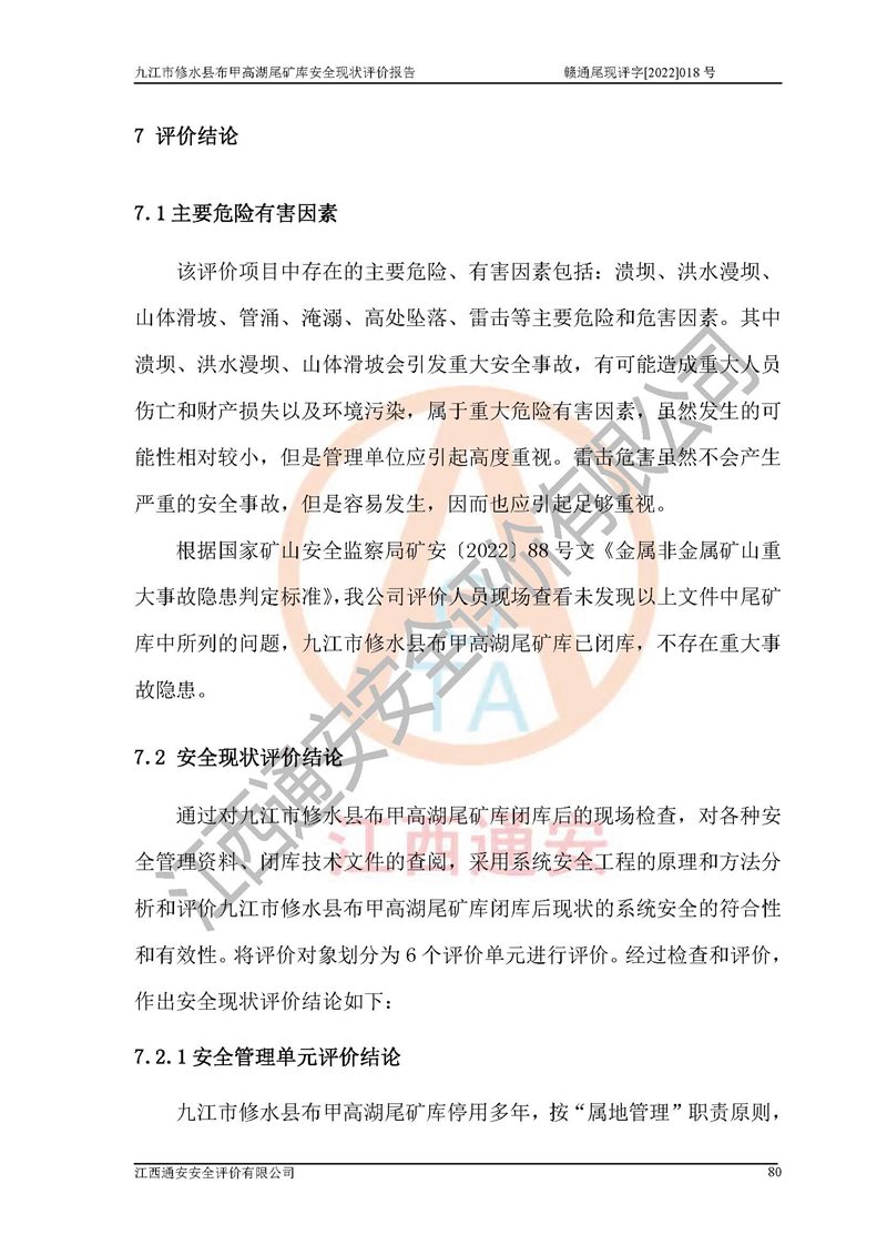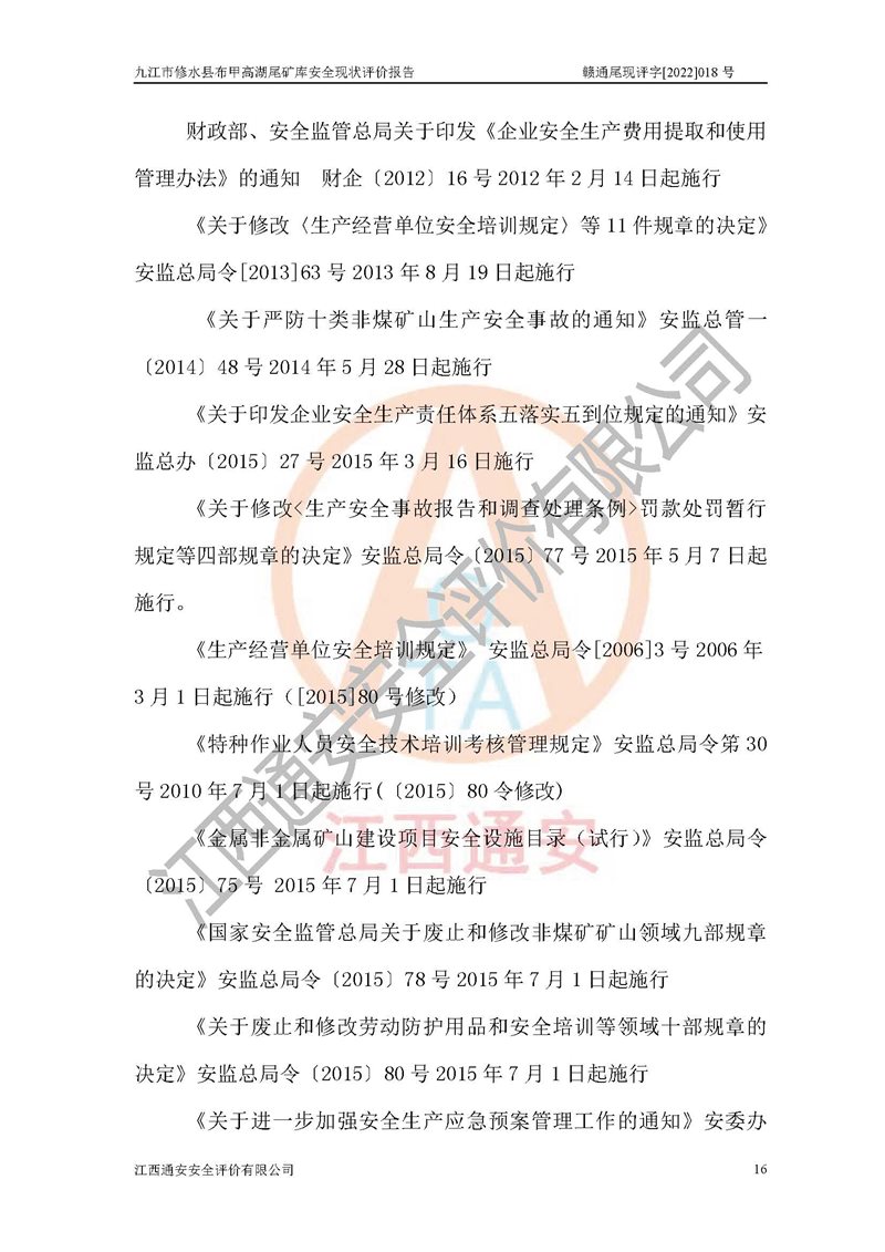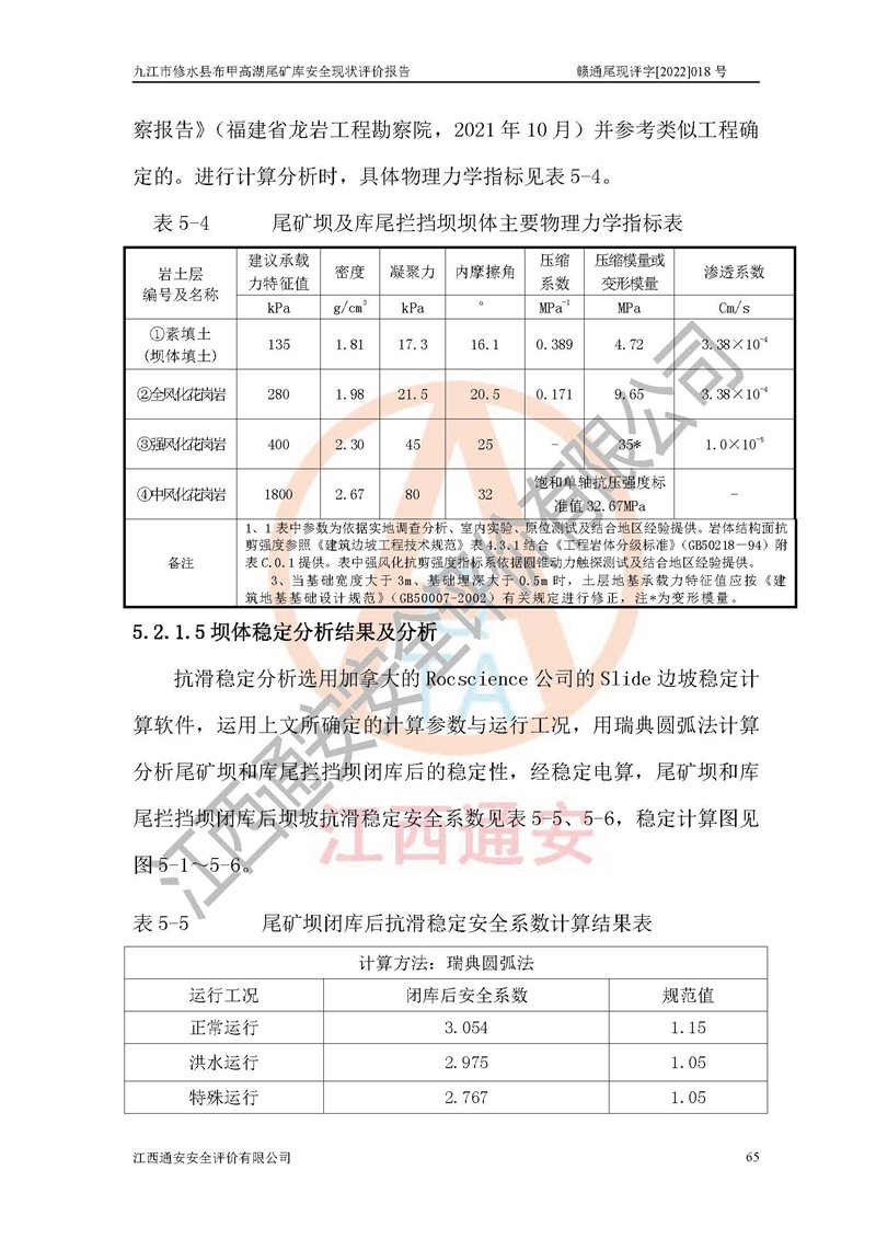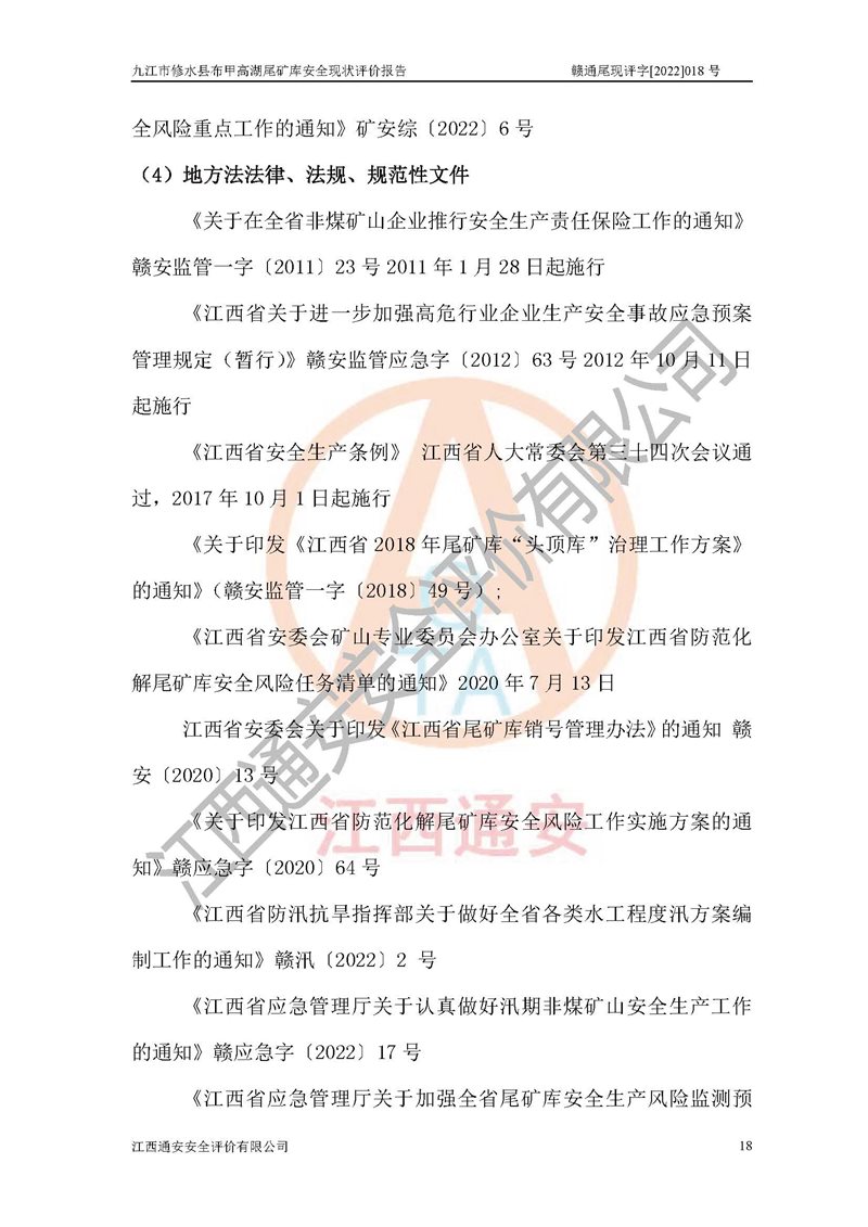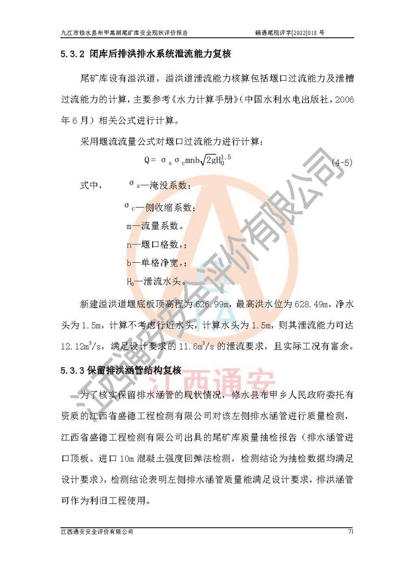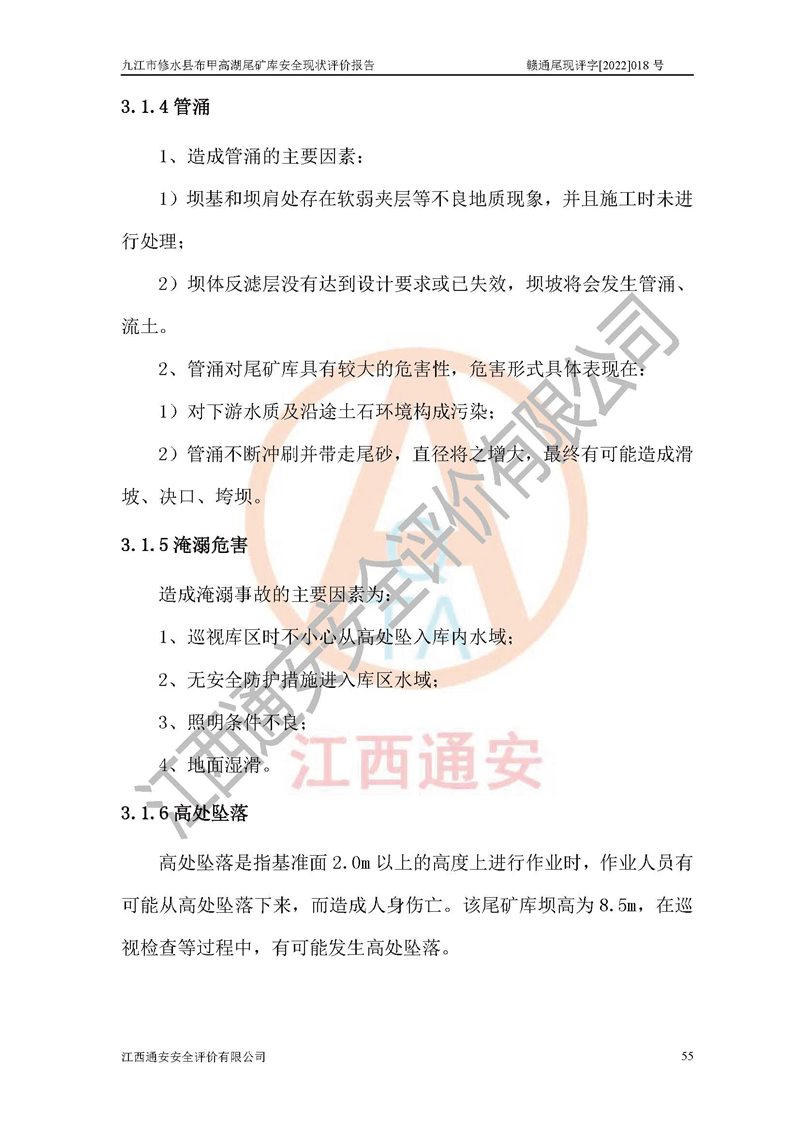 九江市修水县布甲高湖尾矿库位于修水县布甲乡布甲村高湖片区,属修河支流,地理位置为东经114°24′27″,北纬29°18′23″,坝址以上控制流域面积0.607km2,整个流域范围内山清水秀,植被良好,人类活动影响小,水土流失影响不明显。 高湖尾矿库始建于上世纪80年代,后在90年代及2004年左右扩建。原为民采尾矿库,高湖选厂2004年扩大了尾矿库的范围,原尾矿库库区面积1.6×104m2,扩建后尾矿库库区面积4.3×104m2(未实施),未经过正规设计、施工,尾矿坝建设不规范,2008年已停用。 2016~2017年虽然应急抢险防汛整治,增设了溢洪道,但建设的各项工作均极为不规范,未能验收。因此尾矿库排洪、坝体安全观测等设施均不健全,存在**的安全风险。 九江市修水县布甲高湖尾矿库从2008年停用至今,已15年。尾矿库不再使用,为尾矿库周边安全与环境的长治久安,根据相关规定尾矿库进行了闭库。 修水县布甲高湖尾矿库无管理单位,按“属地管理”职责原则,修水县布甲乡人民**负责高湖尾矿库闭库后的管理工作。 2021年10月福建省龙岩工程勘察院提交了《九江市修水县布甲高湖尾矿库项目工程(水文)地质勘察报告》,2022年3月金建工程设计有限公司提交了《九江市修水县布甲高湖尾矿库闭库工程初步设计》。 该尾矿库闭库工程由浙江安禹建筑有限公司进行(水利水电施工总承包贰级资质)施工,江西同济建设项目管理股份有限公司进行监理(工程监理综合资质),该闭库工程于2022年4月28日开工,2022年6月10日竣工。 |
