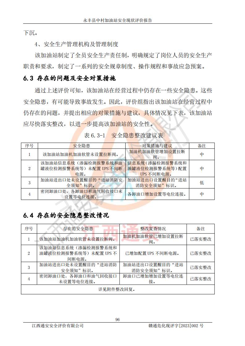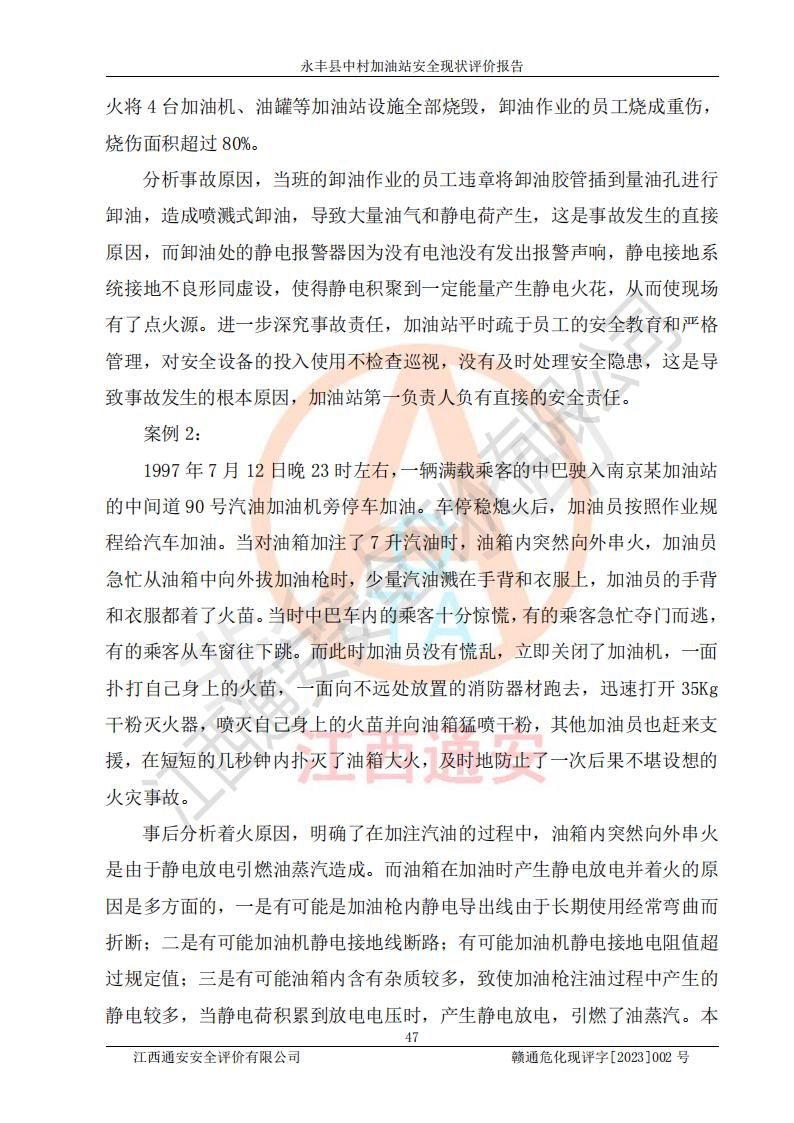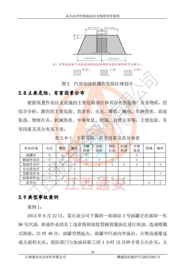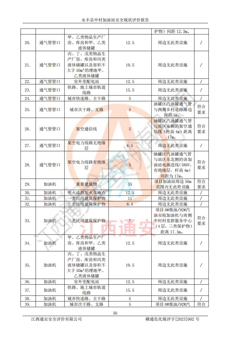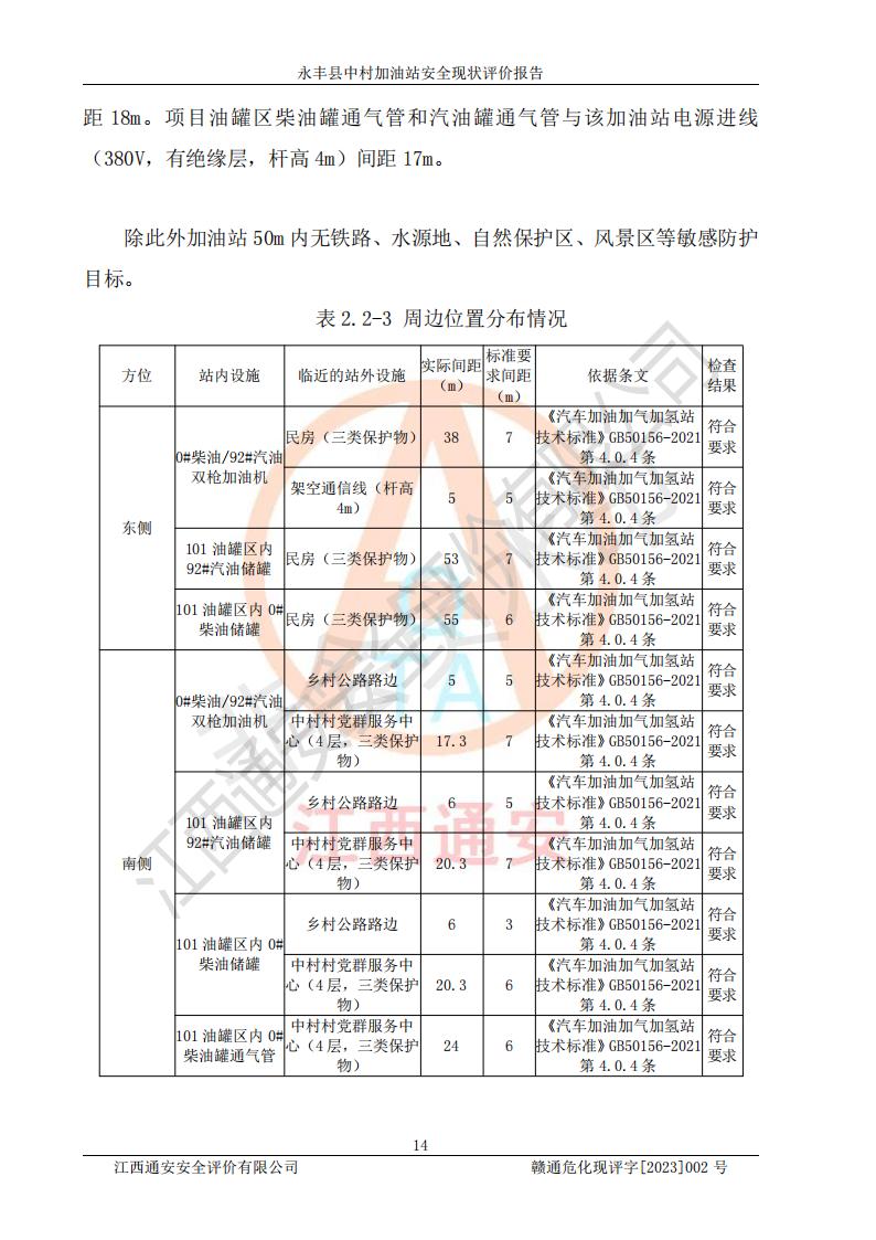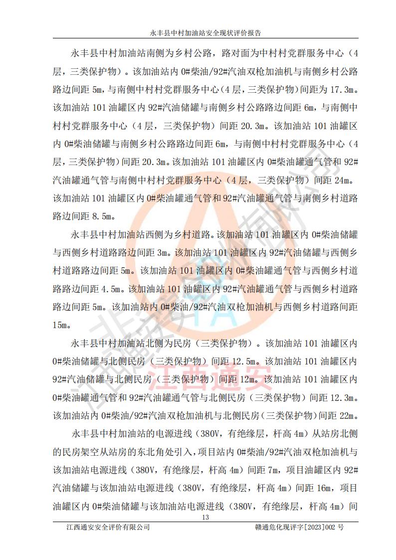 永丰县中村加油站是一家从事成品油零售经营的企业。该加油站于2018年8月14日经永丰县市场监督管理局核准注册成立,营业场所位于江西省吉安市永丰县中村乡中村街。该加油站属于个人独资企业,负责人为巫峰,营业执照统一社会信用代码为:91360825MA3830EG65。营业执照核准经营范围:成品油零售(依法须经批准的项目,经相关部门批准后方可开展经营活动)。 永丰县中村加油站占地面积约300㎡,加油站油罐区中设有1台0#柴油/92#汽油双枪加油机,1台SF双层10m³埋地卧式0#柴油罐,1台SF双层10m³埋地卧式92#汽油储罐,油品至大储存能力为15m³(柴油罐容积折半计入油罐总容积),属三级加油站,汽油卸油、加油设置了油气回收系统。 |