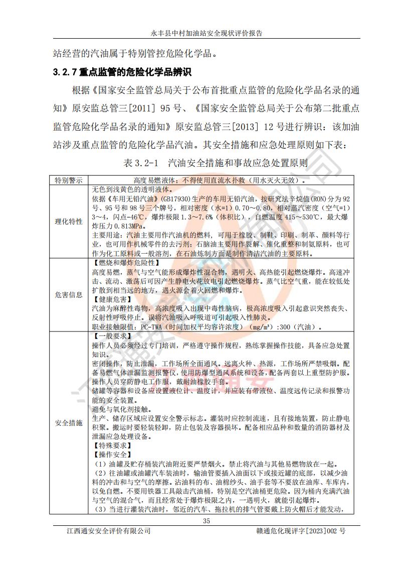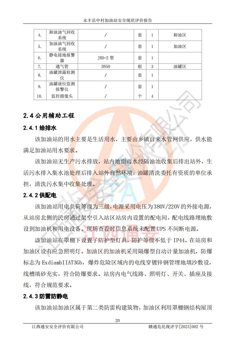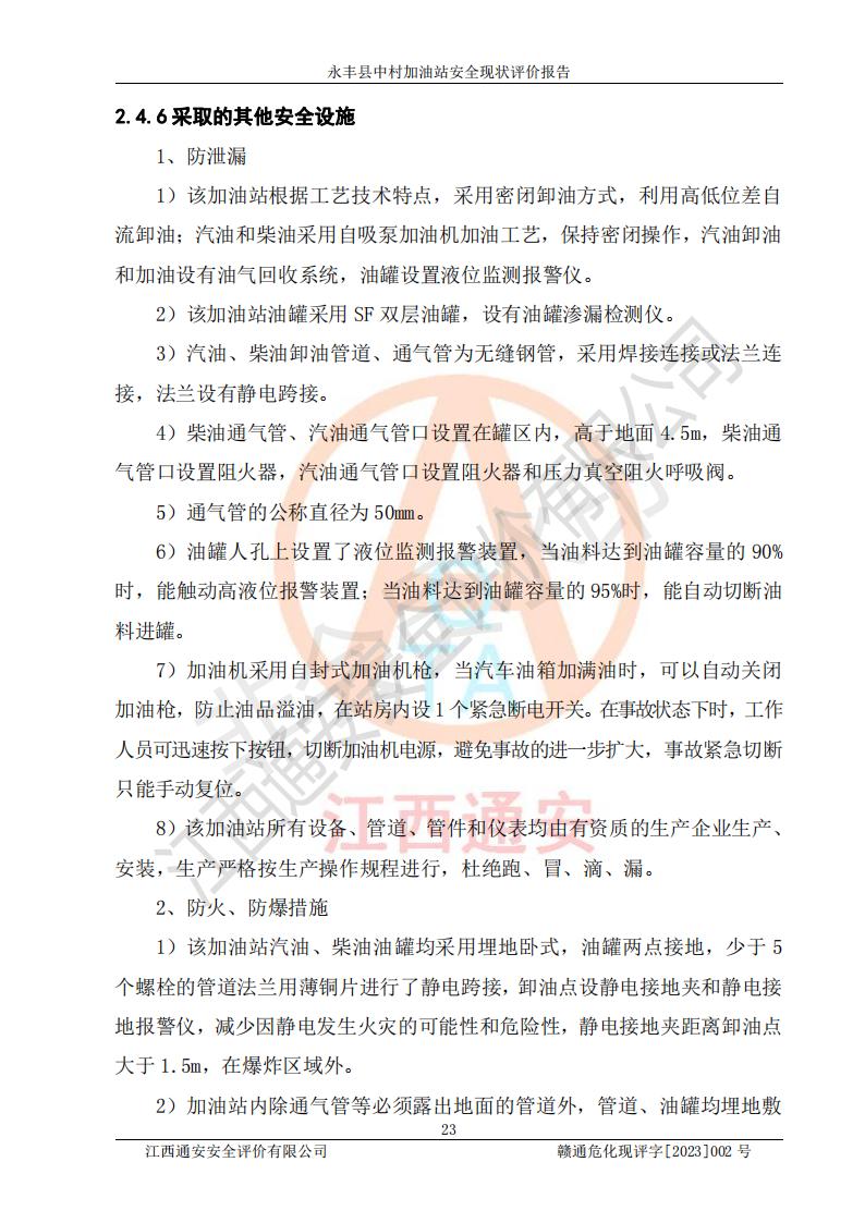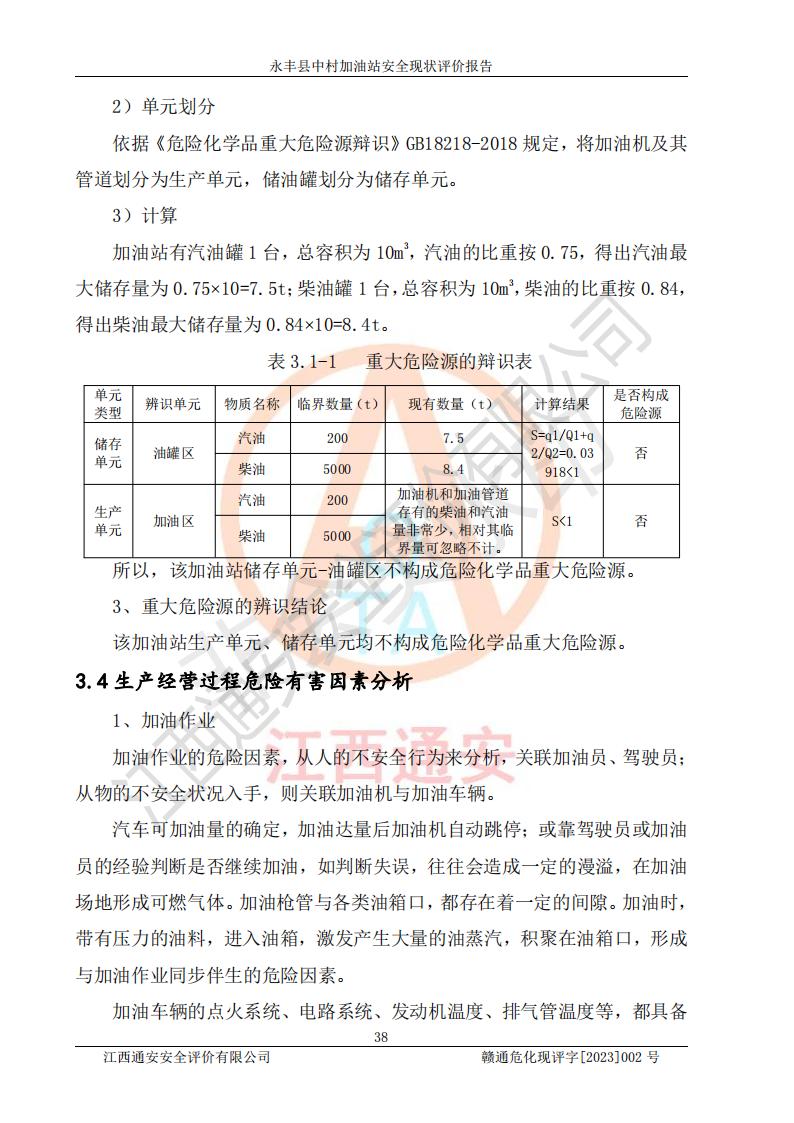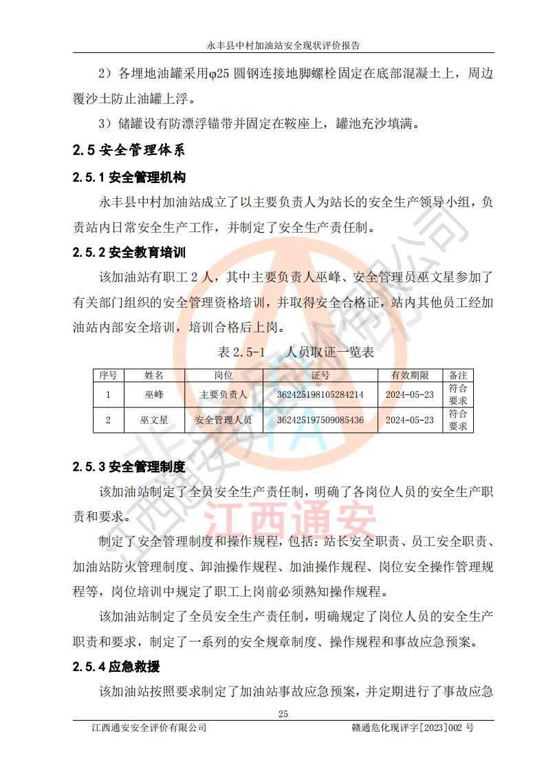 永丰县中村加油站是一家从事成品油零售经营的企业。该加油站于2018年8月14日经永丰县市场监督管理局核准注册成立,营业场所位于江西省吉安市永丰县中村乡中村街。该加油站属于个人独资企业,负责人为巫峰,营业执照统一社会信用代码为:91360825MA3830EG65。营业执照核准经营范围:成品油零售(依法须经批准的项目,经相关部门批准后方可开展经营活动)。 永丰县中村加油站占地面积约300㎡,加油站油罐区中设有1台0#柴油/92#汽油双枪加油机,1台SF双层10m³埋地卧式0#柴油罐,1台SF双层10m³埋地卧式92#汽油储罐,油品至大储存能力为15m³(柴油罐容积折半计入油罐总容积),属三级加油站,汽油卸油、加油设置了油气回收系统。 |