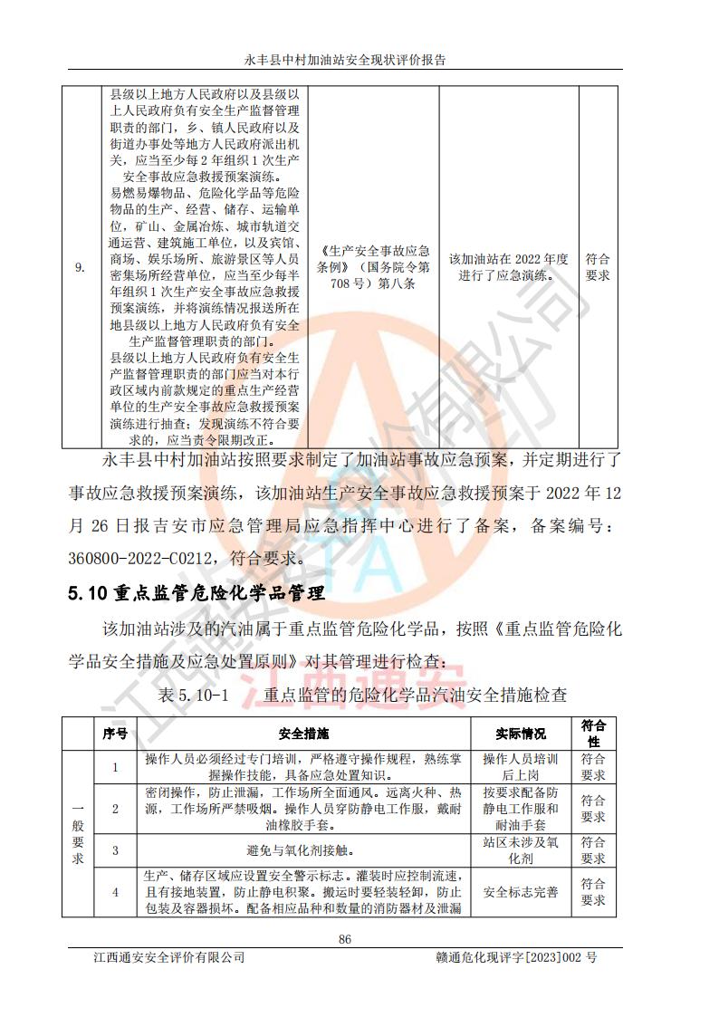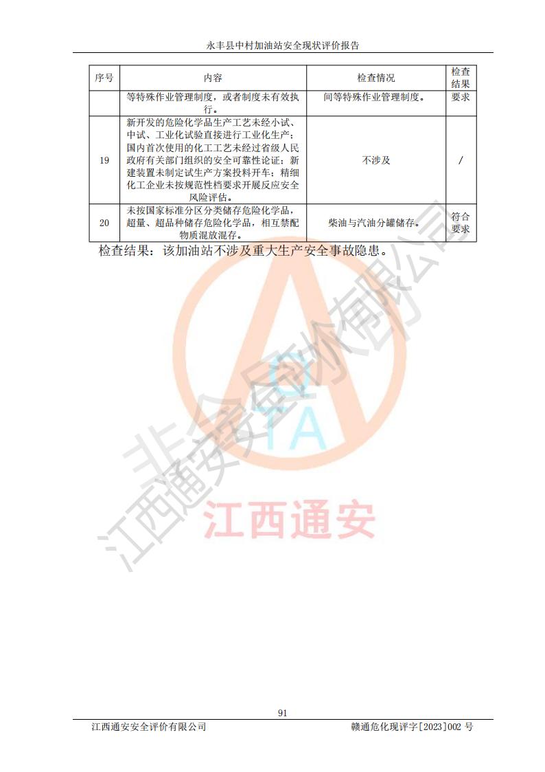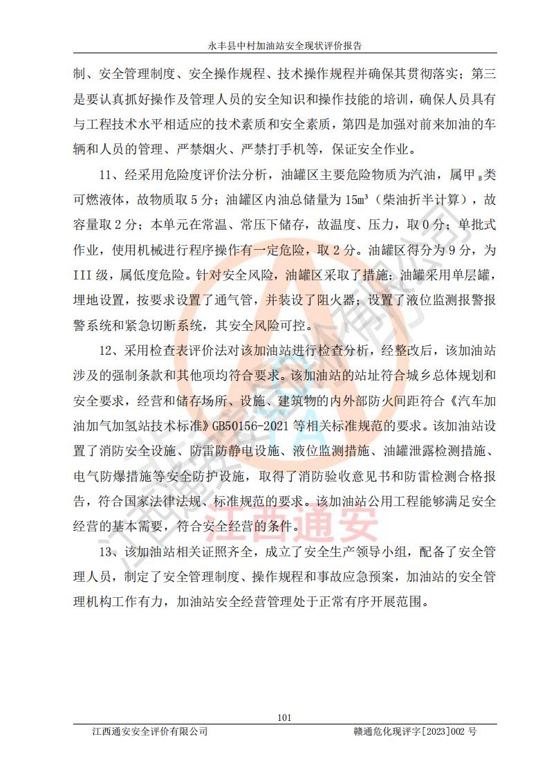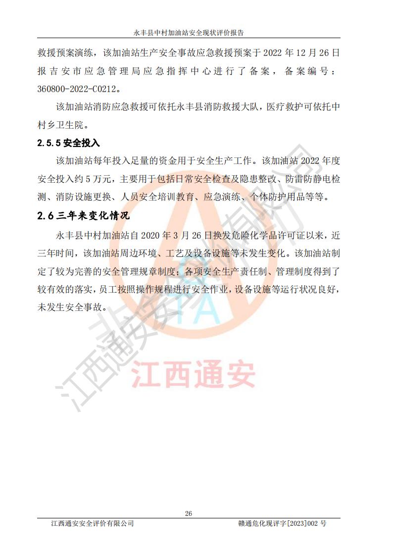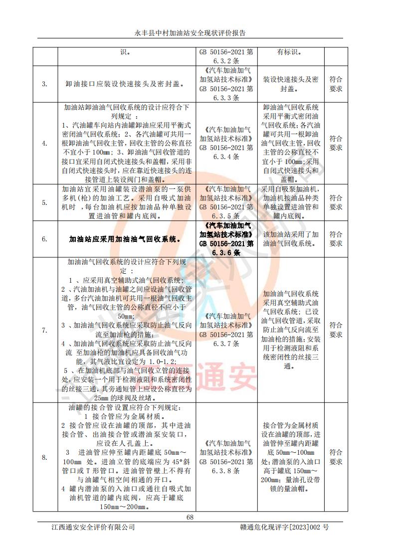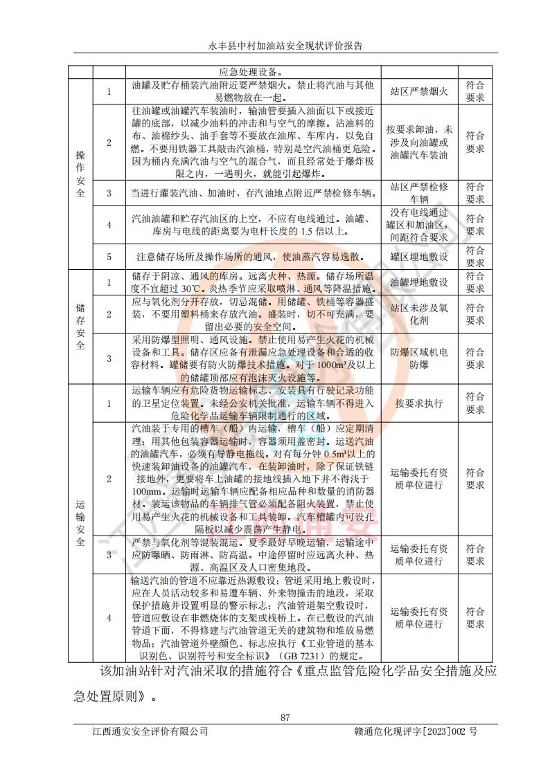 永丰县中村加油站是一家从事成品油零售经营的企业。该加油站于2018年8月14日经永丰县市场监督管理局核准注册成立,营业场所位于江西省吉安市永丰县中村乡中村街。该加油站属于个人独资企业,负责人为巫峰,营业执照统一社会信用代码为:91360825MA3830EG65。营业执照核准经营范围:成品油零售(依法须经批准的项目,经相关部门批准后方可开展经营活动)。 永丰县中村加油站占地面积约300㎡,加油站油罐区中设有1台0#柴油/92#汽油双枪加油机,1台SF双层10m³埋地卧式0#柴油罐,1台SF双层10m³埋地卧式92#汽油储罐,油品至大储存能力为15m³(柴油罐容积折半计入油罐总容积),属三级加油站,汽油卸油、加油设置了油气回收系统。 |