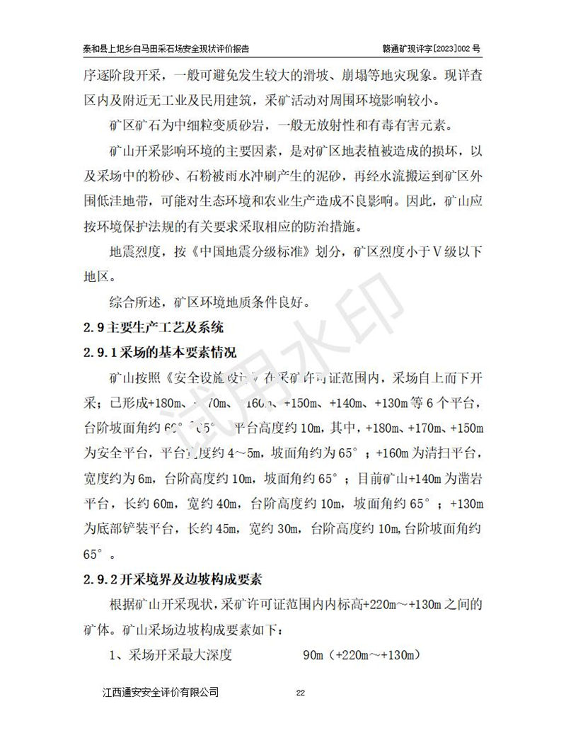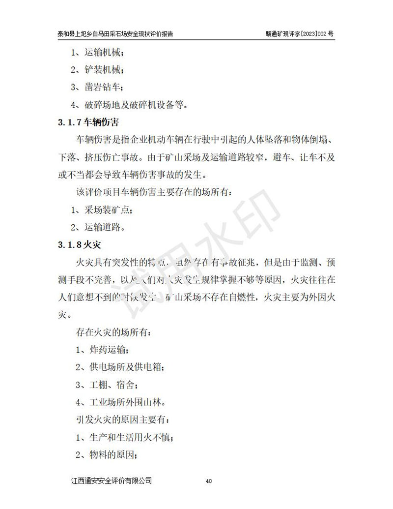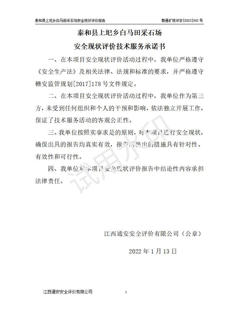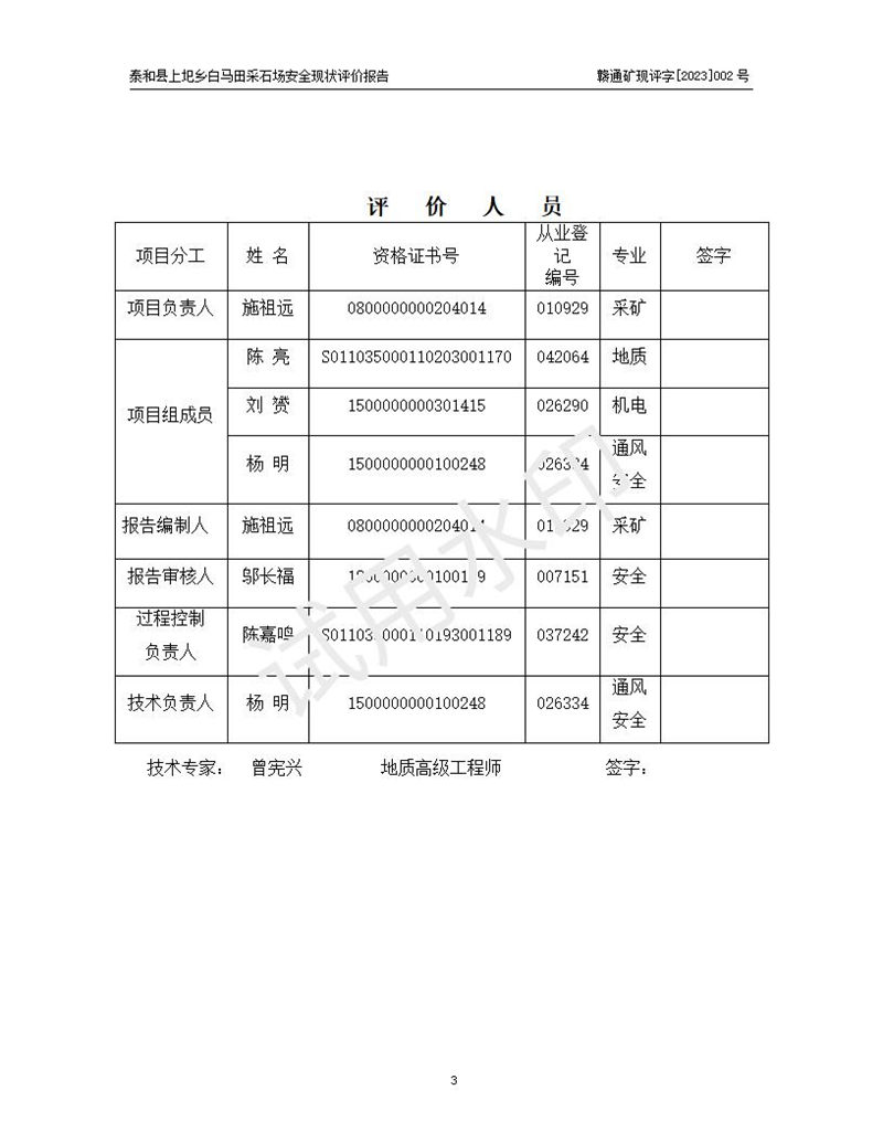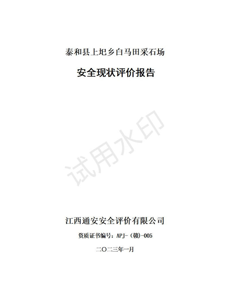项目名称 | 泰和县上圯乡白马田采石场安全现状评价报告 | ||||