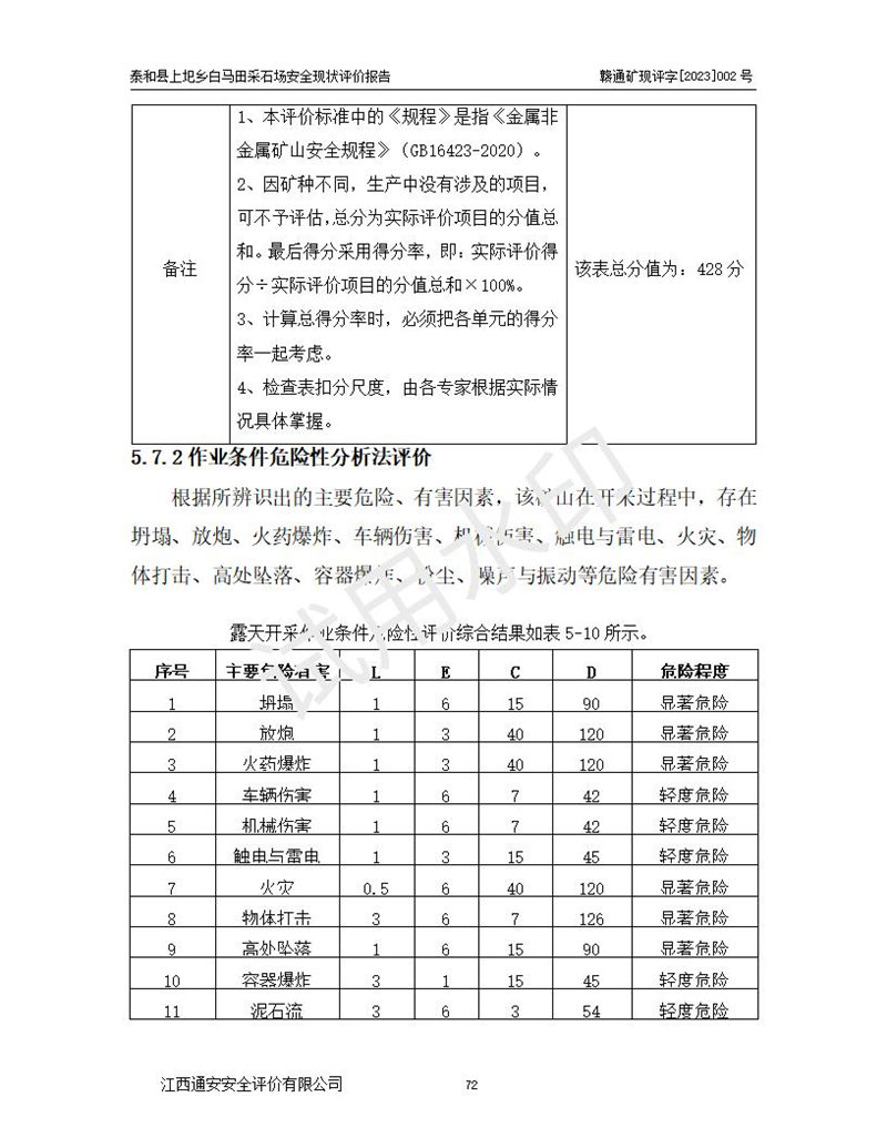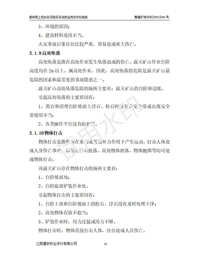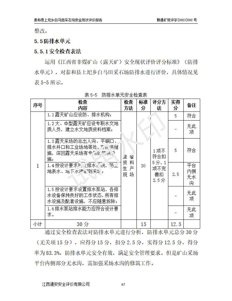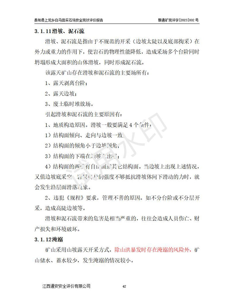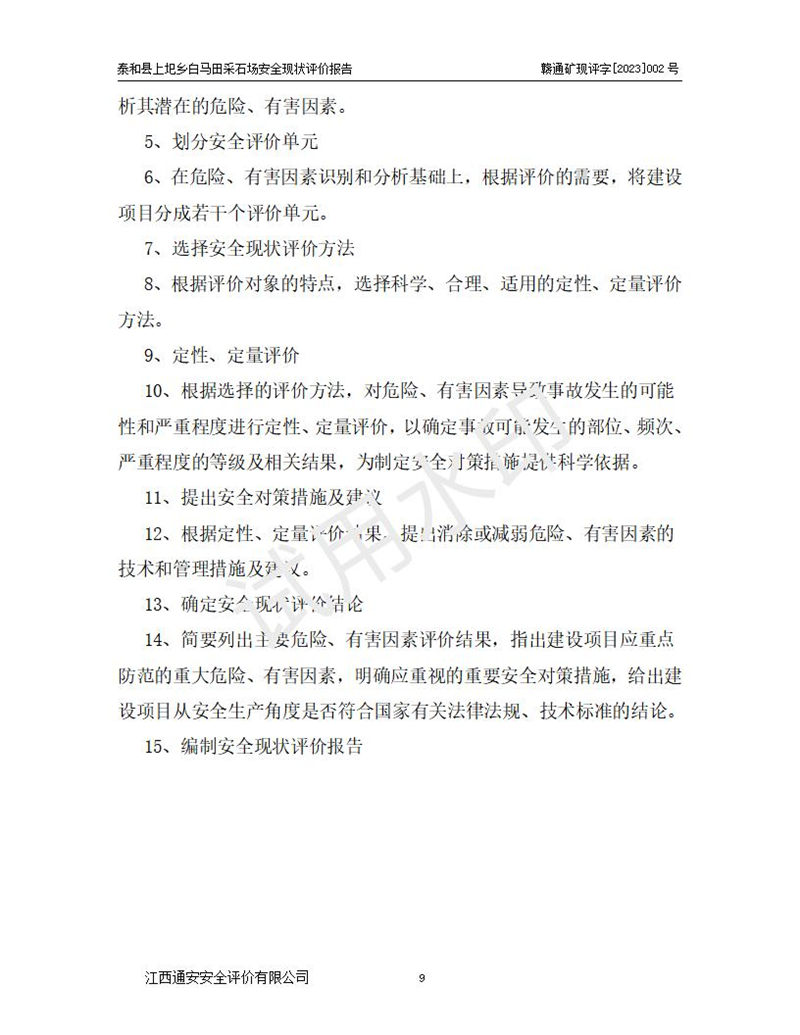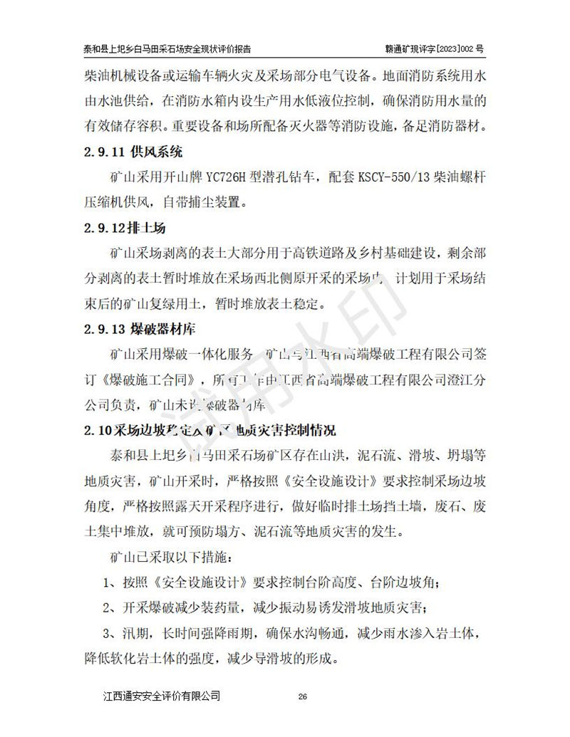 项目名称 | 泰和县上圯乡白马田采石场安全现状评价报告 | ||||