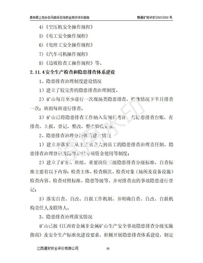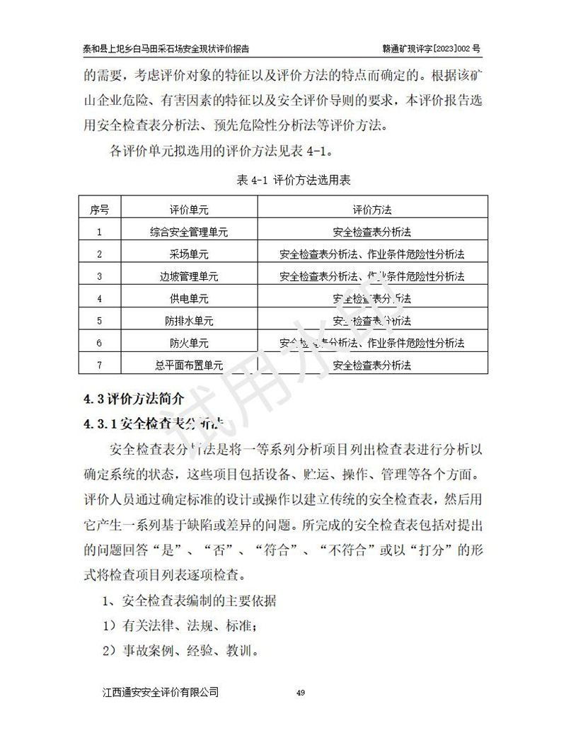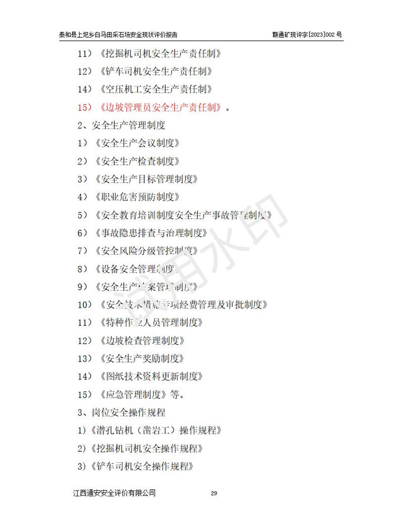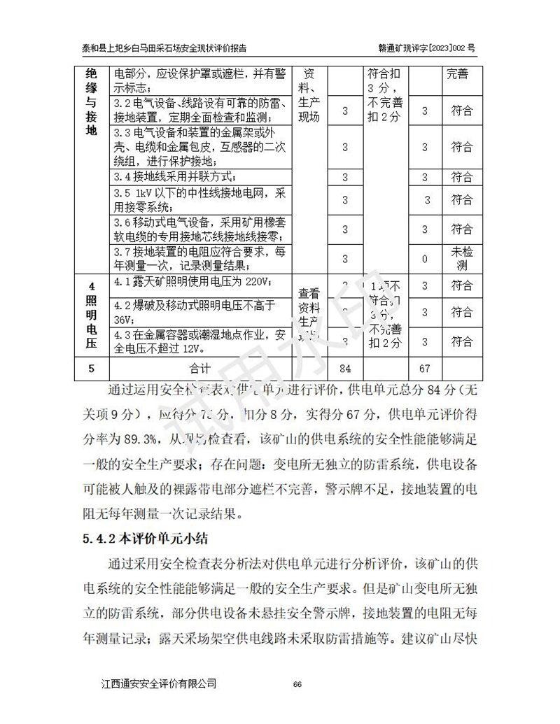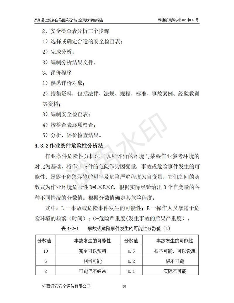 项目名称 | 泰和县上圯乡白马田采石场安全现状评价报告 | ||||