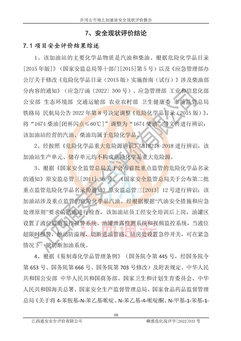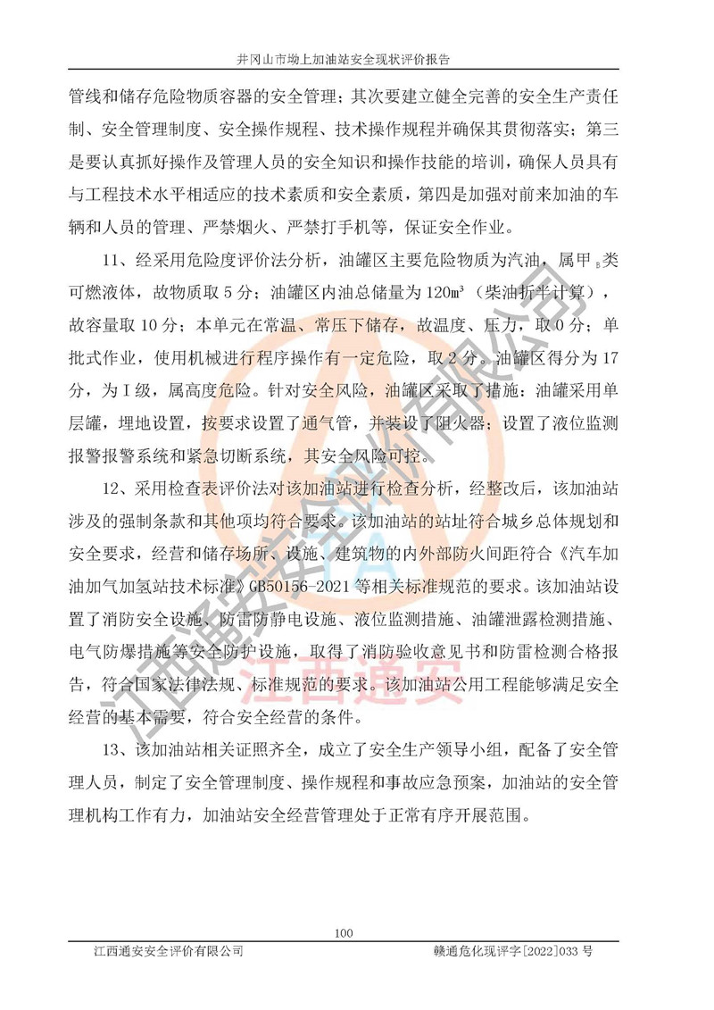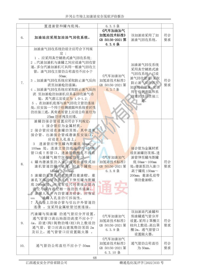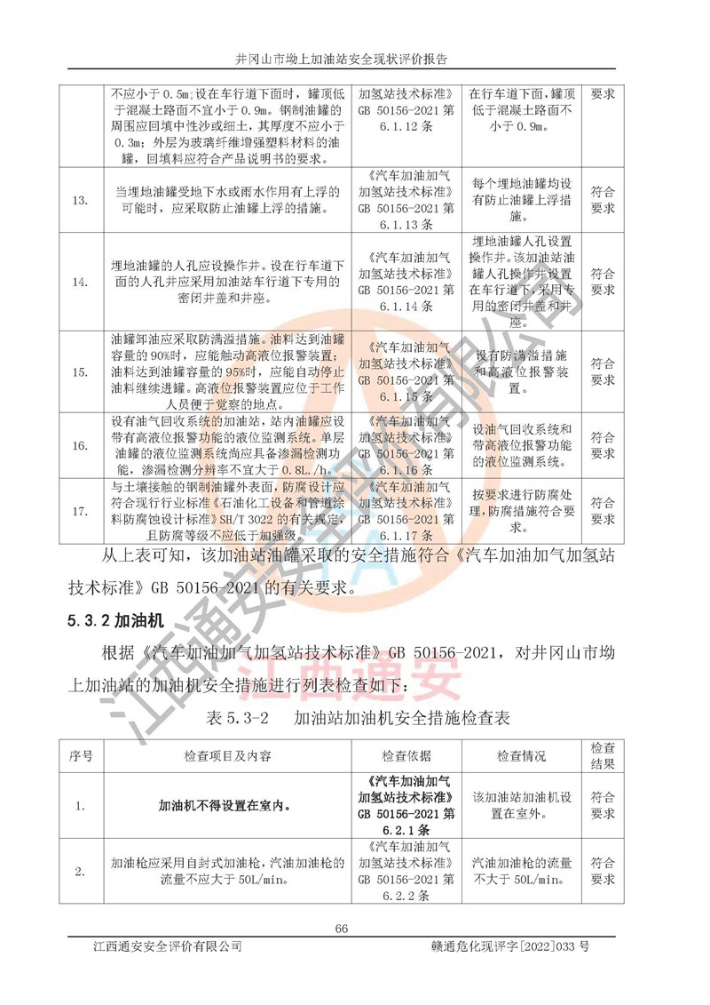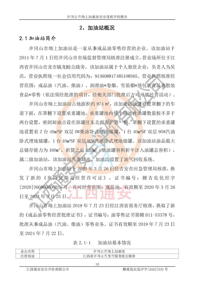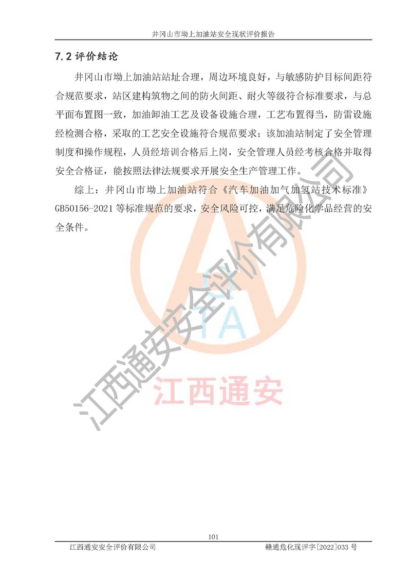 综上:井冈山市坳上加油站符合《汽车加油加气加氢站技术标准》GB50156-2021等标准规范的要求,安全风险可控,满足危险化学品经营的安全条件。