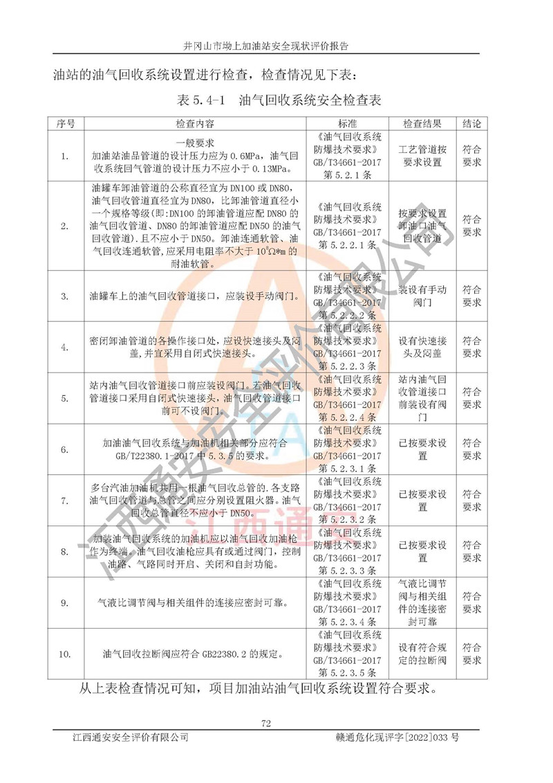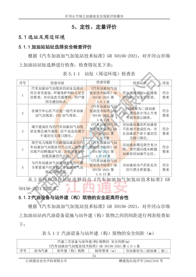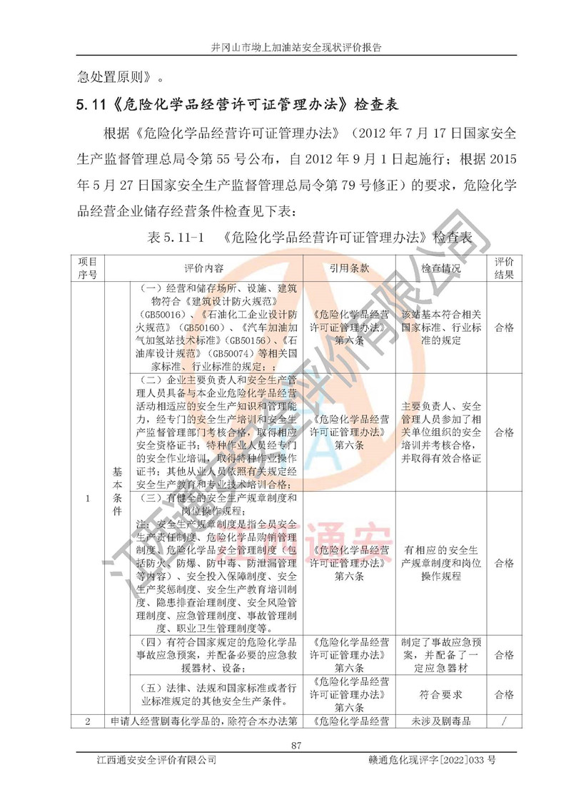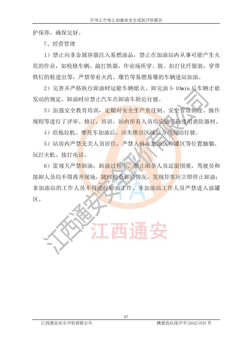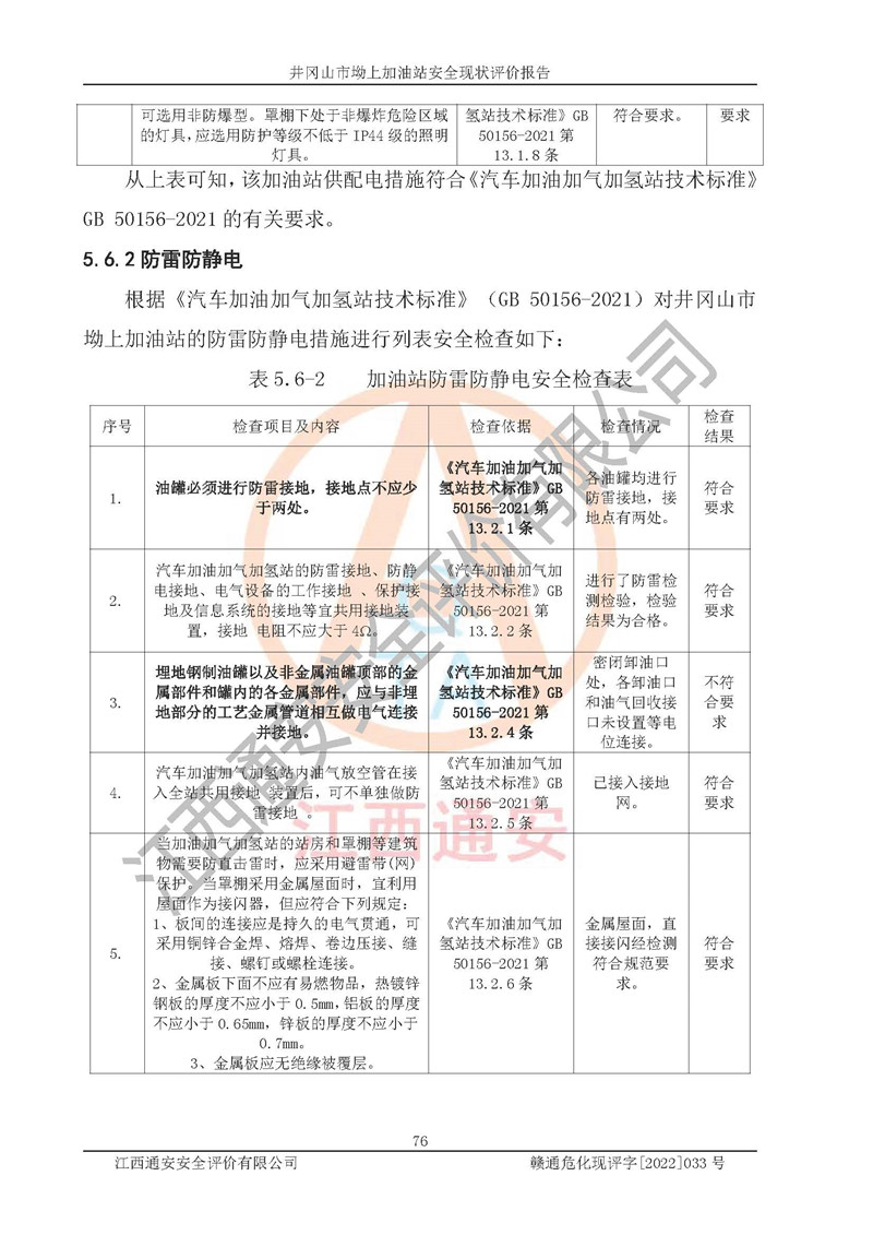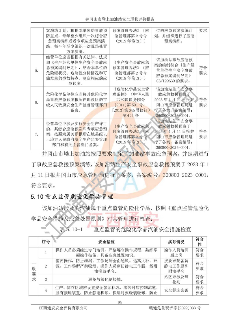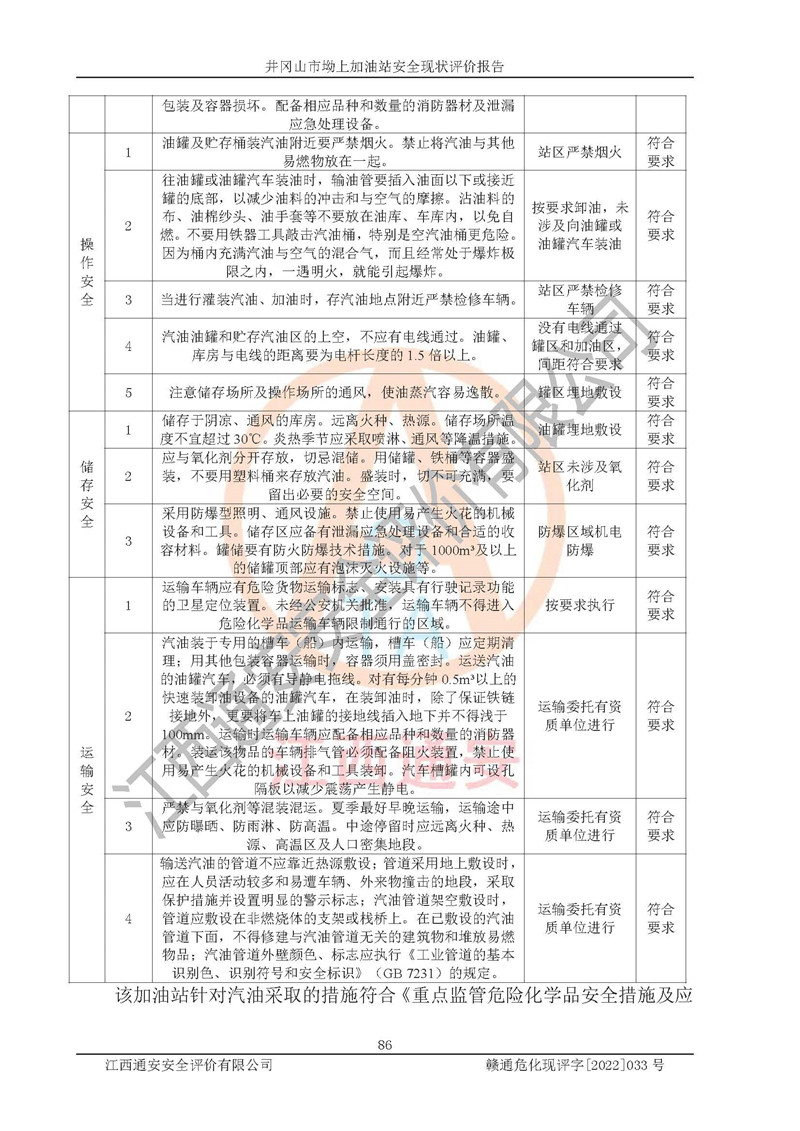 综上:井冈山市坳上加油站符合《汽车加油加气加氢站技术标准》GB50156-2021等标准规范的要求,安全风险可控,满足危险化学品经营的安全条件。