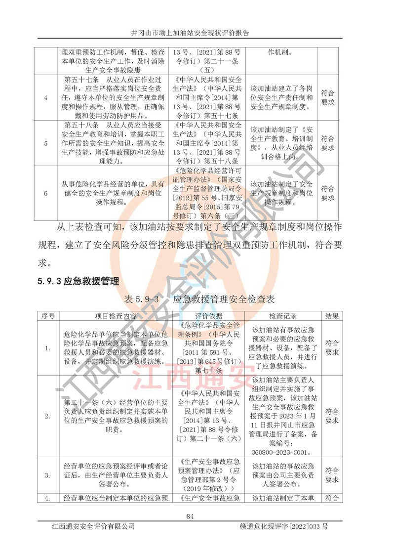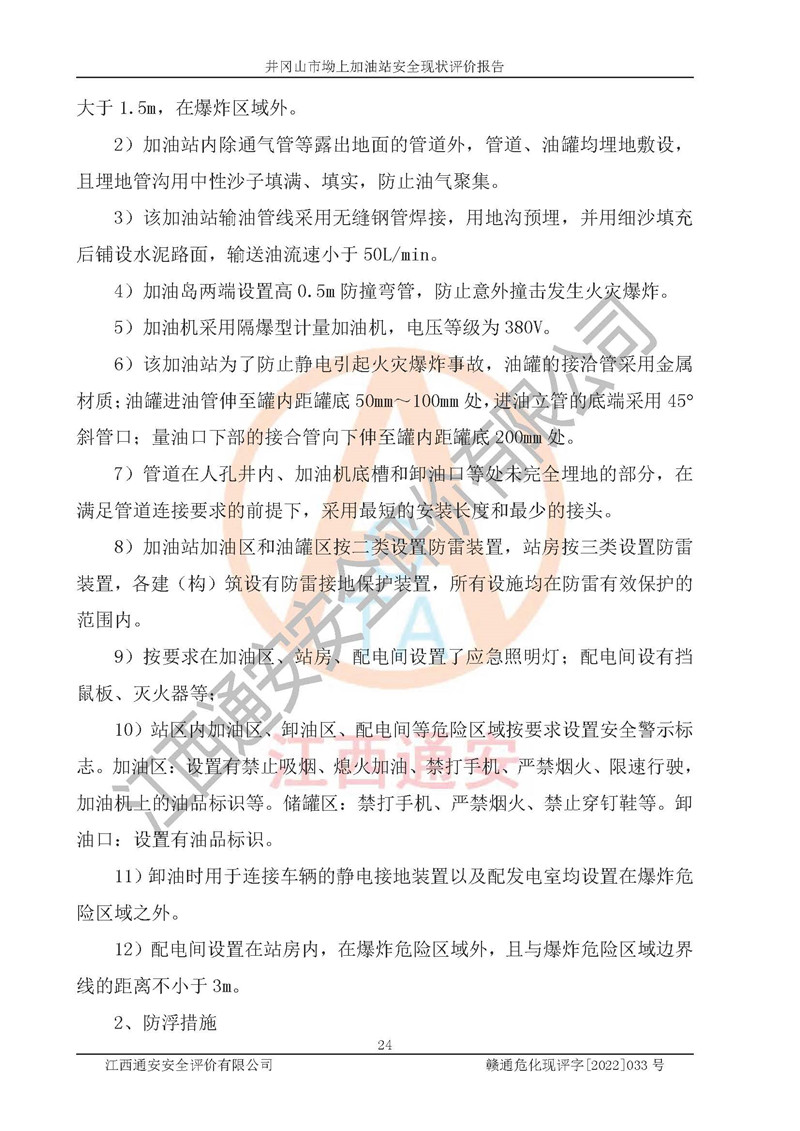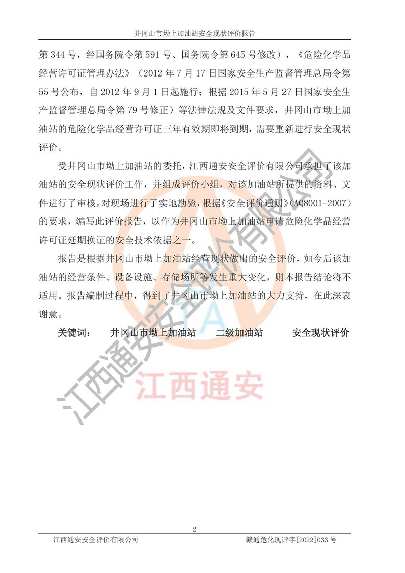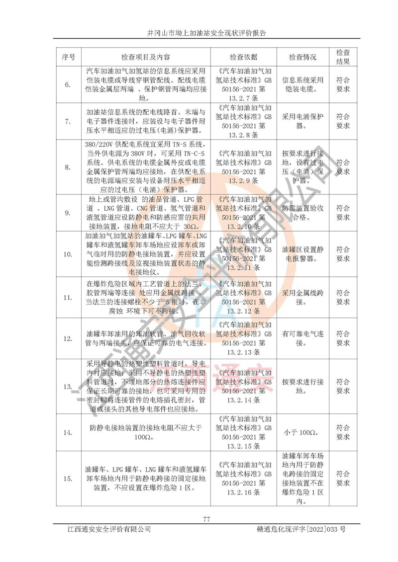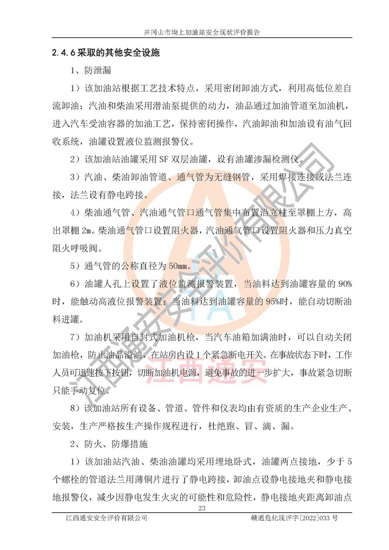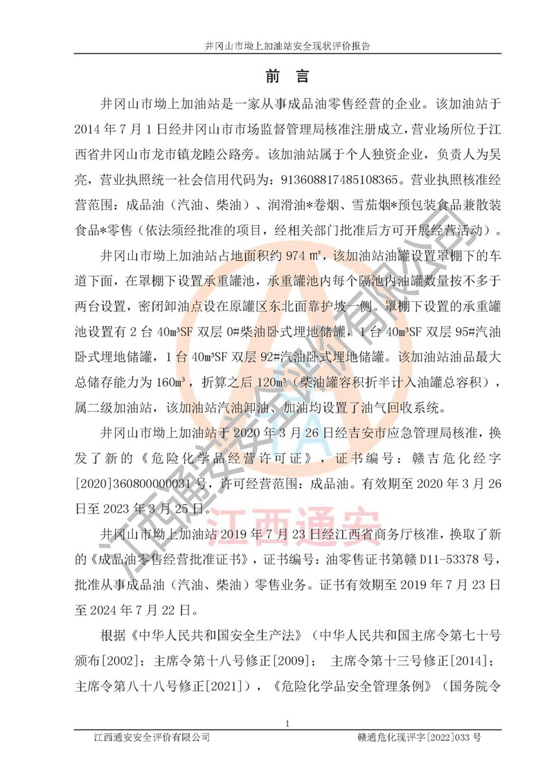 综上:井冈山市坳上加油站符合《汽车加油加气加氢站技术标准》GB50156-2021等标准规范的要求,安全风险可控,满足危险化学品经营的安全条件。