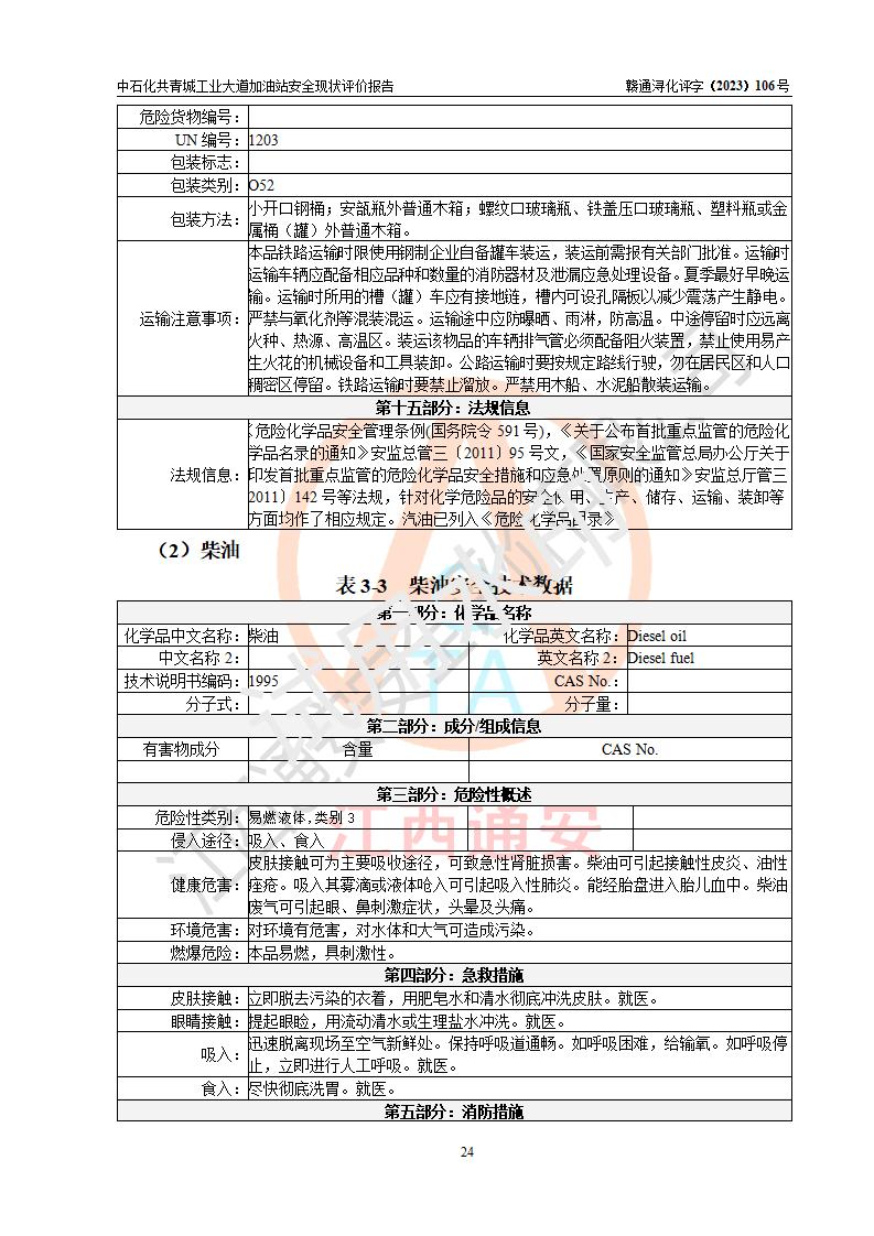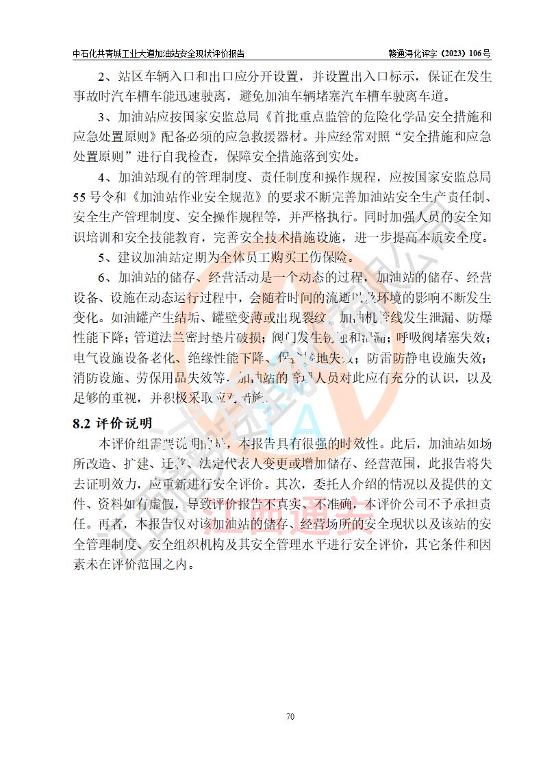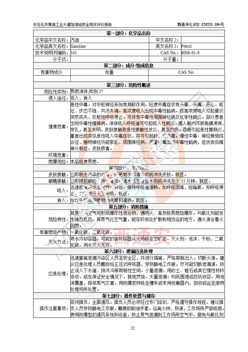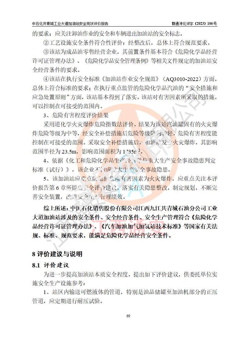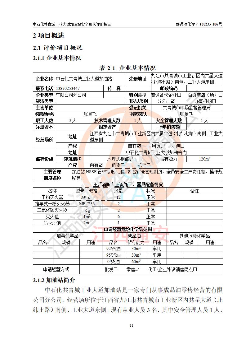 评价报告名称 | 中国石化销售股份有限公司江西九江共青城石油分公司工业大道加油站安全现状评价报告 | |||