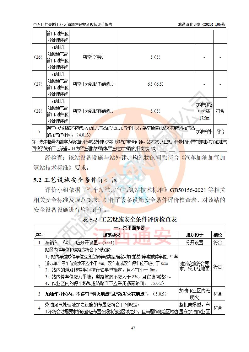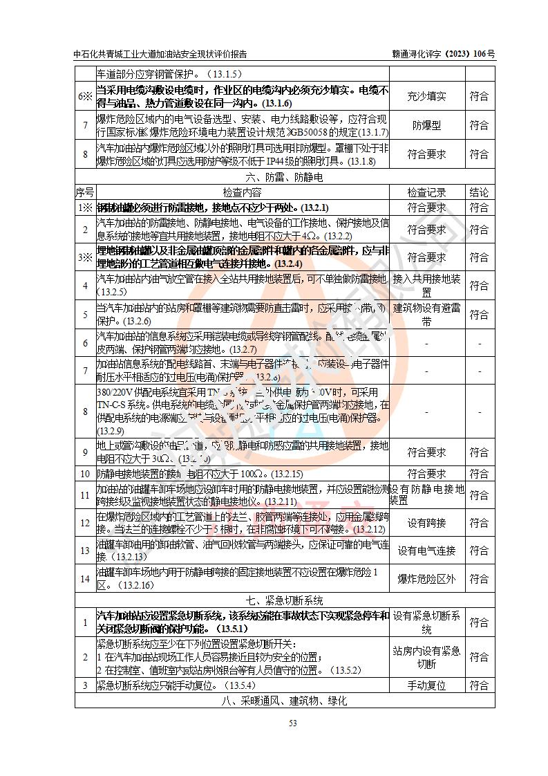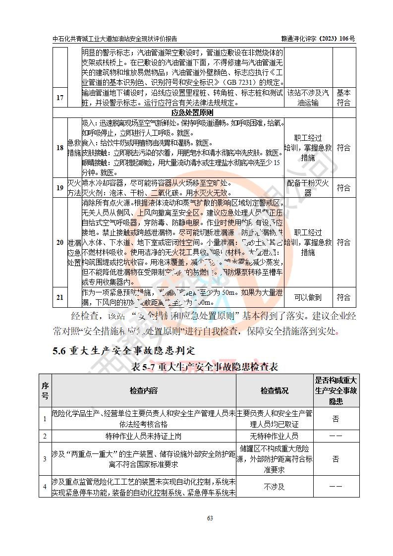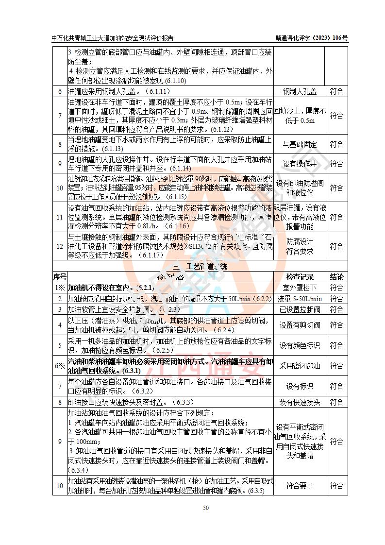评价结论 | 中国石化销售股份有限公司江西九江共青城石油分公司工业大道加油站涉及的安全条件、安全经营条件、安全生产管理符合《危险化学品经营许可证管理办法》、《汽车加油加气加氢站技术标准》等**有关法规、标准、规范要求,能满足危险化学品经营安全条件。 | |||