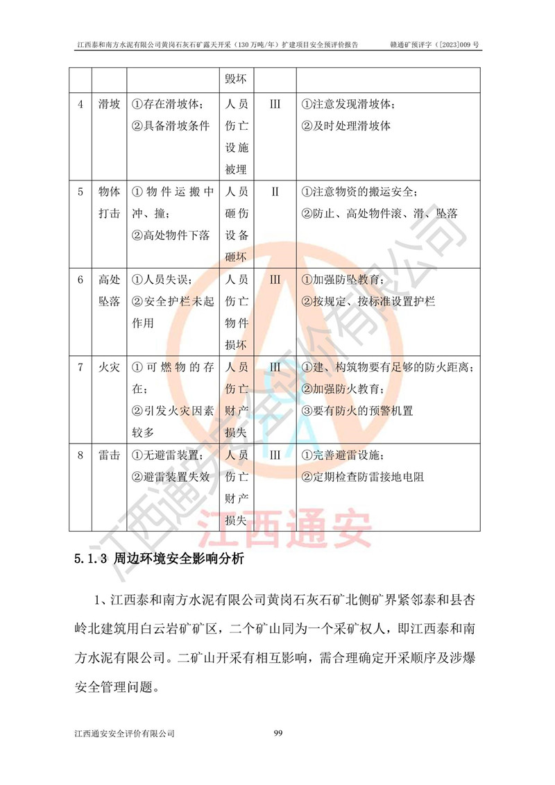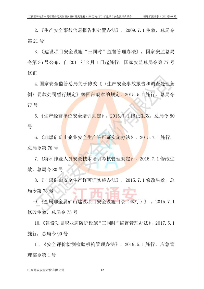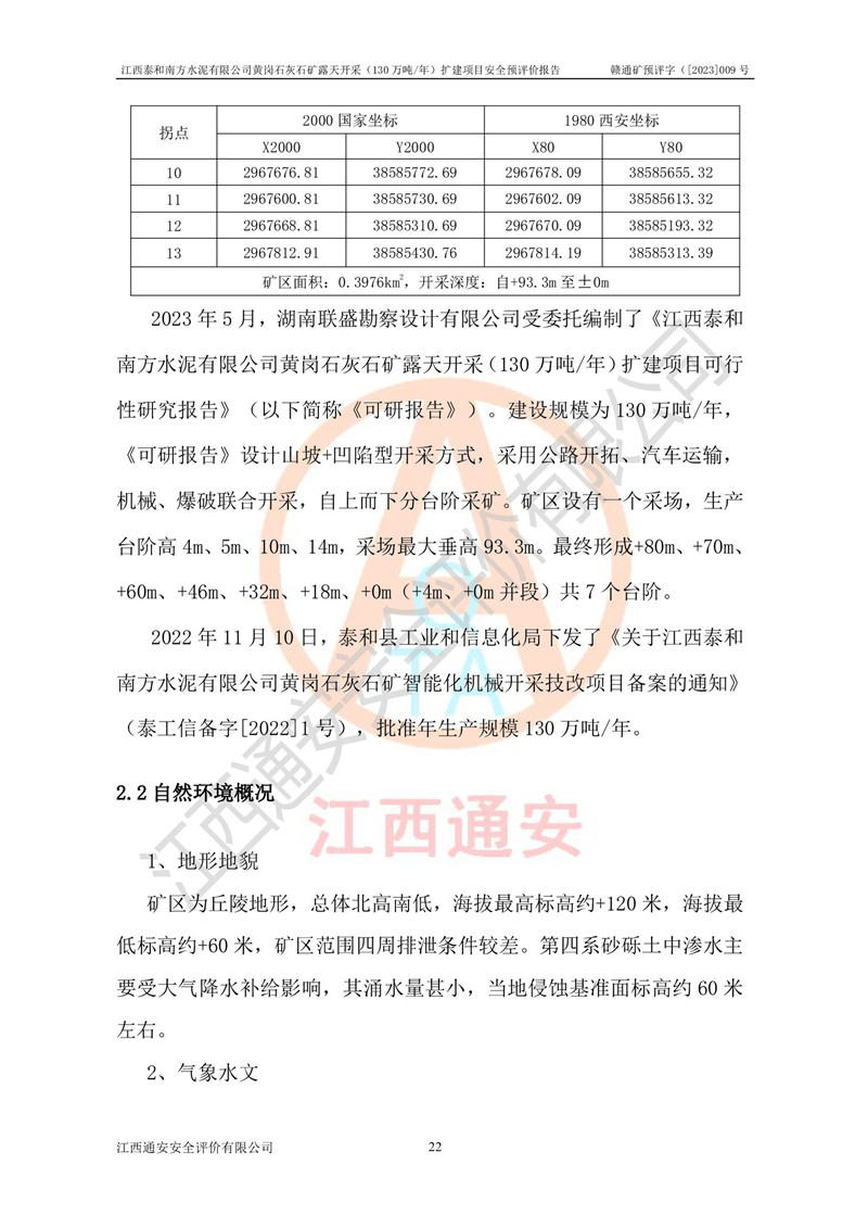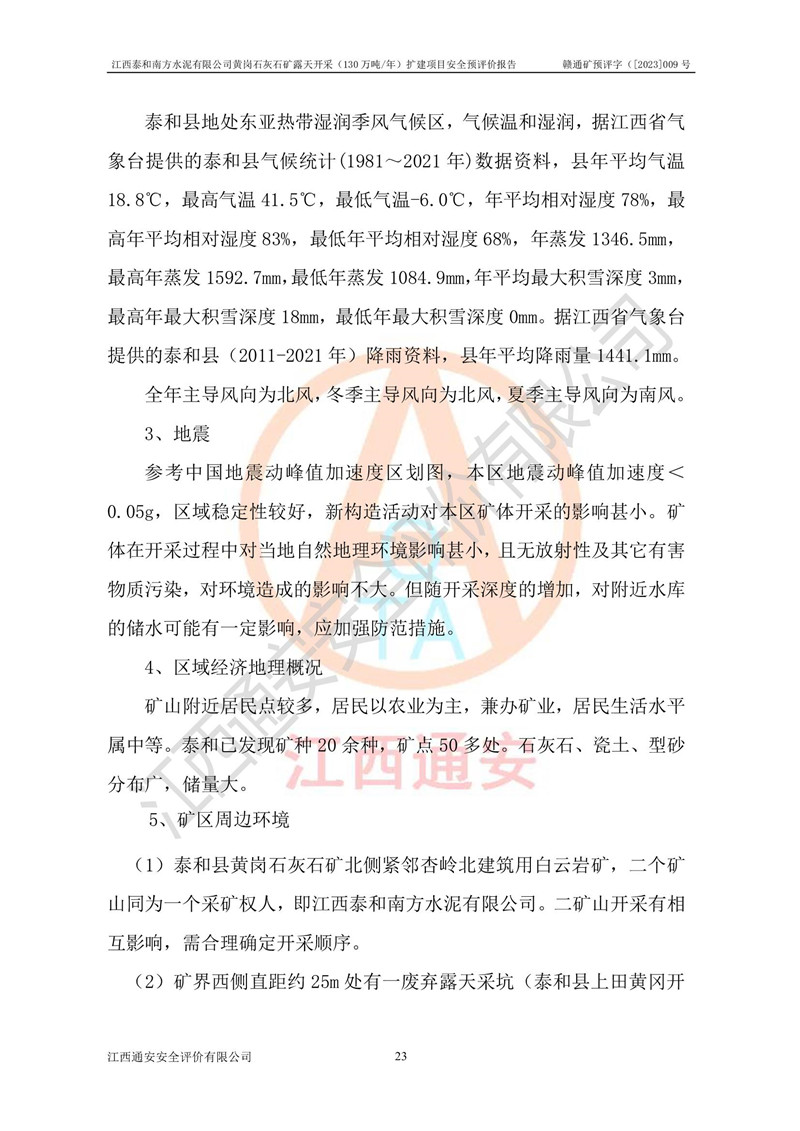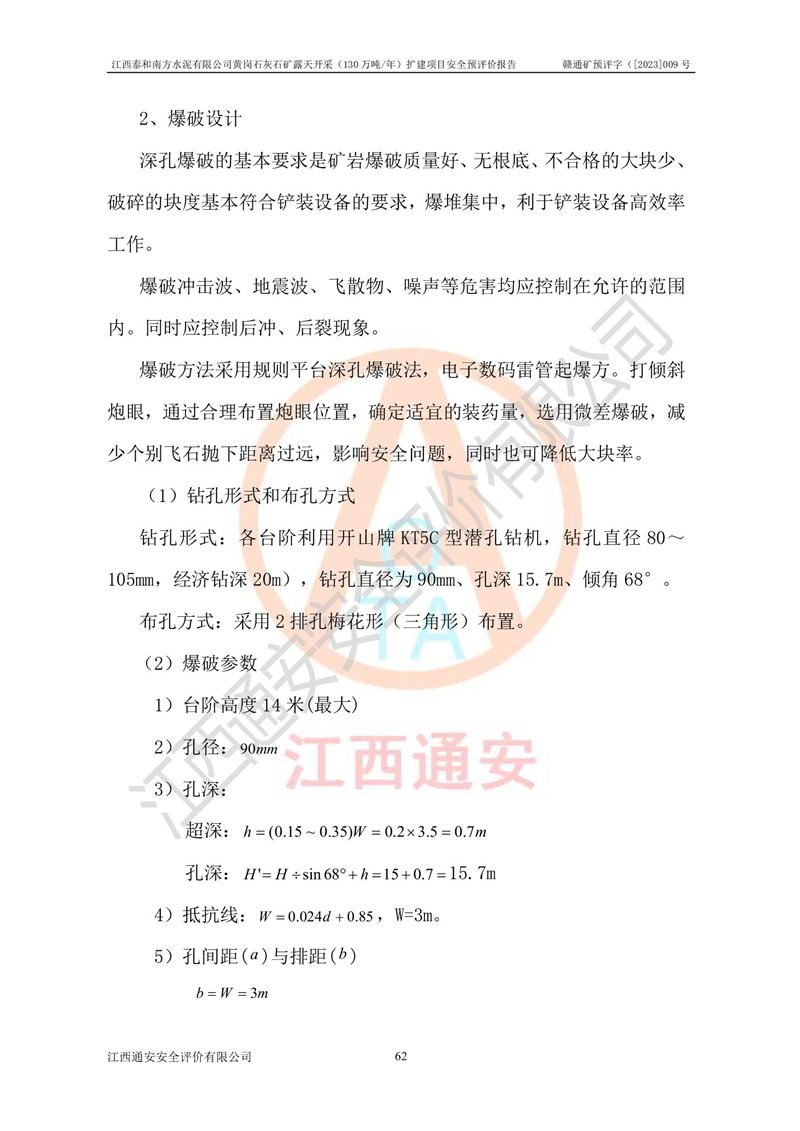 评价报告名称 | 江西泰和南方水泥有限公司黄岗石灰石矿露天开采(130万吨/年)扩建项目安全预评价报告 | ||||