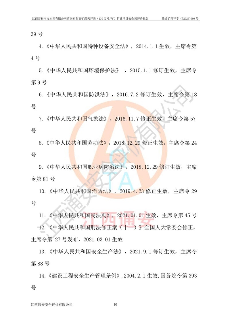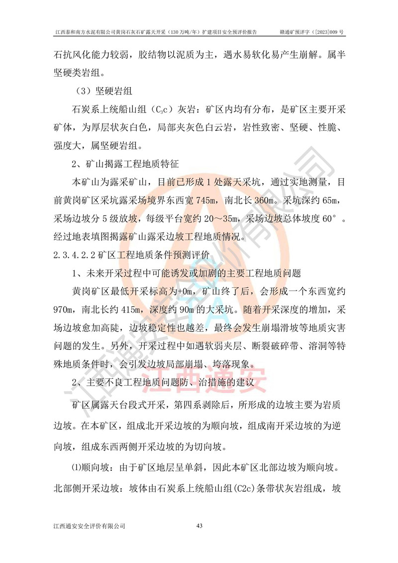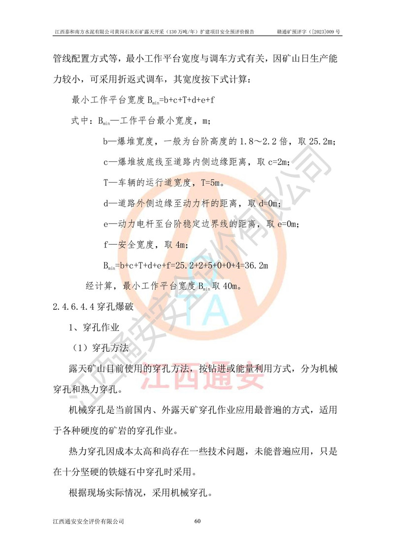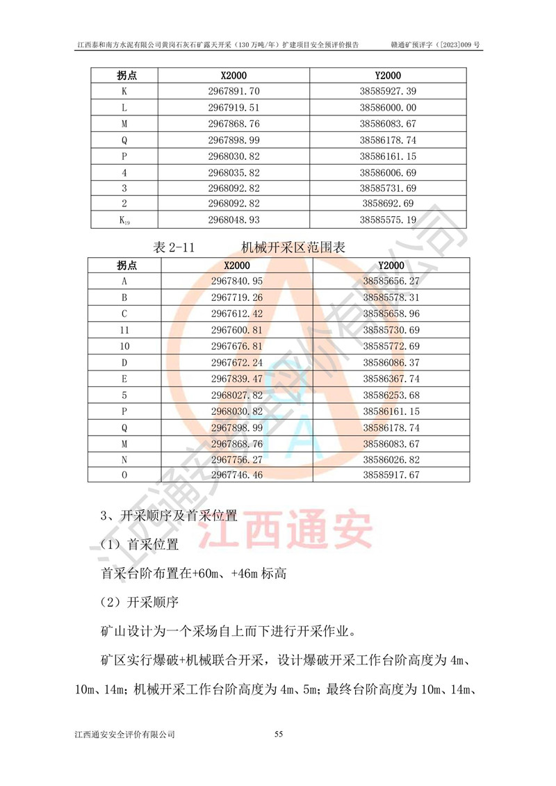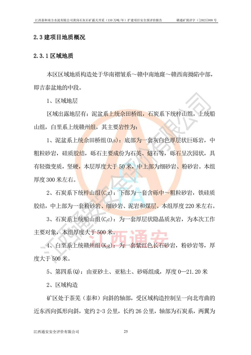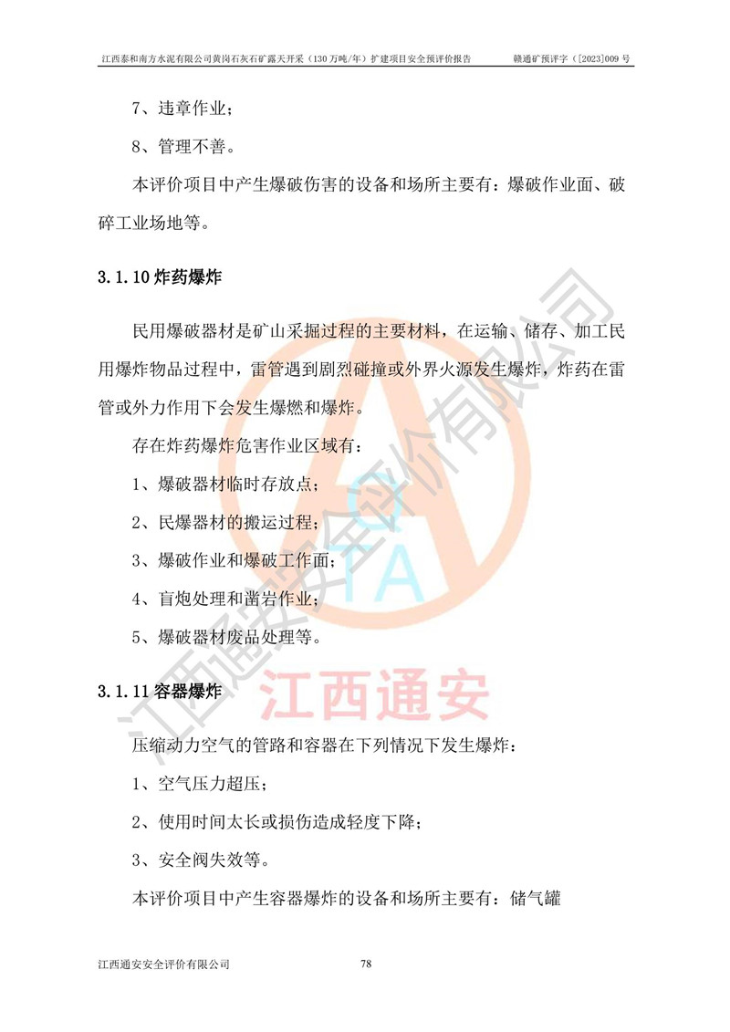 评价报告名称 | 江西泰和南方水泥有限公司黄岗石灰石矿露天开采(130万吨/年)扩建项目安全预评价报告 | ||||