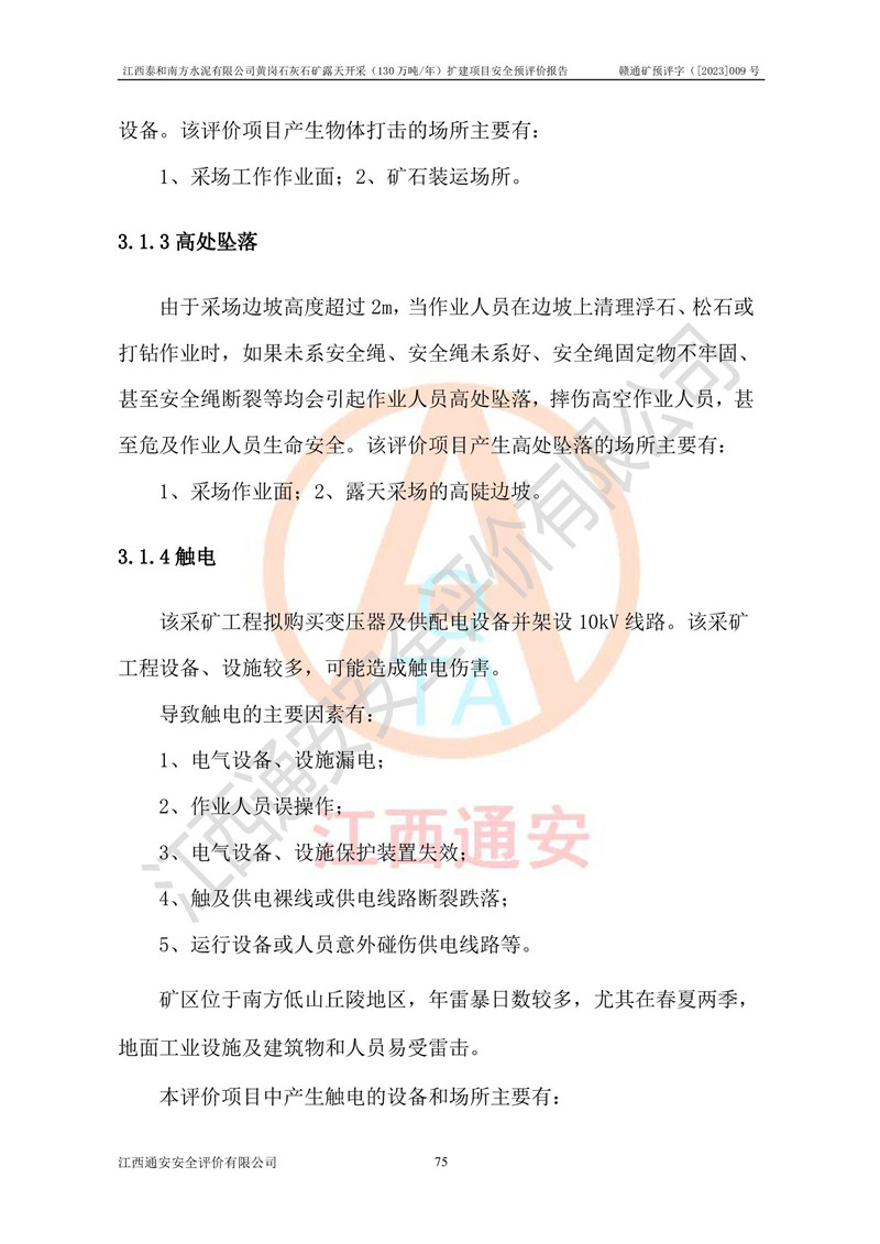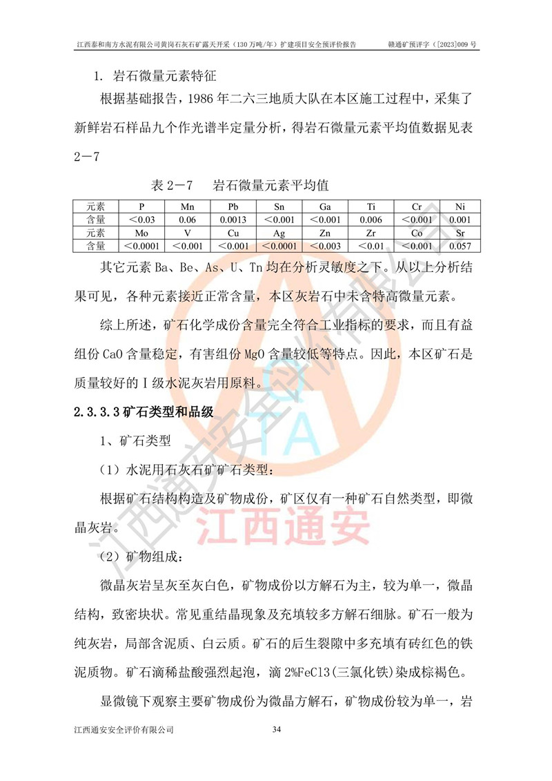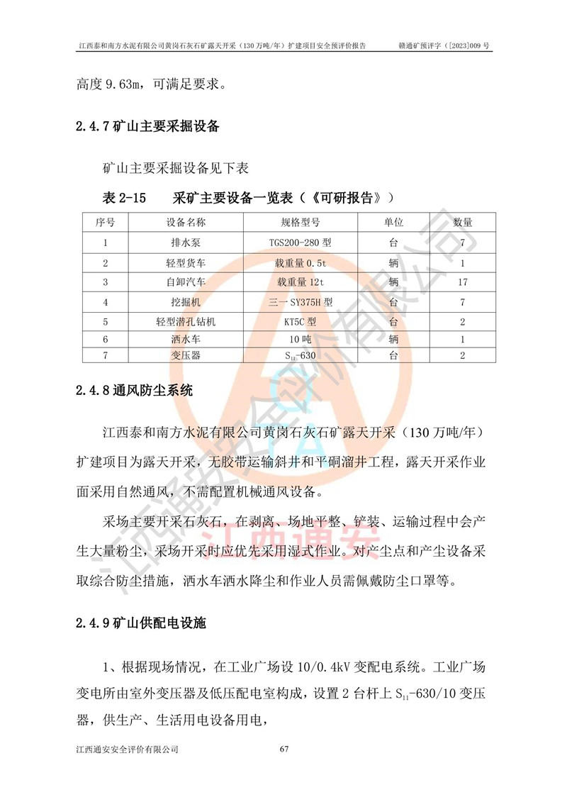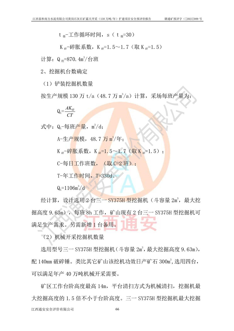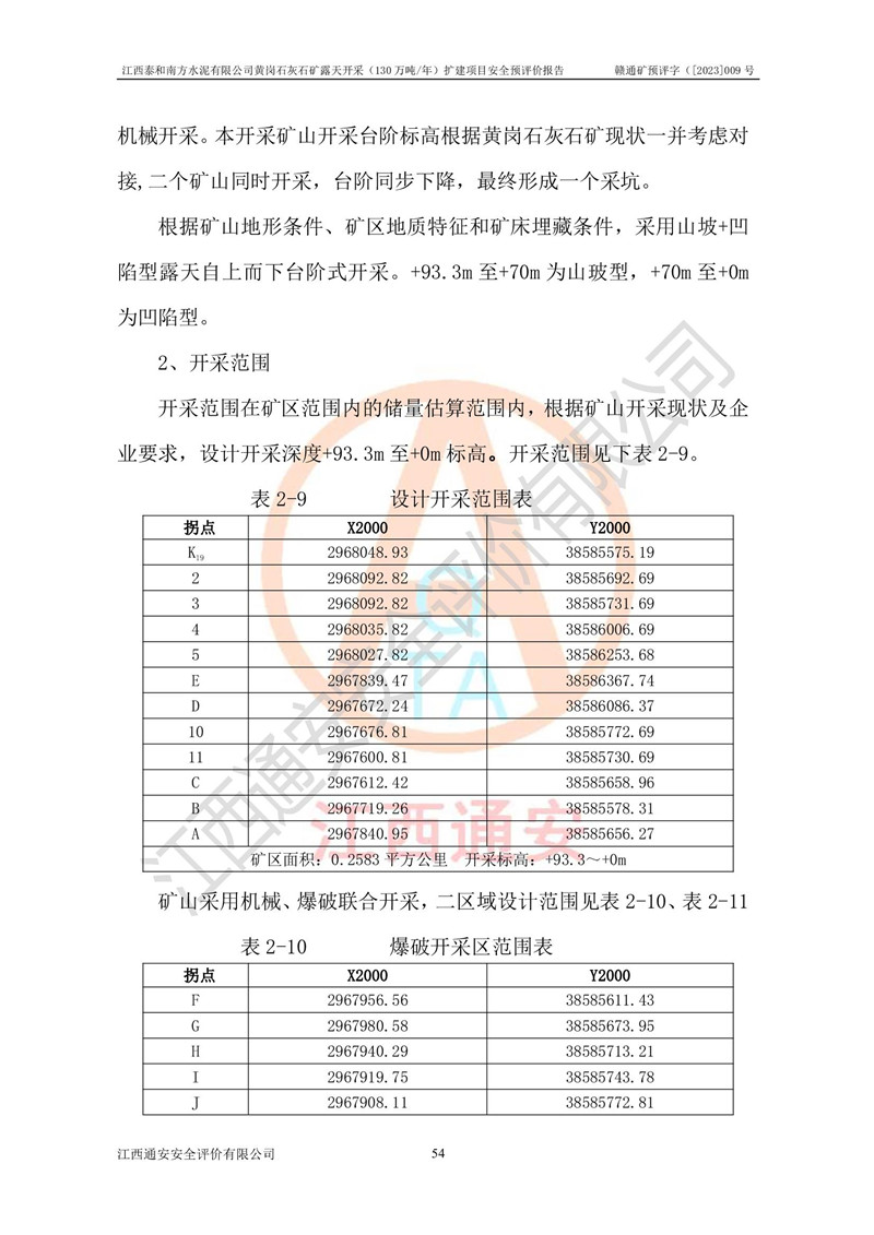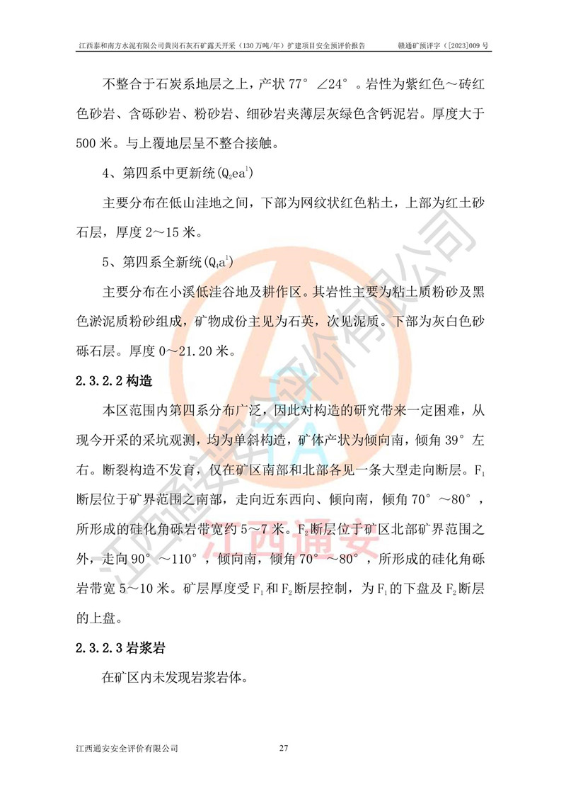 评价报告名称 | 江西泰和南方水泥有限公司黄岗石灰石矿露天开采(130万吨/年)扩建项目安全预评价报告 | ||||