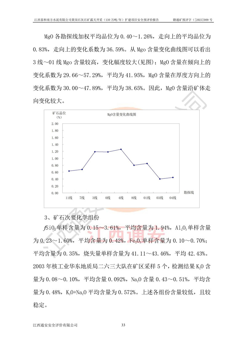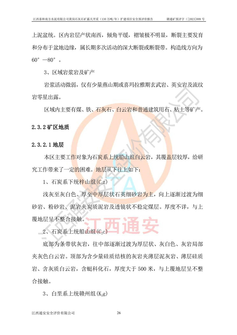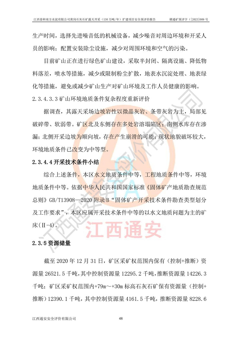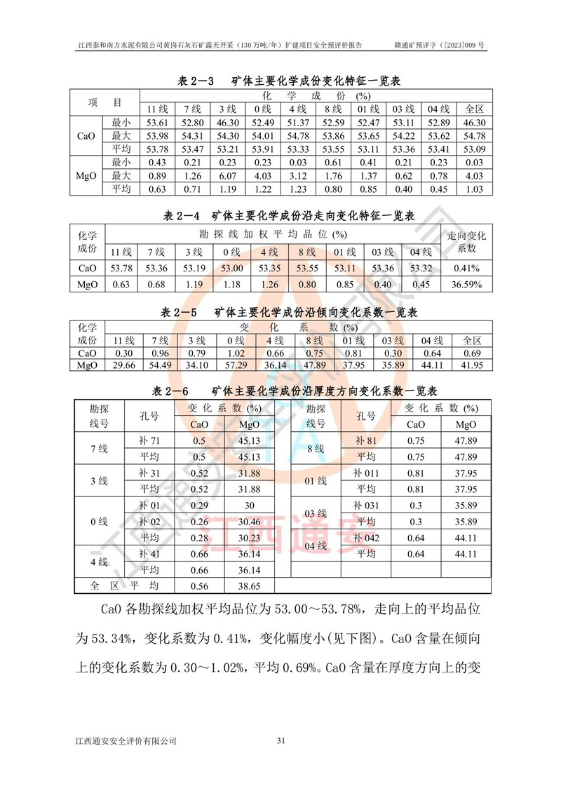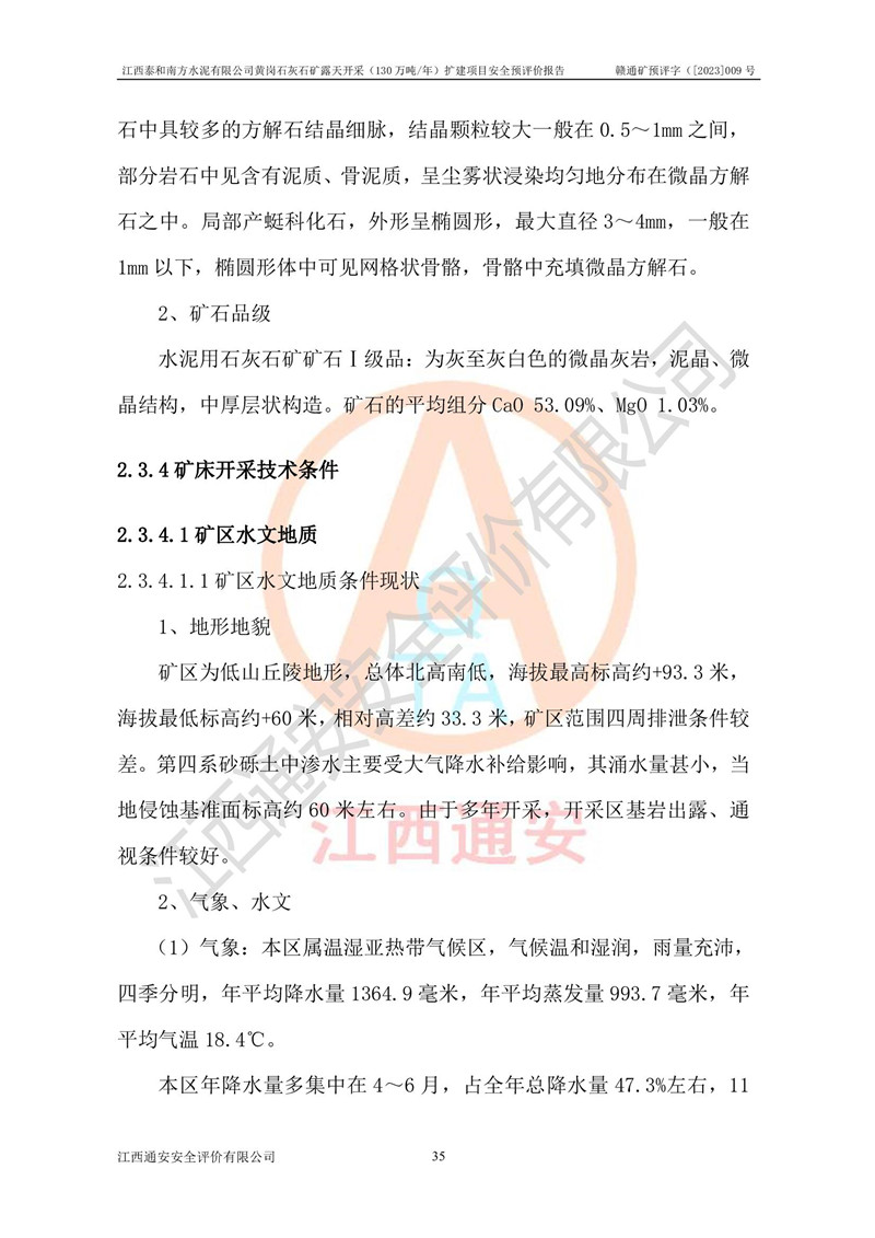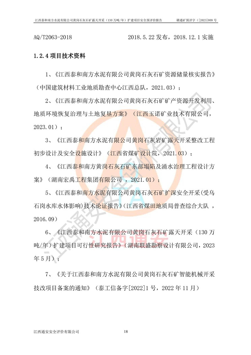 评价报告名称 | 江西泰和南方水泥有限公司黄岗石灰石矿露天开采(130万吨/年)扩建项目安全预评价报告 | ||||