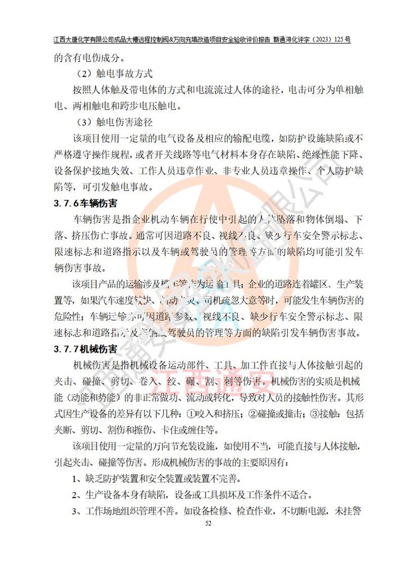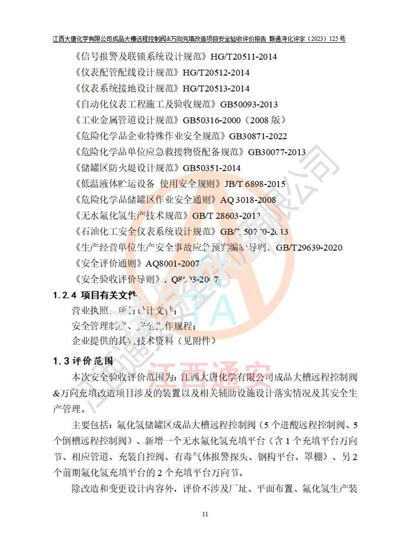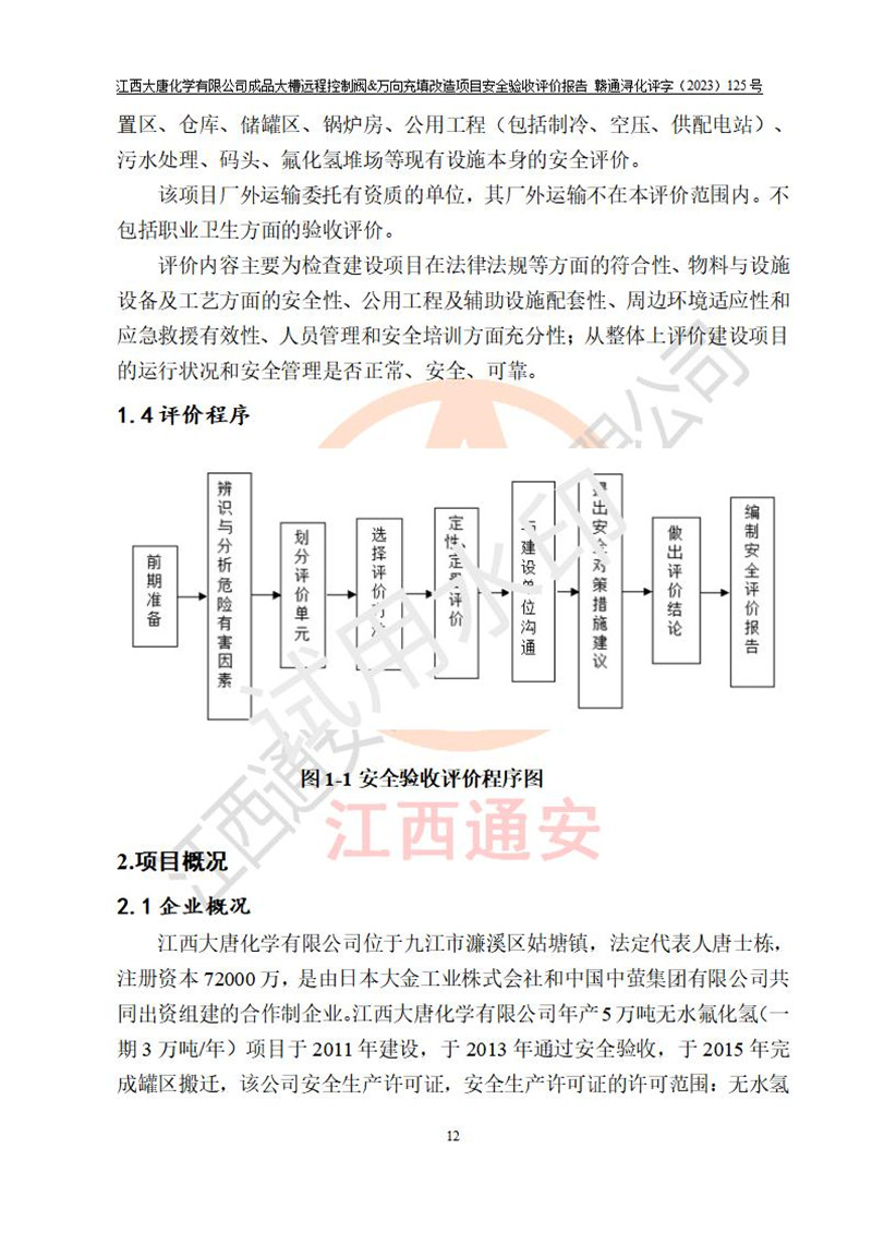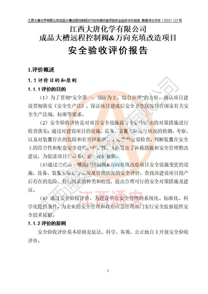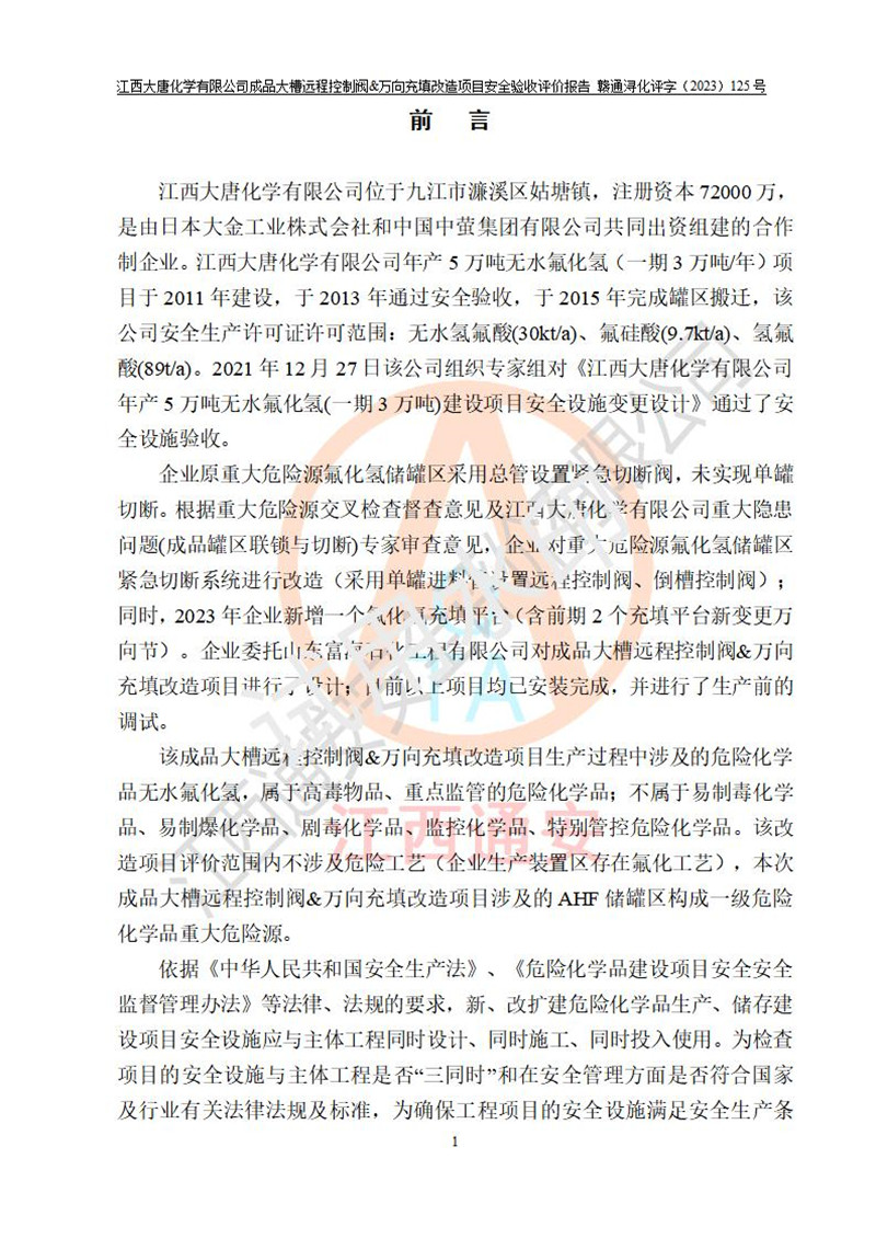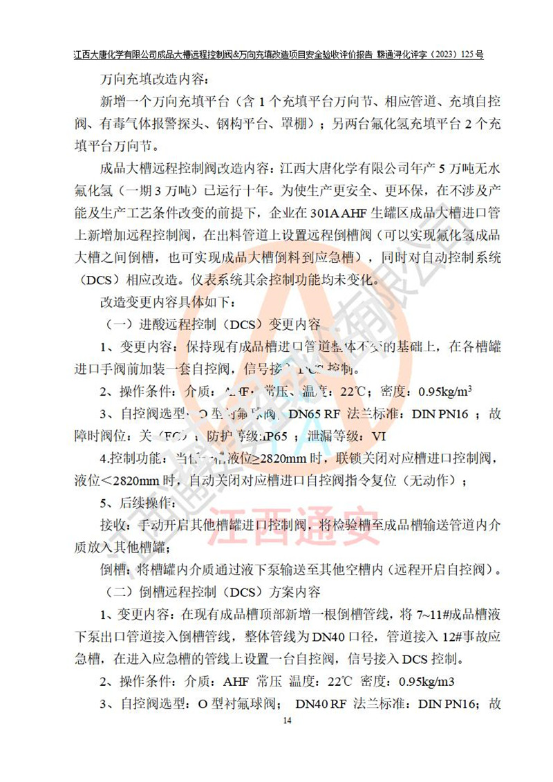 评价报告名称 | 江西大唐化学有限公司成品大槽远程控制阀&万向充填改造项目安全验收评价报告 | ||||