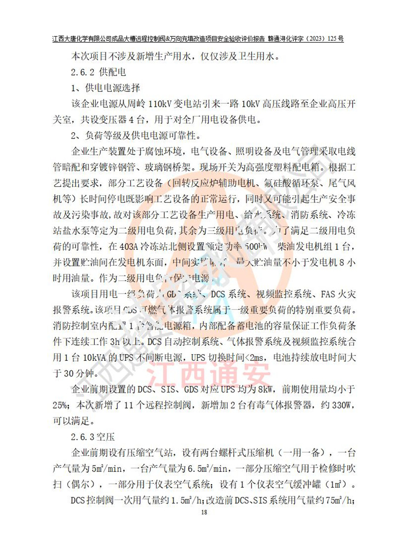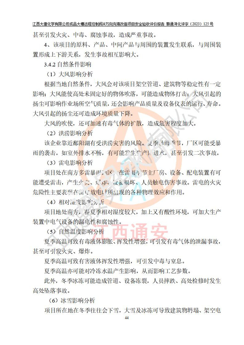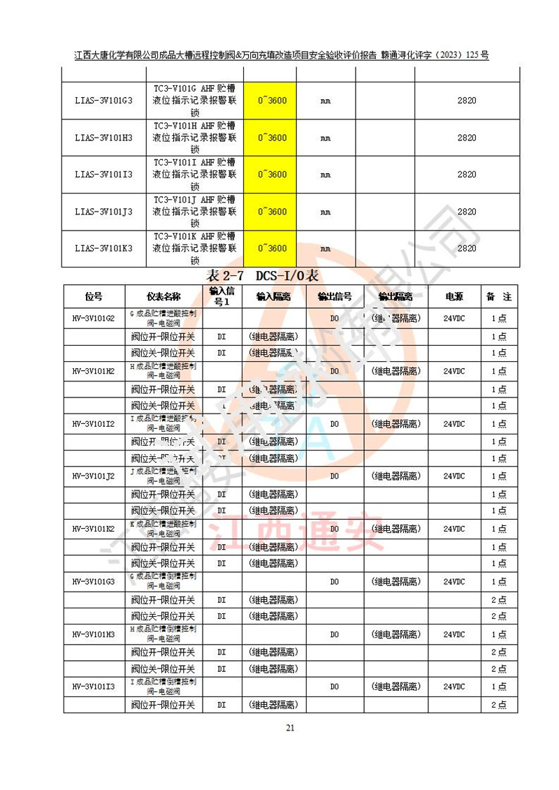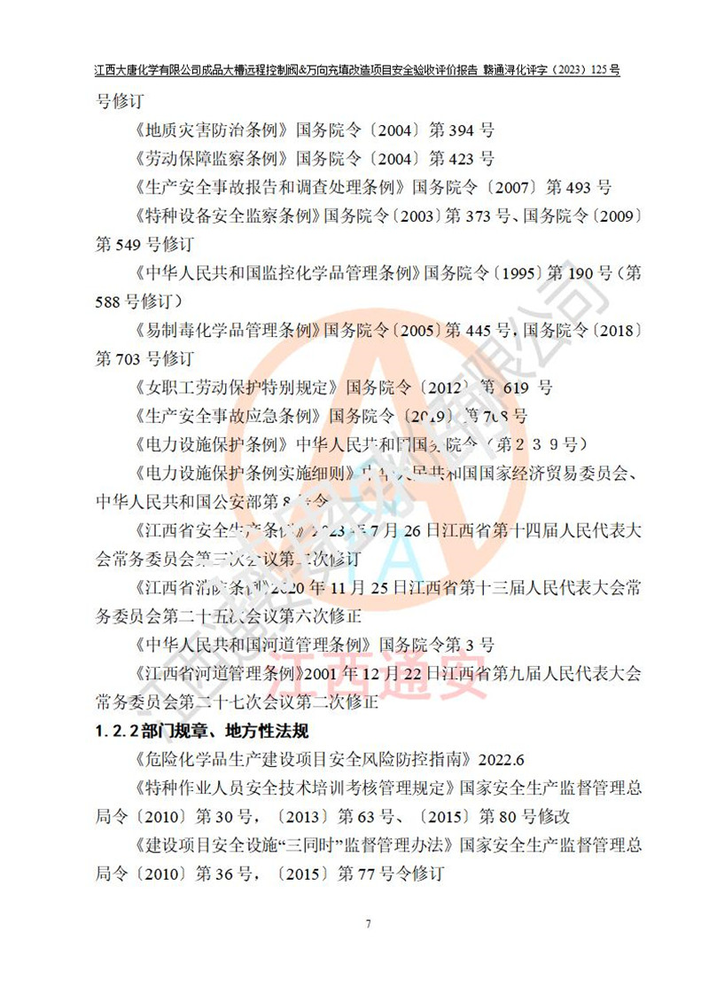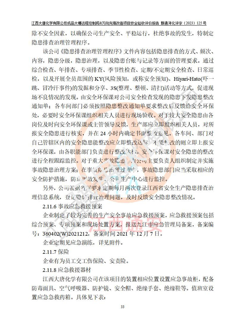 评价报告名称 | 江西大唐化学有限公司成品大槽远程控制阀&万向充填改造项目安全验收评价报告 | ||||