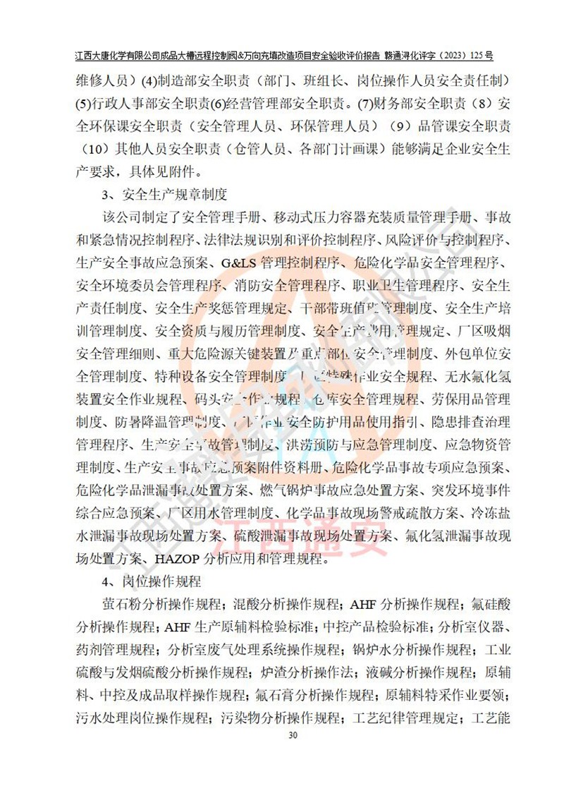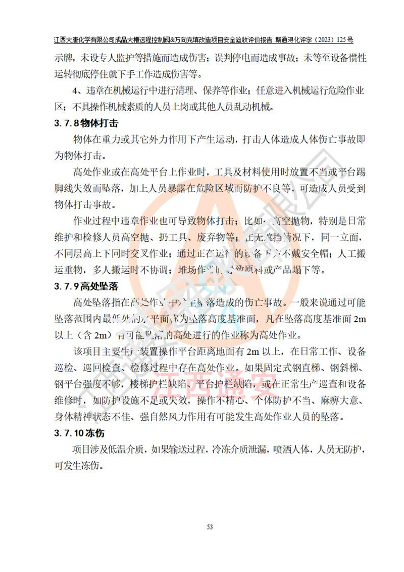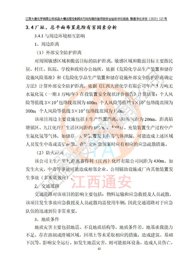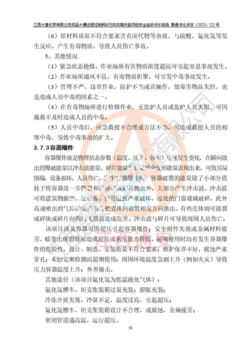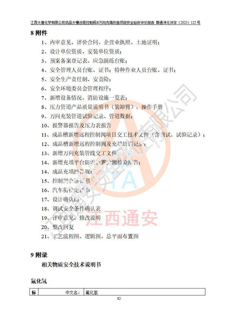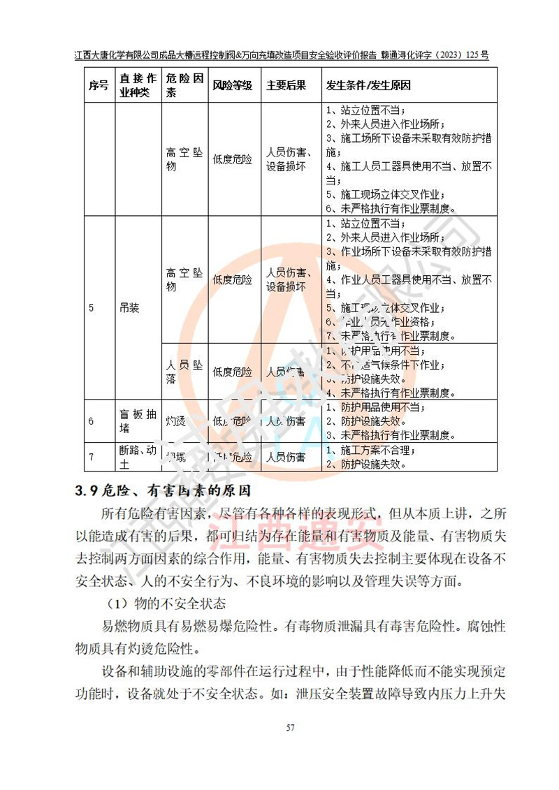 评价报告名称 | 江西大唐化学有限公司成品大槽远程控制阀&万向充填改造项目安全验收评价报告 | ||||