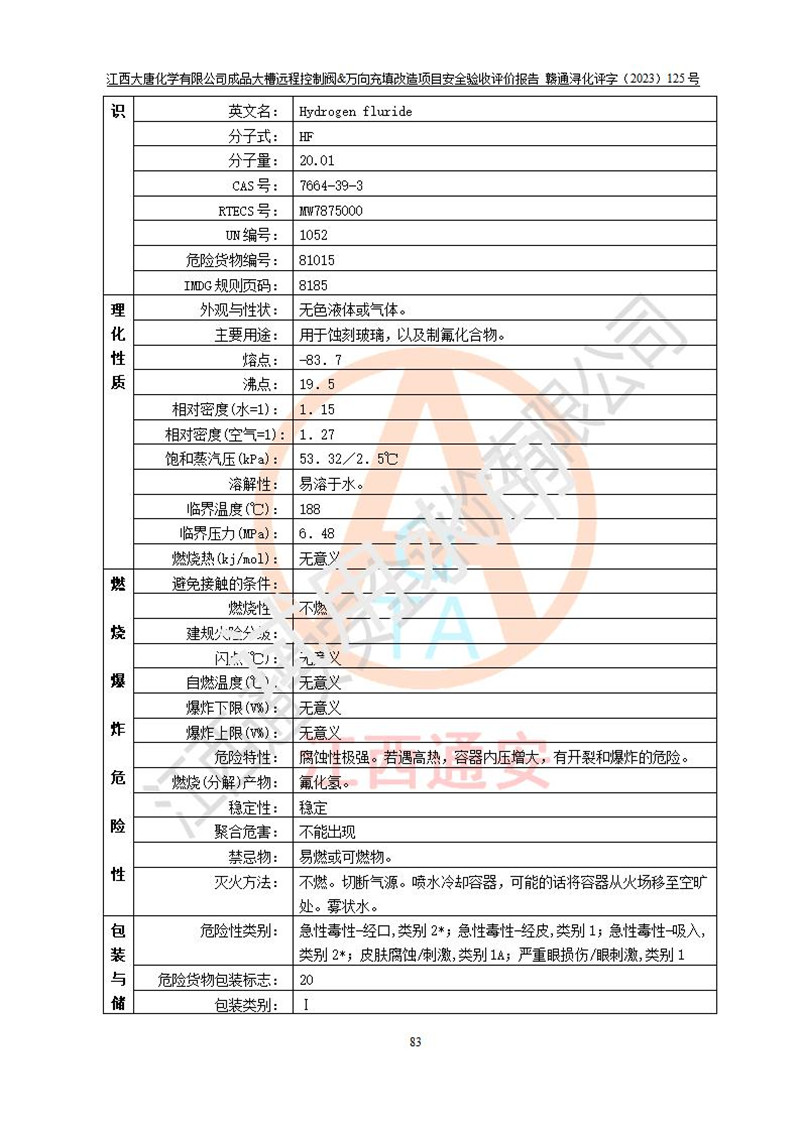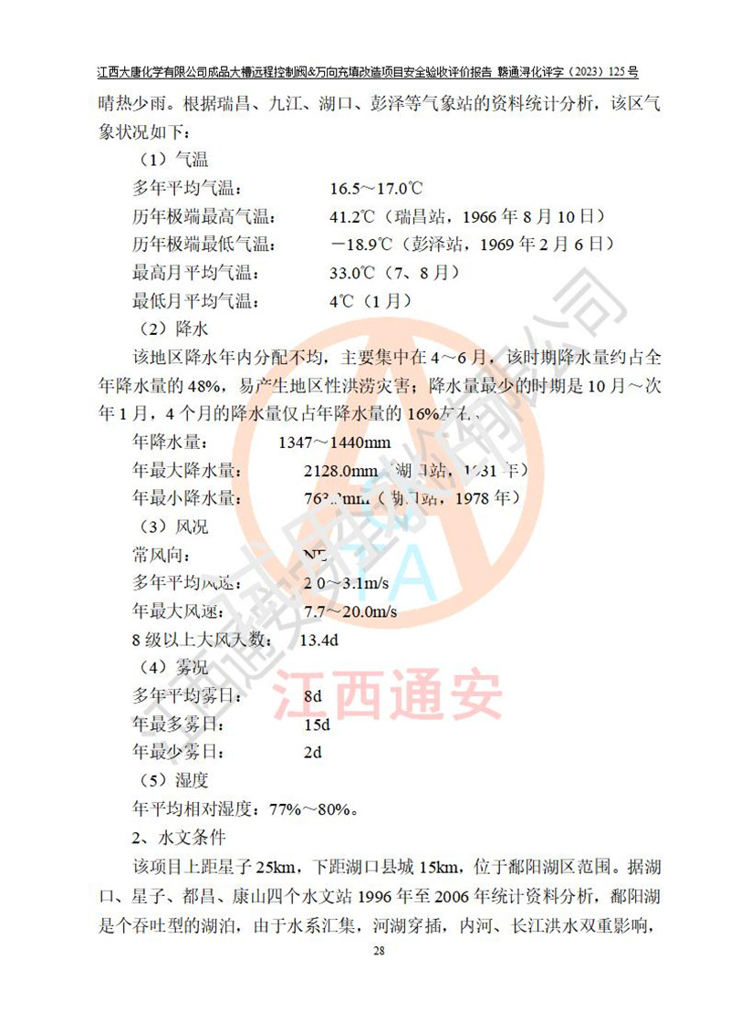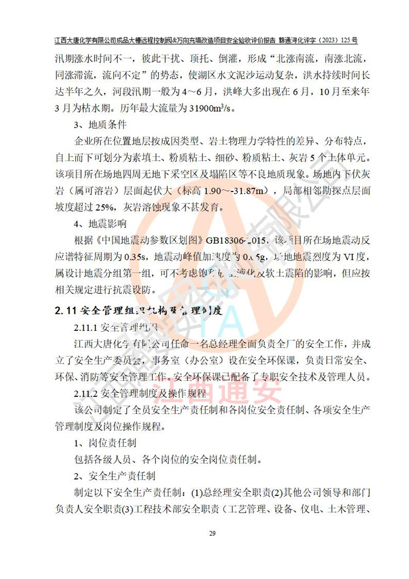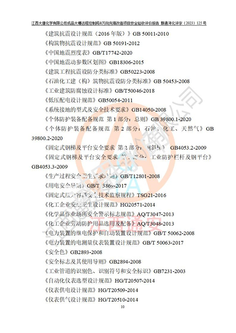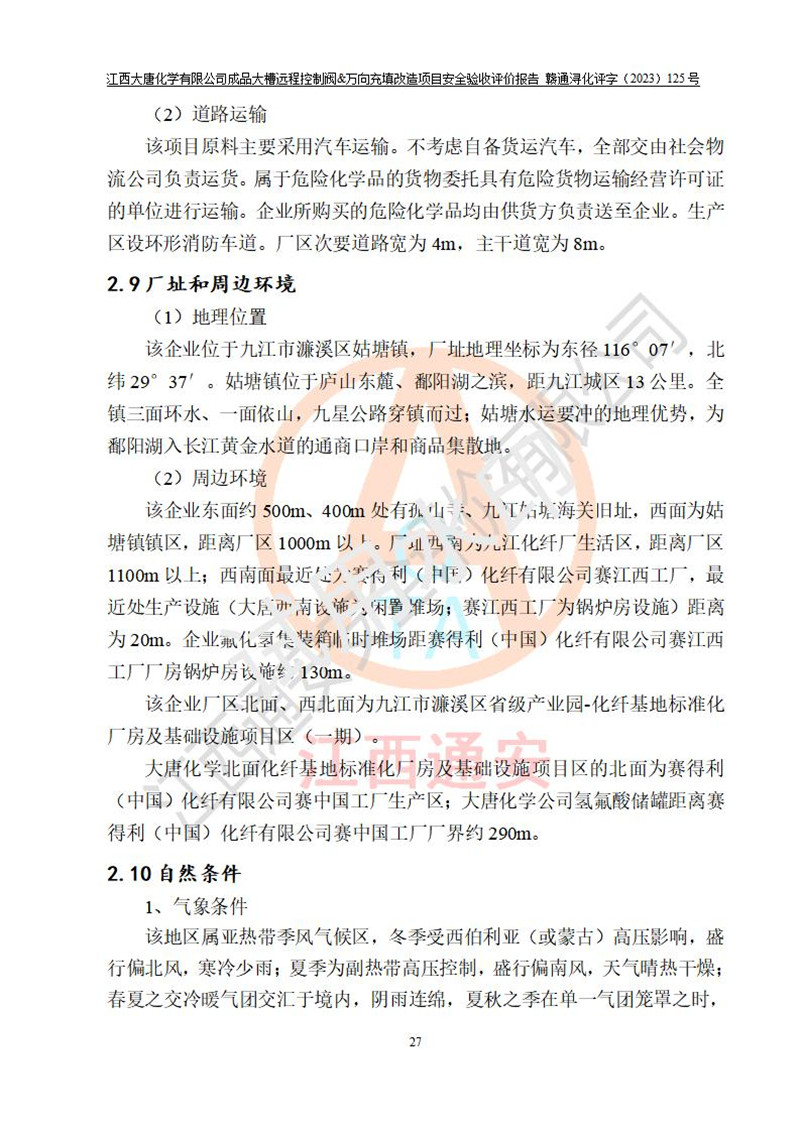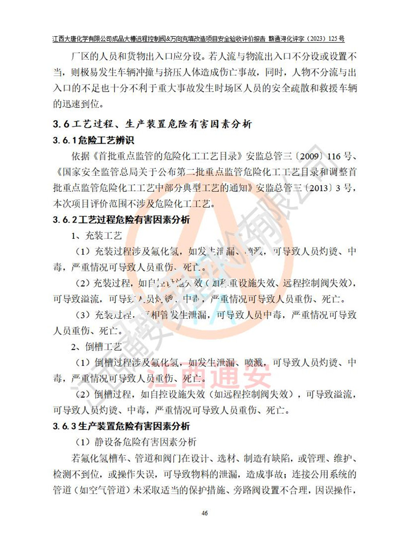 评价报告名称 | 江西大唐化学有限公司成品大槽远程控制阀&万向充填改造项目安全验收评价报告 | ||||