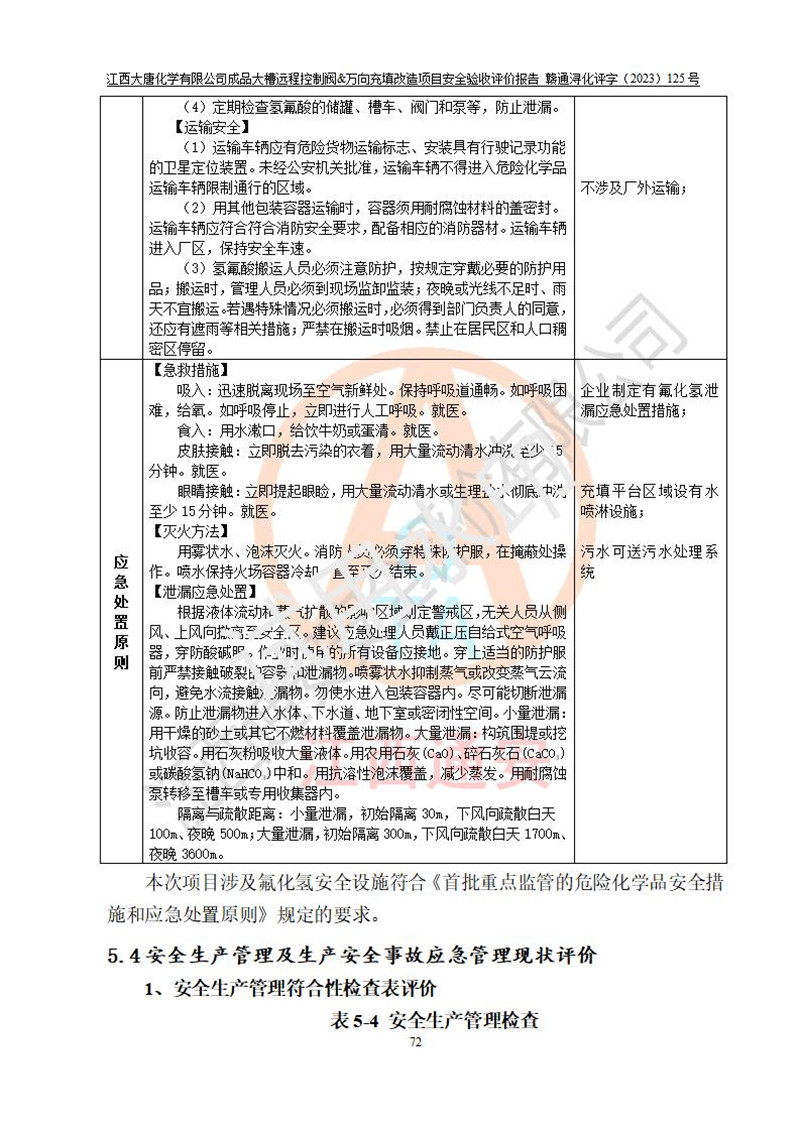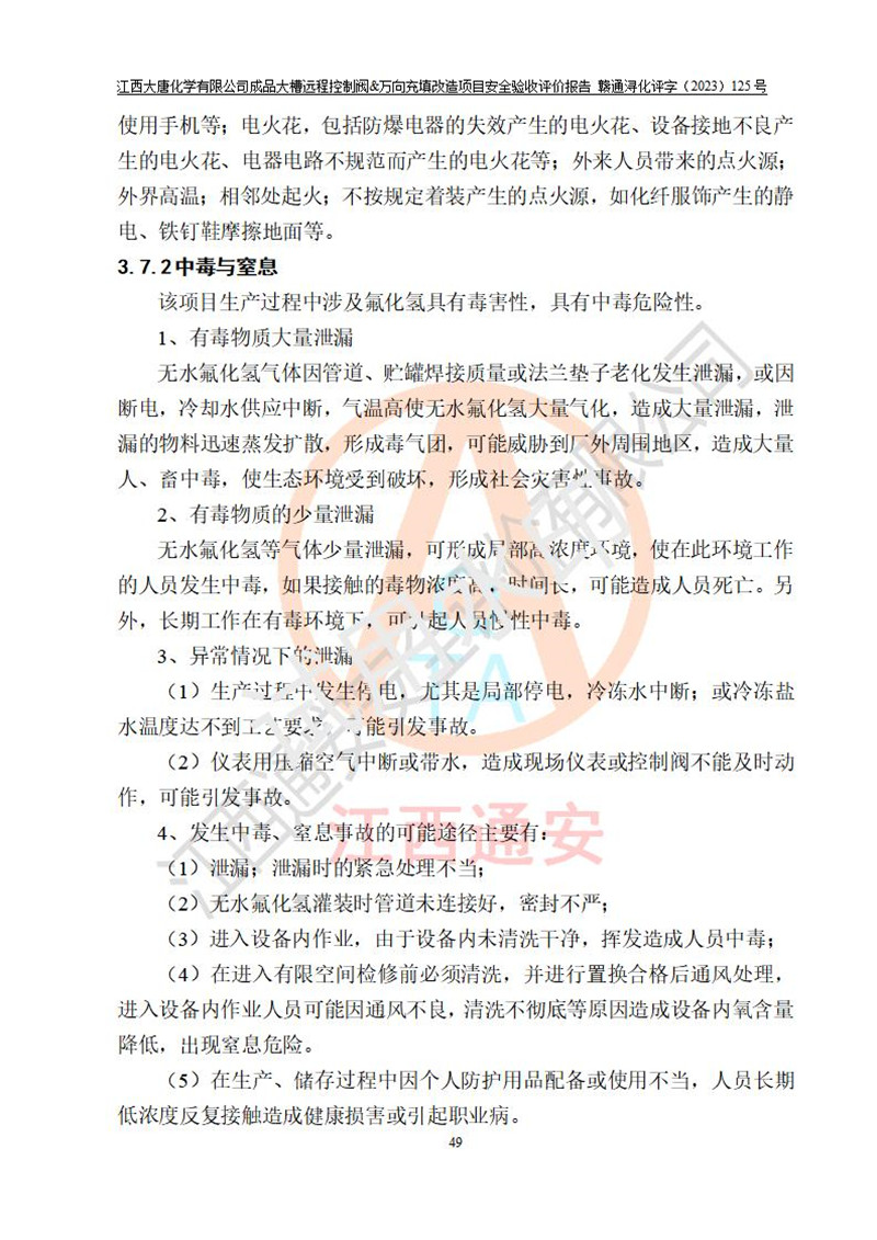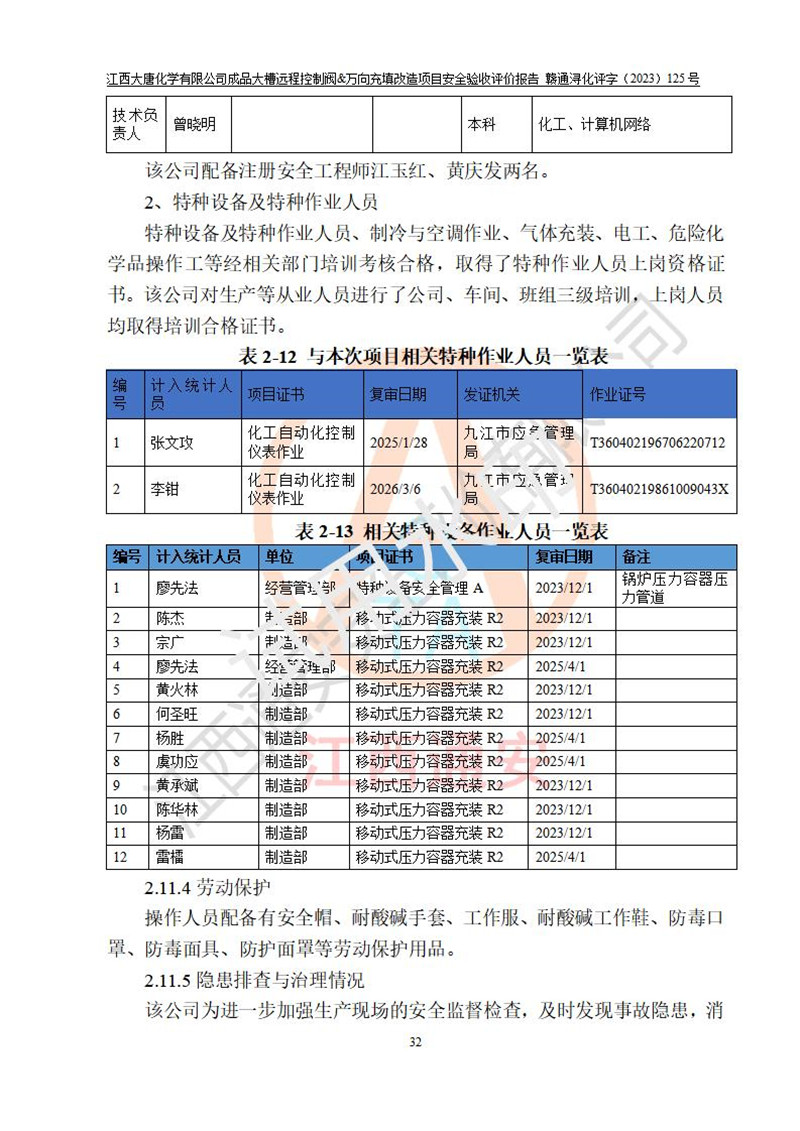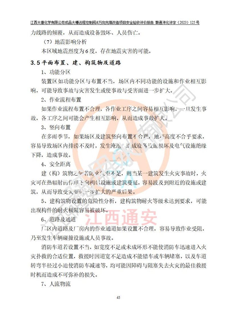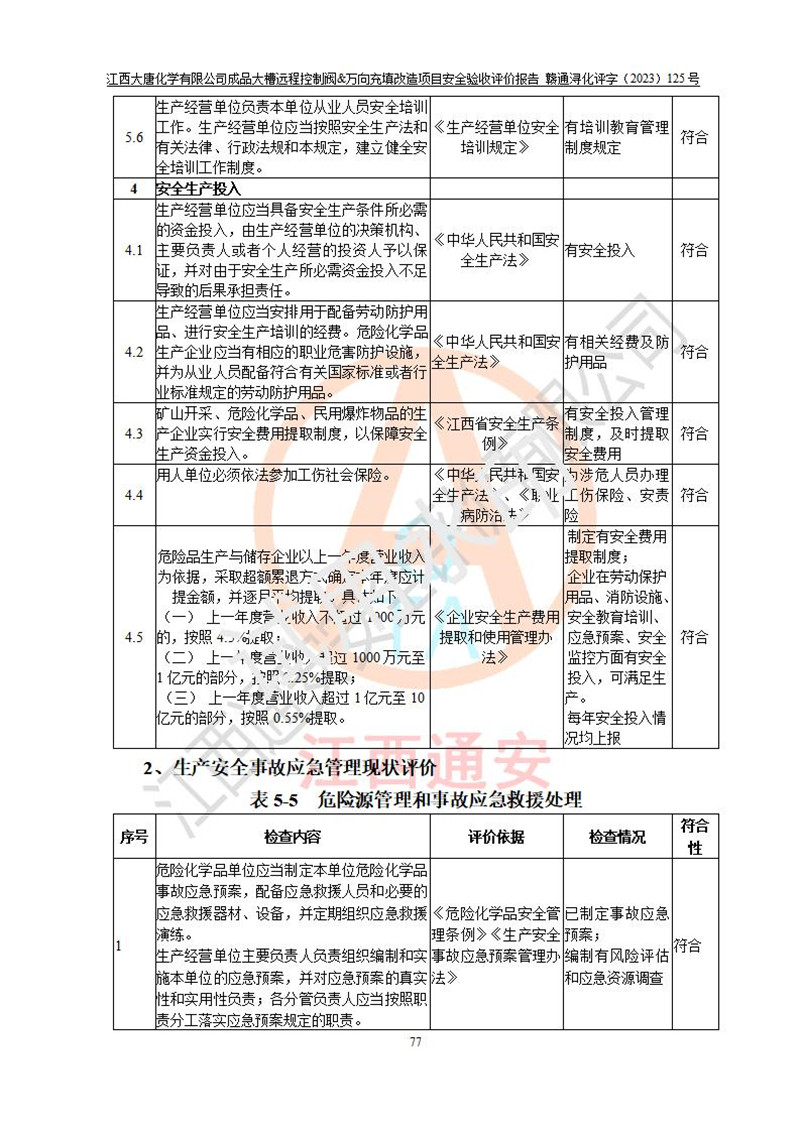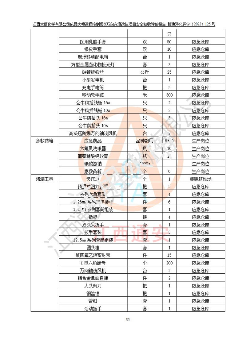 评价结论 | 江西大唐化学有限公司成品大槽远程控制阀&万向充填改造项目已按设计要求得到落实,具备竣工安全验收的条件。 | ||||
