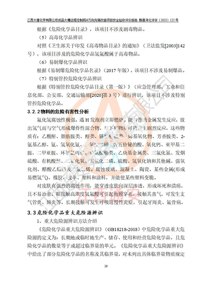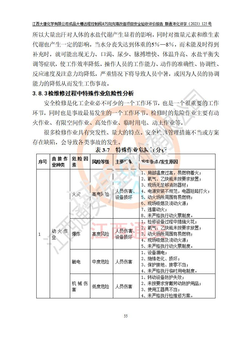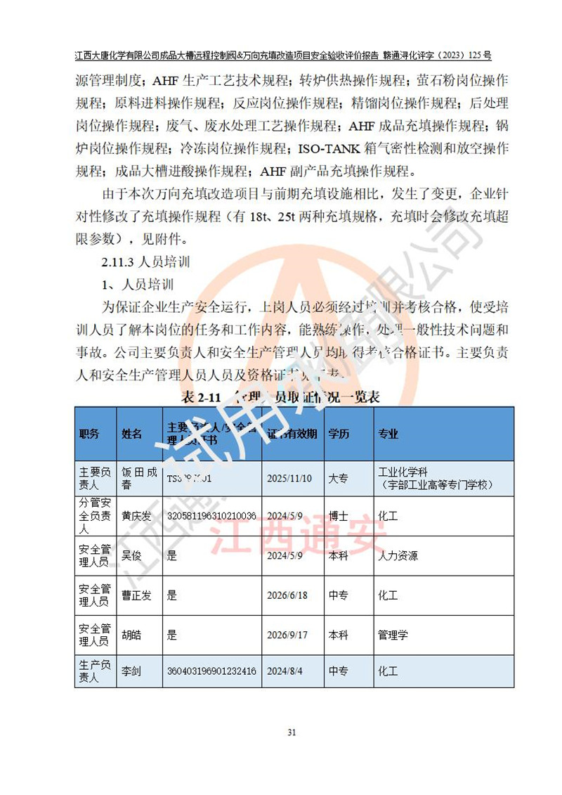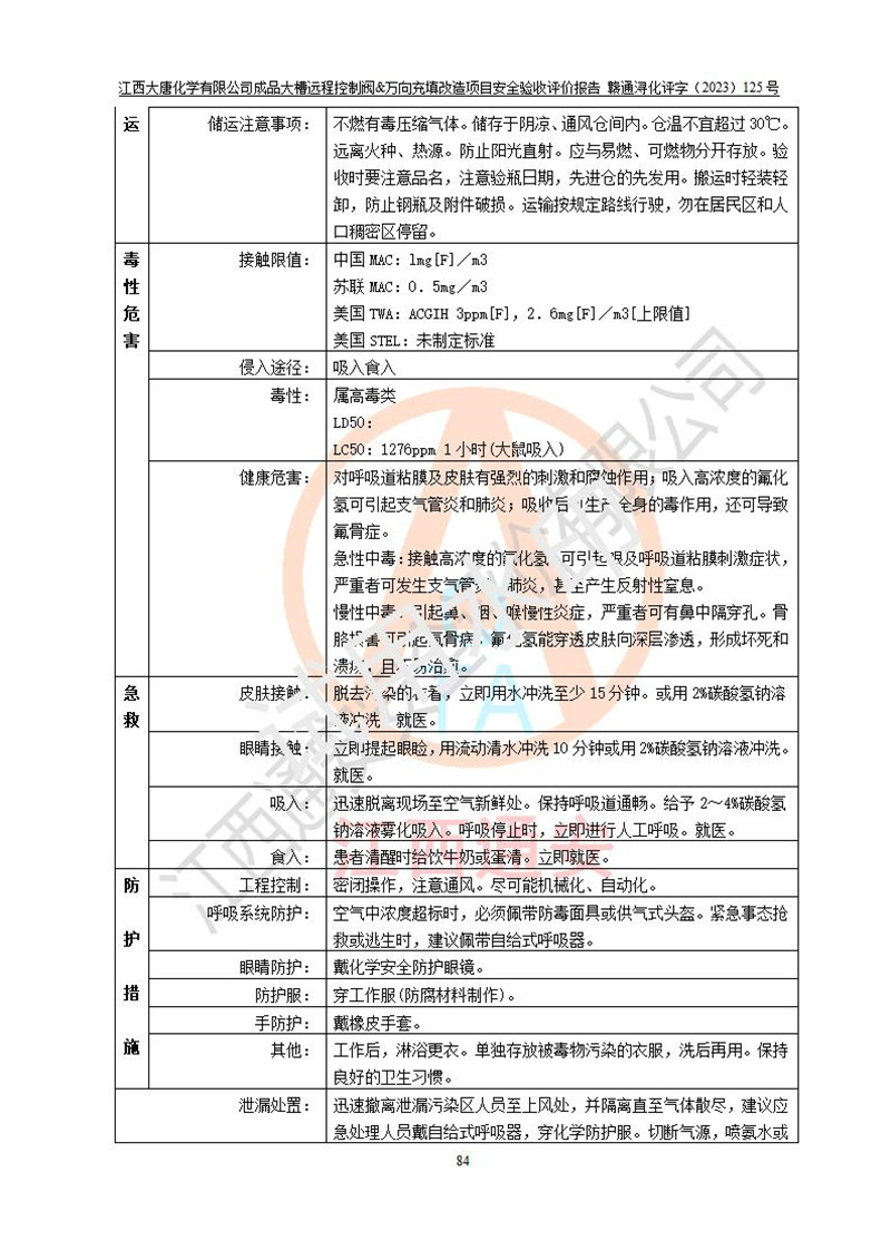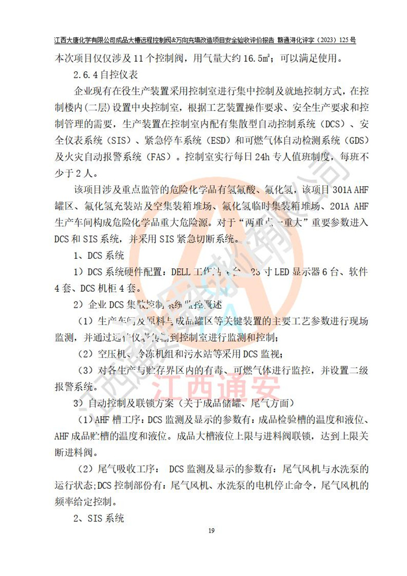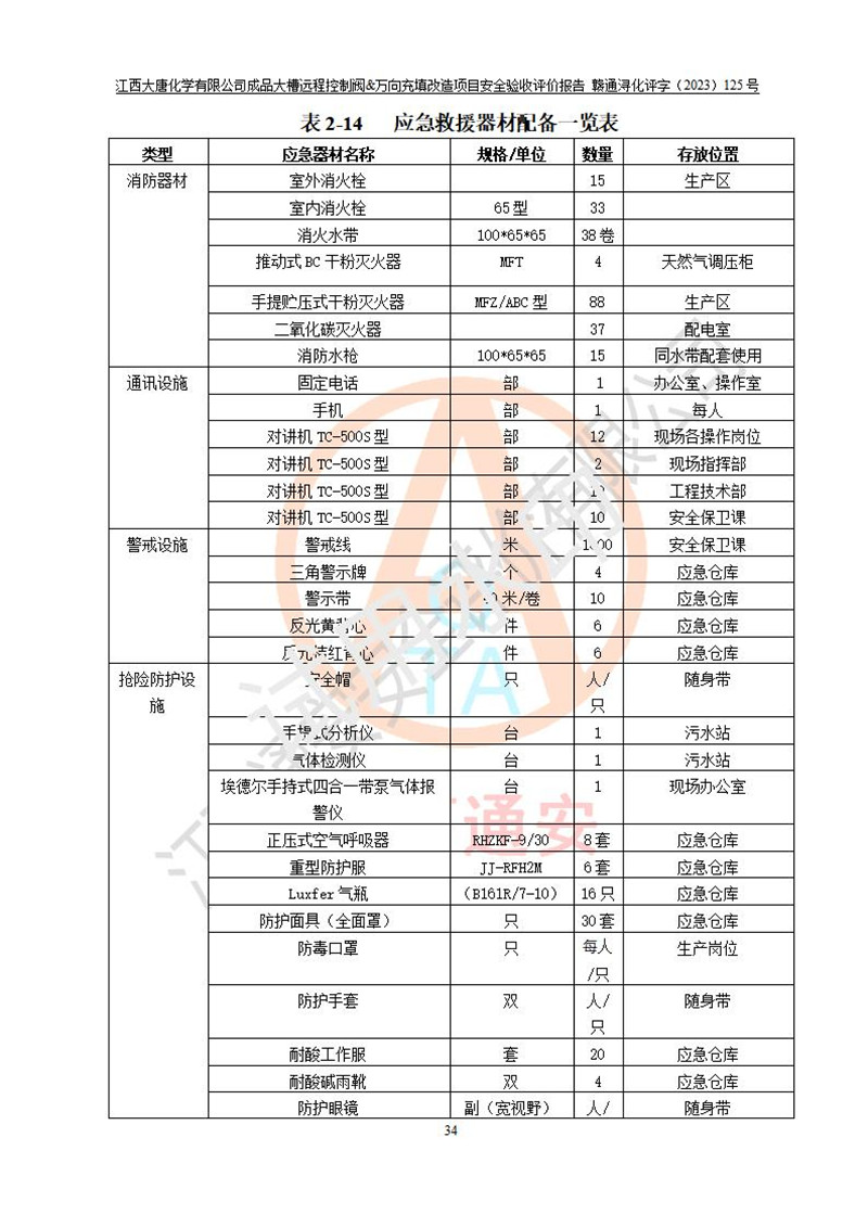 评价结论 | 江西大唐化学有限公司成品大槽远程控制阀&万向充填改造项目已按设计要求得到落实,具备竣工安全验收的条件。 | ||||