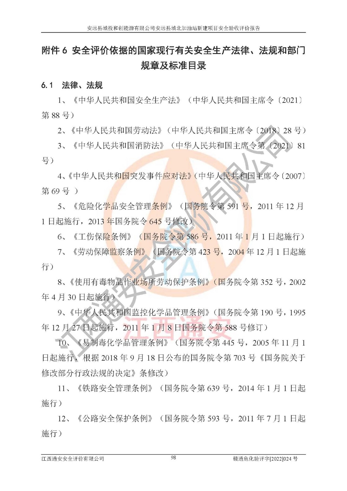 项目名称 | 安远县城投和创能源有限公司安远县城北加油站新建项目安全验收评价 | ||||