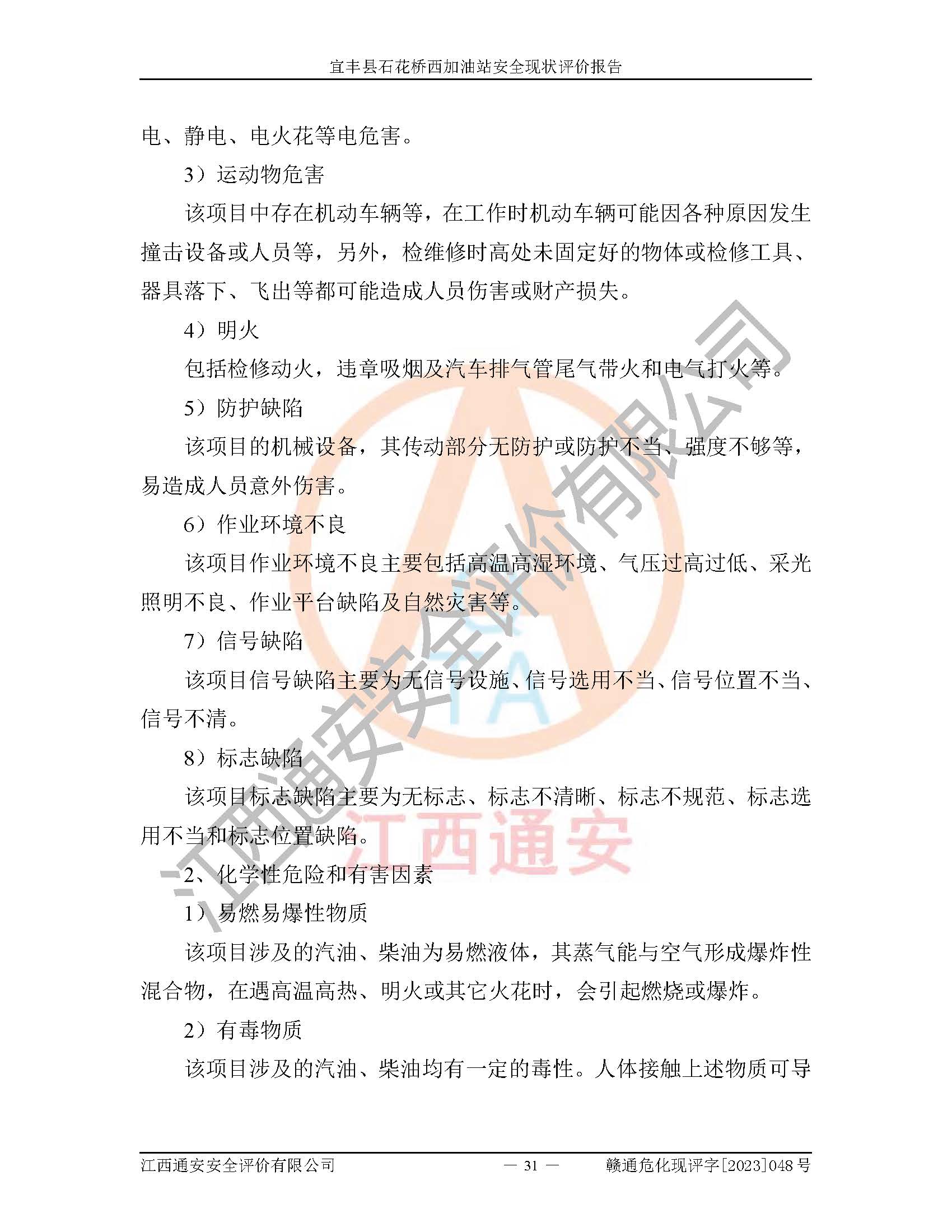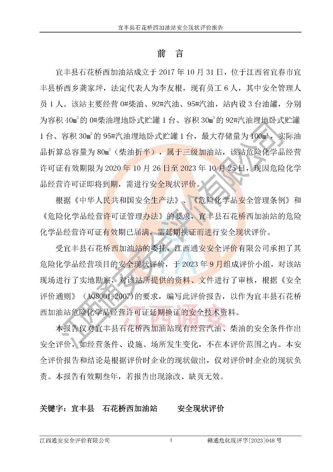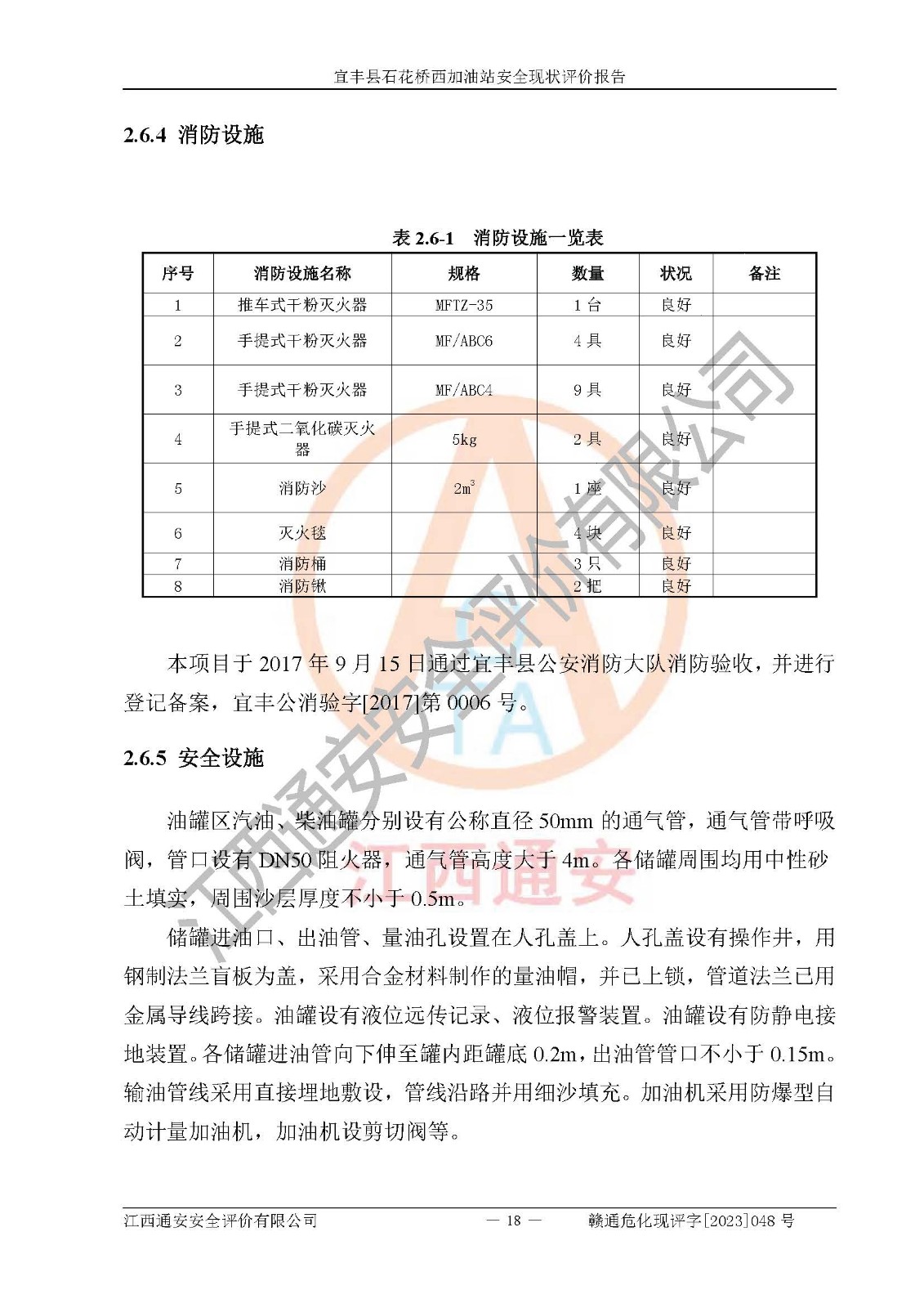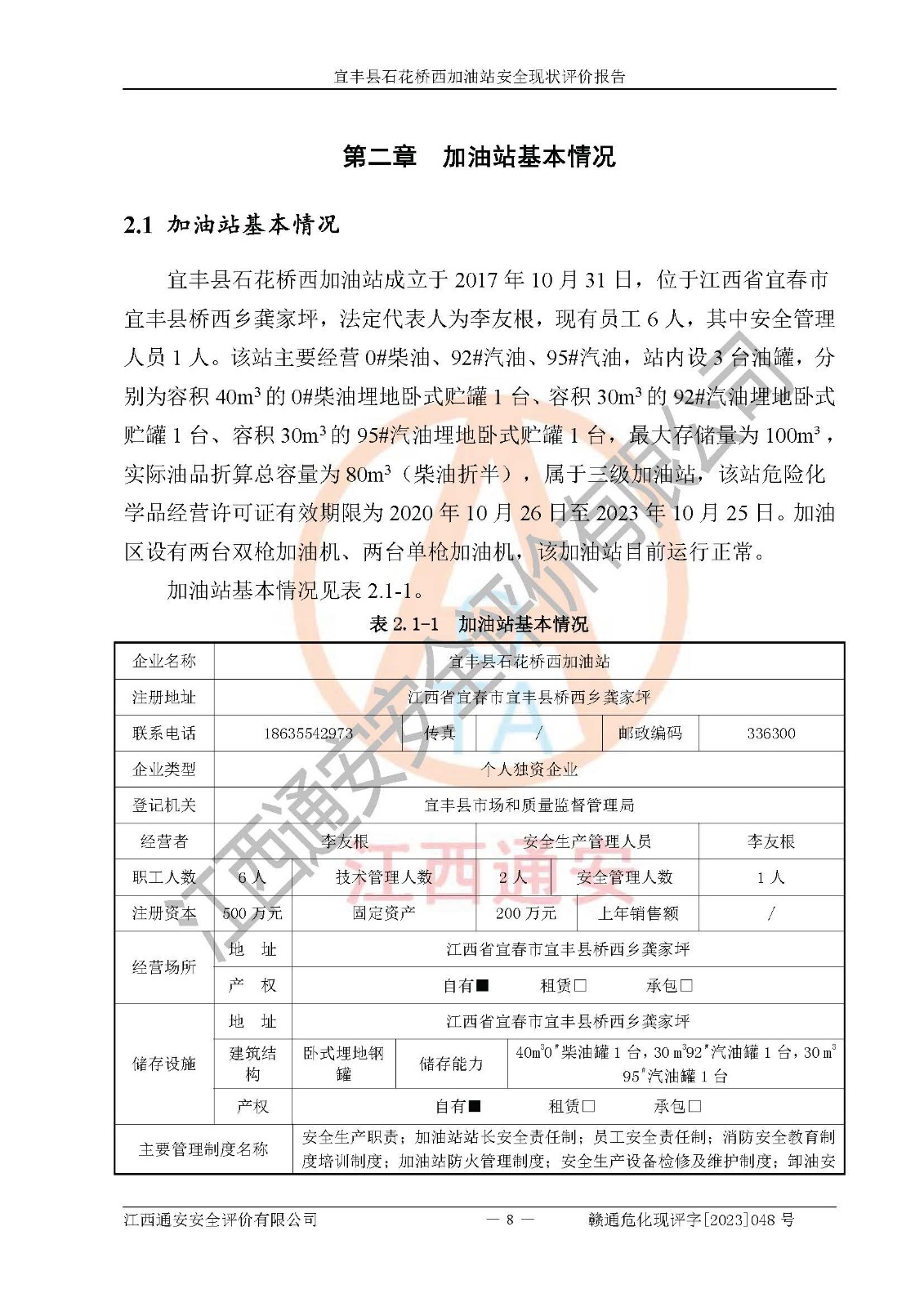 项目名称 | 宜丰县石花桥西加油站安全现状评价报告 | ||||