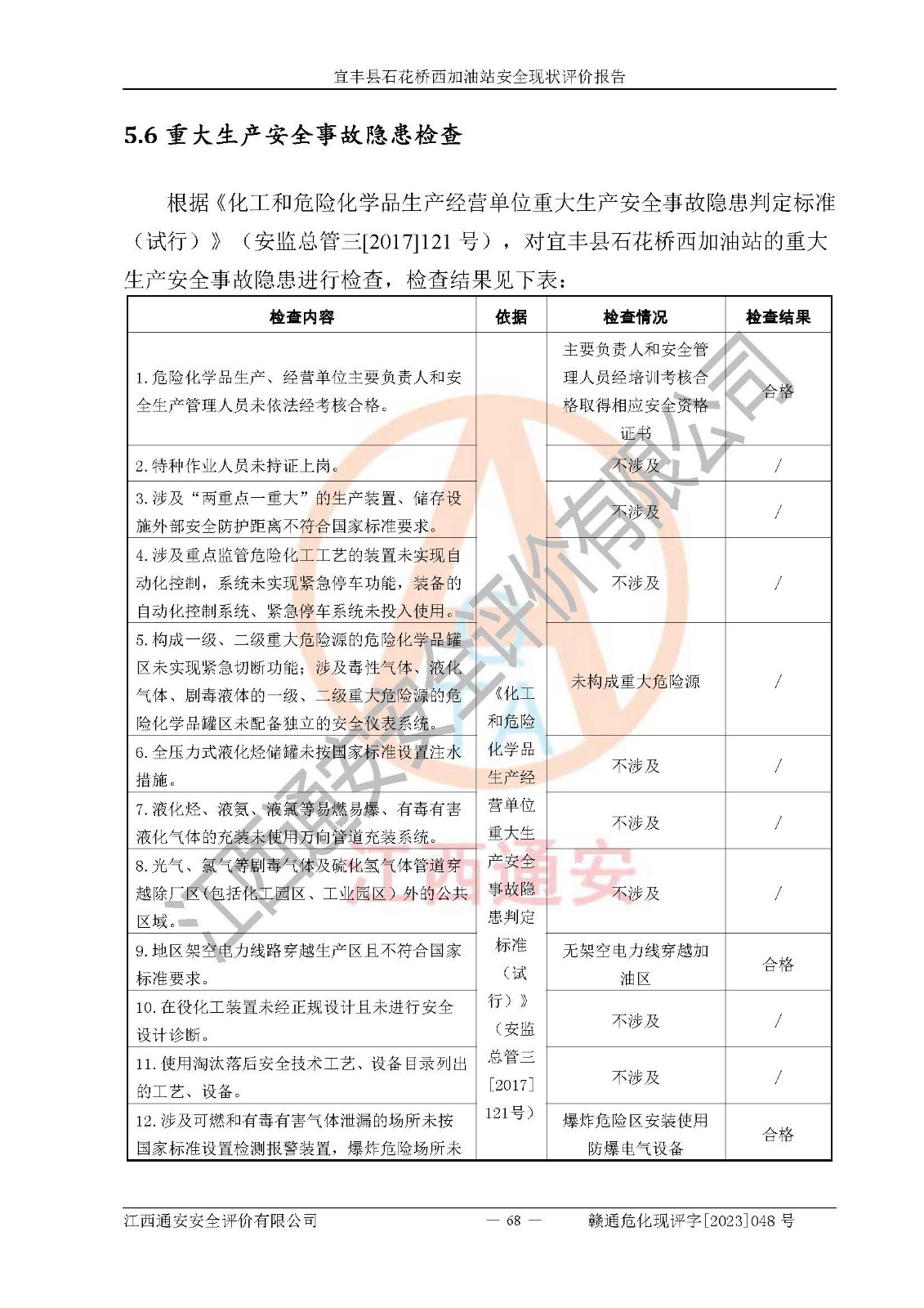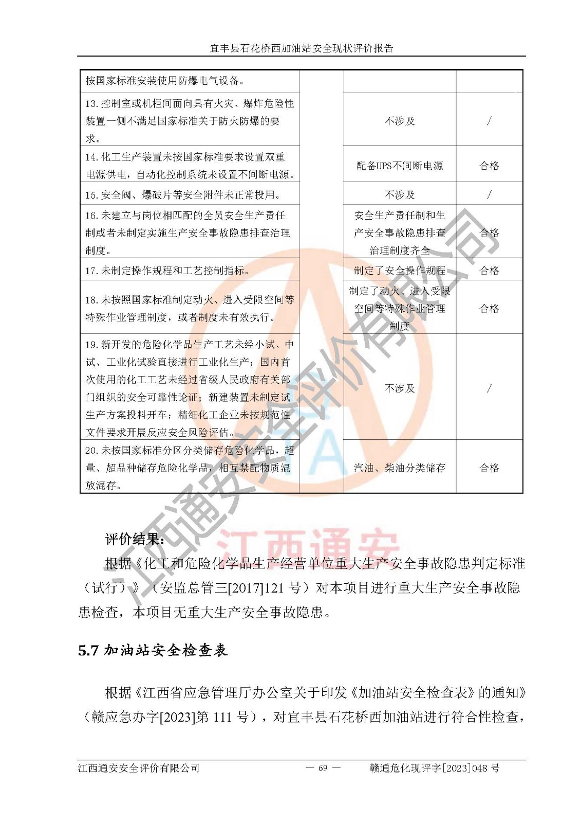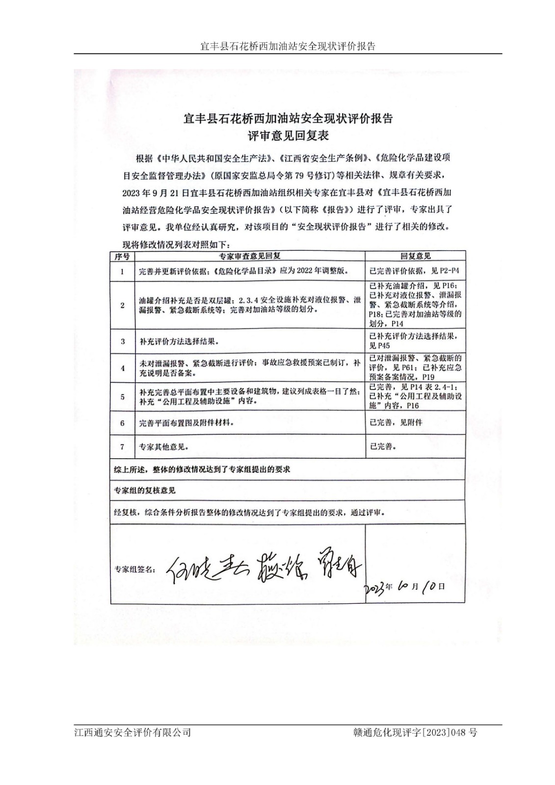 项目名称 | 宜丰县石花桥西加油站安全现状评价报告 | ||||