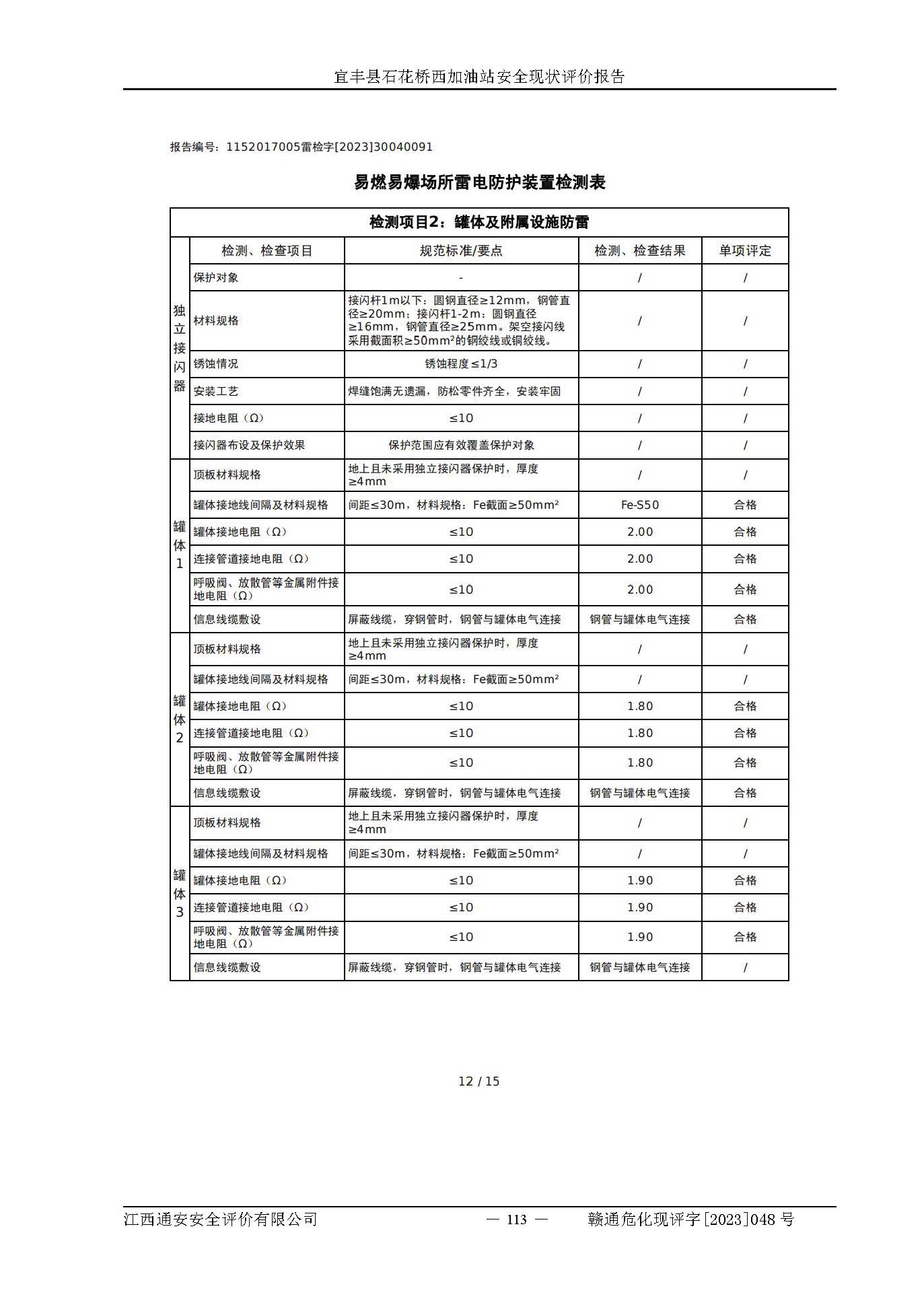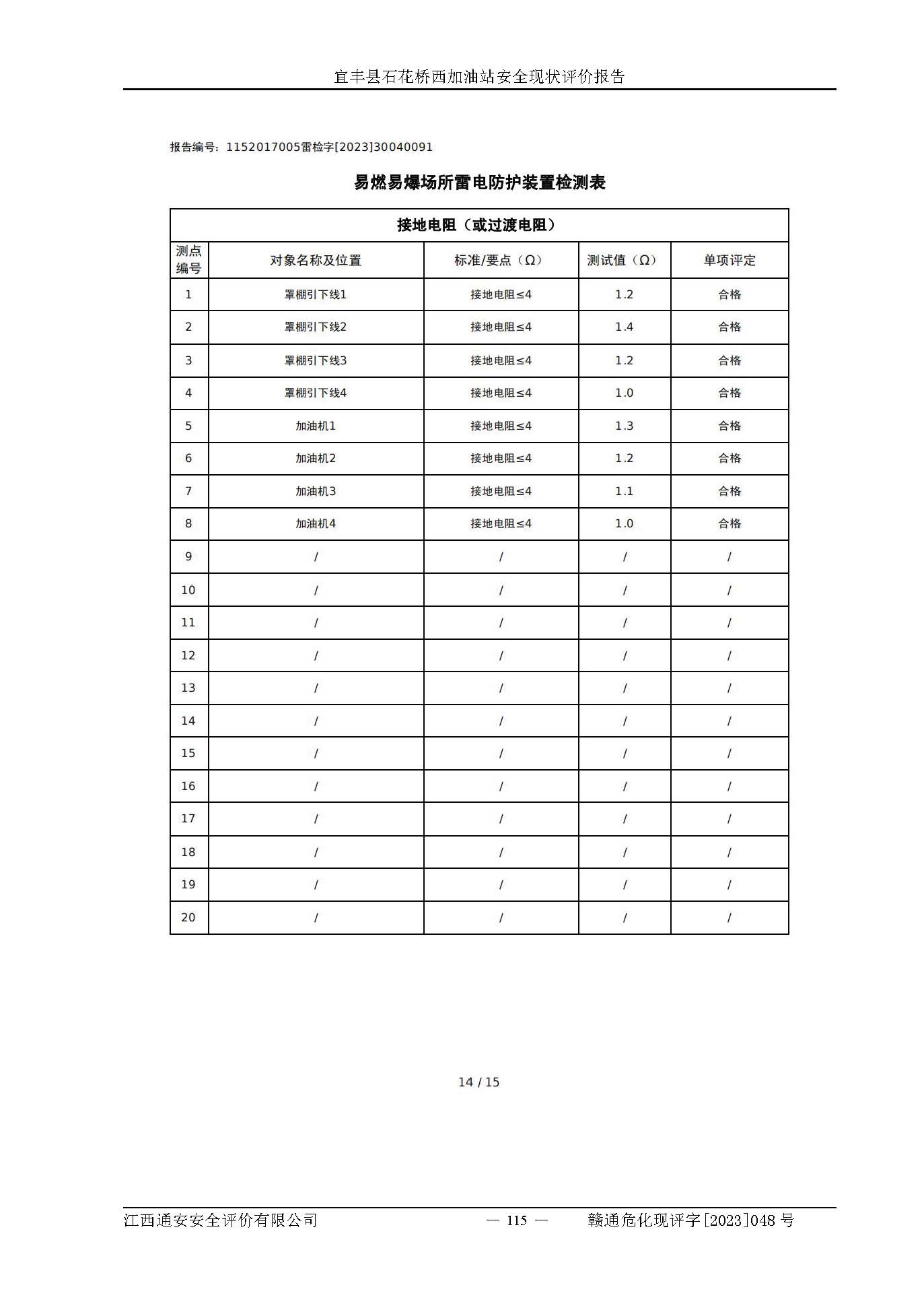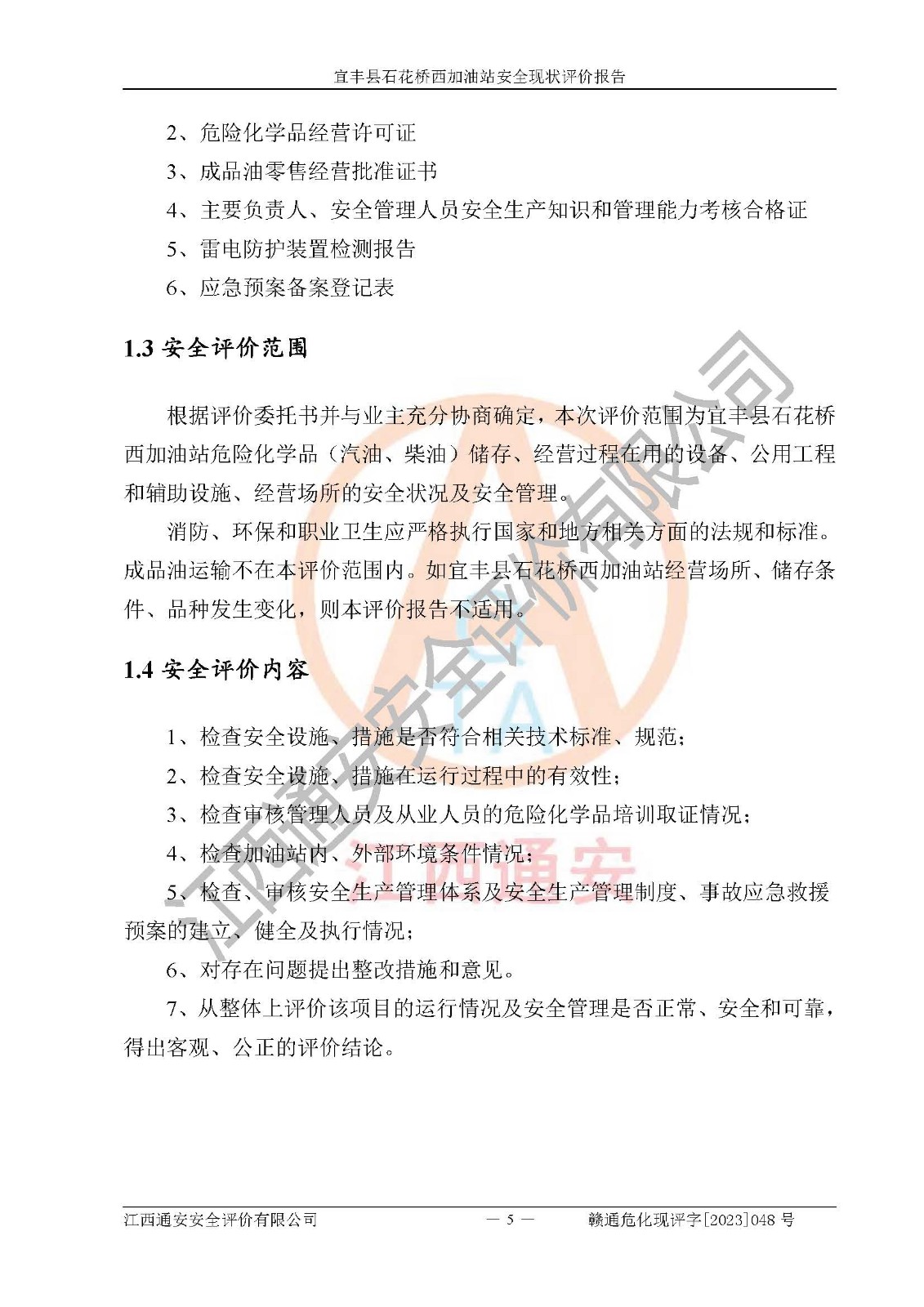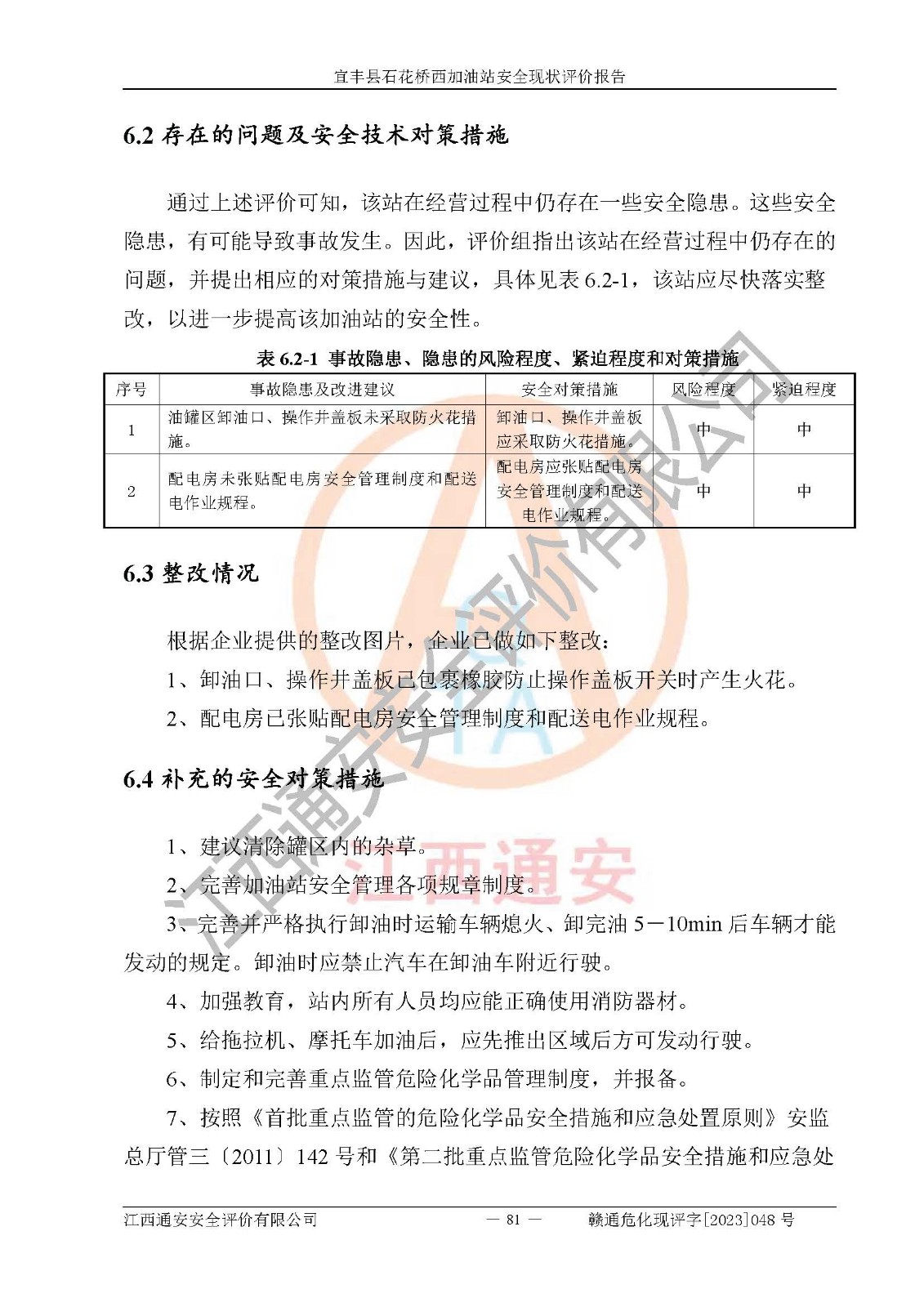 项目名称 | 宜丰县石花桥西加油站安全现状评价报告 | ||||