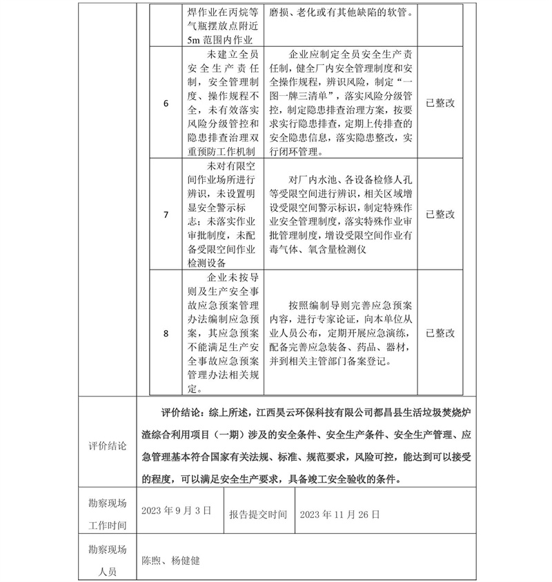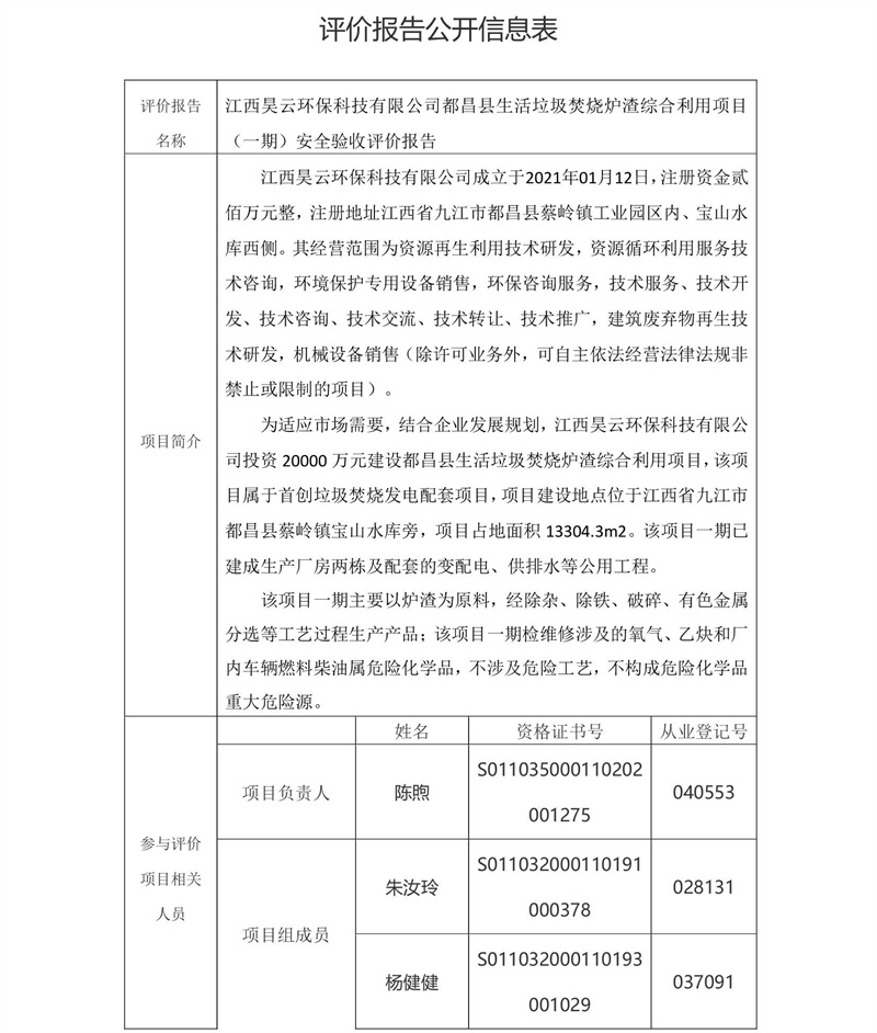 江西昊云**科技有限公司都昌县生活**焚烧炉渣综合利用项目(一期)安全验收评价报告