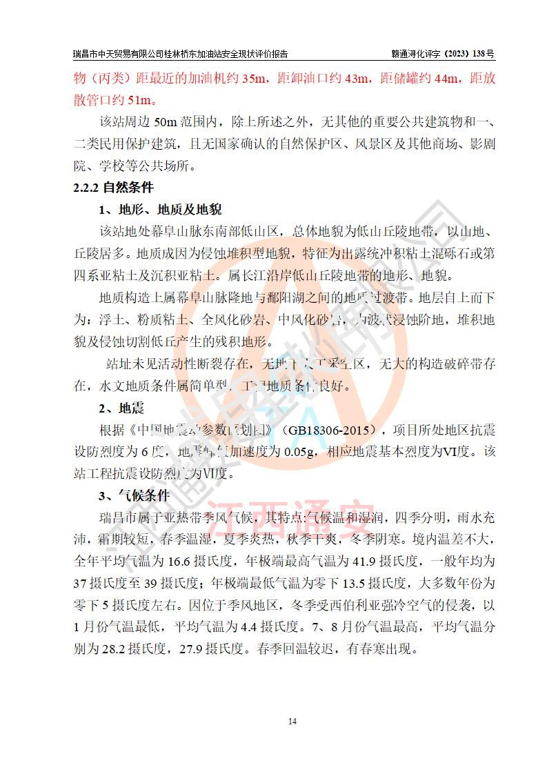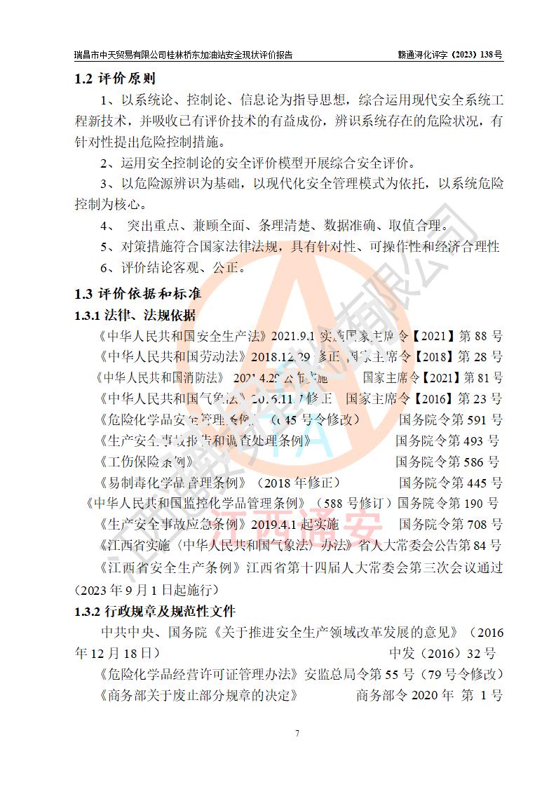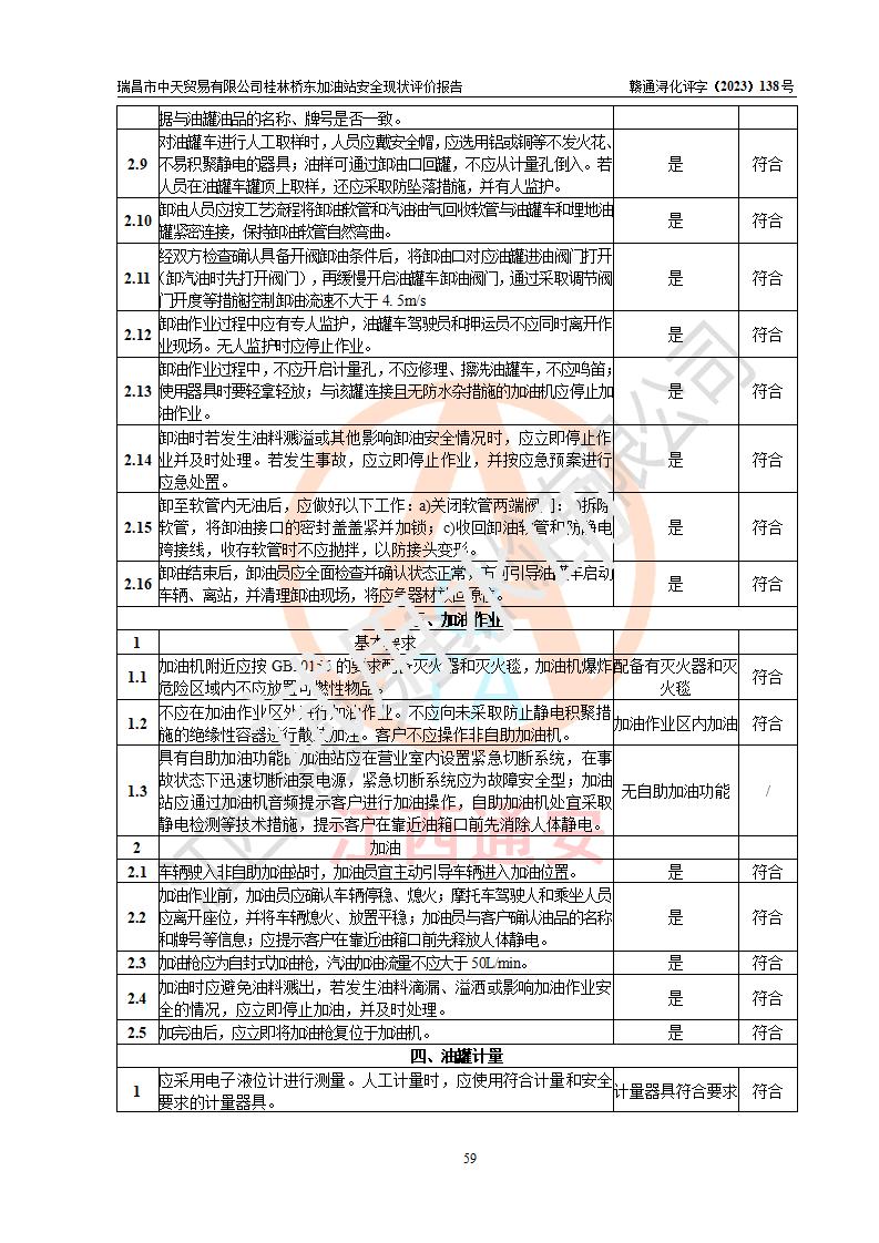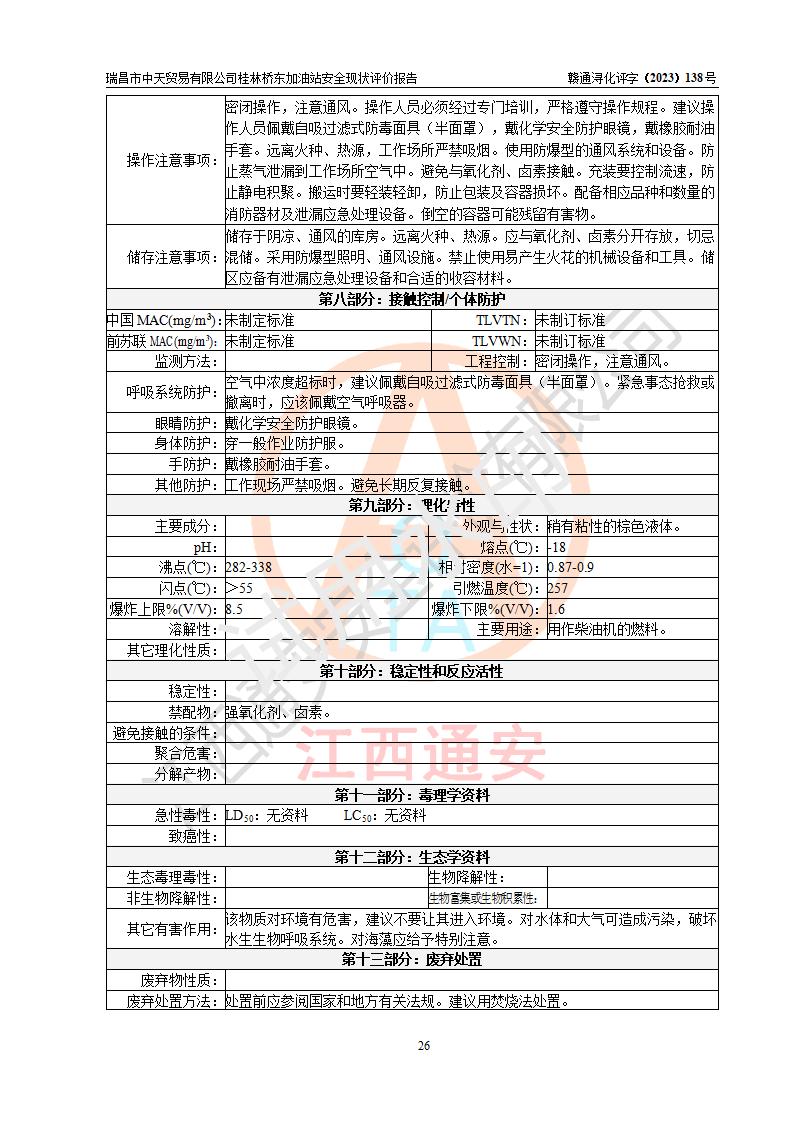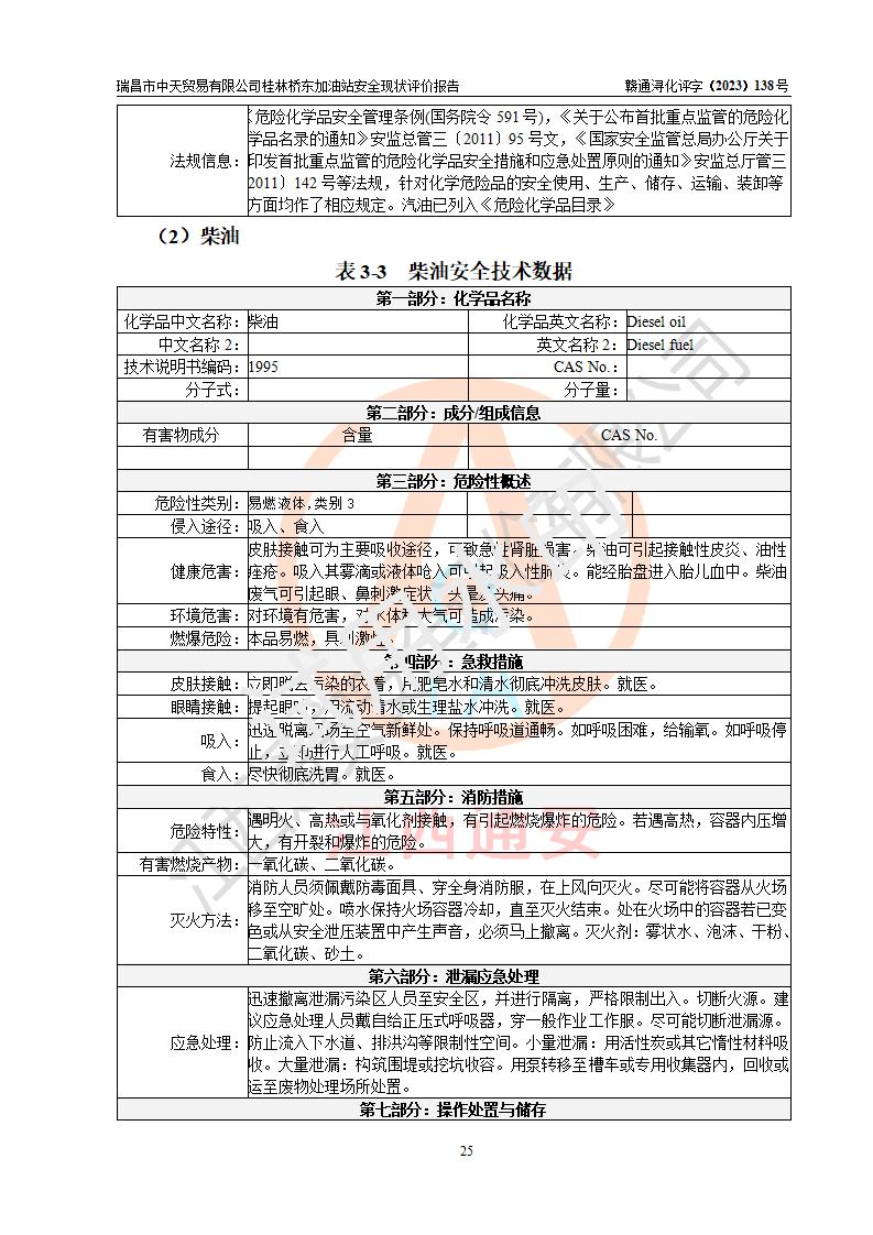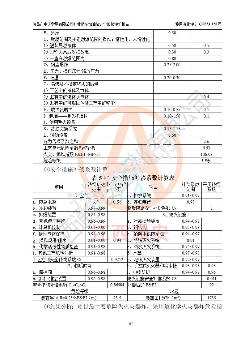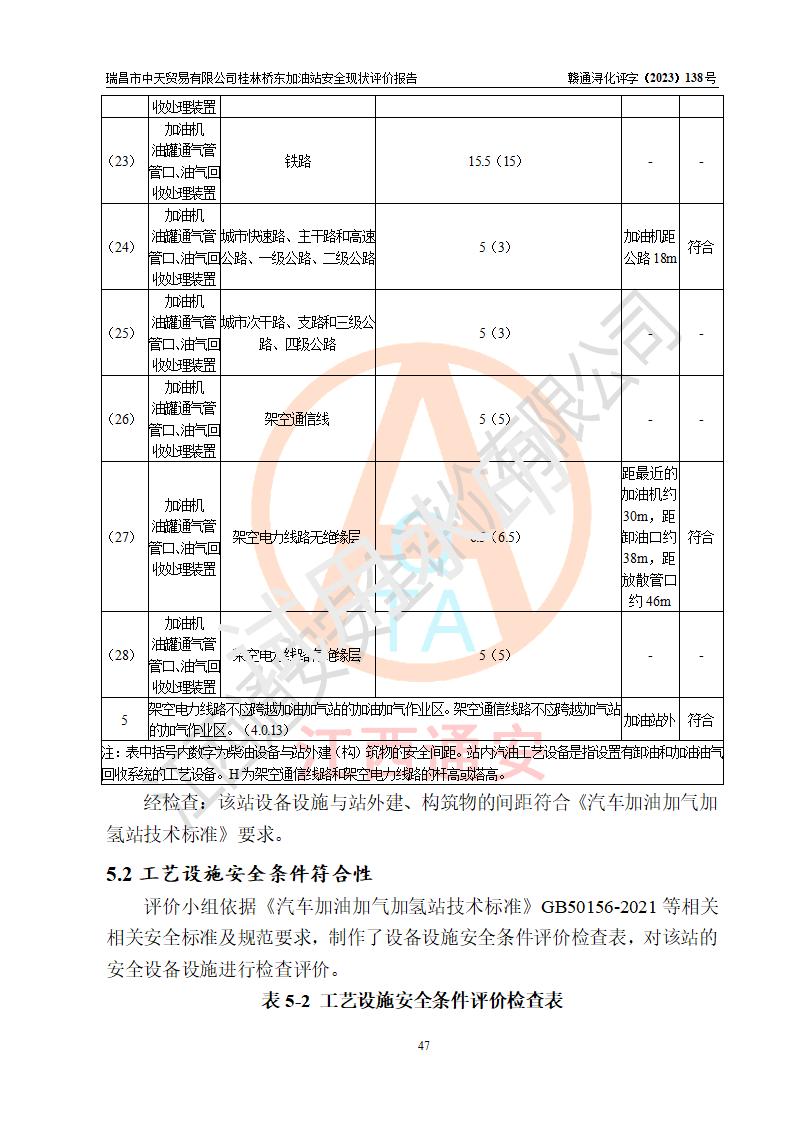瑞昌市中天贸易有限公司桂林桥东加油站是一家专门从事成品油(汽油、柴油)、润滑油零售,预包装食品兼散装食品、卷烟(凭许可证)、日用品、液化气钢瓶、灶具及配件零售,汽车清洗服务的有限责任公司分公司,注册地址为江西省九江市瑞昌市瑞肇公路南侧。加油站现有从业人员6名,其中安全管理人员1人,加油站负责人刘凯(经营者),加油站危险化学品经营单位主要负责人丁洞仙(加油站站长)。 该加油站站区占地面积3330.8m2(约5亩)。站区内设置有1台双枪单油品潜油泵程控燃油加油机和3台双枪单油品自吸式程控燃油加油机及配套的工艺管线,25m3的95#汽油卧式双层储罐1台,25m3的92#汽油汽油卧式双层储罐2台,30m3的0#卧式柴油储罐1台,油品储罐总容积为105m3(折算为汽油为90m3),按现行《汽车加油加气加氢站技术标准》对加油站的等级划分原则,该站属三级加油站。 该站在经营成品油过程中涉及的主要物料为汽油和柴油,按**十部、局联合公告〔2022〕第8号公告修改公布的《危险化学品目录》,汽油和柴油属于危险化学品。根据**安全监管总局安监总管三〔2011〕95号文件公布《首批重点监管的危险化学品名录》和应急管理部等4部公告第3号《特别管控危险化学品目录(**版)》,汽油属于**重点监管和特别管控的危险化学品。 该站由九江市应急管理局换发了《危险化学品经营许可证》(证号:赣九危化经字〔2020〕000376号),**期限2021年01月23日至2024年01月22日。根据《危险化学品经营许可证管理办法》(**安监总局第55号令,第79号令修改)的要求,危险化学品经营许可证的**期为3年。**期满后,企业需要继续从事危险化学品经营活动的,应当在危险化学品经营许可证**期满3个月前,向发证机关提出危险化学品经营许可证的延期申请,申请证照延期的所有储存、经营危险化学品的单位,应当提供安全评价报告。瑞昌市中天贸易有限公司桂林桥东加油站目前正在做危险化学品经营许可证延期换证的准备工作,故委托江西通安安全评价有限公司承担其加油站经营成品油安全条件现状评价工作。 江西通安安全评价有限公司接受委托后,组织了评价组对该加油站进行了现场踏勘,对加油站零售经营成品油的设施、设备、装置实际运行状况及管理状况进行了实地调查、分析,检查该站是否符合《危险化学品安全管理条例》、《危险化学品经营许可证管理办法》中规定的经营单位应具备的基本条件。从安全管理角度检查和评价该站对安全法规的执行情况,从安全技术角度检查项目中安全设施是否符合**有关安全生产的法律、法规和标准。评价组运用安全系统工程的方法,进行危险、有害因素的识别及其危险度的评价,查找该系统生产运行中存在的事故隐患并判定其危险程度,提出合理可行的安全对策措施及建议,在此基础上,根据加油站加油作业工艺程序、站区内功能区域特点,划分了评价单元;对划分的评价单元及单元内的危险、有害因素选择了相应的安全评价方法逐项进行分析、评价,提出相应的预防和控制对策措施;在此基础上完成了安全评价报告初稿,经评价公司内部五级审核程序,及加油站现场存在的安全隐患**落实整改后出具《瑞昌市中天贸易有限公司桂林桥东加油站安全现状评价报告》,以作为该企业申请《危险化学品经营许可证》延期的安全技术依据。 |