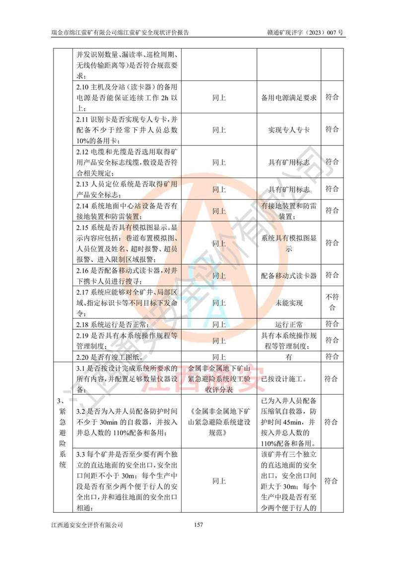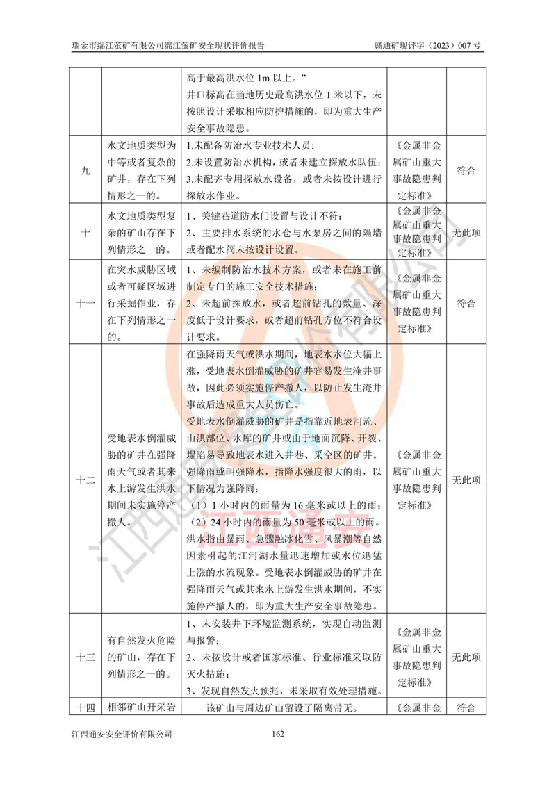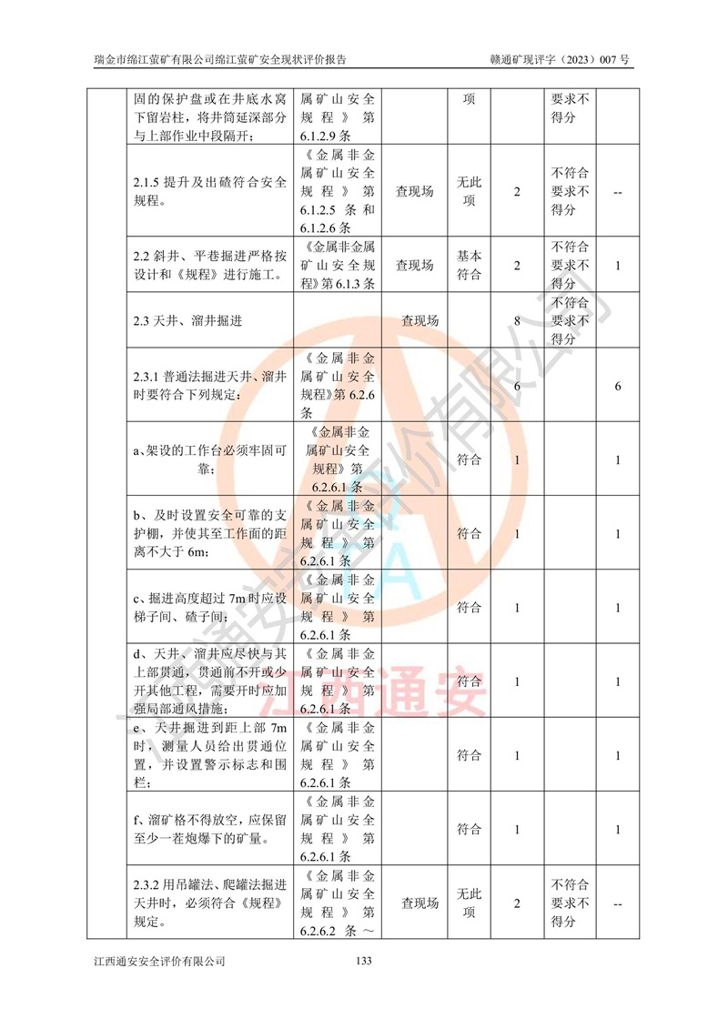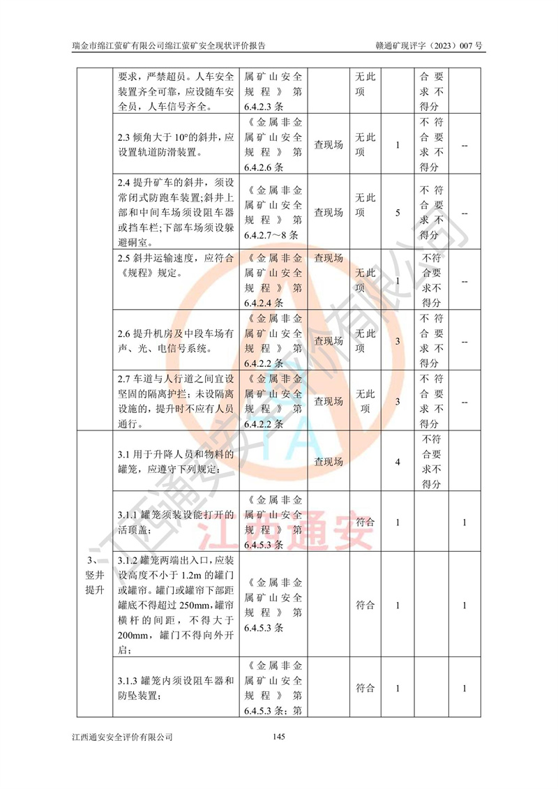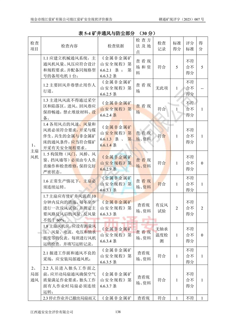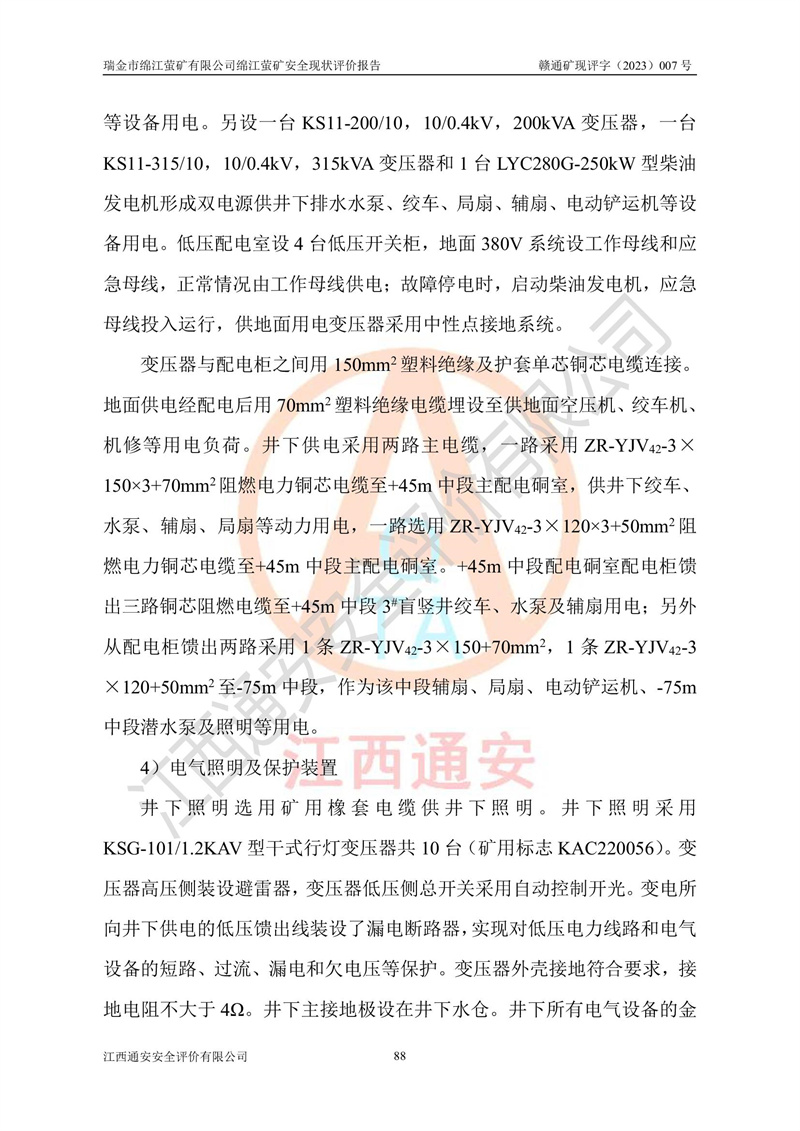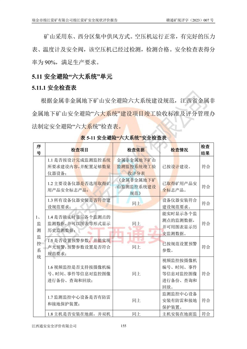 绵江萤矿矿区位于瑞金市南西210°方向,直线距离约26km,矿区地理坐标为东径115°50′54″~115°51′31″,北纬25°38′52″~25°39′34″,行政区划隶属于瑞金市谢坊镇深塘村管辖。 瑞金市绵江萤矿自1972年始有当地村民小规模陆续开采,1978年收归瑞金县谢坊乡管理,成立谢坊乡萤石矿,同年收归县管改名为瑞金县萤石矿,再经历多次采矿权人变更后,至2010年矿山由深圳市新星轻质合金材料有限公司收购瑞金市绵江萤石矿为其全资子公司,同时成立瑞金市绵江萤矿有限公司为现矿山采矿权人。2021年5月28日,深圳市新星轻质合金材料有限公司将其持有的绵江萤矿****股权及派生权益质押给瑞金市金鑫矿产品实业有限公司,采矿权人未变。 矿山于2014年1月20日取得原江西省国土资源厅颁发的采矿许可证,证号:C3607002009126120050709,采矿权人:瑞金市绵江萤矿有限公司,地址:江西省赣州市瑞金市,矿山名称:瑞金市绵江萤矿有限公司绵江萤矿,经济类型:私营有限责任公司,开采矿种:萤石(普通),开采方式:地下开采,生产规模:5.00万t/a,矿区面积;0.5053km2,**期限:壹拾贰年自2014年1月20日至2026年1月20日。开采深度由238m至-100m标高,共有8个拐点圈定。 2014年6月,企业委托江西省煤矿设计院编制了《瑞金市绵江萤矿有限公司绵江萤矿扩建工程初步设计说明书》和《瑞金市绵江萤矿有限公司绵江萤矿扩建工程初步设计说明书安全专篇》。并于2014年6月19日省安监局组织专家对《瑞金市绵江萤矿有限公司绵江萤矿扩建工程初步设计说明书安全专篇》进行了评审并原则通过,2014年7月18日由江西省安监局下达了《关于瑞金市绵江萤矿有限公司绵江萤矿扩建工程初步设计说明书安全专篇》的审查意见书(赣安监非煤项目设审[2014]46号)。矿山扩建工程设计采用竖井+盲竖井联合开拓,延深共布置-15m、-45m、-75m、-100m四个中段。采矿方法为浅孔留矿法,通风系统采用中央对角抽出式机械通风,主扇安装在4#回风斜井井口,矿山生产规模为5万t/a,服务年限为10年。 2016年7月,矿山委托江西通安安全评价有限公司编制了《瑞金市绵江萤矿有限公司绵江萤矿地下开采扩建工程安全设施验收评价报告》。2016年7月31日-8月2日,公司组织有关专家对江西通安安全评价有限公司编制的《瑞金市绵江萤矿有限公司绵江萤矿地下开采扩建工程安全设施验收评价报告》进行了评审,同时对瑞金市绵江萤矿有限公司绵江萤矿地下开采扩建工程建设项目安全设施进行了现场验收并原则通过。瑞金市安监局依法对验收过程及结果进行监督。 2020年10月12日,矿山取得江西省应急管理换发的安全生产许可证。编号:(赣)FM安许证字[2005]M0029号,单位名称:瑞金市绵江萤矿有限公司绵江萤矿地下开采,主要负责人:陈勇,单位地址:江西省瑞金市谢坊镇深塘村,经济类型:有限责任公司,许可范围:萤石矿5万t/a,竖井+盲竖井联合开拓,-75m、-100m中段地下开采,**期:2020年10月27日至2023年10月26日。 矿山取得安全生产许可证后,严格按照设计回采顺序(中段按从上到下的顺序开采,同时开采中段数为一个)要求进行开采,目前矿山-15m、-45m中段已结束回采。矿山现采用竖井+盲竖井联合开拓。东区2#竖井(SJ2)为主竖井,西区3#竖井(SJ3)为副竖井,XJ4斜井为回风井兼做安全出口。矿山共开拓了+170、+110m、+80m、+65m、+45m、+15m、-15m、-45m、-75m、-100m等十个中段,其中-45m以上中段已回采结束,目前-75m为主要生产中段,-45m为回风中段,-100m为生产开拓中段。-75m中段东、西两区运输巷道已贯通,并已掘三个通风天井连接至-45m中段,东区-100m中段已掘穿脉、沿脉巷道100m。东、西区的-45m以上中段均已贯通。东区+15m中段已开拓2#盲竖井至-100m中段,2#盲竖井连接-15m、-45m、-75m、-100m四个中段。西区+45m中段已开拓3#盲竖井至-75m中段,3#盲竖井连接+15m、-15m、-45m、-75m四个中段,并计划按设计延伸至-100m中段。 2019年3月-2020年6月矿山对提升运输系统设备设施进行了改造,各中段及竖井、盲竖井井口运输由原无轨胶轮车运输改为0.5m3U型矿车运输,各东、西区竖井及盲竖井均新安装了BF-0511防坠器,新更换了GLS1/6/1/1罐笼。随着矿山进行深部开拓,井下需风量及风阻随之变大,为了满足矿山通风系统要求,矿山将设计一期工程15kW型号KCZ40-№11主扇风机,更换为二期工程55kW型号KZC40-№13主扇,进一步提高了矿井通风效率。同时将东、西两区竖井及盲竖井原JTP-1.2×1.0P绞车更换为JTP-1.6×1.2P型绞车。 为了进一步优化矿山提升运输、排水、供电等系统,2022年10月,矿山委托江西省中赣投勘察设计有限公司(原江西省煤矿设计院)编制了《瑞金市绵江萤矿有限公司绵江萤矿地下开采提升运输、排水、供电优化方案设计》。至2023年8月,矿山按优化方案完成了改造,并委托江西华安检测技术服务有限公司对设备设施进行检测,检测结果合格。 根据《安全生产法》、《安全生产许可证条例》等有关法律、法规的规定以及《关于做好非煤矿矿山企业安全生产许可证延期换证工作的通知》的要求,2023年4月,瑞金市绵江萤矿有限公司委托我公司(江西通安安全评价有限公司)对绵江萤矿进行安全现状评价。 |