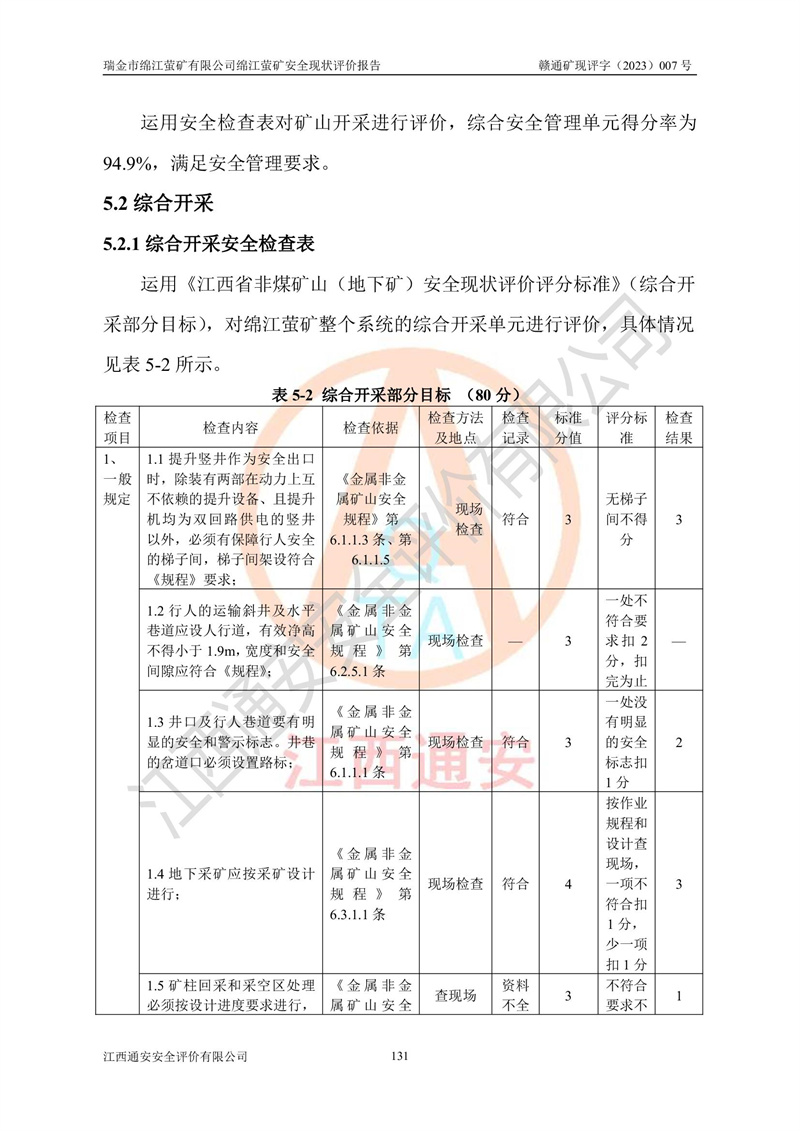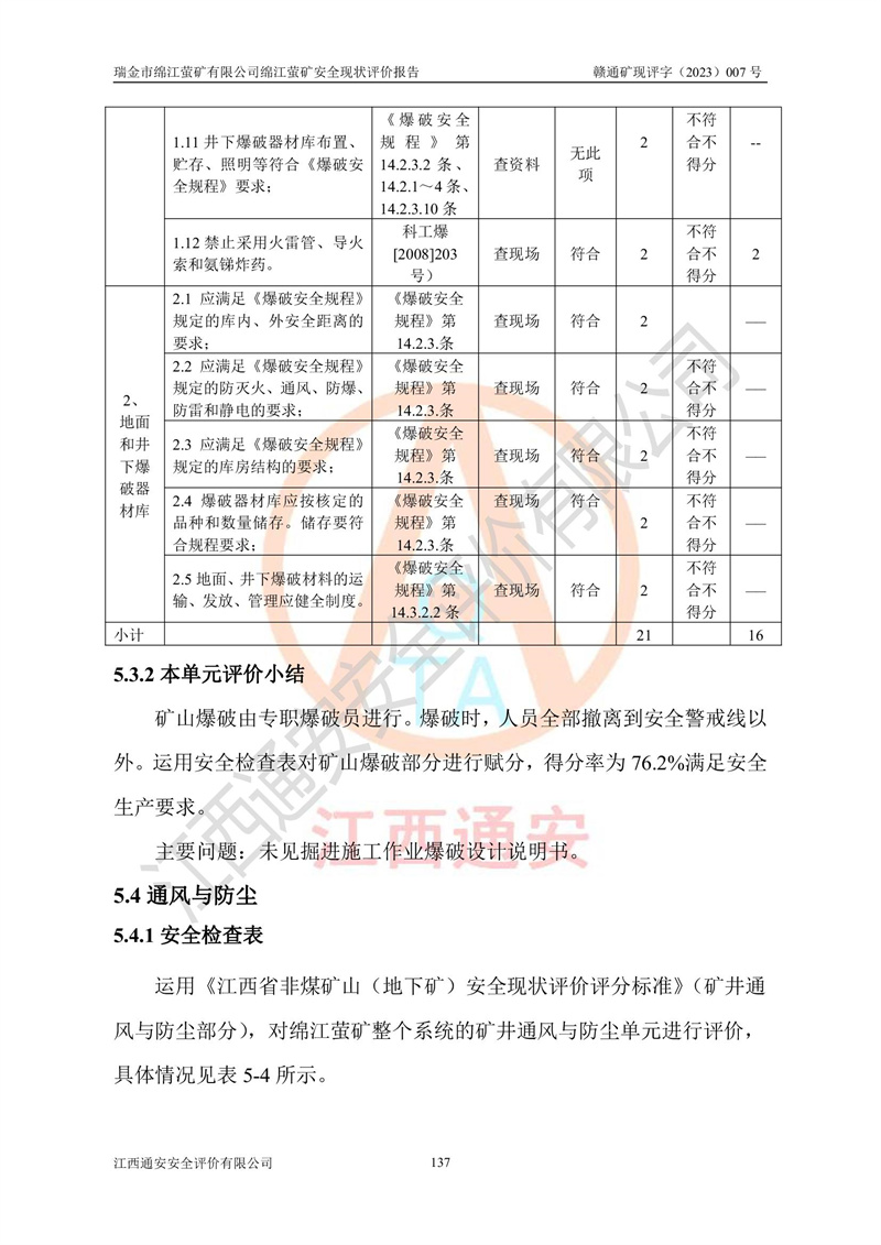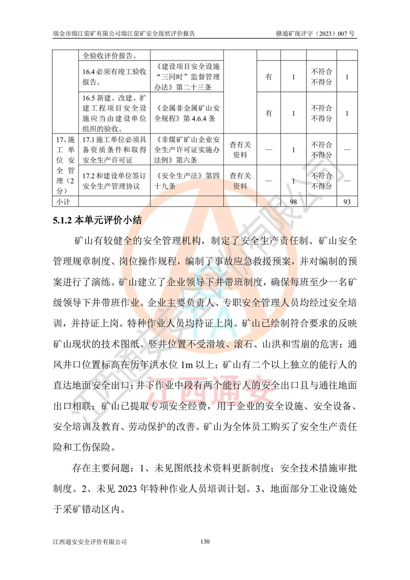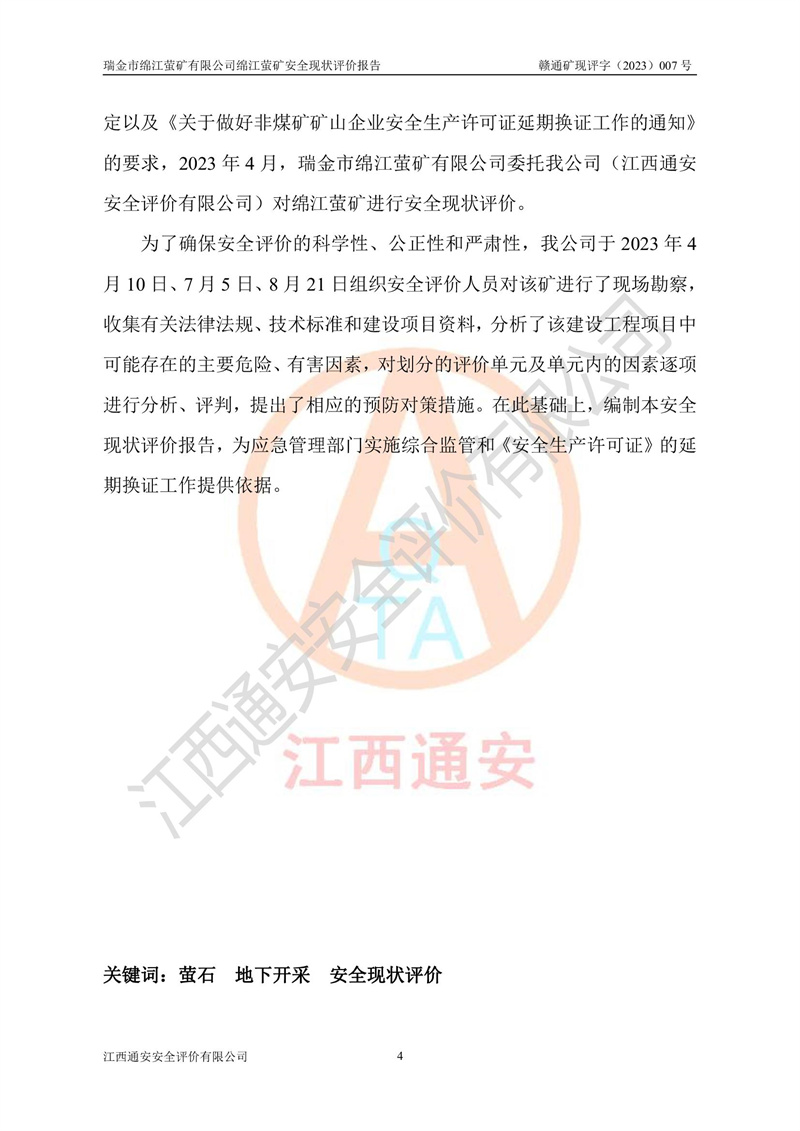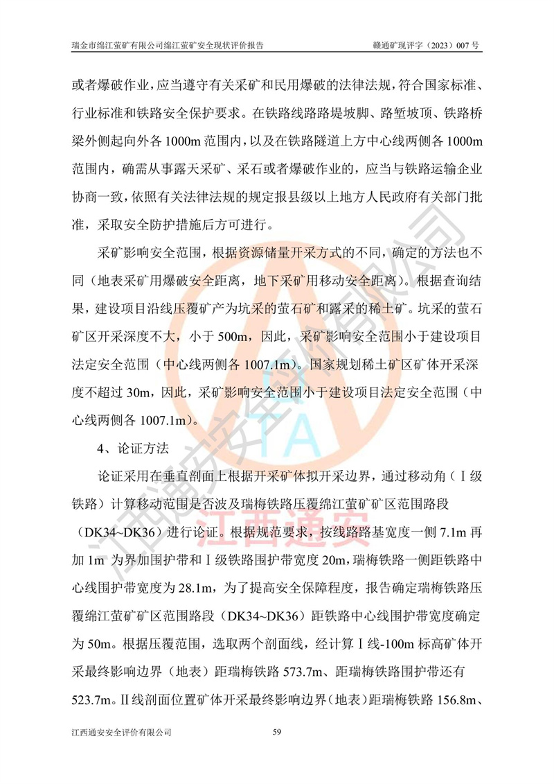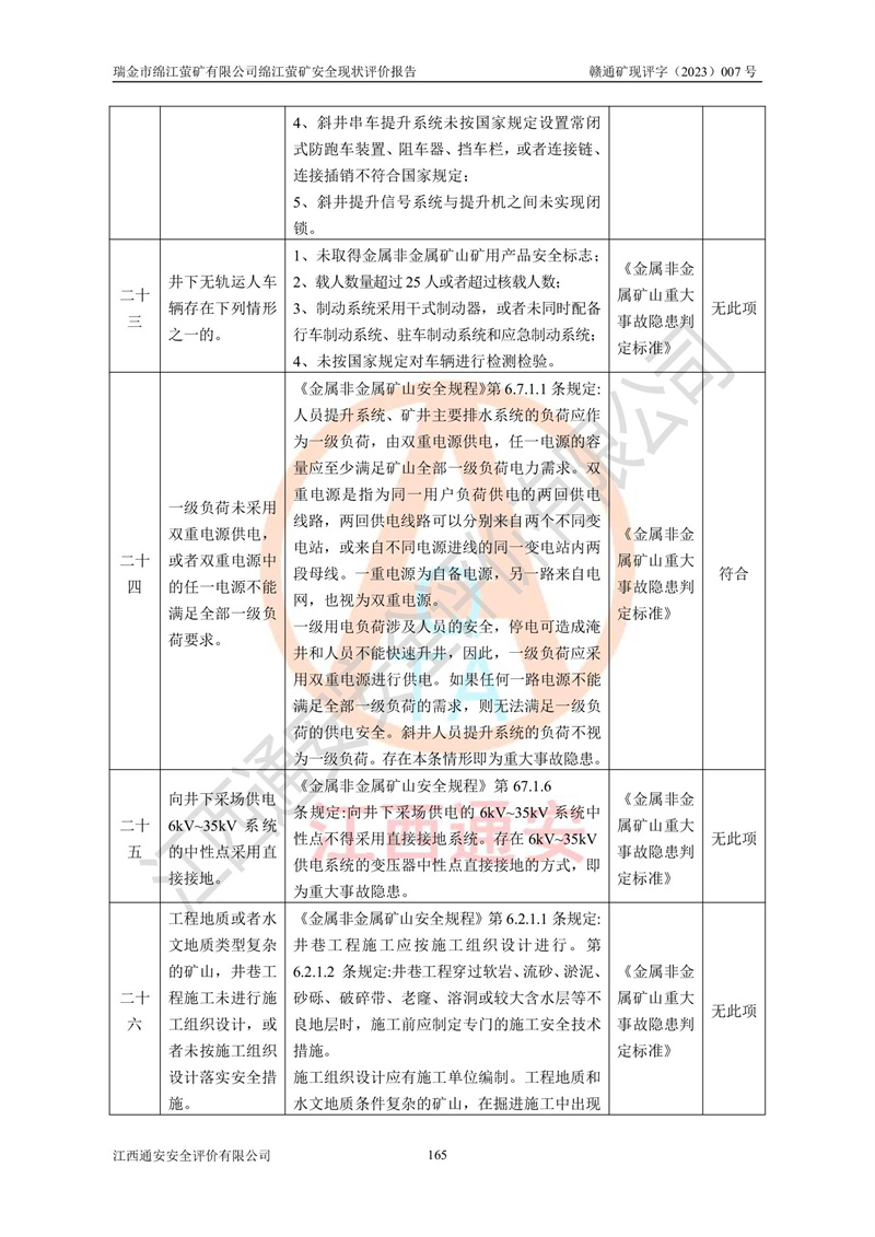绵江萤矿矿区位于瑞金市南西210°方向,直线距离约26km,矿区地理坐标为东径115°50′54″~115°51′31″,北纬25°38′52″~25°39′34″,行政区划隶属于瑞金市谢坊镇深塘村管辖。 瑞金市绵江萤矿自1972年始有当地村民小规模陆续开采,1978年收归瑞金县谢坊乡管理,成立谢坊乡萤石矿,同年收归县管改名为瑞金县萤石矿,再经历多次采矿权人变更后,至2010年矿山由深圳市新星轻质合金材料有限公司收购瑞金市绵江萤石矿为其全资子公司,同时成立瑞金市绵江萤矿有限公司为现矿山采矿权人。2021年5月28日,深圳市新星轻质合金材料有限公司将其持有的绵江萤矿****股权及派生权益质押给瑞金市金鑫矿产品实业有限公司,采矿权人未变。 矿山于2014年1月20日取得原江西省国土资源厅颁发的采矿许可证,证号:C3607002009126120050709,采矿权人:瑞金市绵江萤矿有限公司,地址:江西省赣州市瑞金市,矿山名称:瑞金市绵江萤矿有限公司绵江萤矿,经济类型:私营有限责任公司,开采矿种:萤石(普通),开采方式:地下开采,生产规模:5.00万t/a,矿区面积;0.5053km2,**期限:壹拾贰年自2014年1月20日至2026年1月20日。开采深度由238m至-100m标高,共有8个拐点圈定。 2014年6月,企业委托江西省煤矿设计院编制了《瑞金市绵江萤矿有限公司绵江萤矿扩建工程初步设计说明书》和《瑞金市绵江萤矿有限公司绵江萤矿扩建工程初步设计说明书安全专篇》。并于2014年6月19日省安监局组织专家对《瑞金市绵江萤矿有限公司绵江萤矿扩建工程初步设计说明书安全专篇》进行了评审并原则通过,2014年7月18日由江西省安监局下达了《关于瑞金市绵江萤矿有限公司绵江萤矿扩建工程初步设计说明书安全专篇》的审查意见书(赣安监非煤项目设审[2014]46号)。矿山扩建工程设计采用竖井+盲竖井联合开拓,延深共布置-15m、-45m、-75m、-100m四个中段。采矿方法为浅孔留矿法,通风系统采用中央对角抽出式机械通风,主扇安装在4#回风斜井井口,矿山生产规模为5万t/a,服务年限为10年。 2016年7月,矿山委托江西通安安全评价有限公司编制了《瑞金市绵江萤矿有限公司绵江萤矿地下开采扩建工程安全设施验收评价报告》。2016年7月31日-8月2日,公司组织有关专家对江西通安安全评价有限公司编制的《瑞金市绵江萤矿有限公司绵江萤矿地下开采扩建工程安全设施验收评价报告》进行了评审,同时对瑞金市绵江萤矿有限公司绵江萤矿地下开采扩建工程建设项目安全设施进行了现场验收并原则通过。瑞金市安监局依法对验收过程及结果进行监督。 2020年10月12日,矿山取得江西省应急管理换发的安全生产许可证。编号:(赣)FM安许证字[2005]M0029号,单位名称:瑞金市绵江萤矿有限公司绵江萤矿地下开采,主要负责人:陈勇,单位地址:江西省瑞金市谢坊镇深塘村,经济类型:有限责任公司,许可范围:萤石矿5万t/a,竖井+盲竖井联合开拓,-75m、-100m中段地下开采,**期:2020年10月27日至2023年10月26日。 矿山取得安全生产许可证后,严格按照设计回采顺序(中段按从上到下的顺序开采,同时开采中段数为一个)要求进行开采,目前矿山-15m、-45m中段已结束回采。矿山现采用竖井+盲竖井联合开拓。东区2#竖井(SJ2)为主竖井,西区3#竖井(SJ3)为副竖井,XJ4斜井为回风井兼做安全出口。矿山共开拓了+170、+110m、+80m、+65m、+45m、+15m、-15m、-45m、-75m、-100m等十个中段,其中-45m以上中段已回采结束,目前-75m为主要生产中段,-45m为回风中段,-100m为生产开拓中段。-75m中段东、西两区运输巷道已贯通,并已掘三个通风天井连接至-45m中段,东区-100m中段已掘穿脉、沿脉巷道100m。东、西区的-45m以上中段均已贯通。东区+15m中段已开拓2#盲竖井至-100m中段,2#盲竖井连接-15m、-45m、-75m、-100m四个中段。西区+45m中段已开拓3#盲竖井至-75m中段,3#盲竖井连接+15m、-15m、-45m、-75m四个中段,并计划按设计延伸至-100m中段。 2019年3月-2020年6月矿山对提升运输系统设备设施进行了改造,各中段及竖井、盲竖井井口运输由原无轨胶轮车运输改为0.5m3U型矿车运输,各东、西区竖井及盲竖井均新安装了BF-0511防坠器,新更换了GLS1/6/1/1罐笼。随着矿山进行深部开拓,井下需风量及风阻随之变大,为了满足矿山通风系统要求,矿山将设计一期工程15kW型号KCZ40-№11主扇风机,更换为二期工程55kW型号KZC40-№13主扇,进一步提高了矿井通风效率。同时将东、西两区竖井及盲竖井原JTP-1.2×1.0P绞车更换为JTP-1.6×1.2P型绞车。 为了进一步优化矿山提升运输、排水、供电等系统,2022年10月,矿山委托江西省中赣投勘察设计有限公司(原江西省煤矿设计院)编制了《瑞金市绵江萤矿有限公司绵江萤矿地下开采提升运输、排水、供电优化方案设计》。至2023年8月,矿山按优化方案完成了改造,并委托江西华安检测技术服务有限公司对设备设施进行检测,检测结果合格。 根据《安全生产法》、《安全生产许可证条例》等有关法律、法规的规定以及《关于做好非煤矿矿山企业安全生产许可证延期换证工作的通知》的要求,2023年4月,瑞金市绵江萤矿有限公司委托我公司(江西通安安全评价有限公司)对绵江萤矿进行安全现状评价。 |