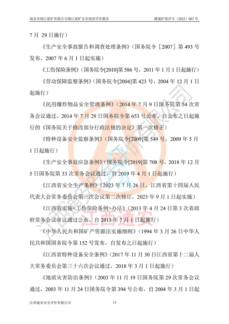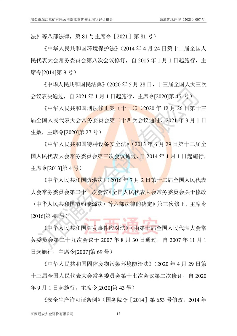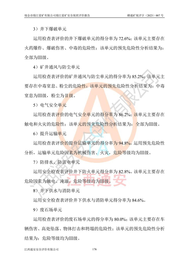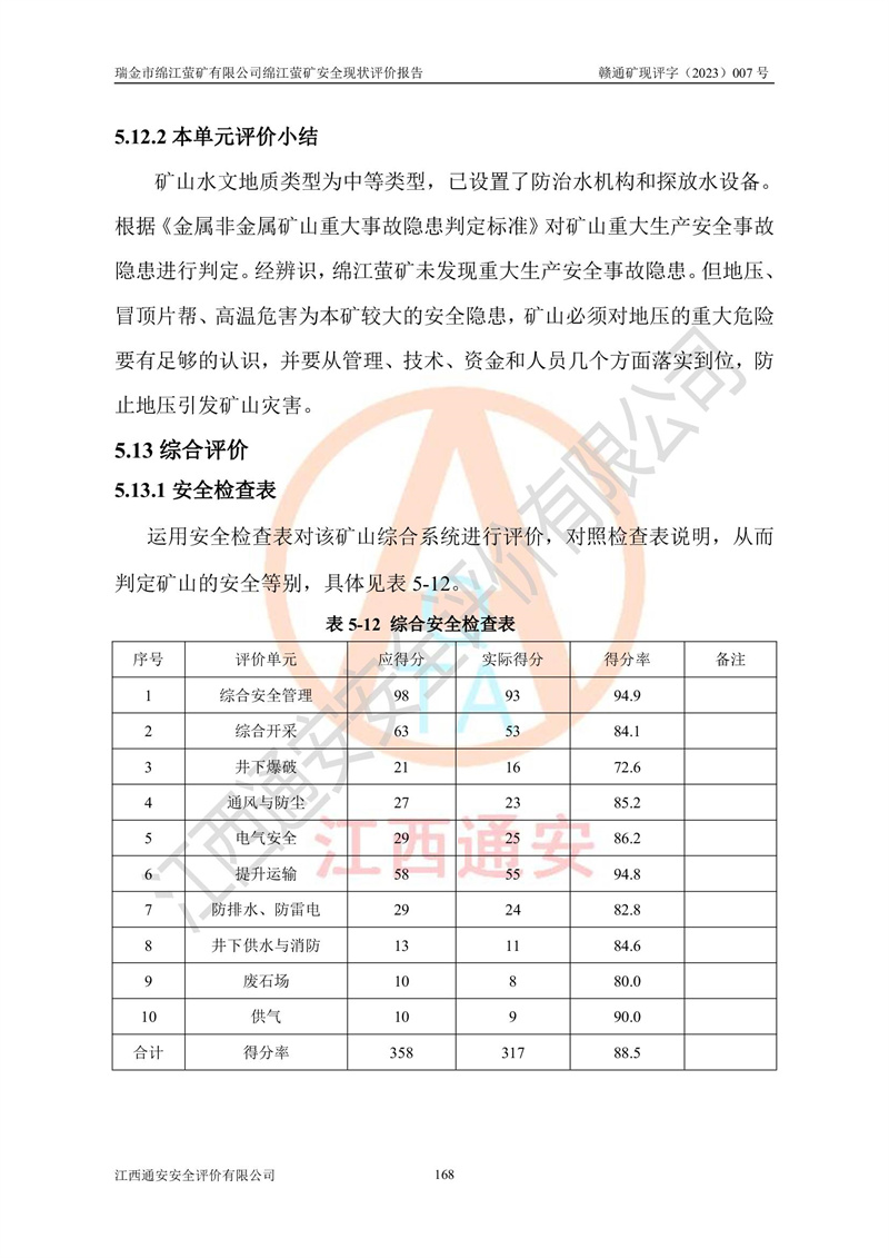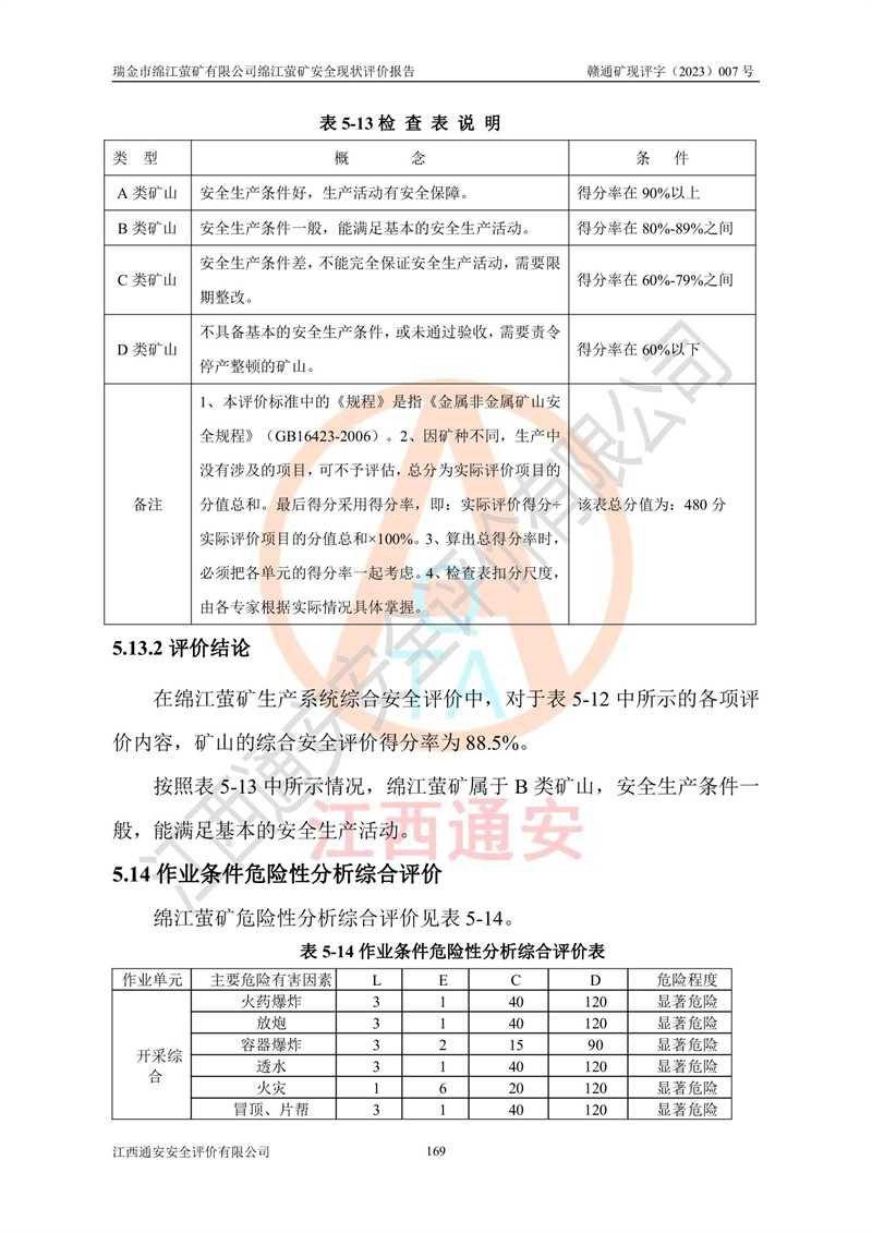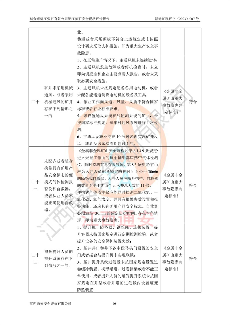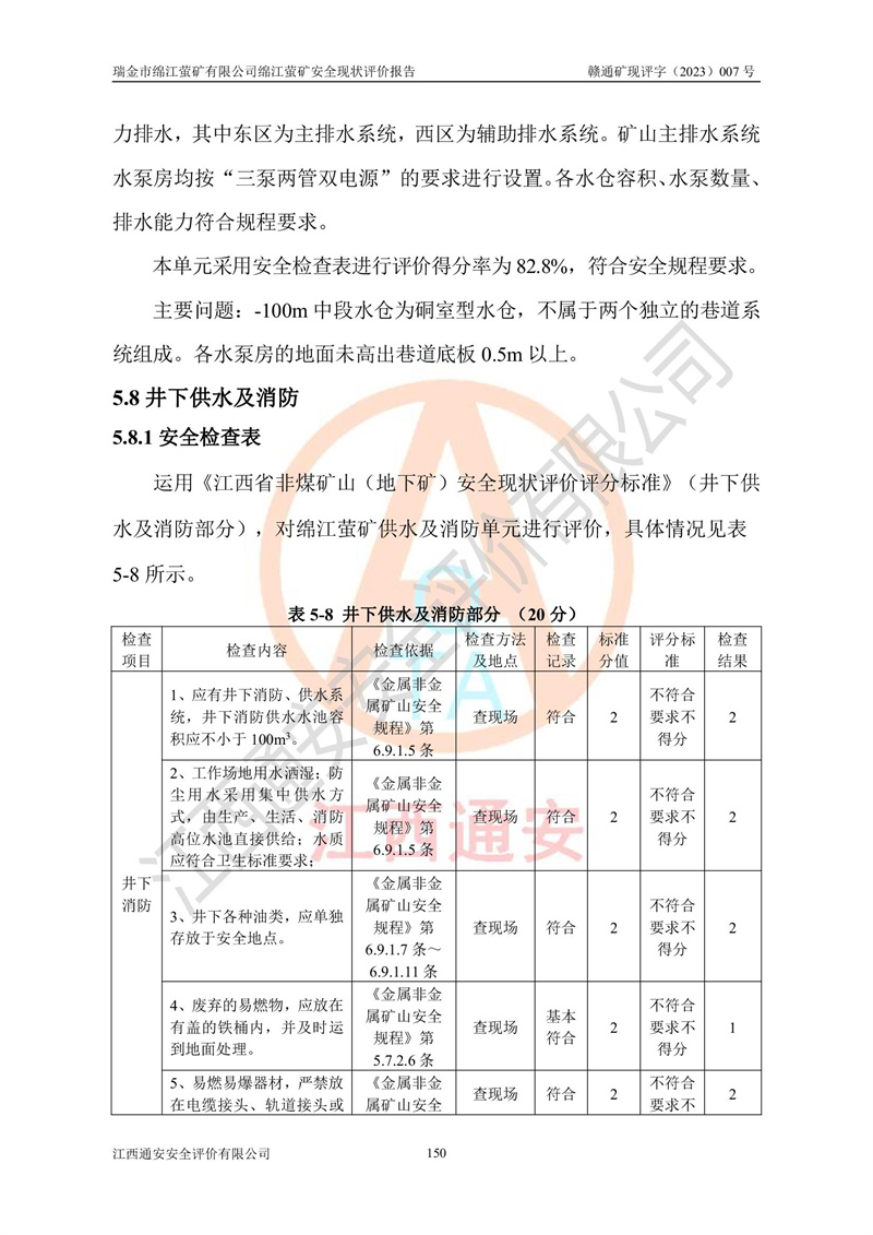 绵江萤矿矿区位于瑞金市南西210°方向,直线距离约26km,矿区地理坐标为东径115°50′54″~115°51′31″,北纬25°38′52″~25°39′34″,行政区划隶属于瑞金市谢坊镇深塘村管辖。 瑞金市绵江萤矿自1972年始有当地村民小规模陆续开采,1978年收归瑞金县谢坊乡管理,成立谢坊乡萤石矿,同年收归县管改名为瑞金县萤石矿,再经历多次采矿权人变更后,至2010年矿山由深圳市新星轻质合金材料有限公司收购瑞金市绵江萤石矿为其全资子公司,同时成立瑞金市绵江萤矿有限公司为现矿山采矿权人。2021年5月28日,深圳市新星轻质合金材料有限公司将其持有的绵江萤矿****股权及派生权益质押给瑞金市金鑫矿产品实业有限公司,采矿权人未变。 矿山于2014年1月20日取得原江西省国土资源厅颁发的采矿许可证,证号:C3607002009126120050709,采矿权人:瑞金市绵江萤矿有限公司,地址:江西省赣州市瑞金市,矿山名称:瑞金市绵江萤矿有限公司绵江萤矿,经济类型:私营有限责任公司,开采矿种:萤石(普通),开采方式:地下开采,生产规模:5.00万t/a,矿区面积;0.5053km2,**期限:壹拾贰年自2014年1月20日至2026年1月20日。开采深度由238m至-100m标高,共有8个拐点圈定。 2014年6月,企业委托江西省煤矿设计院编制了《瑞金市绵江萤矿有限公司绵江萤矿扩建工程初步设计说明书》和《瑞金市绵江萤矿有限公司绵江萤矿扩建工程初步设计说明书安全专篇》。并于2014年6月19日省安监局组织专家对《瑞金市绵江萤矿有限公司绵江萤矿扩建工程初步设计说明书安全专篇》进行了评审并原则通过,2014年7月18日由江西省安监局下达了《关于瑞金市绵江萤矿有限公司绵江萤矿扩建工程初步设计说明书安全专篇》的审查意见书(赣安监非煤项目设审[2014]46号)。矿山扩建工程设计采用竖井+盲竖井联合开拓,延深共布置-15m、-45m、-75m、-100m四个中段。采矿方法为浅孔留矿法,通风系统采用中央对角抽出式机械通风,主扇安装在4#回风斜井井口,矿山生产规模为5万t/a,服务年限为10年。 2016年7月,矿山委托江西通安安全评价有限公司编制了《瑞金市绵江萤矿有限公司绵江萤矿地下开采扩建工程安全设施验收评价报告》。2016年7月31日-8月2日,公司组织有关专家对江西通安安全评价有限公司编制的《瑞金市绵江萤矿有限公司绵江萤矿地下开采扩建工程安全设施验收评价报告》进行了评审,同时对瑞金市绵江萤矿有限公司绵江萤矿地下开采扩建工程建设项目安全设施进行了现场验收并原则通过。瑞金市安监局依法对验收过程及结果进行监督。 2020年10月12日,矿山取得江西省应急管理换发的安全生产许可证。编号:(赣)FM安许证字[2005]M0029号,单位名称:瑞金市绵江萤矿有限公司绵江萤矿地下开采,主要负责人:陈勇,单位地址:江西省瑞金市谢坊镇深塘村,经济类型:有限责任公司,许可范围:萤石矿5万t/a,竖井+盲竖井联合开拓,-75m、-100m中段地下开采,**期:2020年10月27日至2023年10月26日。 矿山取得安全生产许可证后,严格按照设计回采顺序(中段按从上到下的顺序开采,同时开采中段数为一个)要求进行开采,目前矿山-15m、-45m中段已结束回采。矿山现采用竖井+盲竖井联合开拓。东区2#竖井(SJ2)为主竖井,西区3#竖井(SJ3)为副竖井,XJ4斜井为回风井兼做安全出口。矿山共开拓了+170、+110m、+80m、+65m、+45m、+15m、-15m、-45m、-75m、-100m等十个中段,其中-45m以上中段已回采结束,目前-75m为主要生产中段,-45m为回风中段,-100m为生产开拓中段。-75m中段东、西两区运输巷道已贯通,并已掘三个通风天井连接至-45m中段,东区-100m中段已掘穿脉、沿脉巷道100m。东、西区的-45m以上中段均已贯通。东区+15m中段已开拓2#盲竖井至-100m中段,2#盲竖井连接-15m、-45m、-75m、-100m四个中段。西区+45m中段已开拓3#盲竖井至-75m中段,3#盲竖井连接+15m、-15m、-45m、-75m四个中段,并计划按设计延伸至-100m中段。 2019年3月-2020年6月矿山对提升运输系统设备设施进行了改造,各中段及竖井、盲竖井井口运输由原无轨胶轮车运输改为0.5m3U型矿车运输,各东、西区竖井及盲竖井均新安装了BF-0511防坠器,新更换了GLS1/6/1/1罐笼。随着矿山进行深部开拓,井下需风量及风阻随之变大,为了满足矿山通风系统要求,矿山将设计一期工程15kW型号KCZ40-№11主扇风机,更换为二期工程55kW型号KZC40-№13主扇,进一步提高了矿井通风效率。同时将东、西两区竖井及盲竖井原JTP-1.2×1.0P绞车更换为JTP-1.6×1.2P型绞车。 为了进一步优化矿山提升运输、排水、供电等系统,2022年10月,矿山委托江西省中赣投勘察设计有限公司(原江西省煤矿设计院)编制了《瑞金市绵江萤矿有限公司绵江萤矿地下开采提升运输、排水、供电优化方案设计》。至2023年8月,矿山按优化方案完成了改造,并委托江西华安检测技术服务有限公司对设备设施进行检测,检测结果合格。 根据《安全生产法》、《安全生产许可证条例》等有关法律、法规的规定以及《关于做好非煤矿矿山企业安全生产许可证延期换证工作的通知》的要求,2023年4月,瑞金市绵江萤矿有限公司委托我公司(江西通安安全评价有限公司)对绵江萤矿进行安全现状评价。 |