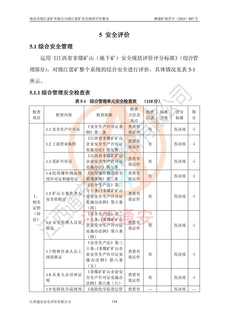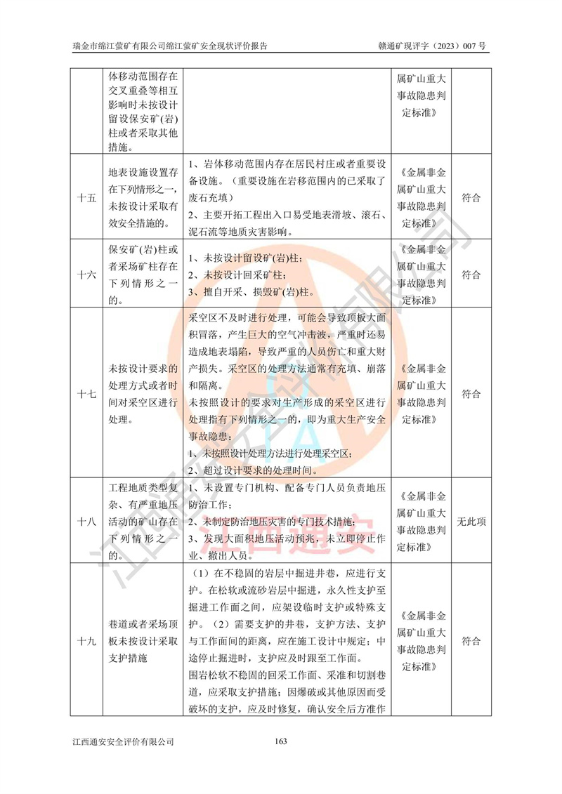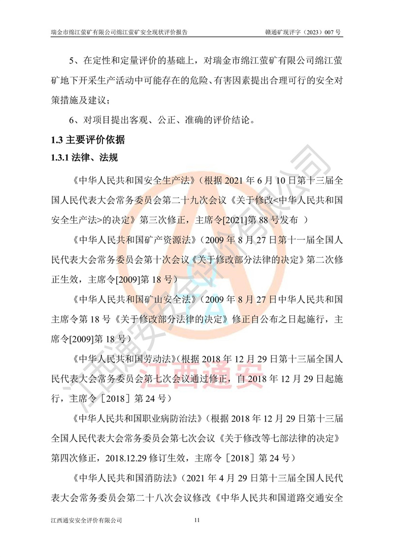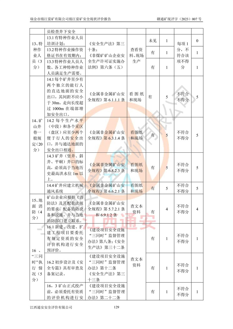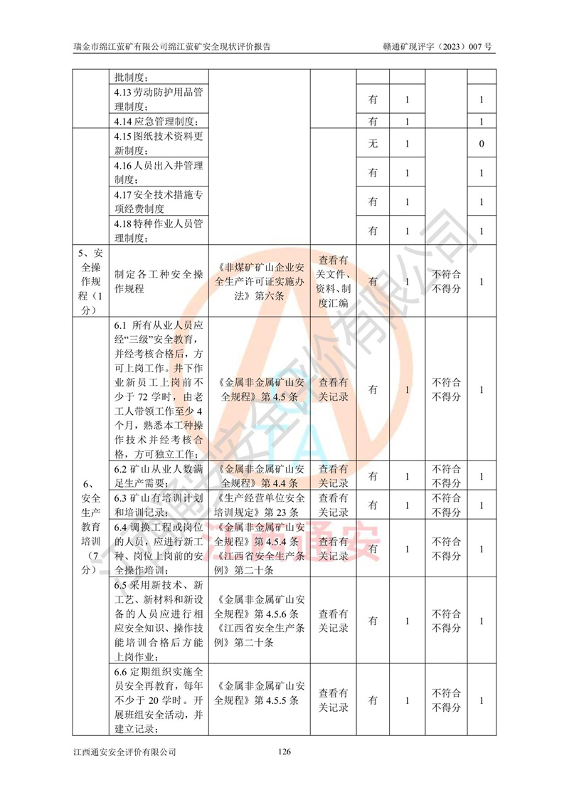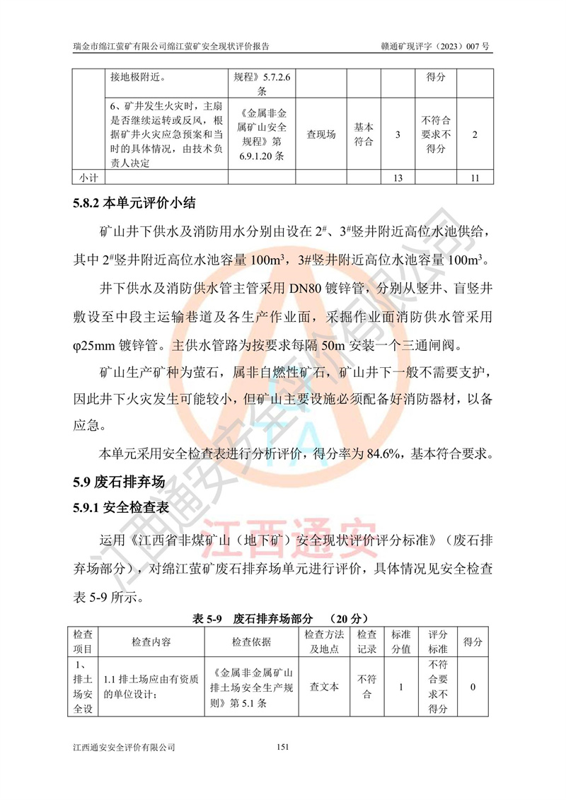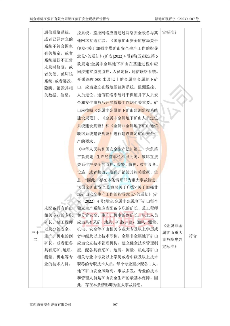 绵江萤矿矿区位于瑞金市南西210°方向,直线距离约26km,矿区地理坐标为东径115°50′54″~115°51′31″,北纬25°38′52″~25°39′34″,行政区划隶属于瑞金市谢坊镇深塘村管辖。 瑞金市绵江萤矿自1972年始有当地村民小规模陆续开采,1978年收归瑞金县谢坊乡管理,成立谢坊乡萤石矿,同年收归县管改名为瑞金县萤石矿,再经历多次采矿权人变更后,至2010年矿山由深圳市新星轻质合金材料有限公司收购瑞金市绵江萤石矿为其全资子公司,同时成立瑞金市绵江萤矿有限公司为现矿山采矿权人。2021年5月28日,深圳市新星轻质合金材料有限公司将其持有的绵江萤矿****股权及派生权益质押给瑞金市金鑫矿产品实业有限公司,采矿权人未变。 矿山于2014年1月20日取得原江西省国土资源厅颁发的采矿许可证,证号:C3607002009126120050709,采矿权人:瑞金市绵江萤矿有限公司,地址:江西省赣州市瑞金市,矿山名称:瑞金市绵江萤矿有限公司绵江萤矿,经济类型:私营有限责任公司,开采矿种:萤石(普通),开采方式:地下开采,生产规模:5.00万t/a,矿区面积;0.5053km2,**期限:壹拾贰年自2014年1月20日至2026年1月20日。开采深度由238m至-100m标高,共有8个拐点圈定。 2014年6月,企业委托江西省煤矿设计院编制了《瑞金市绵江萤矿有限公司绵江萤矿扩建工程初步设计说明书》和《瑞金市绵江萤矿有限公司绵江萤矿扩建工程初步设计说明书安全专篇》。并于2014年6月19日省安监局组织专家对《瑞金市绵江萤矿有限公司绵江萤矿扩建工程初步设计说明书安全专篇》进行了评审并原则通过,2014年7月18日由江西省安监局下达了《关于瑞金市绵江萤矿有限公司绵江萤矿扩建工程初步设计说明书安全专篇》的审查意见书(赣安监非煤项目设审[2014]46号)。矿山扩建工程设计采用竖井+盲竖井联合开拓,延深共布置-15m、-45m、-75m、-100m四个中段。采矿方法为浅孔留矿法,通风系统采用中央对角抽出式机械通风,主扇安装在4#回风斜井井口,矿山生产规模为5万t/a,服务年限为10年。 2016年7月,矿山委托江西通安安全评价有限公司编制了《瑞金市绵江萤矿有限公司绵江萤矿地下开采扩建工程安全设施验收评价报告》。2016年7月31日-8月2日,公司组织有关专家对江西通安安全评价有限公司编制的《瑞金市绵江萤矿有限公司绵江萤矿地下开采扩建工程安全设施验收评价报告》进行了评审,同时对瑞金市绵江萤矿有限公司绵江萤矿地下开采扩建工程建设项目安全设施进行了现场验收并原则通过。瑞金市安监局依法对验收过程及结果进行监督。 2020年10月12日,矿山取得江西省应急管理换发的安全生产许可证。编号:(赣)FM安许证字[2005]M0029号,单位名称:瑞金市绵江萤矿有限公司绵江萤矿地下开采,主要负责人:陈勇,单位地址:江西省瑞金市谢坊镇深塘村,经济类型:有限责任公司,许可范围:萤石矿5万t/a,竖井+盲竖井联合开拓,-75m、-100m中段地下开采,**期:2020年10月27日至2023年10月26日。 矿山取得安全生产许可证后,严格按照设计回采顺序(中段按从上到下的顺序开采,同时开采中段数为一个)要求进行开采,目前矿山-15m、-45m中段已结束回采。矿山现采用竖井+盲竖井联合开拓。东区2#竖井(SJ2)为主竖井,西区3#竖井(SJ3)为副竖井,XJ4斜井为回风井兼做安全出口。矿山共开拓了+170、+110m、+80m、+65m、+45m、+15m、-15m、-45m、-75m、-100m等十个中段,其中-45m以上中段已回采结束,目前-75m为主要生产中段,-45m为回风中段,-100m为生产开拓中段。-75m中段东、西两区运输巷道已贯通,并已掘三个通风天井连接至-45m中段,东区-100m中段已掘穿脉、沿脉巷道100m。东、西区的-45m以上中段均已贯通。东区+15m中段已开拓2#盲竖井至-100m中段,2#盲竖井连接-15m、-45m、-75m、-100m四个中段。西区+45m中段已开拓3#盲竖井至-75m中段,3#盲竖井连接+15m、-15m、-45m、-75m四个中段,并计划按设计延伸至-100m中段。 2019年3月-2020年6月矿山对提升运输系统设备设施进行了改造,各中段及竖井、盲竖井井口运输由原无轨胶轮车运输改为0.5m3U型矿车运输,各东、西区竖井及盲竖井均新安装了BF-0511防坠器,新更换了GLS1/6/1/1罐笼。随着矿山进行深部开拓,井下需风量及风阻随之变大,为了满足矿山通风系统要求,矿山将设计一期工程15kW型号KCZ40-№11主扇风机,更换为二期工程55kW型号KZC40-№13主扇,进一步提高了矿井通风效率。同时将东、西两区竖井及盲竖井原JTP-1.2×1.0P绞车更换为JTP-1.6×1.2P型绞车。 为了进一步优化矿山提升运输、排水、供电等系统,2022年10月,矿山委托江西省中赣投勘察设计有限公司(原江西省煤矿设计院)编制了《瑞金市绵江萤矿有限公司绵江萤矿地下开采提升运输、排水、供电优化方案设计》。至2023年8月,矿山按优化方案完成了改造,并委托江西华安检测技术服务有限公司对设备设施进行检测,检测结果合格。 根据《安全生产法》、《安全生产许可证条例》等有关法律、法规的规定以及《关于做好非煤矿矿山企业安全生产许可证延期换证工作的通知》的要求,2023年4月,瑞金市绵江萤矿有限公司委托我公司(江西通安安全评价有限公司)对绵江萤矿进行安全现状评价。 |