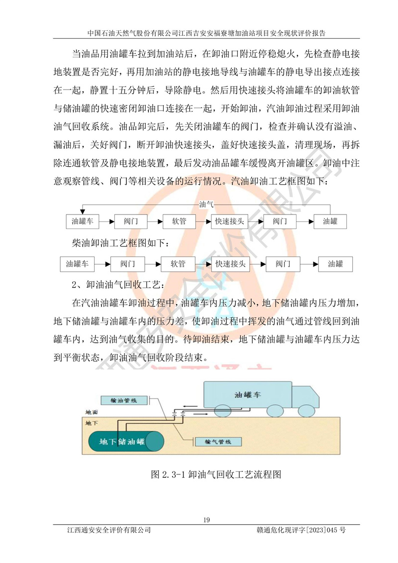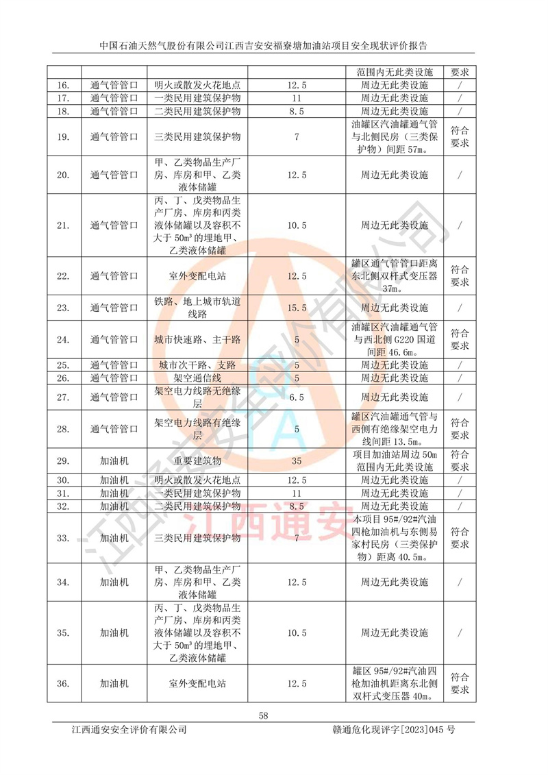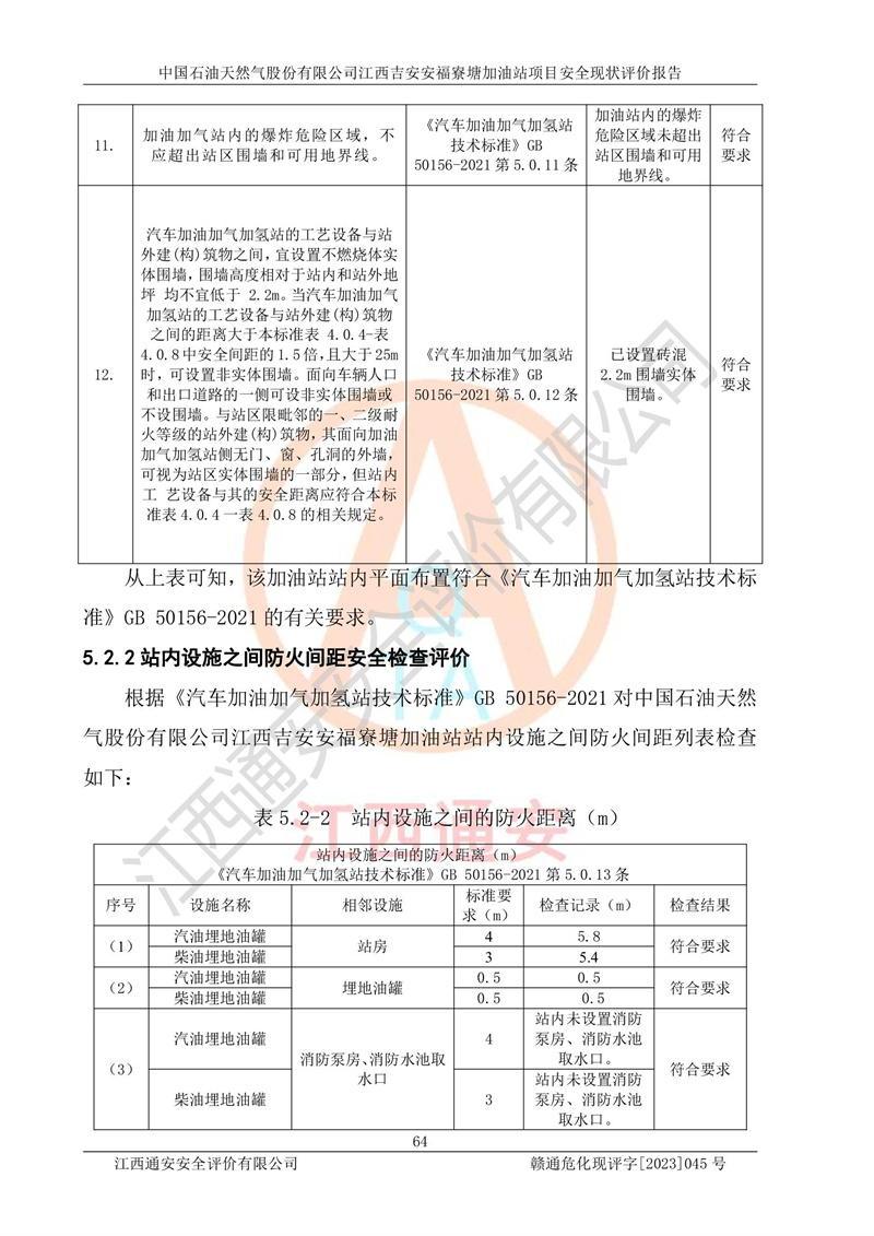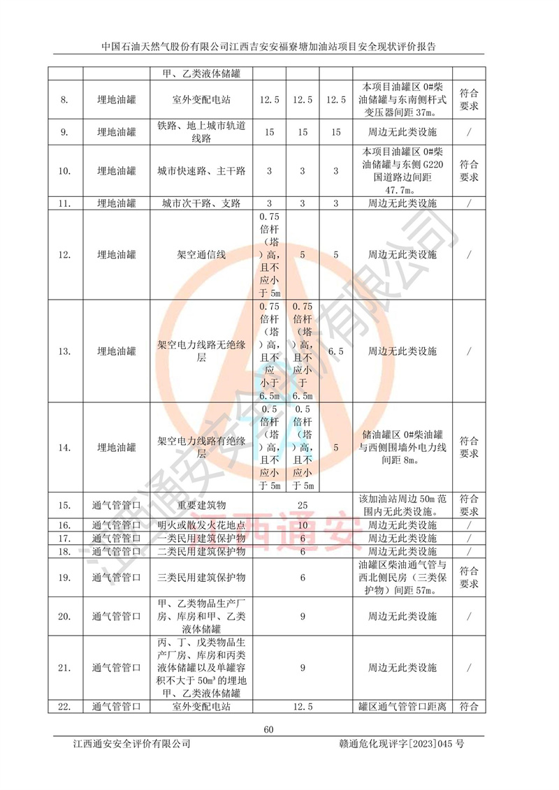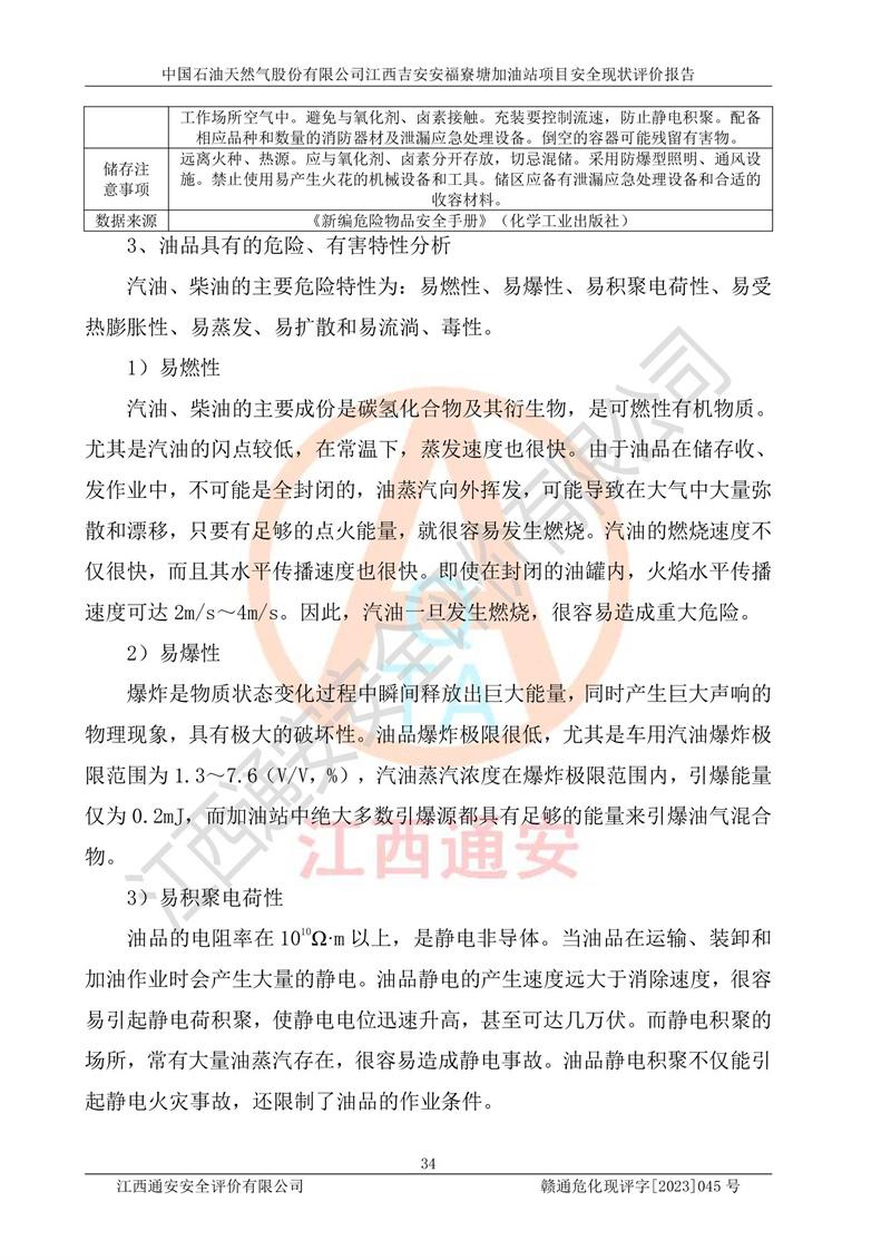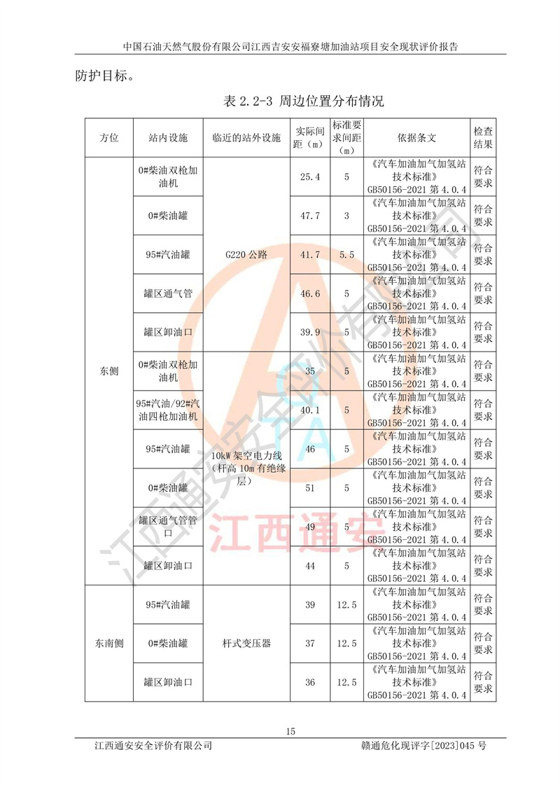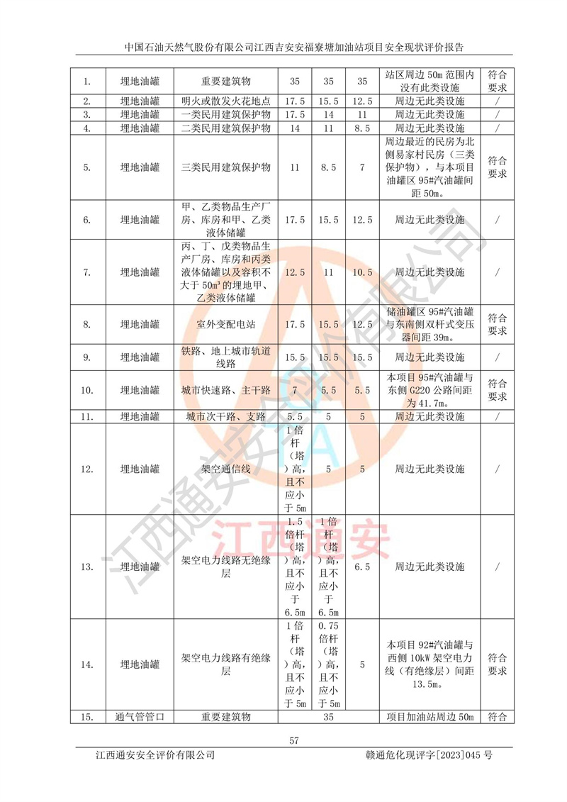 中国石油天然气股份有限公司江西吉安安福寮塘加油站是一家从事成品油批发、成品油零售经营的企业。该加油站成立于2011年5月4日,并获得安福县市场监督管理局颁发的营业执照,营业执照统一社会信用代码为:91360829573618262D,加油站类型为股份有限公司分公司(上市,国有控股),负责人为鄢**,经营范围:许可项目:成品油批发,成品油零售,住宿服务,餐饮服务,食品销售,烟草制品零售,***零售,农药零售,药品零售(依法须经批准的项目,经相关部门批准后在许可**期内方可开展经营活动,具体经营项目和许可期限以相关部门批准文件或许可证件为准)一般项目:润滑油销售,日用陶瓷制品销售,汽车销售,新能源汽车整车销售,新能源汽车换电设施销售,新能源汽车电附件销售,互联网销售(除销售需要许可的商品),汽车装饰用品销售,日用品销售单用途商业预付卡代理销售,日用化学产品销售,劳动保护用品销售,家用电器销售,塑料制品销售,婴幼儿配方乳粉及其他婴幼儿配方食品销售,食品用洗涤剂销售,饲料添加剂销售,肥料销售,洗车服务,农副产品销售,五金产品零售,办公用品销售,第二类医疗器械销售,充电桩销售农作物种子经营(**不再分装的包装种子),广告设计代理,电子过磅服务,化妆品零售,畜牧渔业饲料销售消毒剂销售 (不含危险化学品),汽车零配件零售,电车销售,机动车修理和维护,家具销售,日用百货销售,集中式**充电站,针纺织品销售,住房租赁 (除依法须经批/准的项目处,凭营业执照依法自主开展经营活动)。经营场所:江西省吉安市安福县寮塘乡龙佳村。 中国石油天然气股份有限公司江西吉安安福寮塘加油站占地面积1200㎡,加油站中设有0#柴油双枪加油机2台,92#汽油、95#汽油四枪加油机2台;该站设有4个30m³SF双层埋地卧式储罐,其中有2个30m³SF双层埋地卧式0#柴油罐、1个92#30m³SF双层埋地卧式汽油罐,1个95#30m³SF双层埋地卧式汽油罐,油品折算总容量为90m³(柴油罐容积折半计入油罐总容积),属三级加油站,汽油卸油、加油设置了油气回收系统。 中国石油天然气股份有限公司江西吉安安福寮塘加油站于2020年11月04日经安福县应急管理局核准,换发了新的《危险化学品经营许可证》,证书编号:赣安安经(甲)[2014]000007,许可经营范围:成品油。**期2020年11月04日至2023年11月03日。 中国石油天然气股份有限公司江西吉安安福寮塘加油站2023年05月11日经吉安市商务局核准,换取了新的《成品油零售经营批准证书》,证书编号:油零售证书第吉0256号,批准从事成品油(汽油、柴油)零售业务。证书**期至2023年5月11日至2028年05月10日。 |