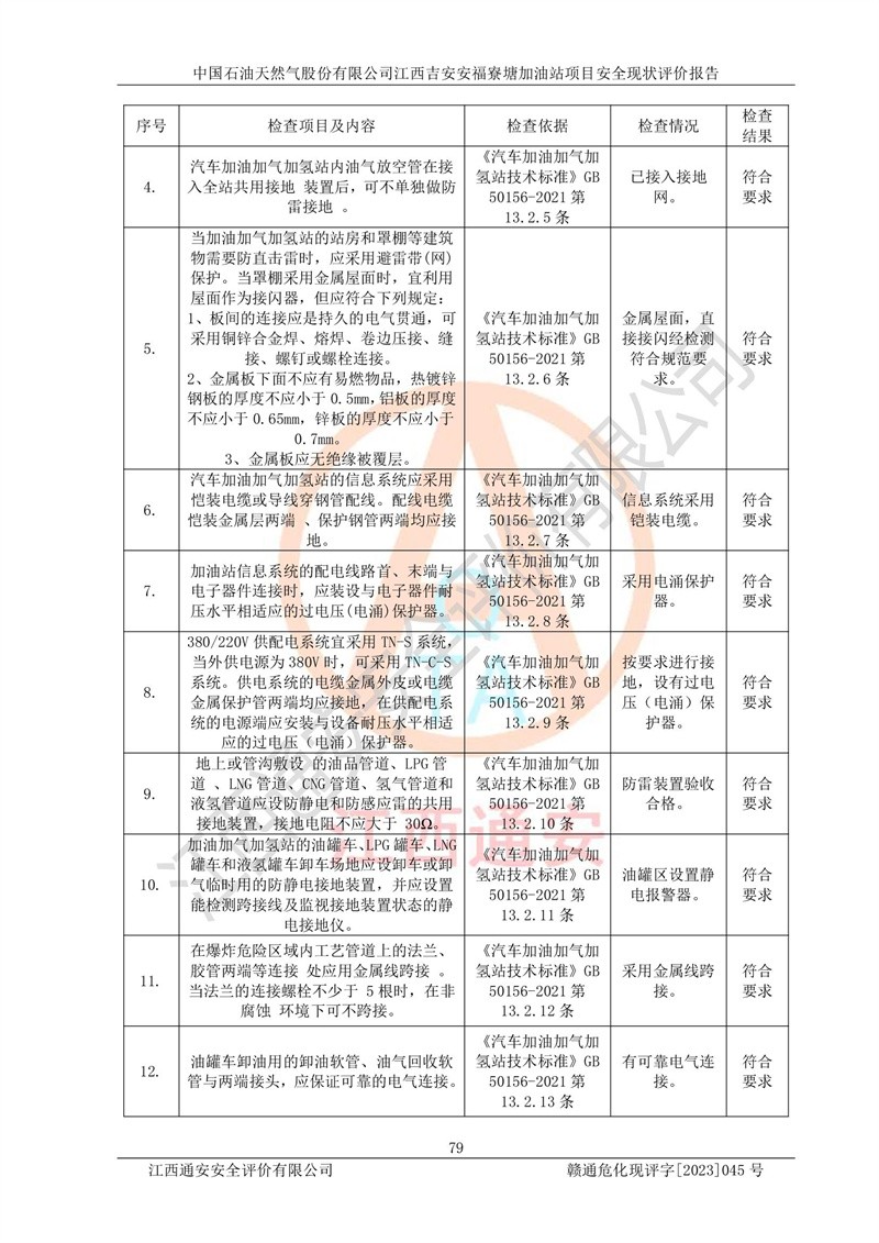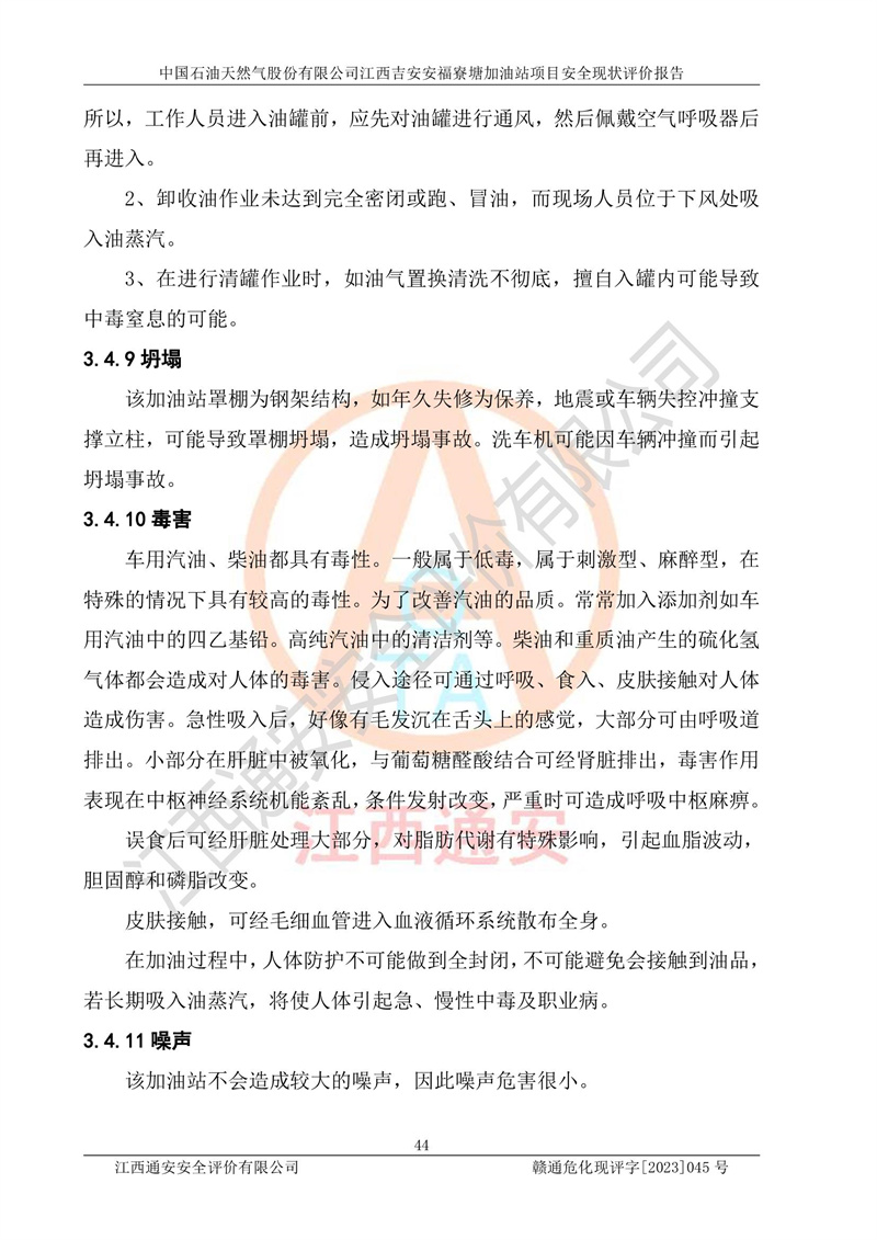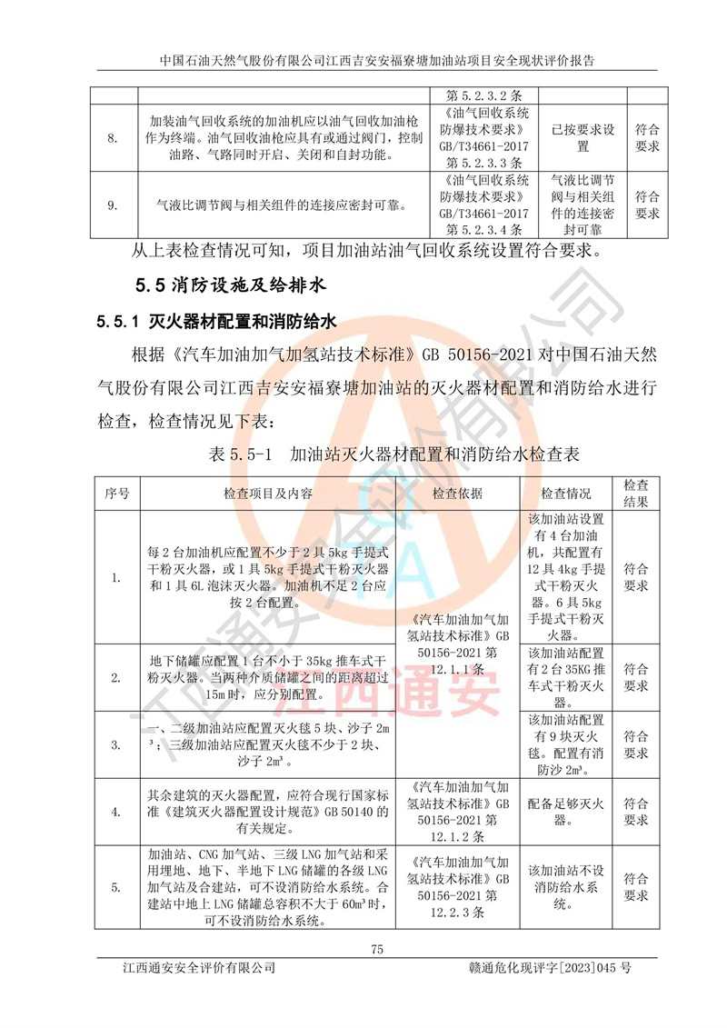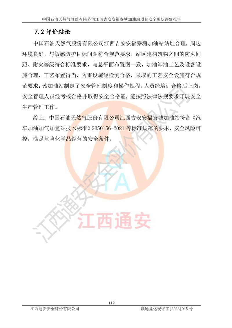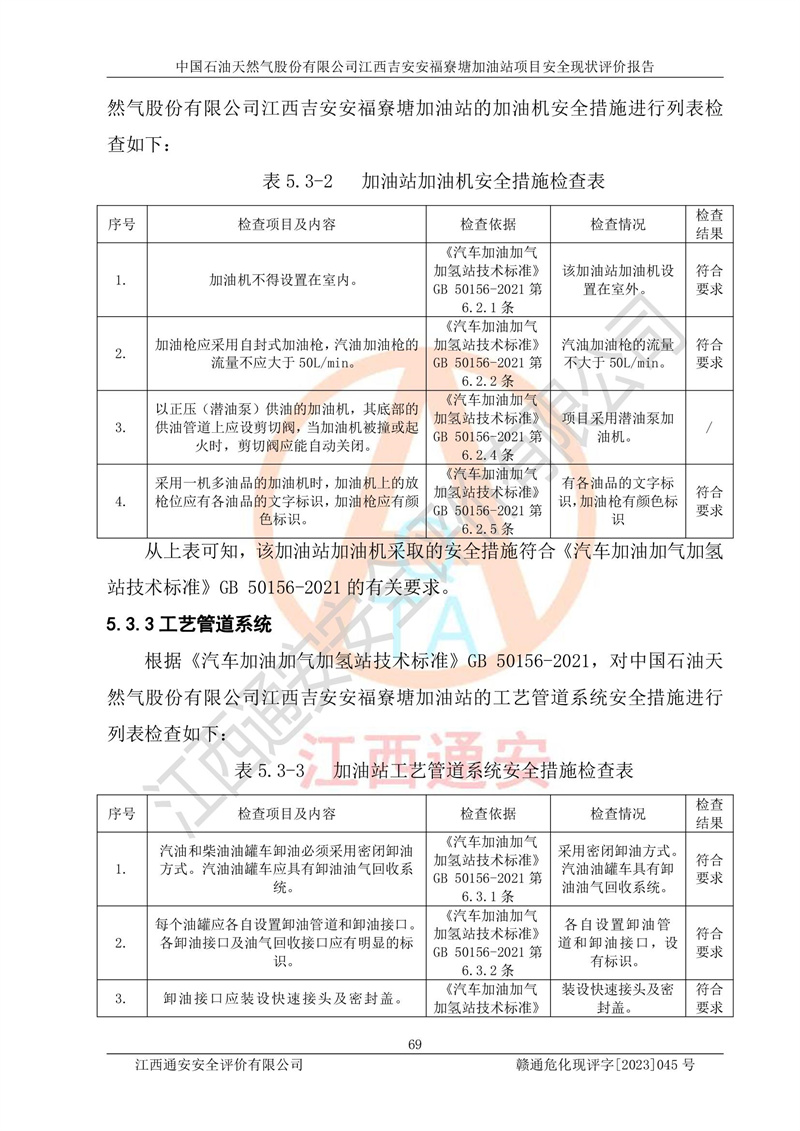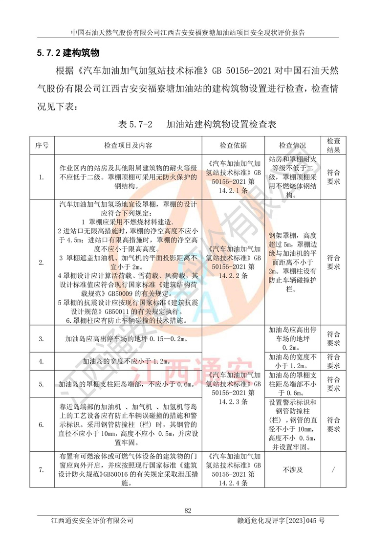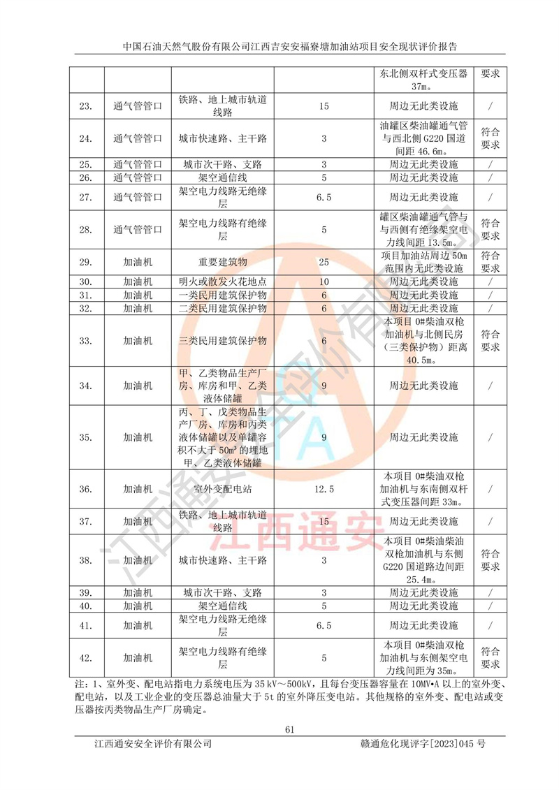 中国石油天然气股份有限公司江西吉安安福寮塘加油站是一家从事成品油批发、成品油零售经营的企业。该加油站成立于2011年5月4日,并获得安福县市场监督管理局颁发的营业执照,营业执照统一社会信用代码为:91360829573618262D,加油站类型为股份有限公司分公司(上市,国有控股),负责人为鄢**,经营范围:许可项目:成品油批发,成品油零售,住宿服务,餐饮服务,食品销售,烟草制品零售,***零售,农药零售,药品零售(依法须经批准的项目,经相关部门批准后在许可**期内方可开展经营活动,具体经营项目和许可期限以相关部门批准文件或许可证件为准)一般项目:润滑油销售,日用陶瓷制品销售,汽车销售,新能源汽车整车销售,新能源汽车换电设施销售,新能源汽车电附件销售,互联网销售(除销售需要许可的商品),汽车装饰用品销售,日用品销售单用途商业预付卡代理销售,日用化学产品销售,劳动保护用品销售,家用电器销售,塑料制品销售,婴幼儿配方乳粉及其他婴幼儿配方食品销售,食品用洗涤剂销售,饲料添加剂销售,肥料销售,洗车服务,农副产品销售,五金产品零售,办公用品销售,第二类医疗器械销售,充电桩销售农作物种子经营(**不再分装的包装种子),广告设计代理,电子过磅服务,化妆品零售,畜牧渔业饲料销售消毒剂销售 (不含危险化学品),汽车零配件零售,电车销售,机动车修理和维护,家具销售,日用百货销售,集中式**充电站,针纺织品销售,住房租赁 (除依法须经批/准的项目处,凭营业执照依法自主开展经营活动)。经营场所:江西省吉安市安福县寮塘乡龙佳村。 中国石油天然气股份有限公司江西吉安安福寮塘加油站占地面积1200㎡,加油站中设有0#柴油双枪加油机2台,92#汽油、95#汽油四枪加油机2台;该站设有4个30m³SF双层埋地卧式储罐,其中有2个30m³SF双层埋地卧式0#柴油罐、1个92#30m³SF双层埋地卧式汽油罐,1个95#30m³SF双层埋地卧式汽油罐,油品折算总容量为90m³(柴油罐容积折半计入油罐总容积),属三级加油站,汽油卸油、加油设置了油气回收系统。 中国石油天然气股份有限公司江西吉安安福寮塘加油站于2020年11月04日经安福县应急管理局核准,换发了新的《危险化学品经营许可证》,证书编号:赣安安经(甲)[2014]000007,许可经营范围:成品油。**期2020年11月04日至2023年11月03日。 中国石油天然气股份有限公司江西吉安安福寮塘加油站2023年05月11日经吉安市商务局核准,换取了新的《成品油零售经营批准证书》,证书编号:油零售证书第吉0256号,批准从事成品油(汽油、柴油)零售业务。证书**期至2023年5月11日至2028年05月10日。 |