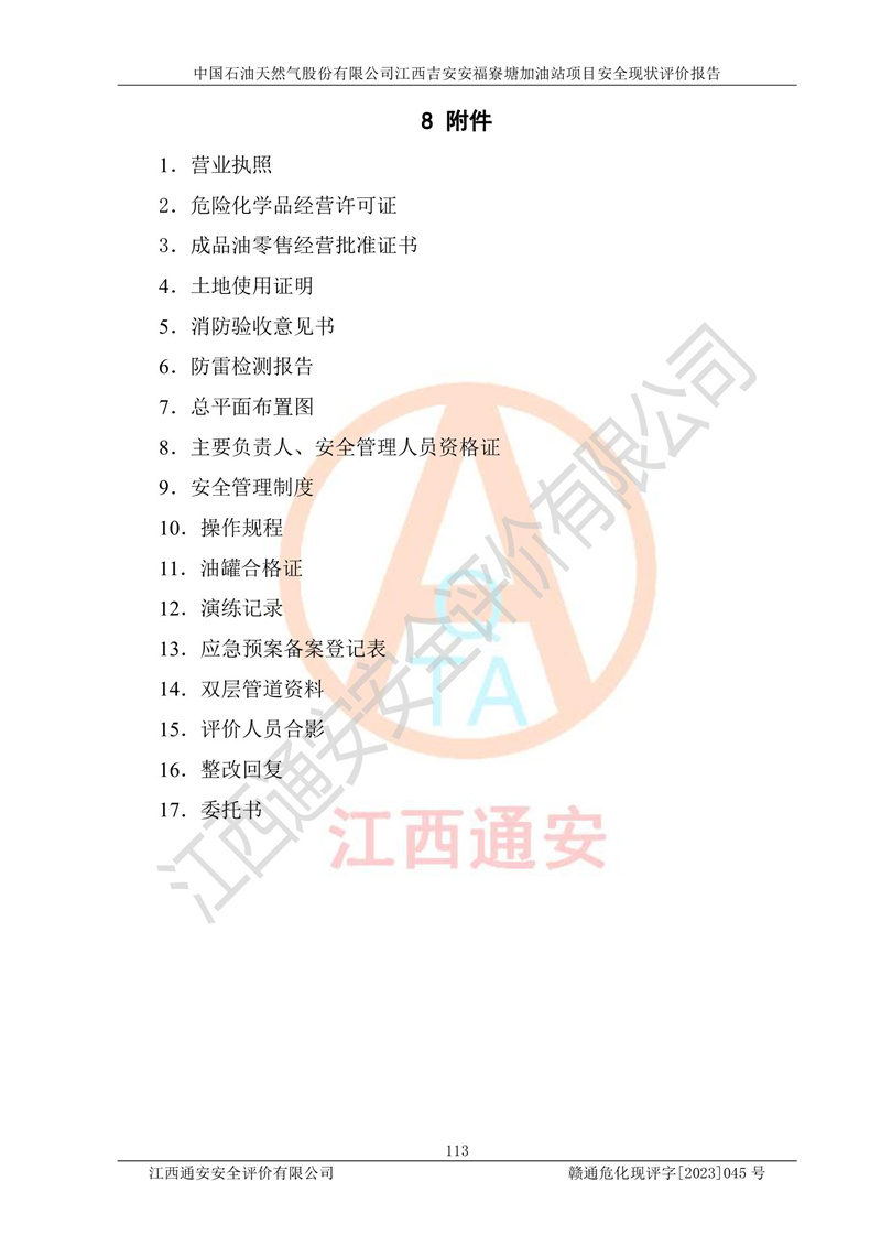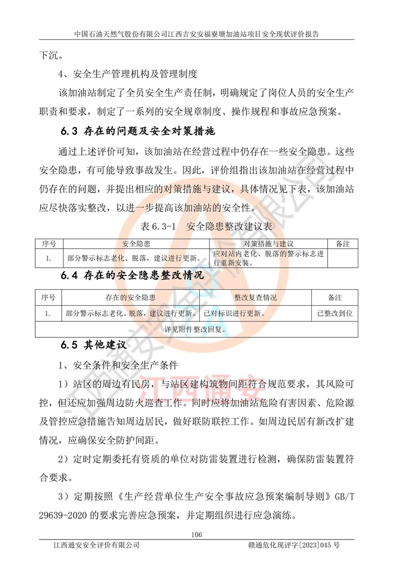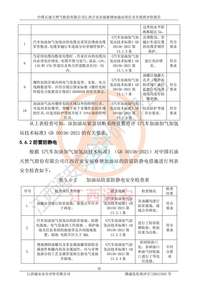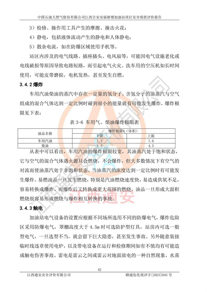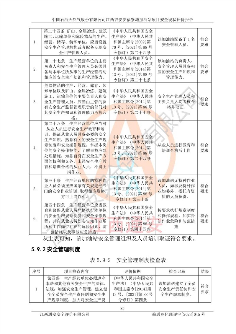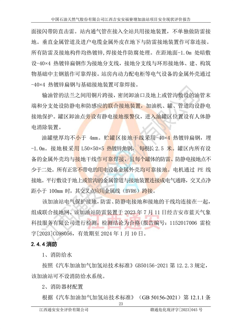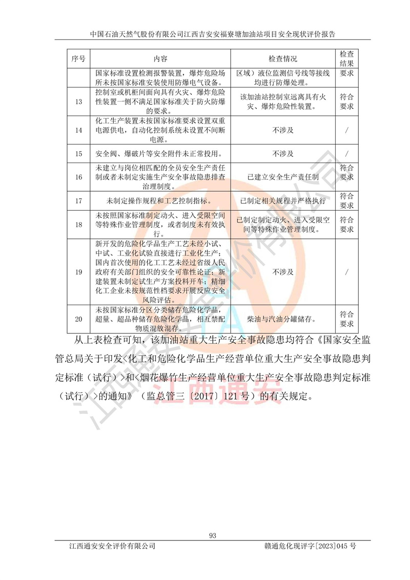 中国石油天然气股份有限公司江西吉安安福寮塘加油站是一家从事成品油批发、成品油零售经营的企业。该加油站成立于2011年5月4日,并获得安福县市场监督管理局颁发的营业执照,营业执照统一社会信用代码为:91360829573618262D,加油站类型为股份有限公司分公司(上市,国有控股),负责人为鄢**,经营范围:许可项目:成品油批发,成品油零售,住宿服务,餐饮服务,食品销售,烟草制品零售,***零售,农药零售,药品零售(依法须经批准的项目,经相关部门批准后在许可**期内方可开展经营活动,具体经营项目和许可期限以相关部门批准文件或许可证件为准)一般项目:润滑油销售,日用陶瓷制品销售,汽车销售,新能源汽车整车销售,新能源汽车换电设施销售,新能源汽车电附件销售,互联网销售(除销售需要许可的商品),汽车装饰用品销售,日用品销售单用途商业预付卡代理销售,日用化学产品销售,劳动保护用品销售,家用电器销售,塑料制品销售,婴幼儿配方乳粉及其他婴幼儿配方食品销售,食品用洗涤剂销售,饲料添加剂销售,肥料销售,洗车服务,农副产品销售,五金产品零售,办公用品销售,第二类医疗器械销售,充电桩销售农作物种子经营(**不再分装的包装种子),广告设计代理,电子过磅服务,化妆品零售,畜牧渔业饲料销售消毒剂销售 (不含危险化学品),汽车零配件零售,电车销售,机动车修理和维护,家具销售,日用百货销售,集中式**充电站,针纺织品销售,住房租赁 (除依法须经批/准的项目处,凭营业执照依法自主开展经营活动)。经营场所:江西省吉安市安福县寮塘乡龙佳村。 中国石油天然气股份有限公司江西吉安安福寮塘加油站占地面积1200㎡,加油站中设有0#柴油双枪加油机2台,92#汽油、95#汽油四枪加油机2台;该站设有4个30m³SF双层埋地卧式储罐,其中有2个30m³SF双层埋地卧式0#柴油罐、1个92#30m³SF双层埋地卧式汽油罐,1个95#30m³SF双层埋地卧式汽油罐,油品折算总容量为90m³(柴油罐容积折半计入油罐总容积),属三级加油站,汽油卸油、加油设置了油气回收系统。 中国石油天然气股份有限公司江西吉安安福寮塘加油站于2020年11月04日经安福县应急管理局核准,换发了新的《危险化学品经营许可证》,证书编号:赣安安经(甲)[2014]000007,许可经营范围:成品油。**期2020年11月04日至2023年11月03日。 中国石油天然气股份有限公司江西吉安安福寮塘加油站2023年05月11日经吉安市商务局核准,换取了新的《成品油零售经营批准证书》,证书编号:油零售证书第吉0256号,批准从事成品油(汽油、柴油)零售业务。证书**期至2023年5月11日至2028年05月10日。 |